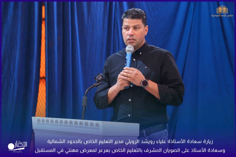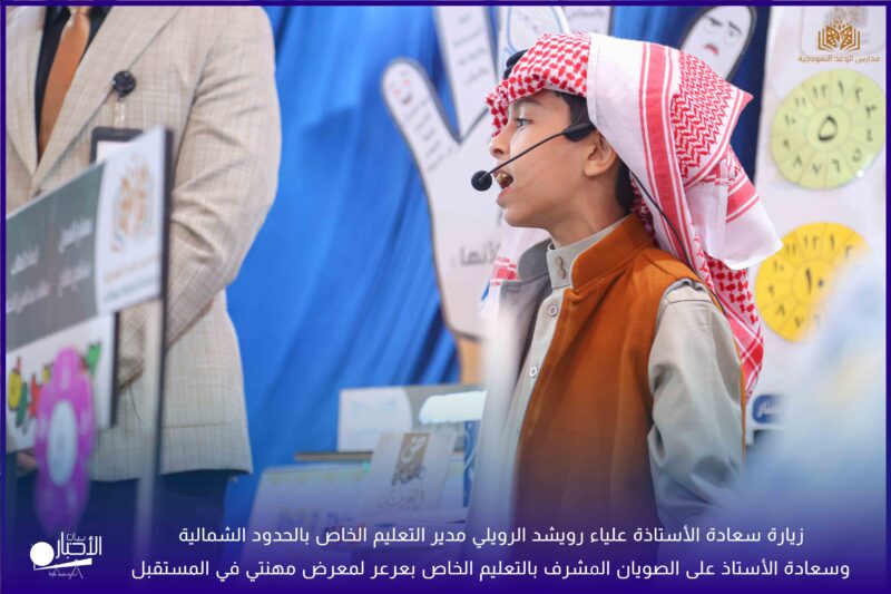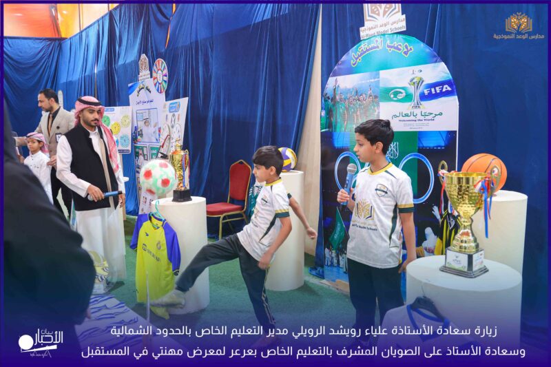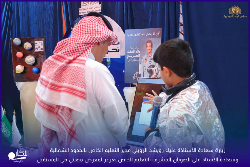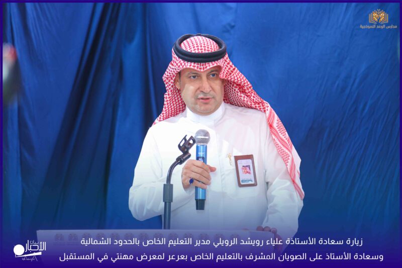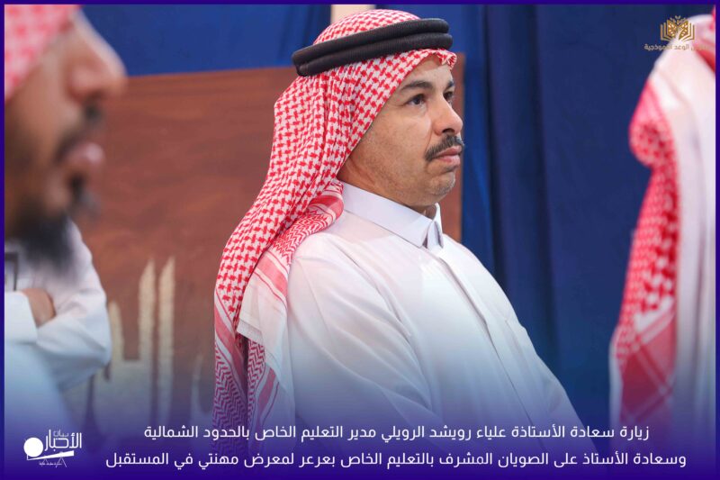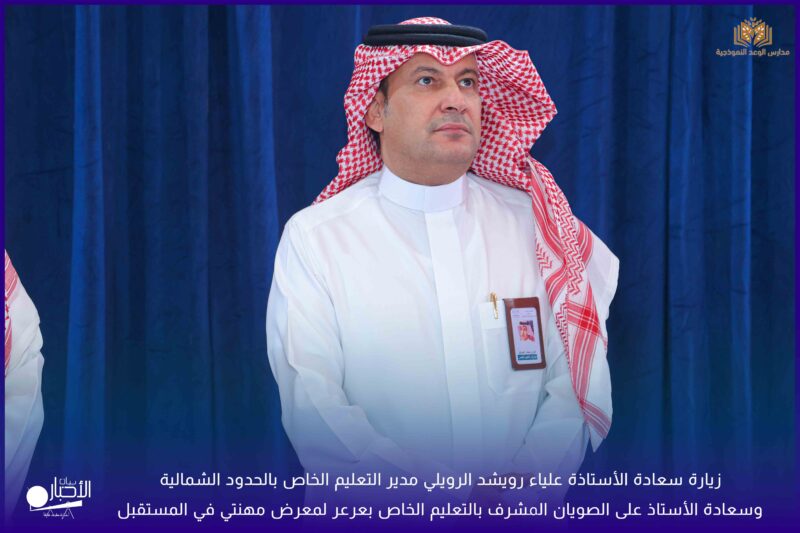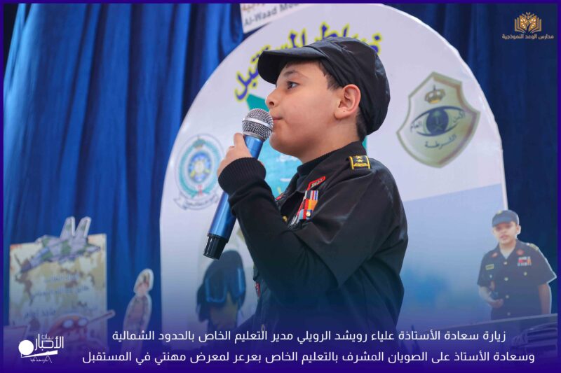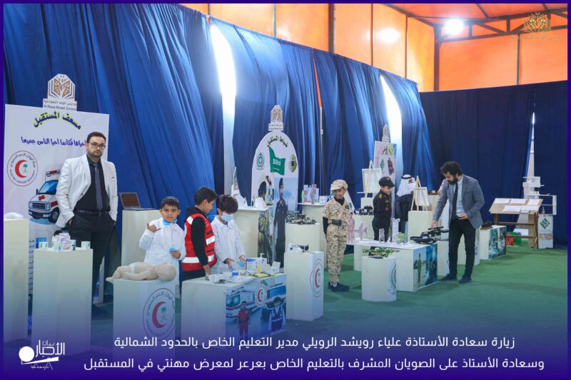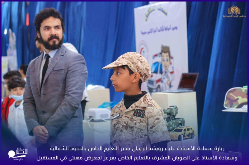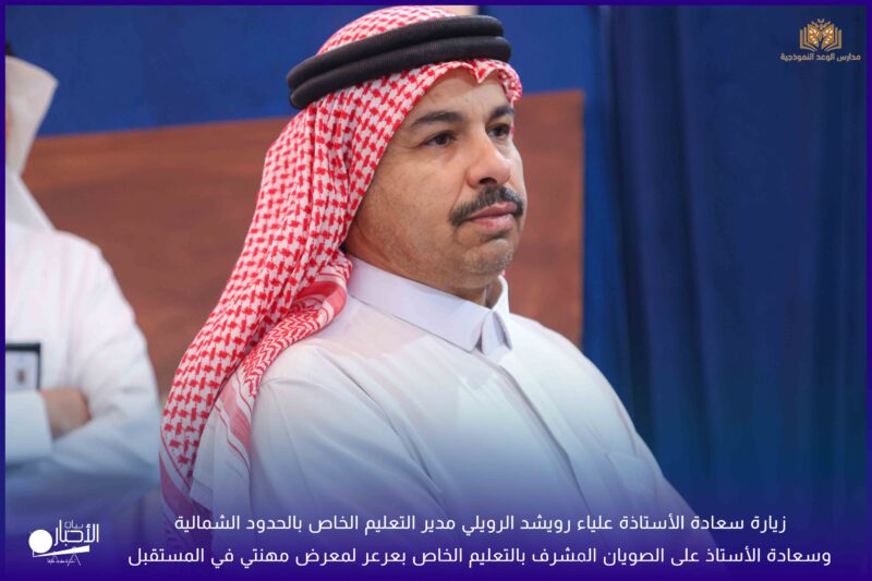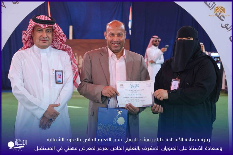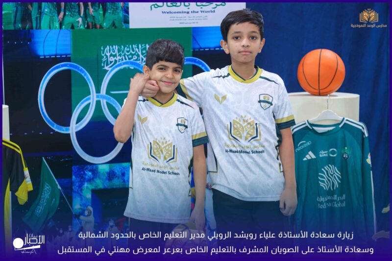 شرفت مدارس الوعد النموذجية الأهلية (المرحلة الابتدائية ) الخميس 13 / 11 /2025 بزيارة سعادة الأستاذة علياء رويشد الرويلي مدير التعليم الخاص بالحدود الشمالية وسعادة الأستاذ علي الصويان المشرف بالتعليم الخاص بعرعر لمعرض مهنتي في المستقبل المقام بمدارس الوعد النموذجية وكذلك زيارة بعض مدارس المرحلة الابتدائية بمحافظة طريف .