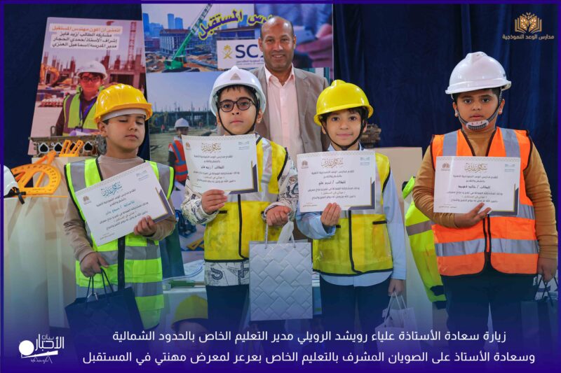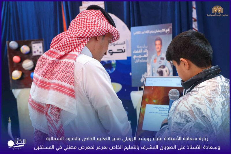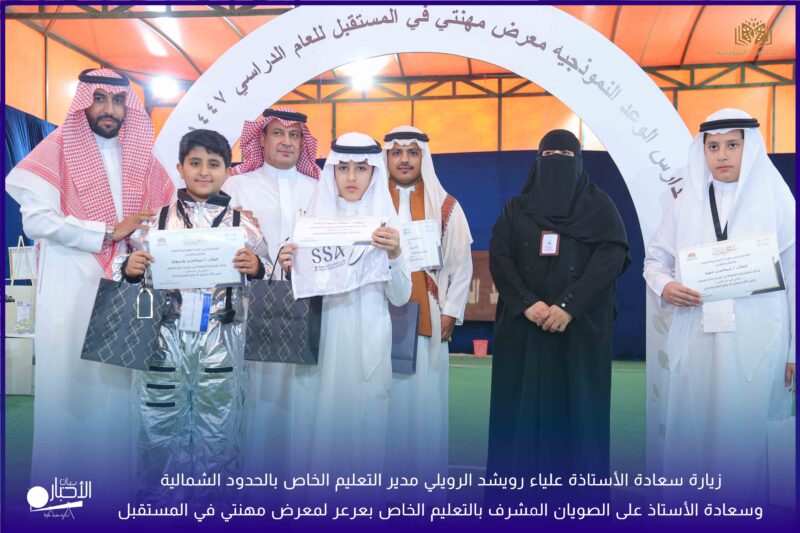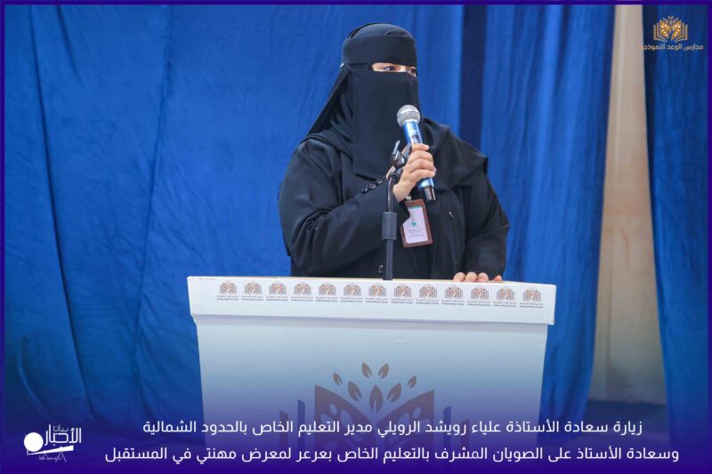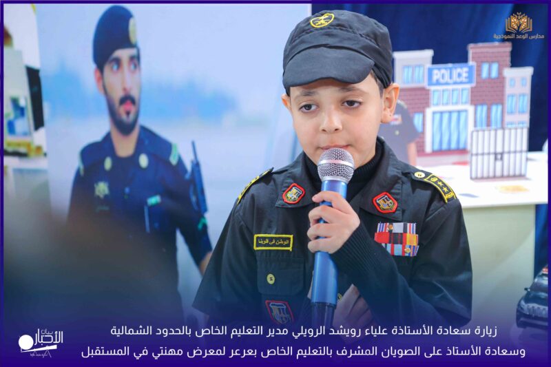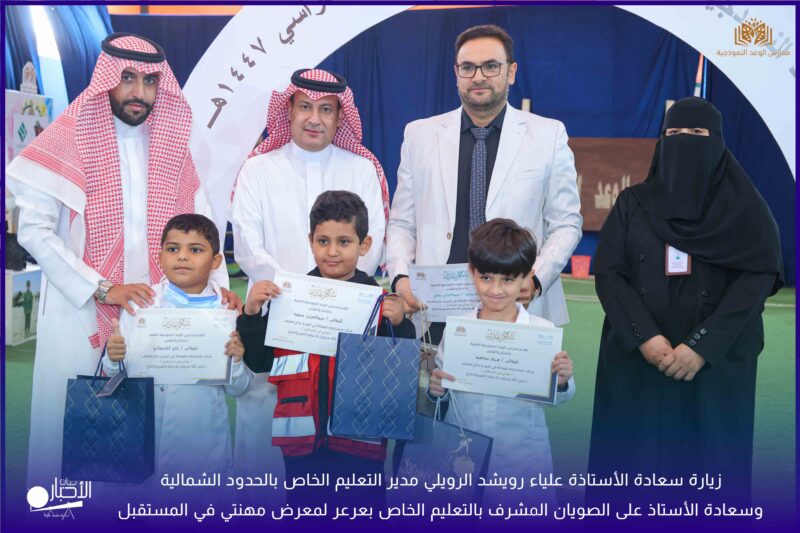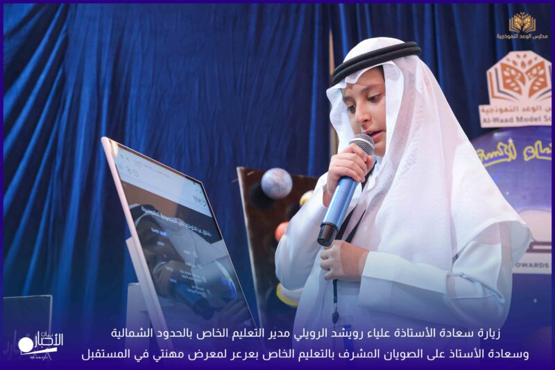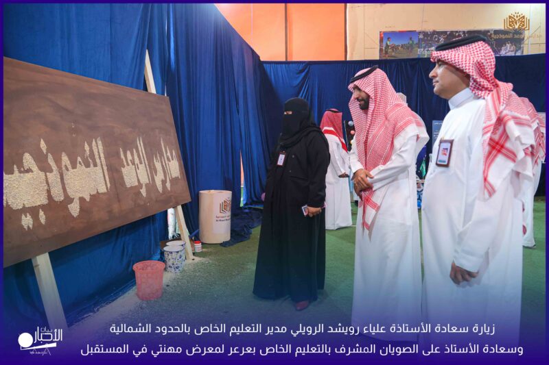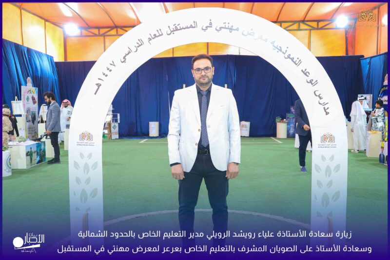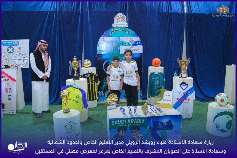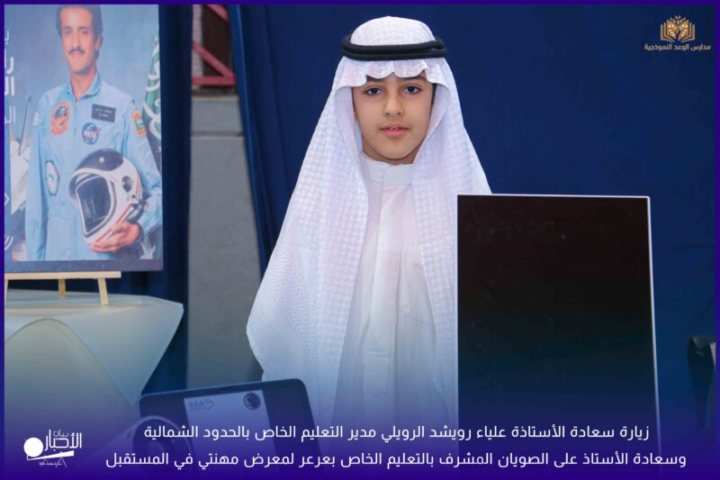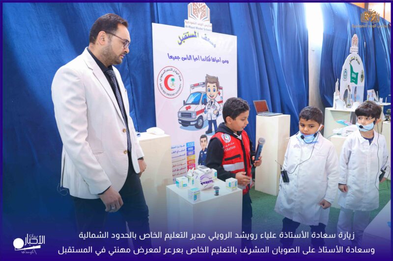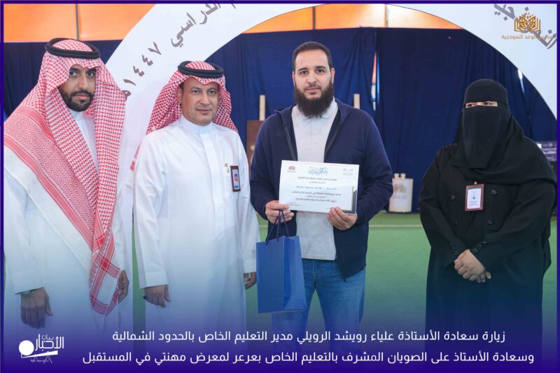 شرفت مدارس الوعد النموذجية الأهلية (المرحلة الابتدائية ) الخميس 13 / 11 /2025 بزيارة سعادة الأستاذة علياء رويشد الرويلي مدير التعليم الخاص بالحدود الشمالية وسعادة الأستاذ علي الصويان المشرف بالتعليم الخاص بعرعر لمعرض مهنتي في المستقبل المقام بمدارس الوعد النموذجية وكذلك زيارة بعض مدارس المرحلة الابتدائية بمحافظة طريف .