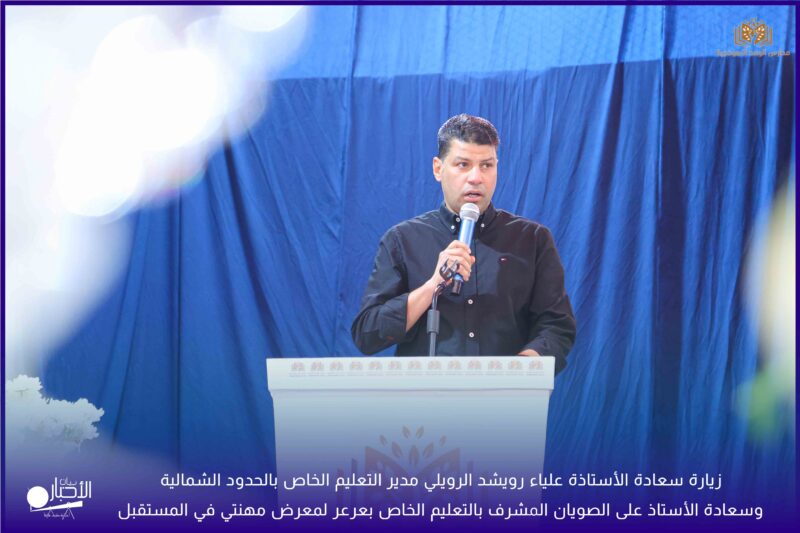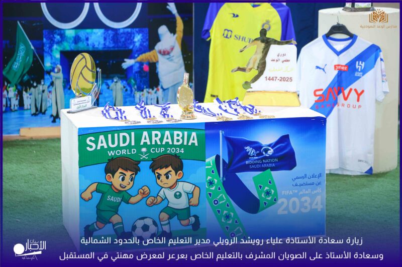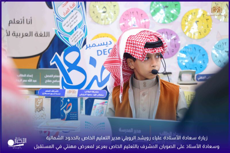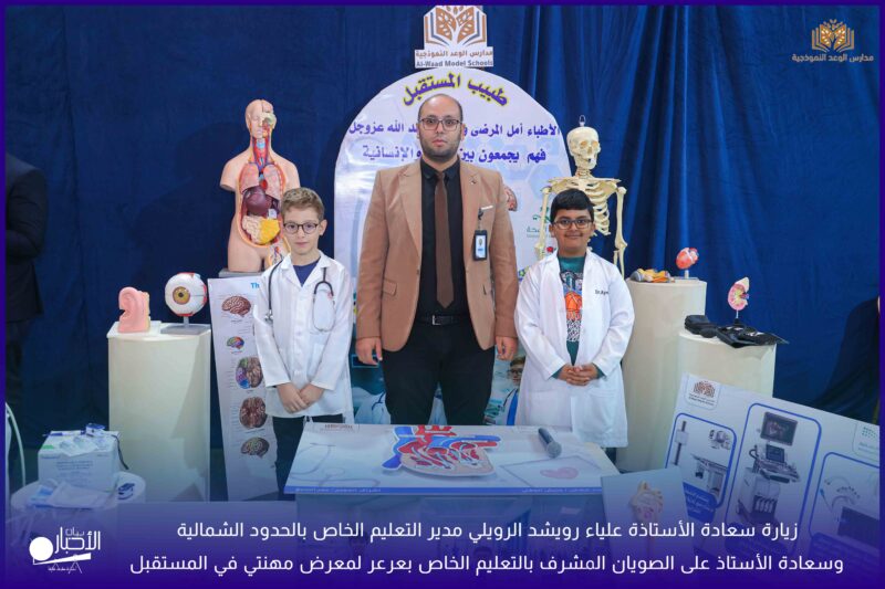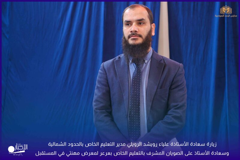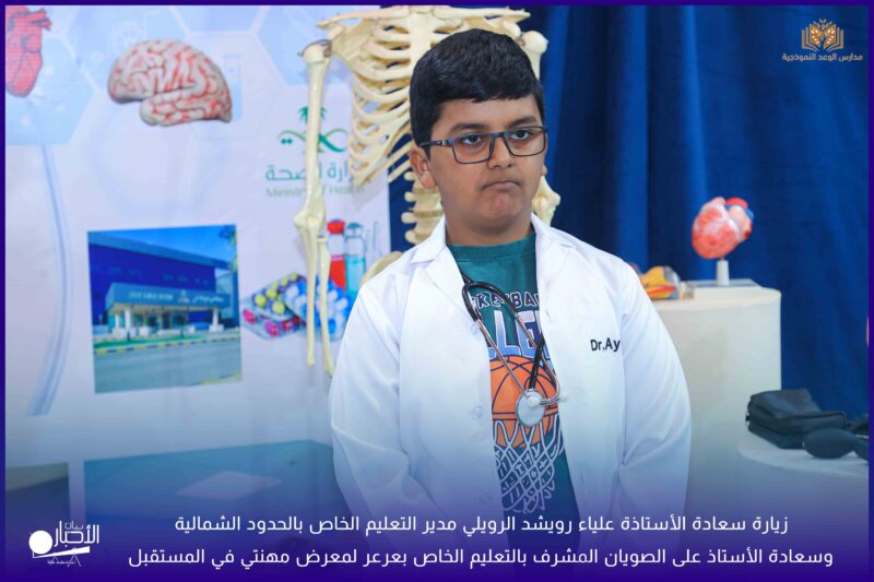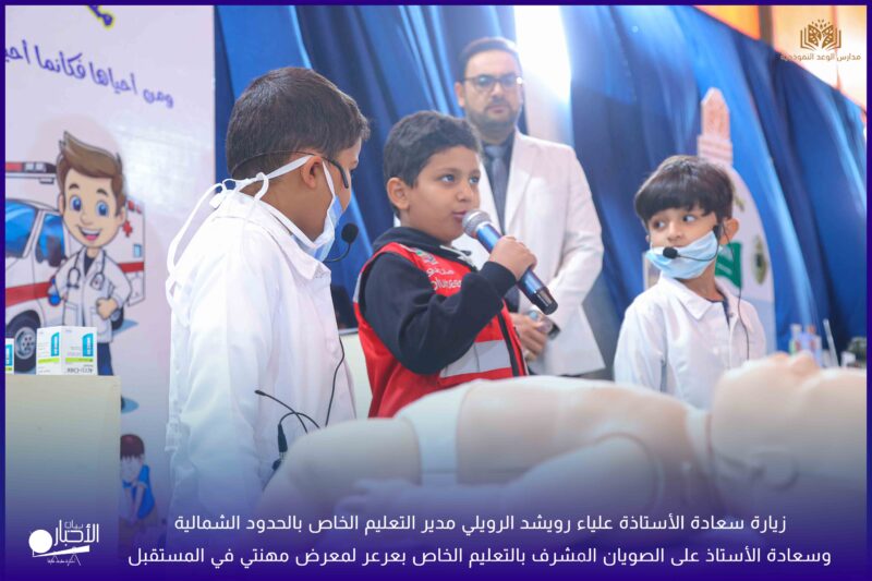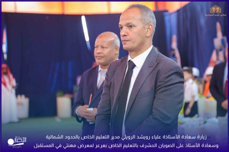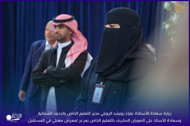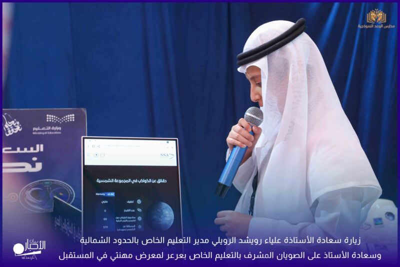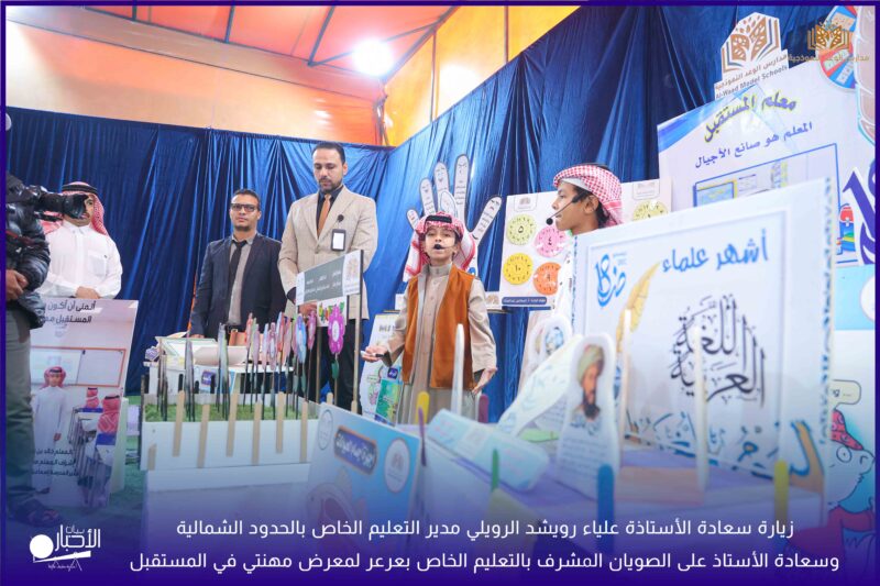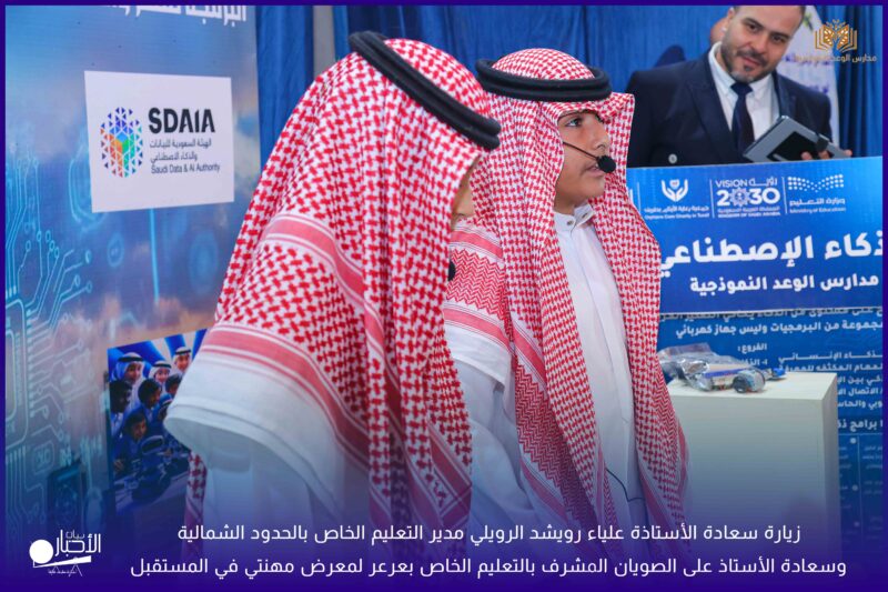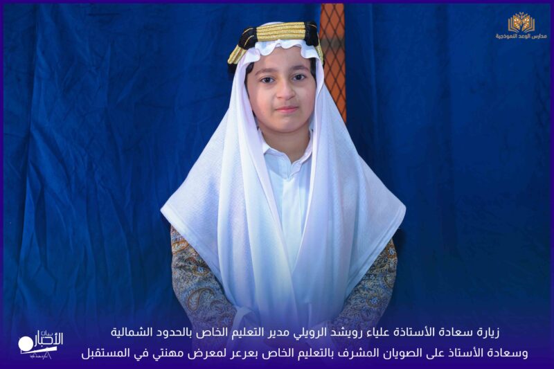 شرفت مدارس الوعد النموذجية الأهلية (المرحلة الابتدائية ) الخميس 13 / 11 /2025 بزيارة سعادة الأستاذة علياء رويشد الرويلي مدير التعليم الخاص بالحدود الشمالية وسعادة الأستاذ علي الصويان المشرف بالتعليم الخاص بعرعر لمعرض مهنتي في المستقبل المقام بمدارس الوعد النموذجية وكذلك زيارة بعض مدارس المرحلة الابتدائية بمحافظة طريف .