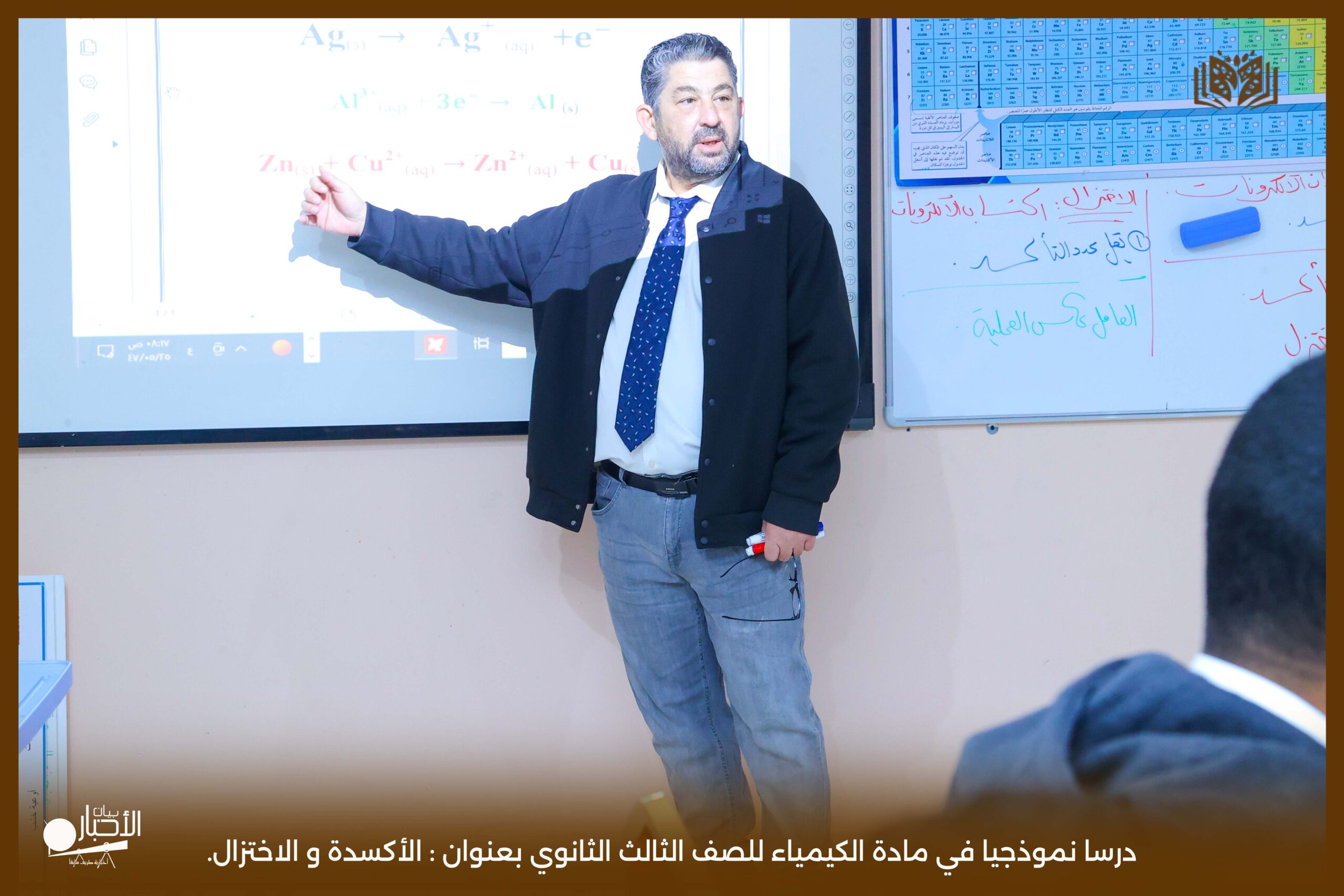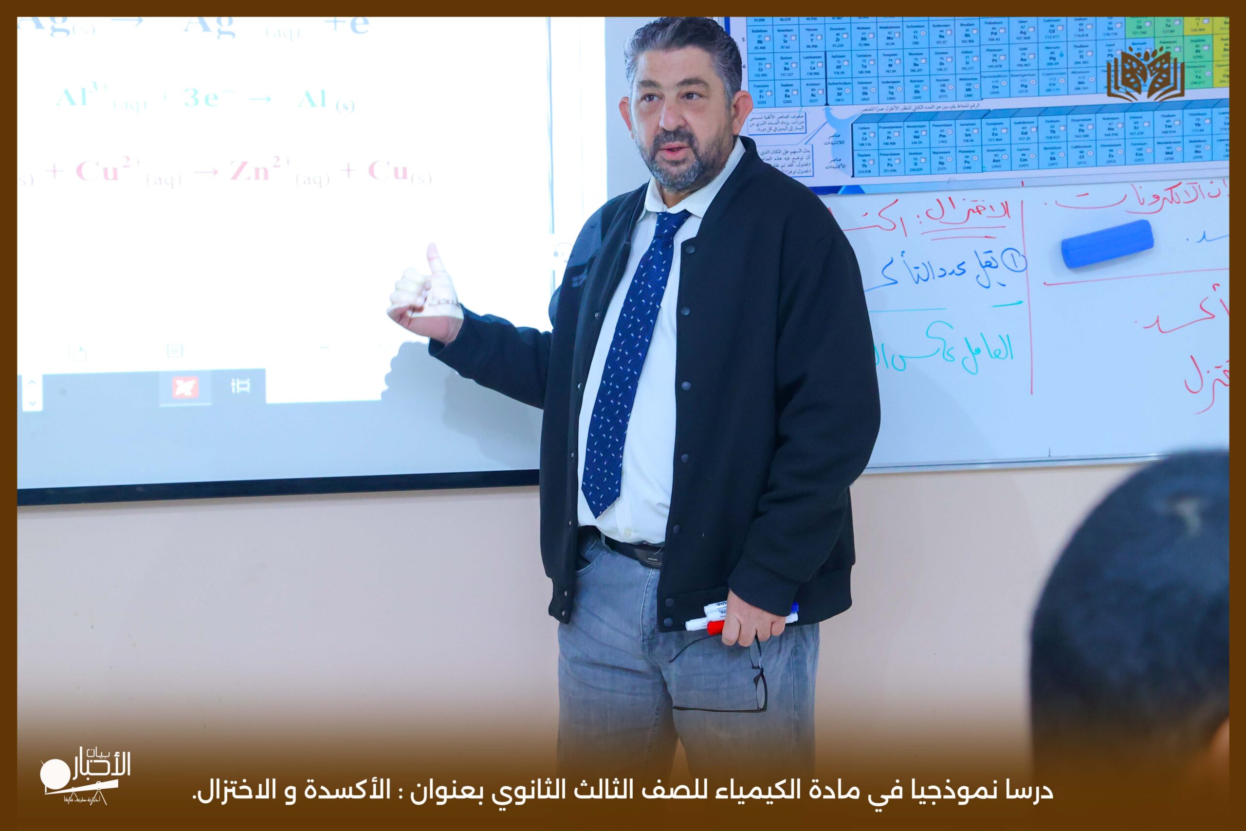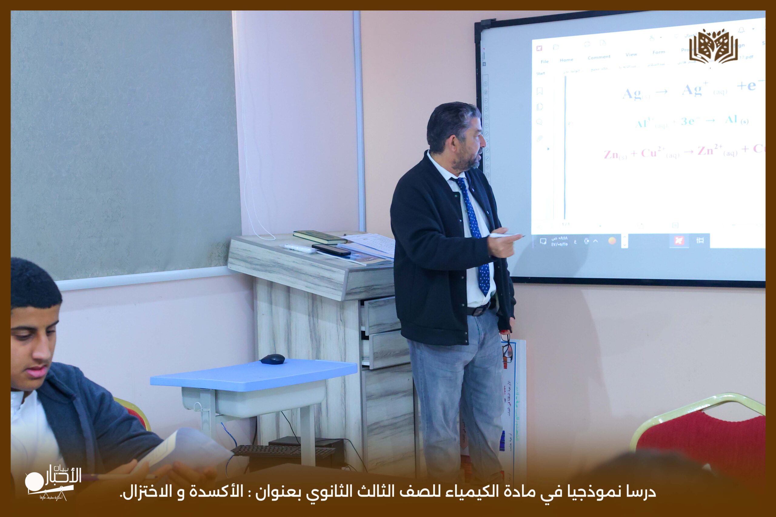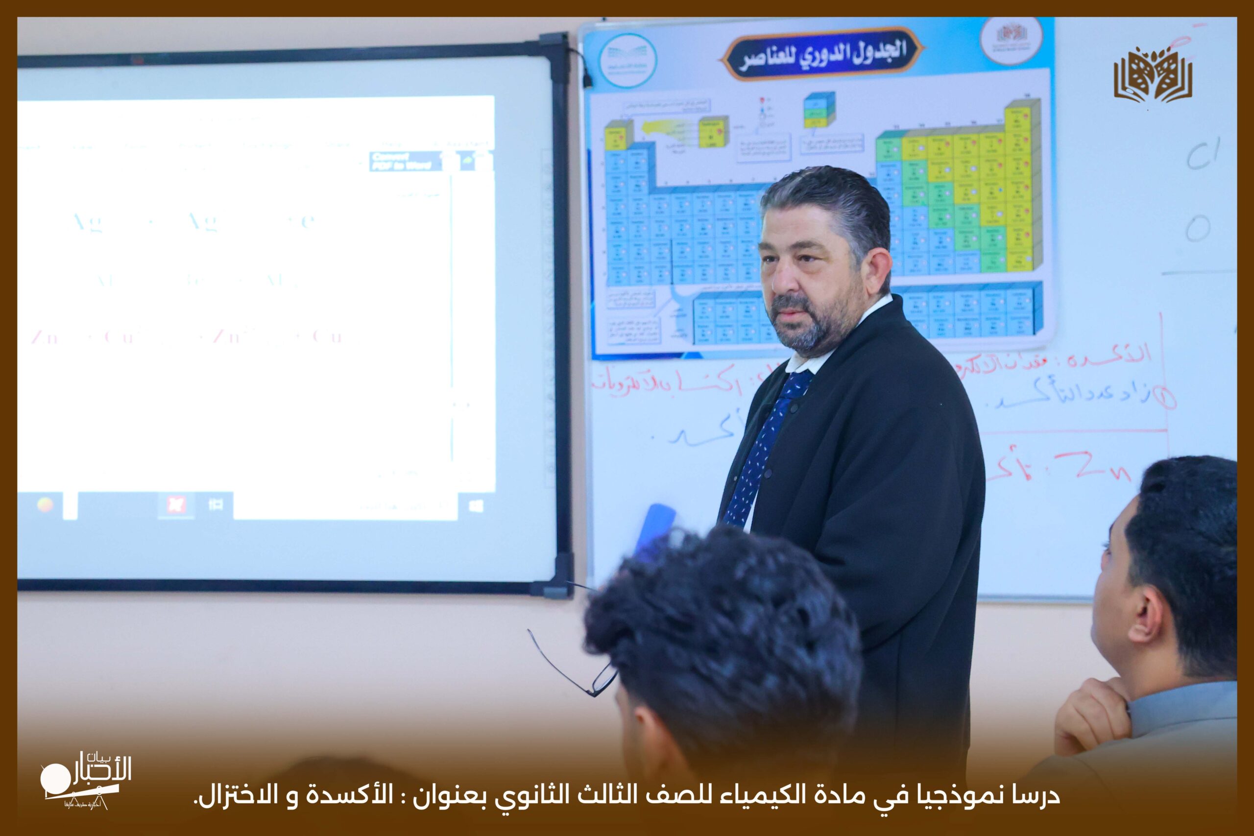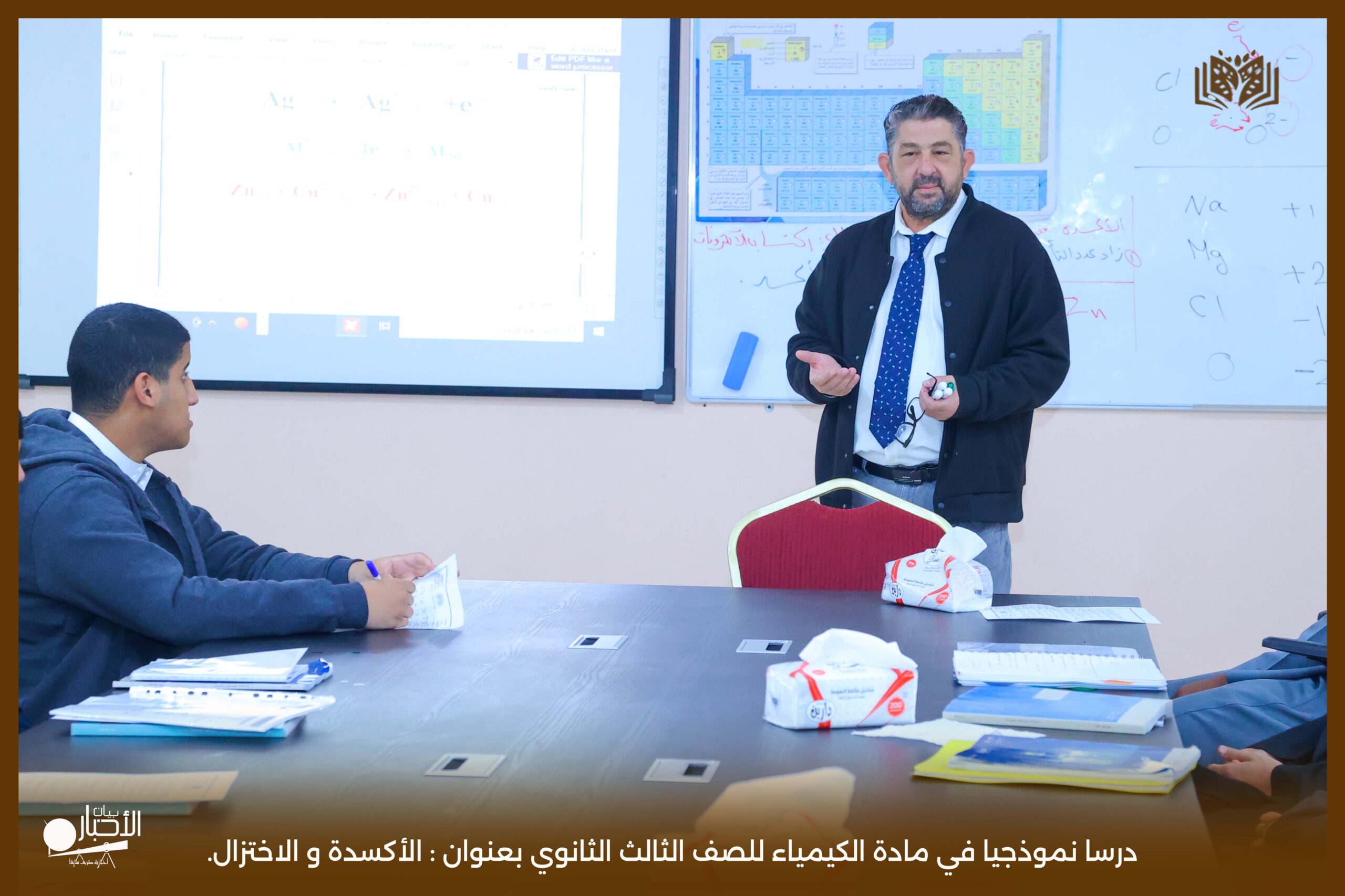 و قدم الدرس معلم الكيمياء انس موسى باشا معتمدا في حصته على استراتيجيات التعلم النشط، و ذلك بتطبيق استرتيجيتي التعلم المتمايز و العصف الذهني ، مما ساهم في إشراك جميع الطلاب وتفاعلهم مع الدرس. كما استخدم المعلم وسائل تعليمية متنوعة . بالإضافة إلى السبورة الذكية، مما أضفى على الحصة طابعاً تفاعلياً وجذاباً.