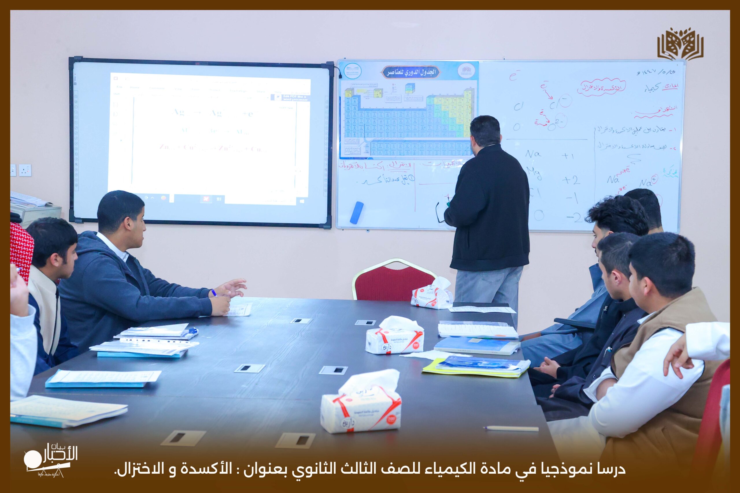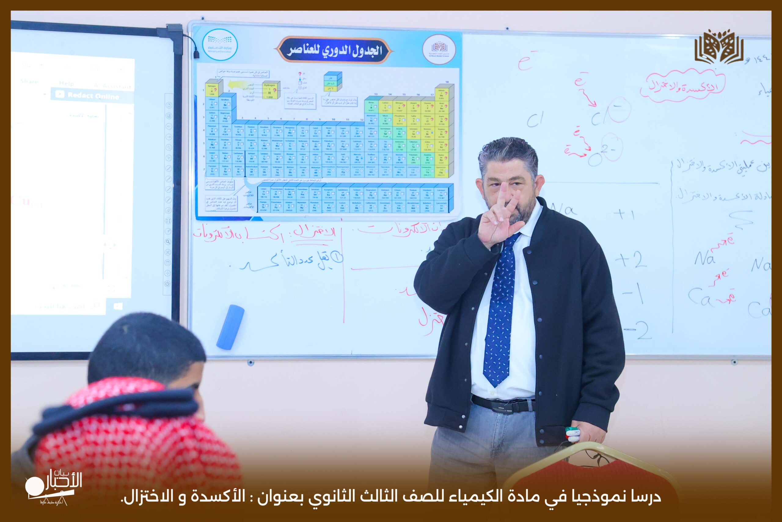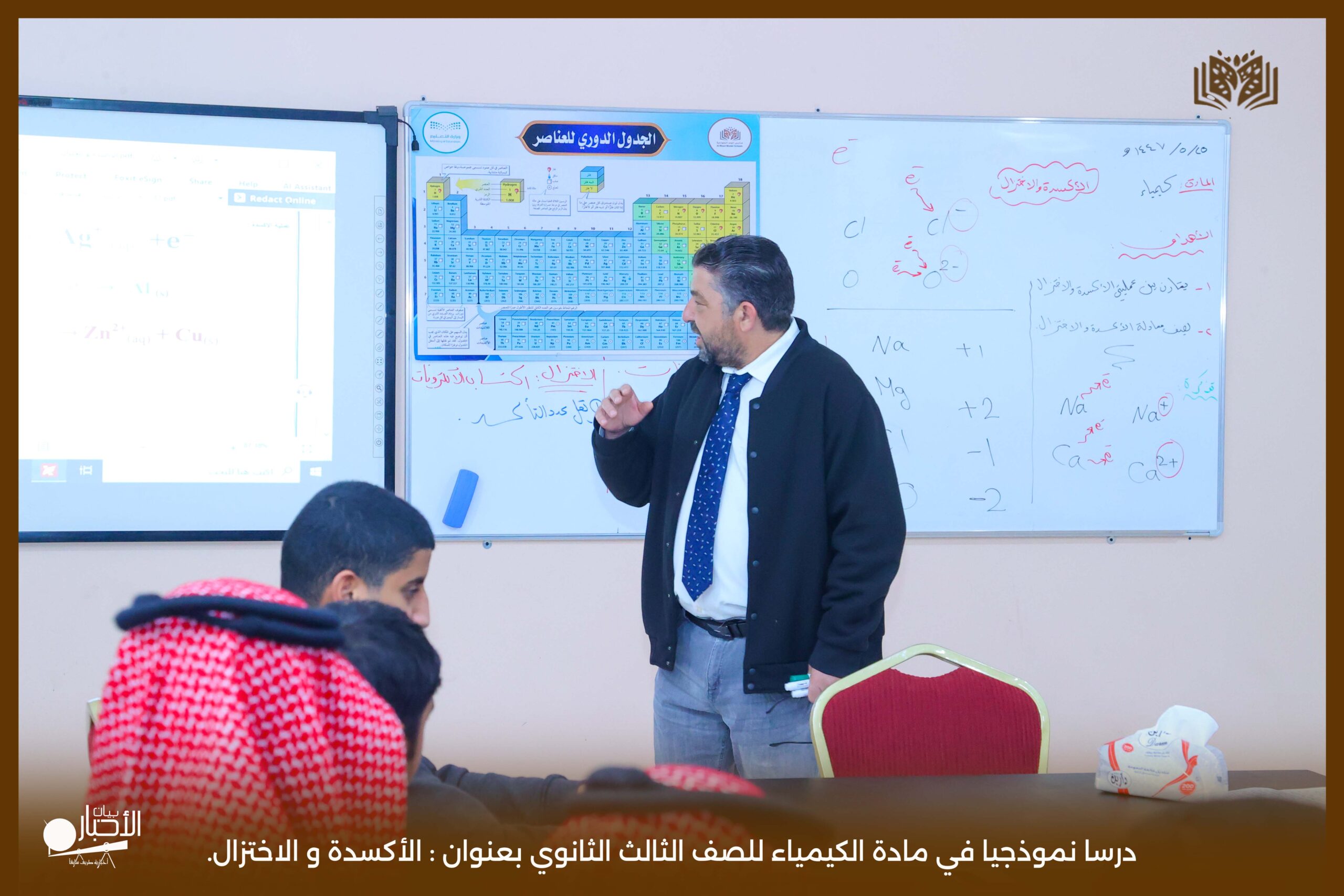 شهدت مدارس الوعد النموذجية في محافظة طريف يوم الأحد ٢٥/٥/١٤٤٧درسا نموذجيا في مادة الكيمياء للصف الثالث الثانوي بعنوان : الأكسدة و الاختزال.