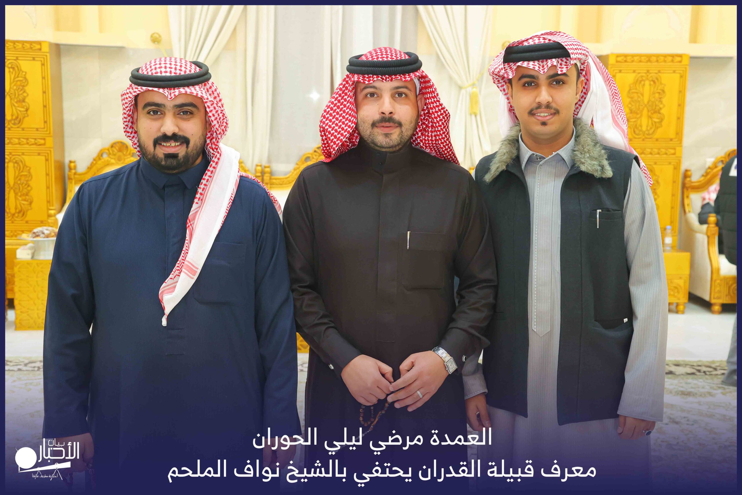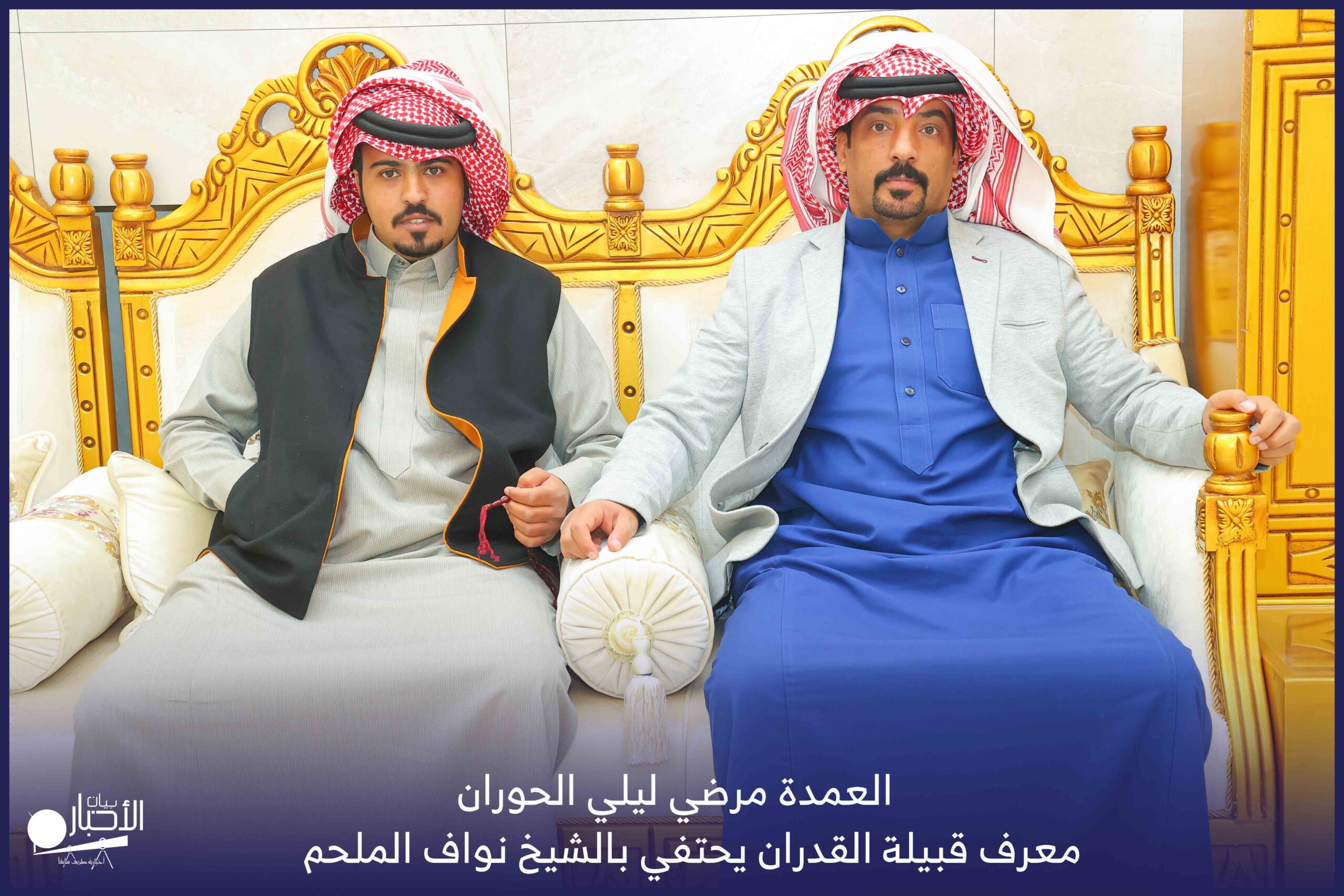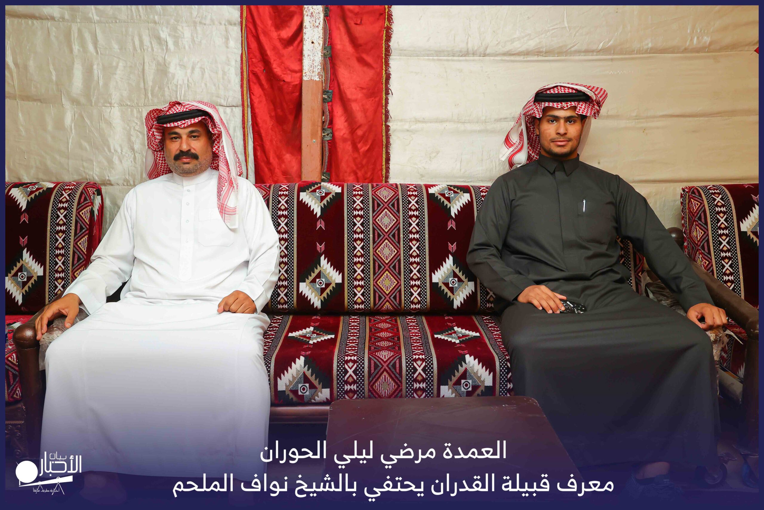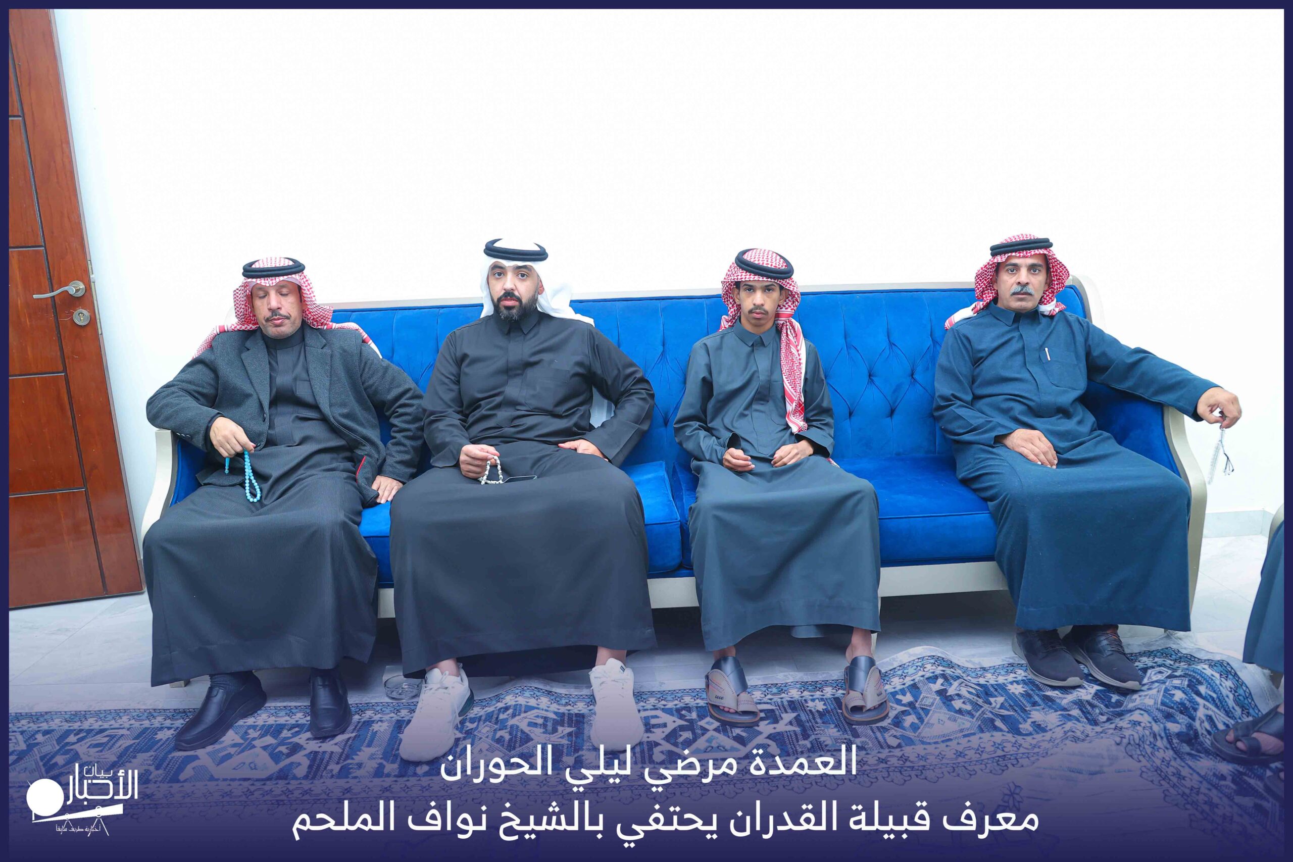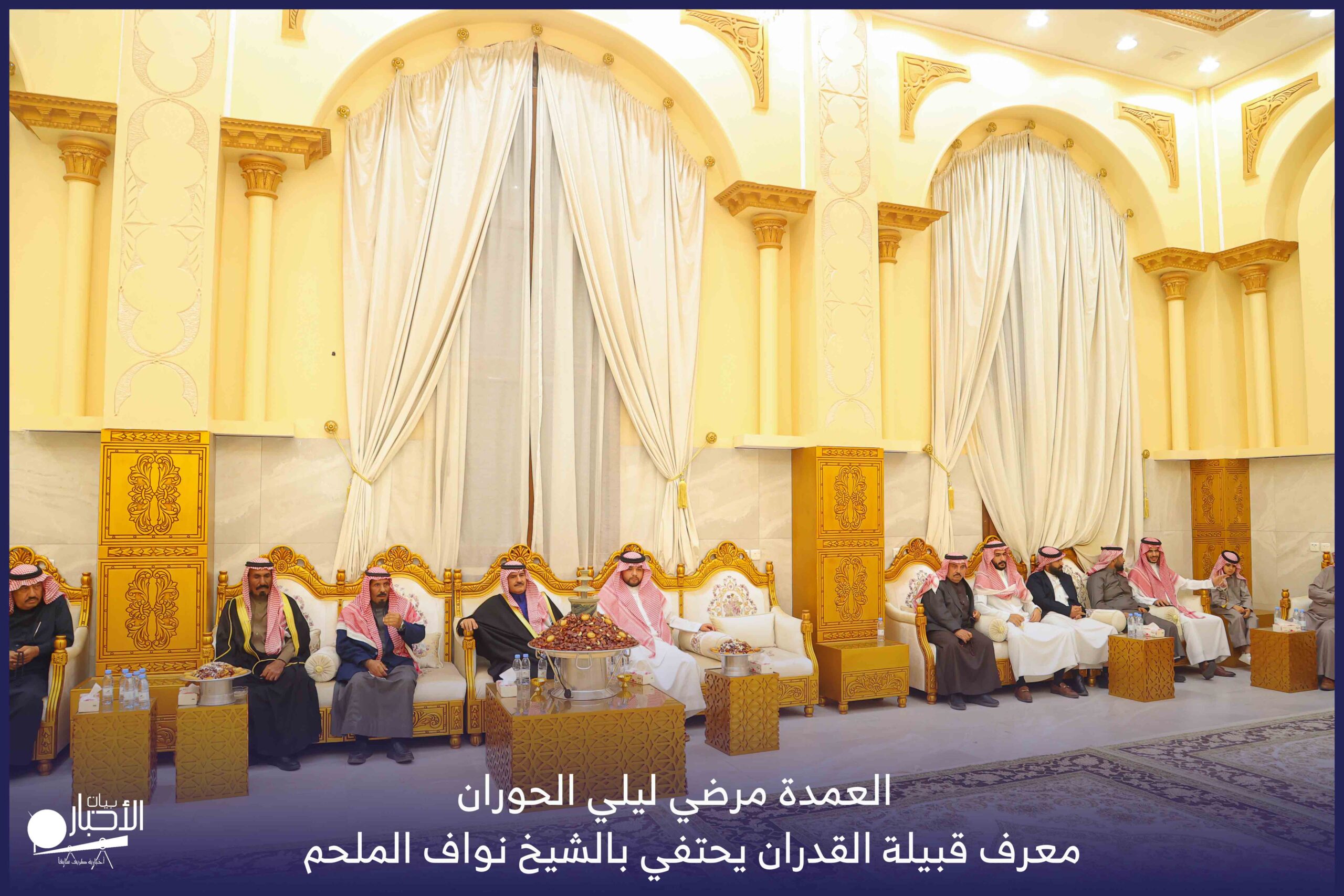 احتفى العمدة مرضي ليلي الحوران معرف قبيلة القدران بالشيخ نواف عبدالعزيز طراد الملحم، وذلك تزامناً مع زيارته لمحافظة طريف، وذلك وسط ترحيب كبير وحضور عدد من المشايخ ووجهاء المحافظة.