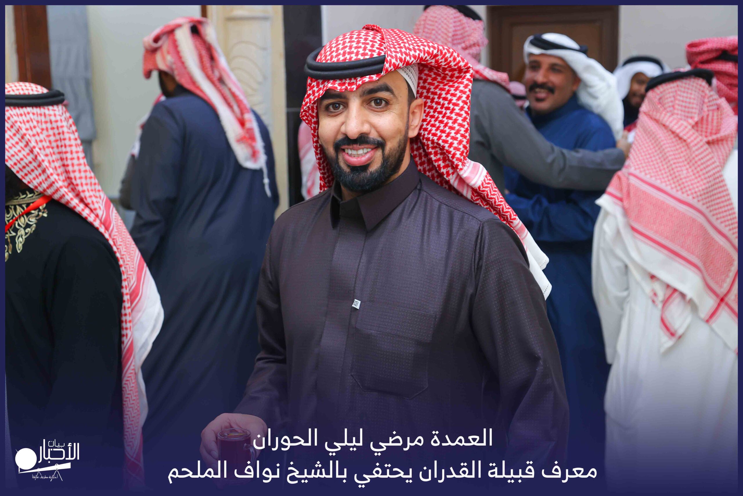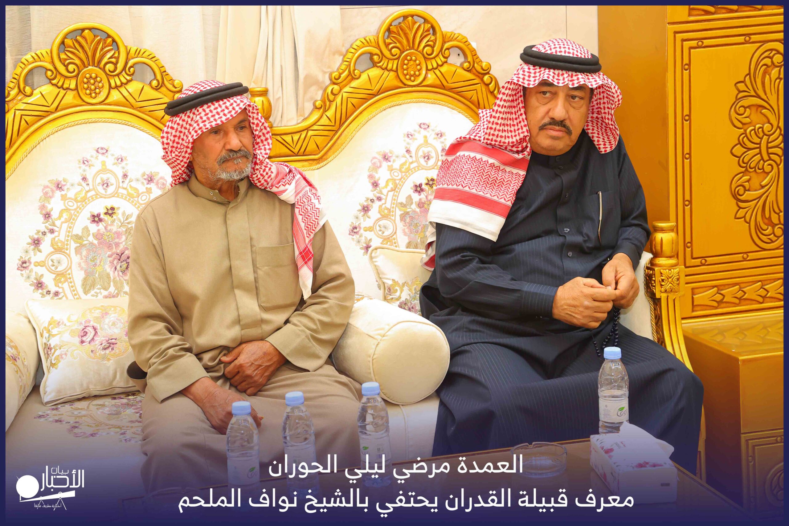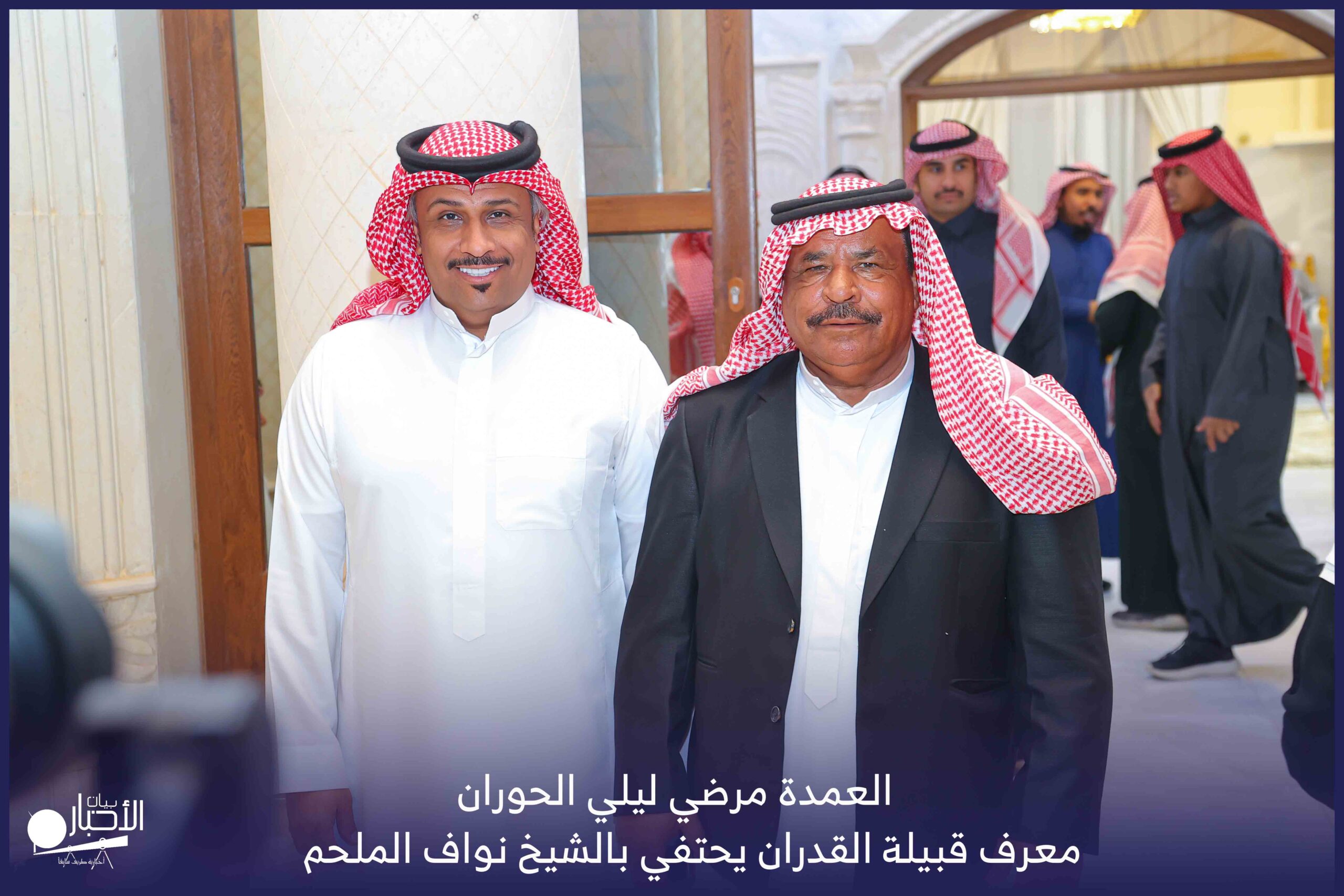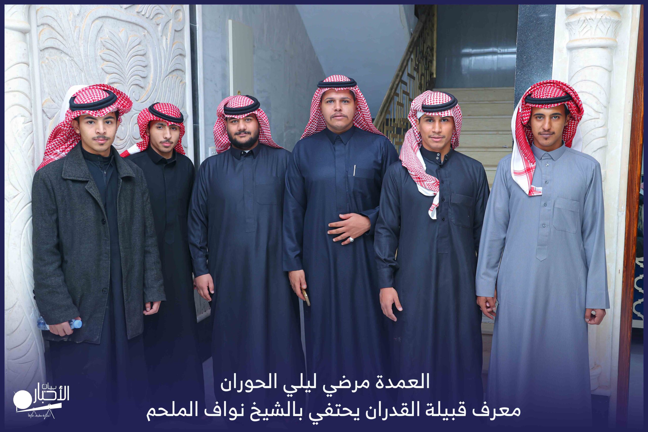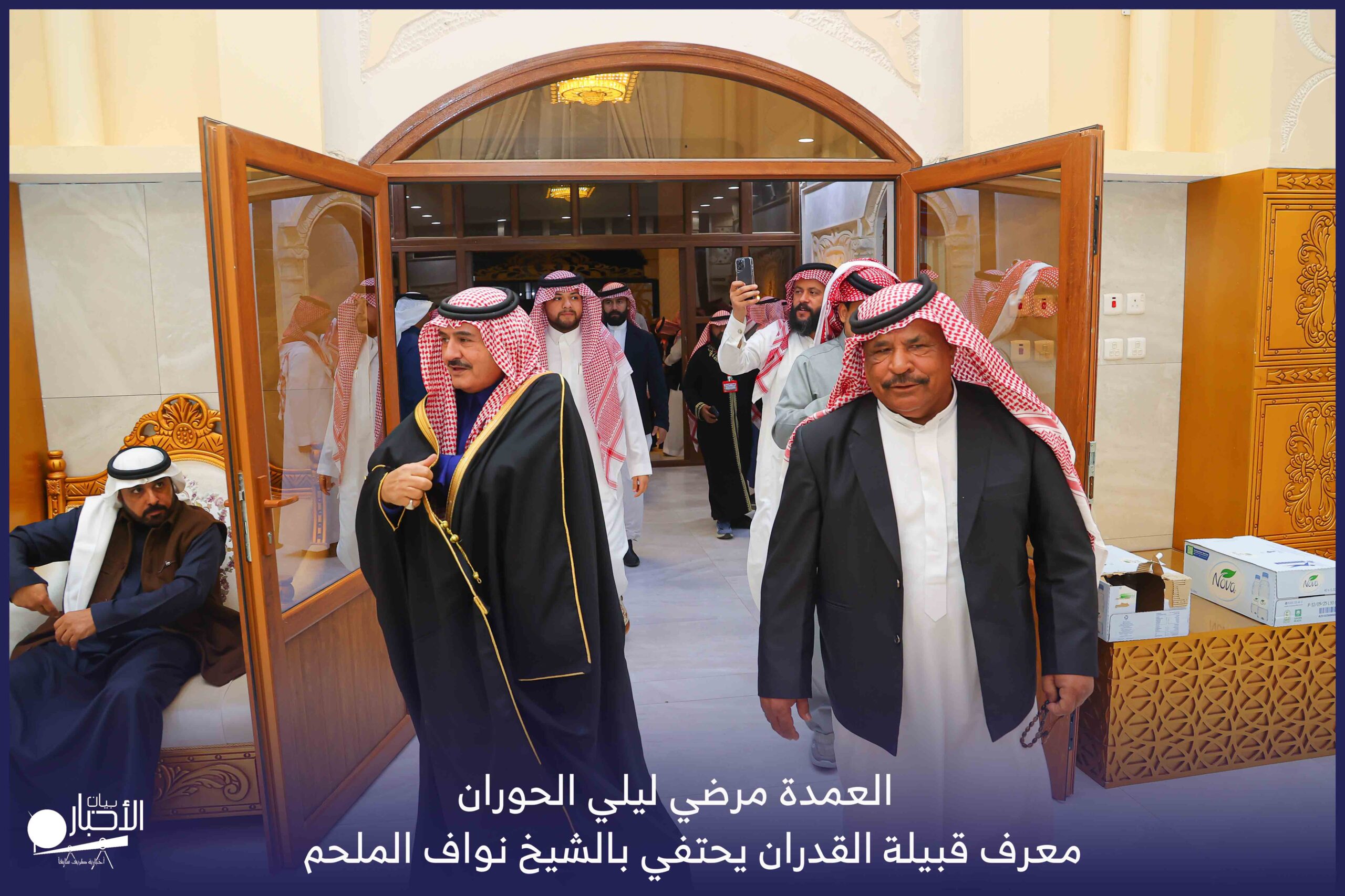 احتفى العمدة مرضي ليلي الحوران معرف قبيلة القدران بالشيخ نواف عبدالعزيز طراد الملحم، وذلك تزامناً مع زيارته لمحافظة طريف، وذلك وسط ترحيب كبير وحضور عدد من المشايخ ووجهاء المحافظة.