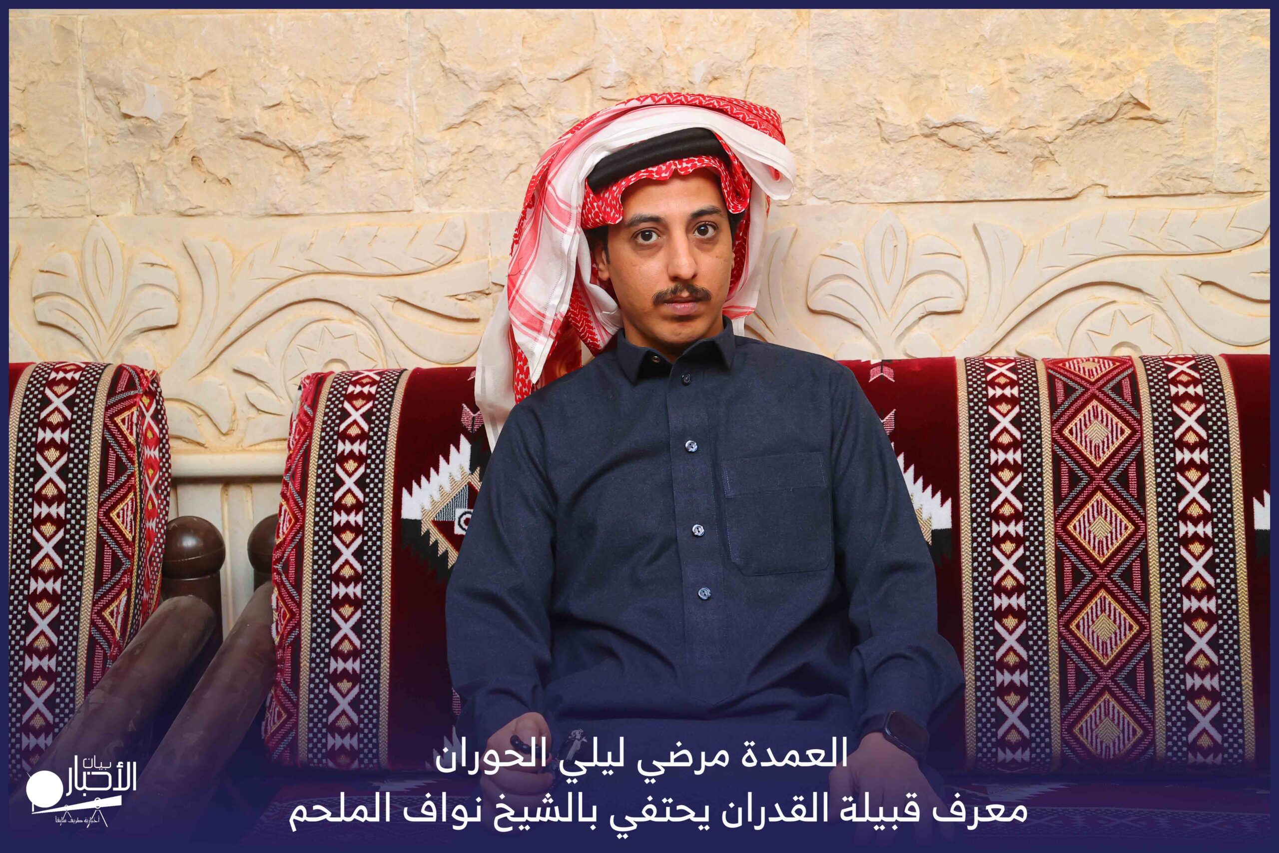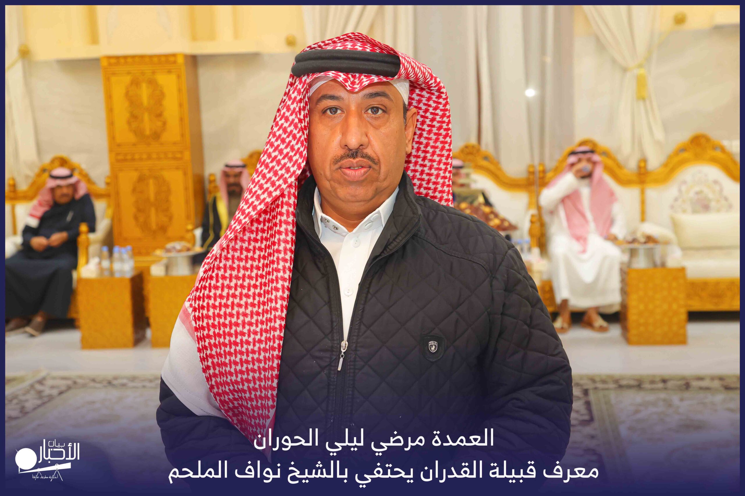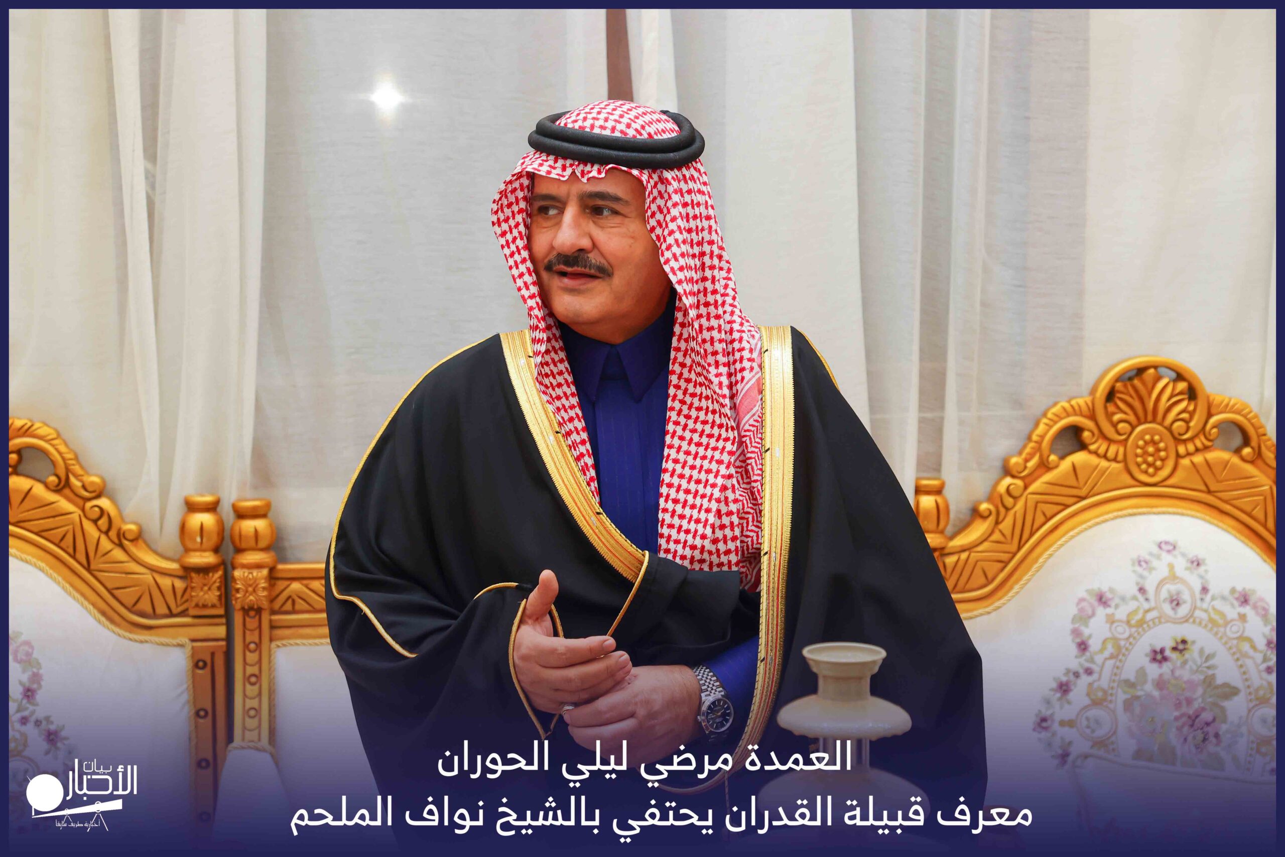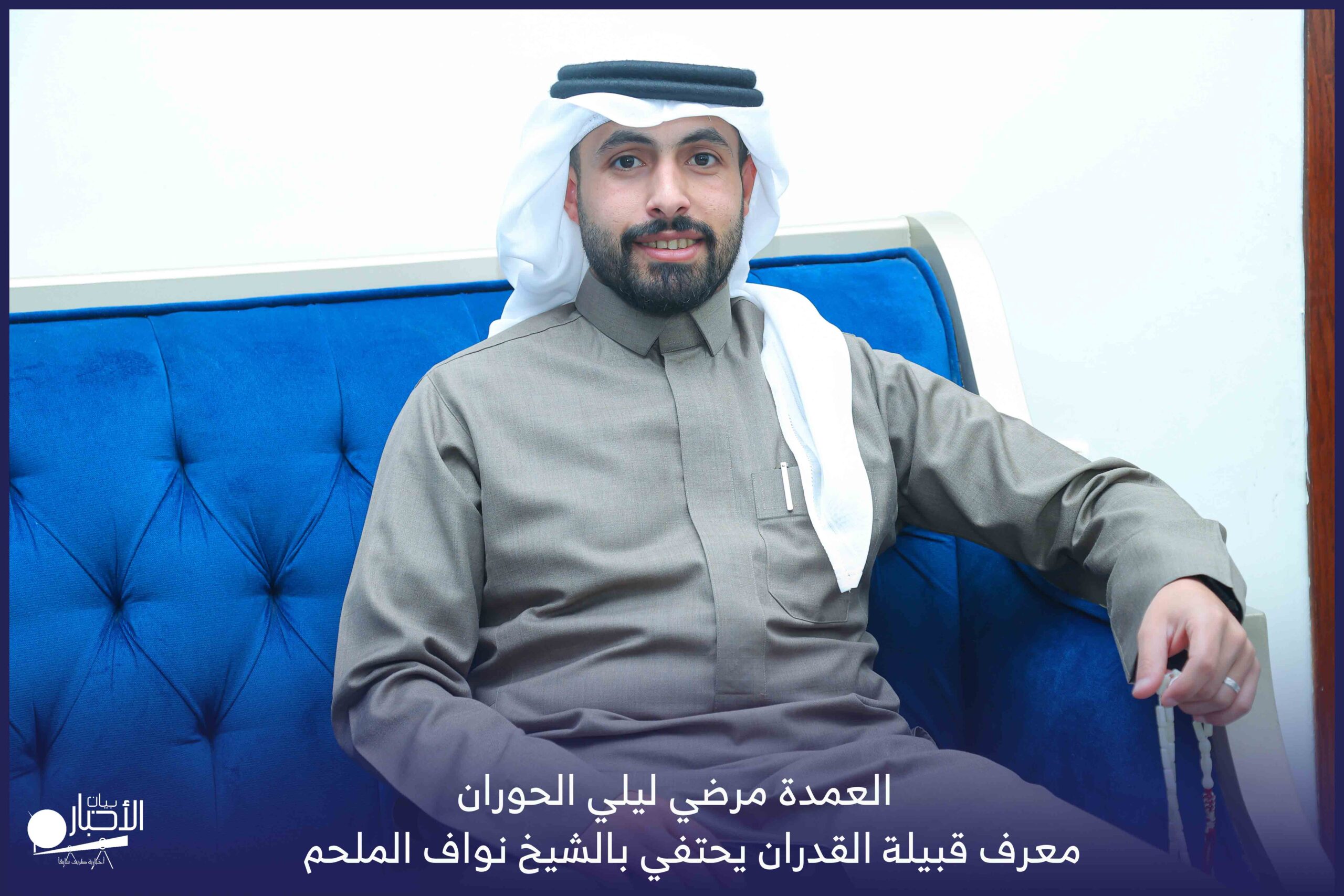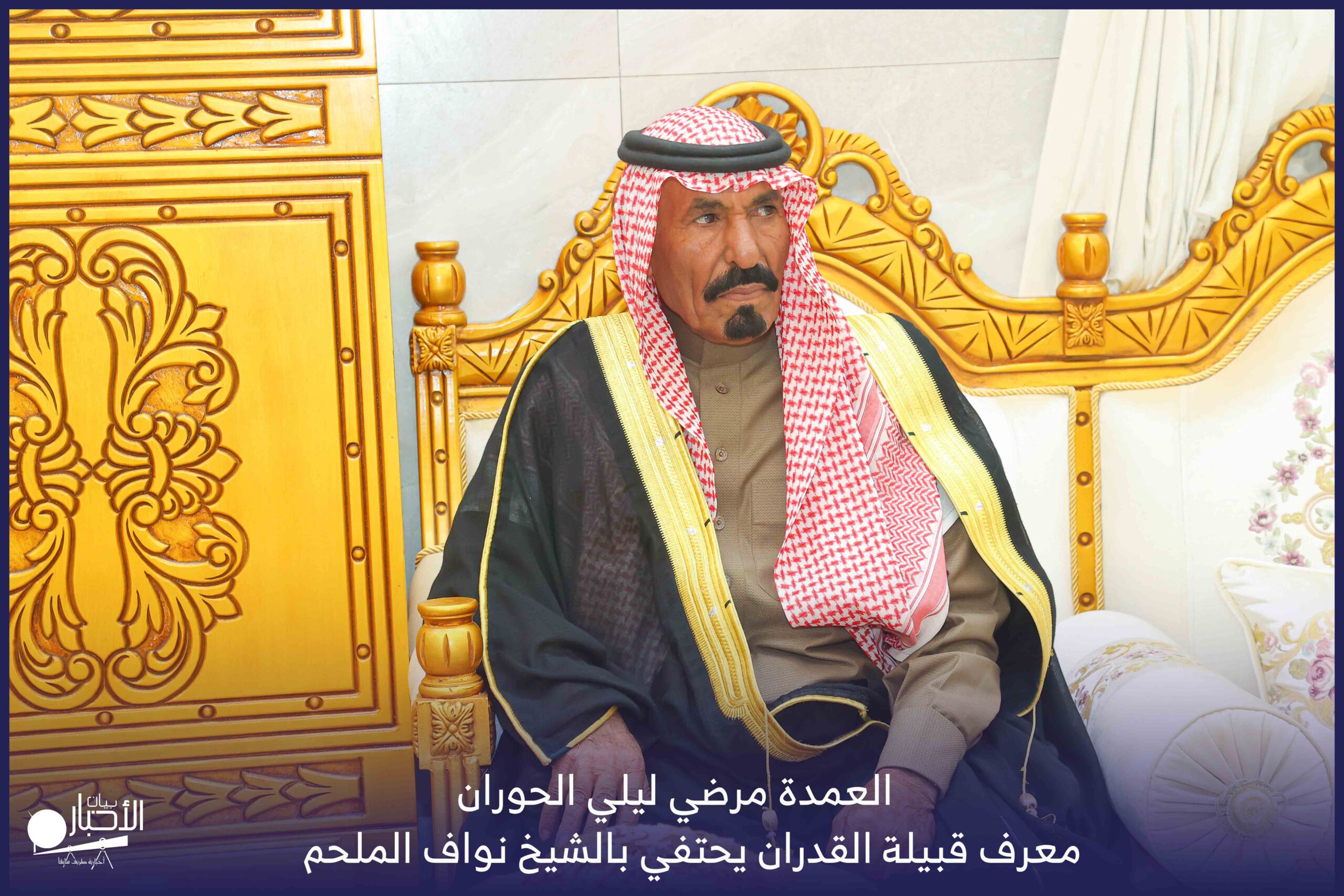 احتفى العمدة مرضي ليلي الحوران معرف قبيلة القدران بالشيخ نواف عبدالعزيز طراد الملحم، وذلك تزامناً مع زيارته لمحافظة طريف، وذلك وسط ترحيب كبير وحضور عدد من المشايخ ووجهاء المحافظة.