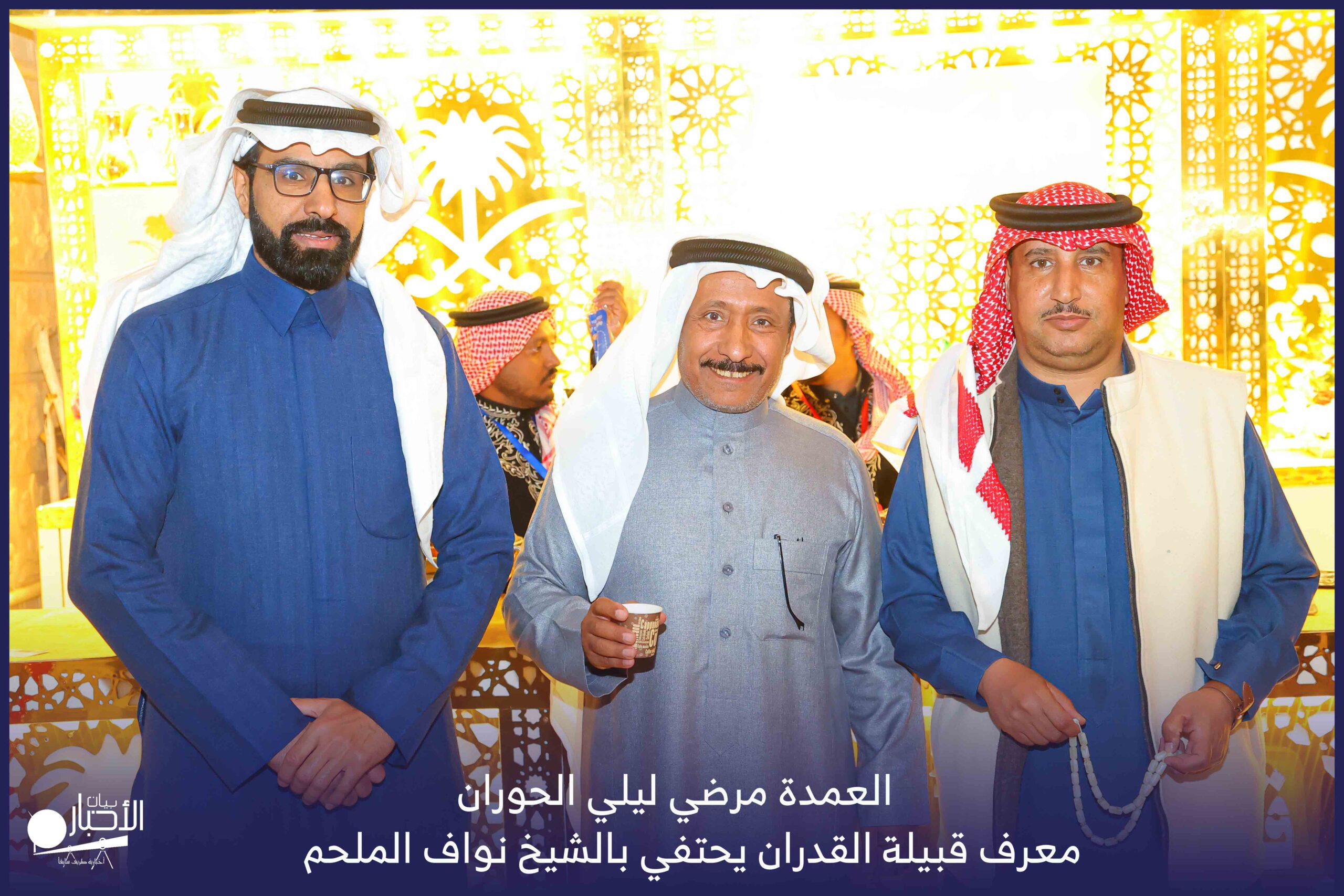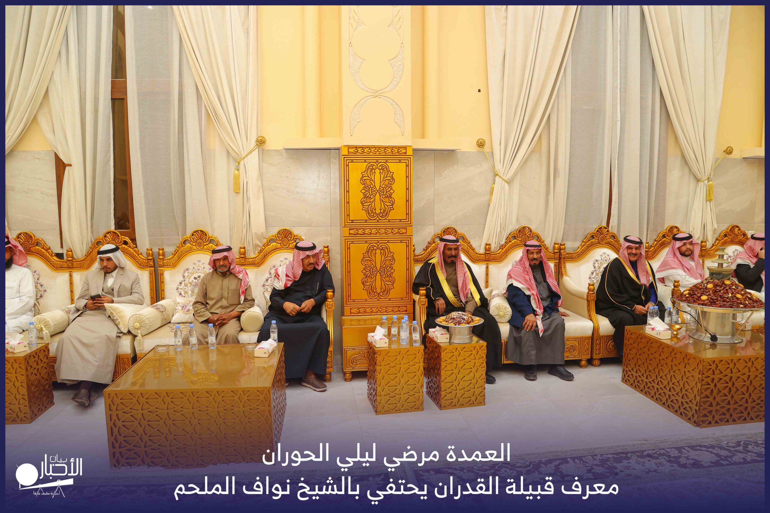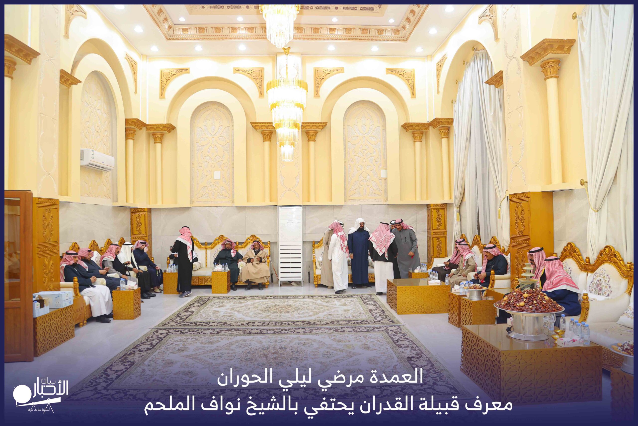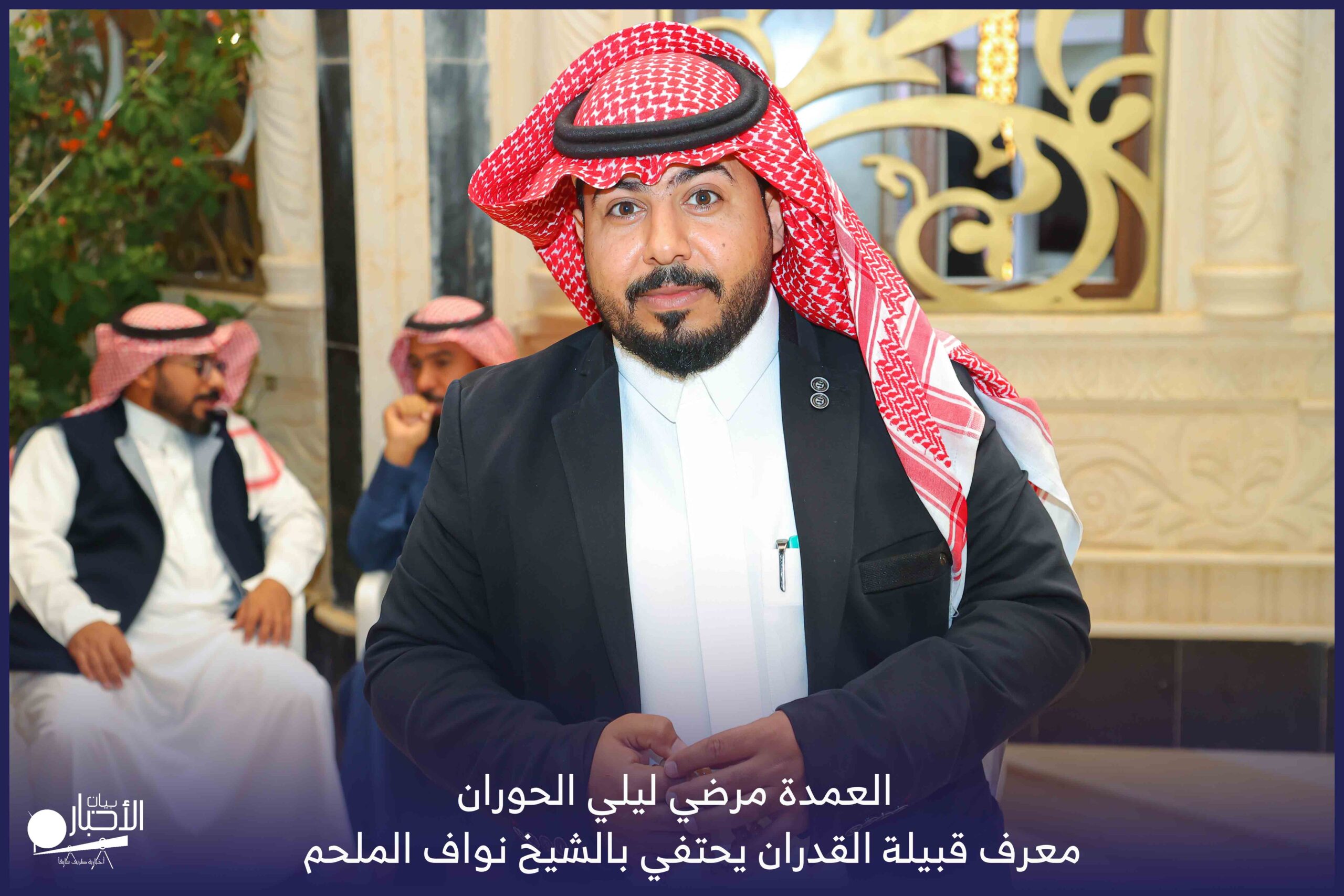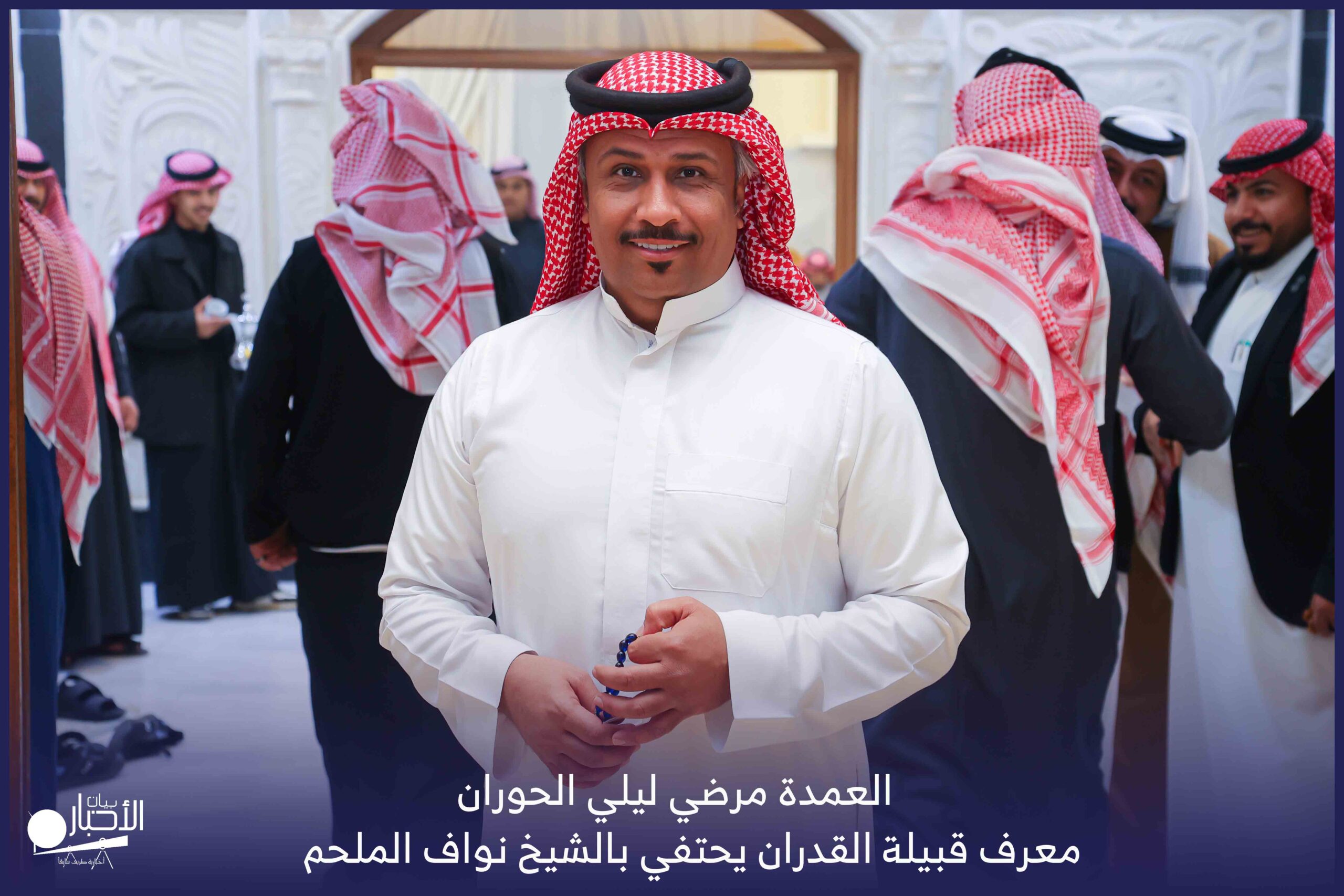 احتفى العمدة مرضي ليلي الحوران معرف قبيلة القدران بالشيخ نواف عبدالعزيز طراد الملحم، وذلك تزامناً مع زيارته لمحافظة طريف، وذلك وسط ترحيب كبير وحضور عدد من المشايخ ووجهاء المحافظة.