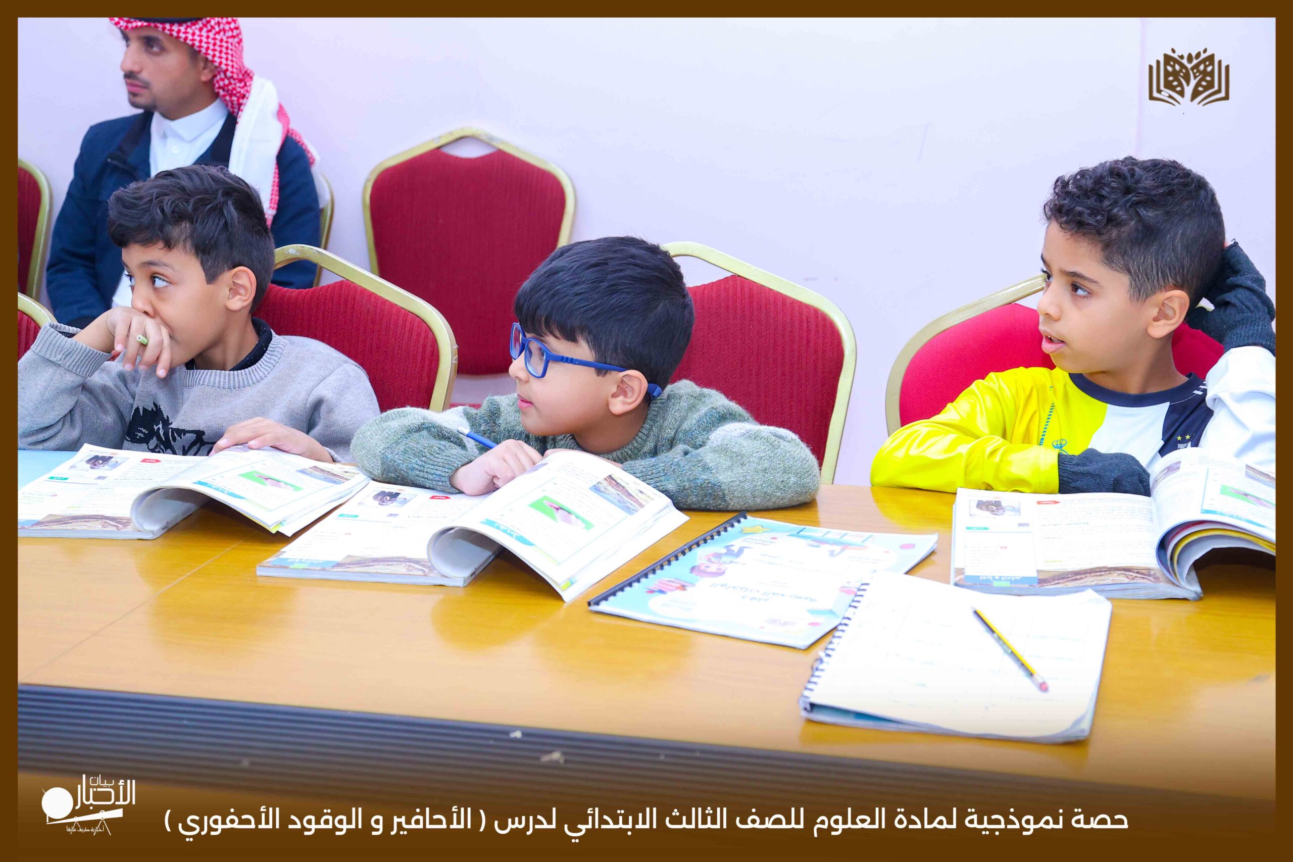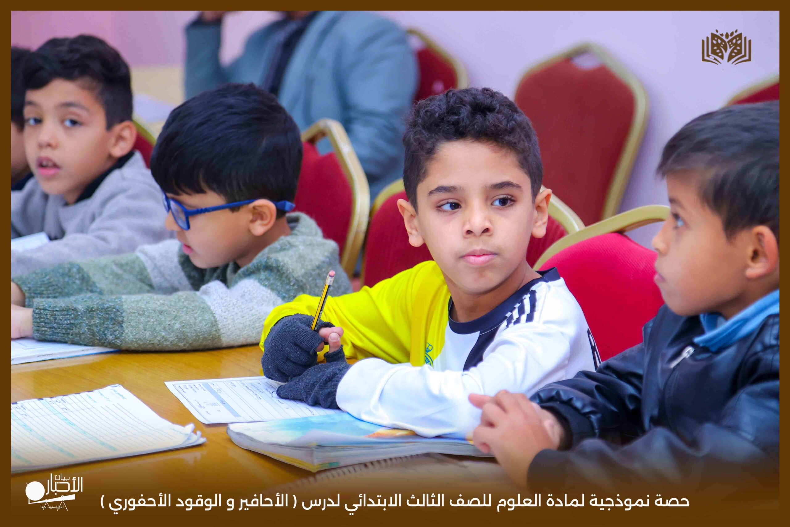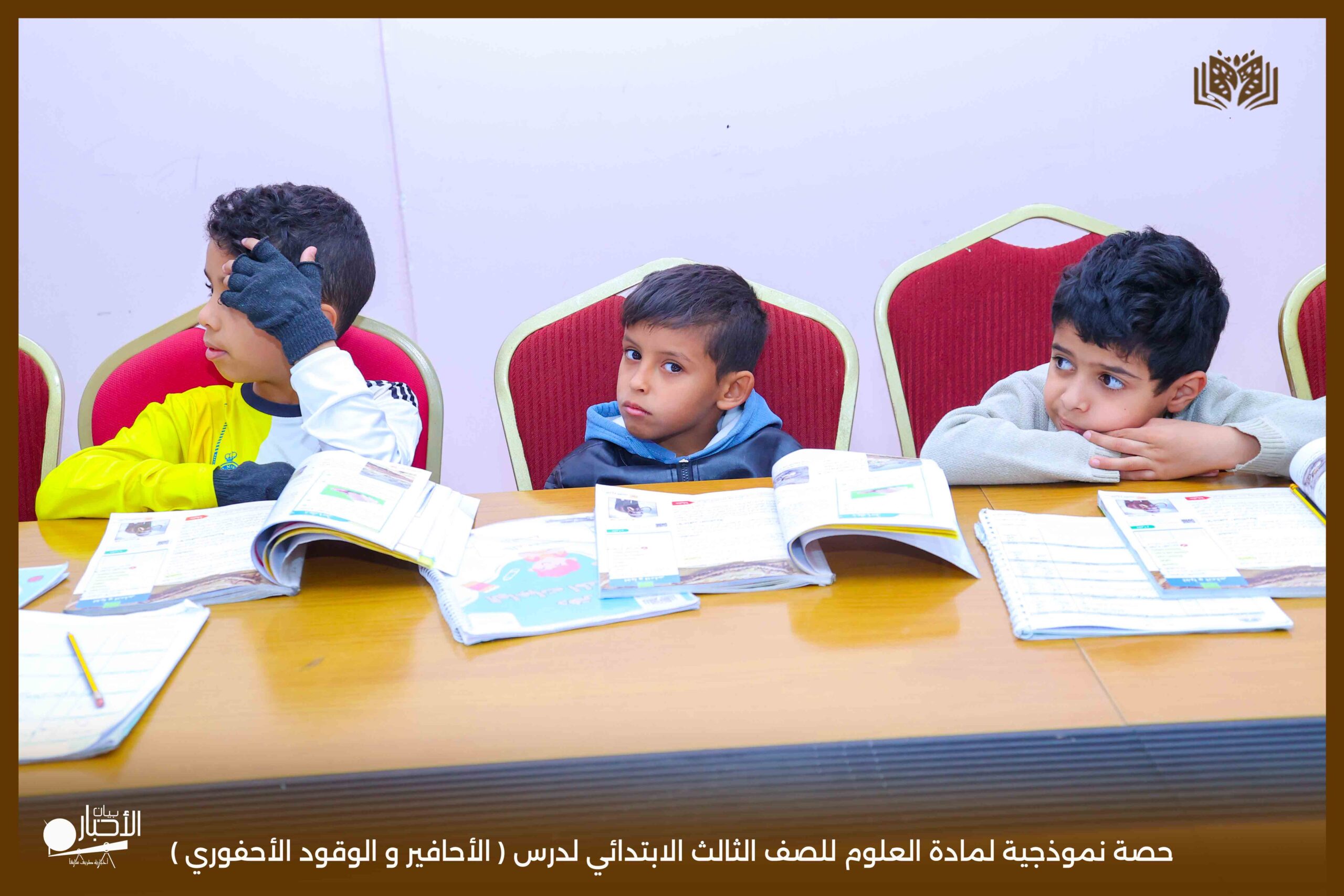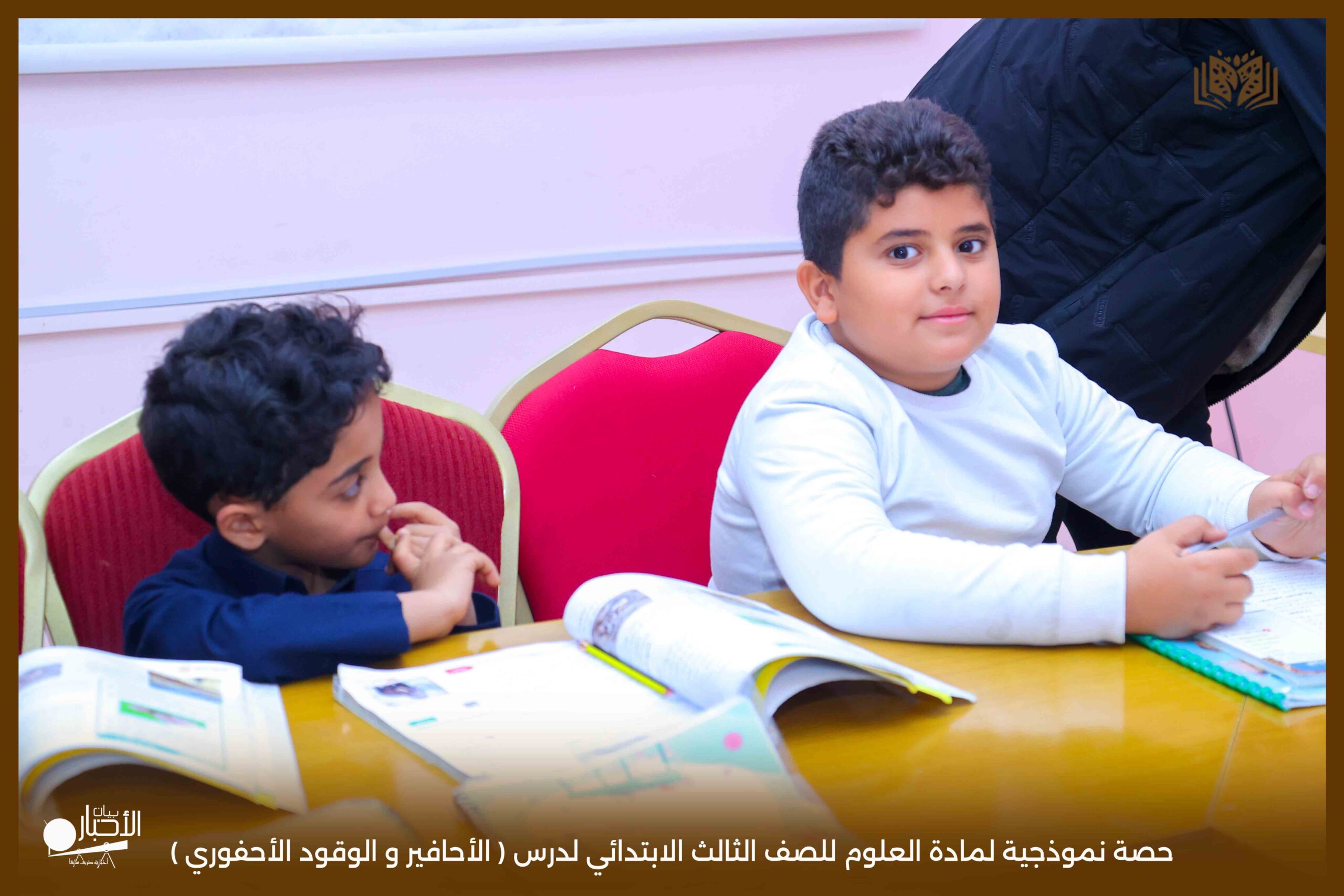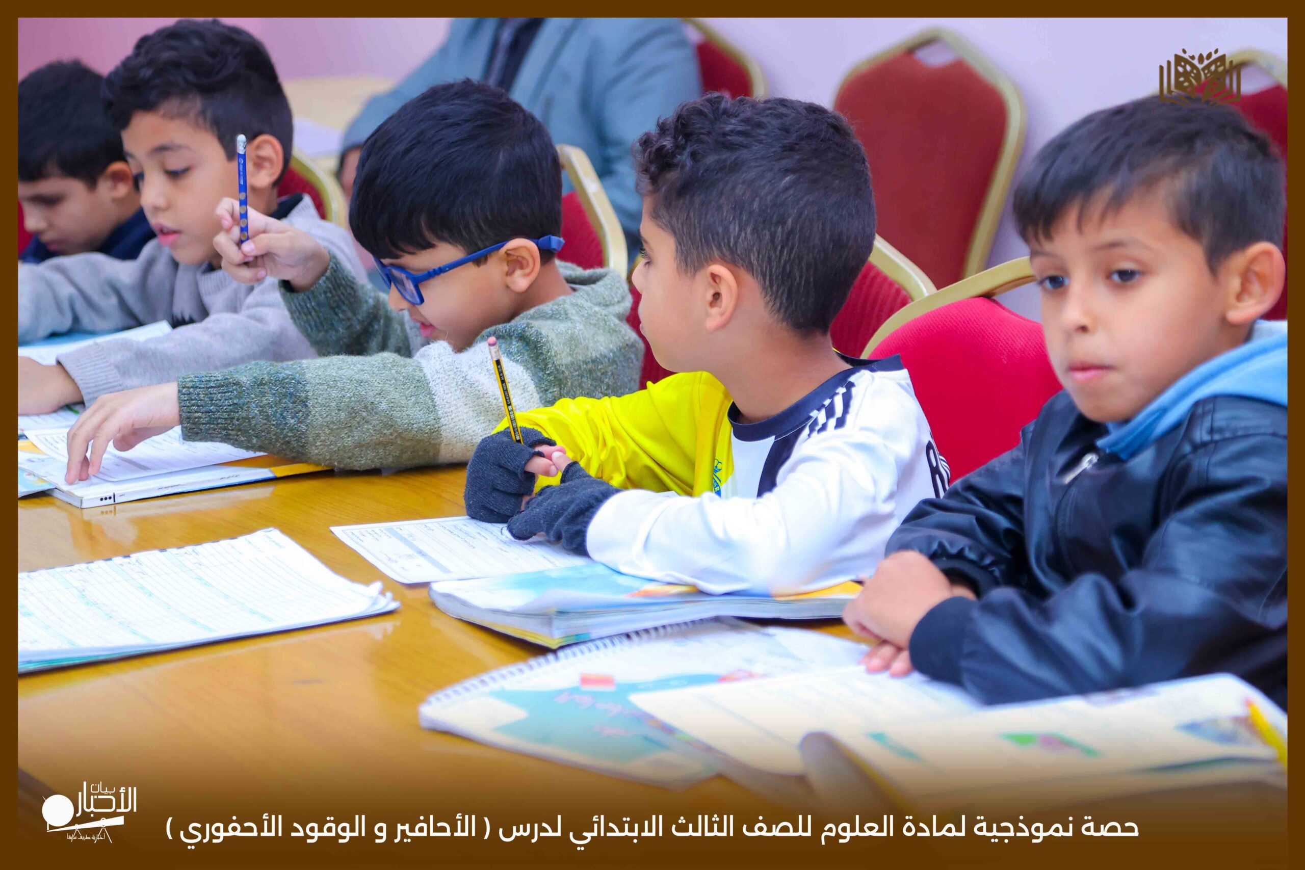 أقامت مدارس الوعد النموذجية حصة نموذجية لمادة العلوم للصف الثالث الابتدائي لدرس ( الأحافير و الوقود الأحفوري ) حيث استخدم المعلم استراتيجيات التعلم في التدريس ومنها ( التعلم النشط – العصف الذهني – المناقشة والحوار ) حيث تفاعل الطلاب مع المعلم أثناء الدرس تفاعلًا رائعًا ٠