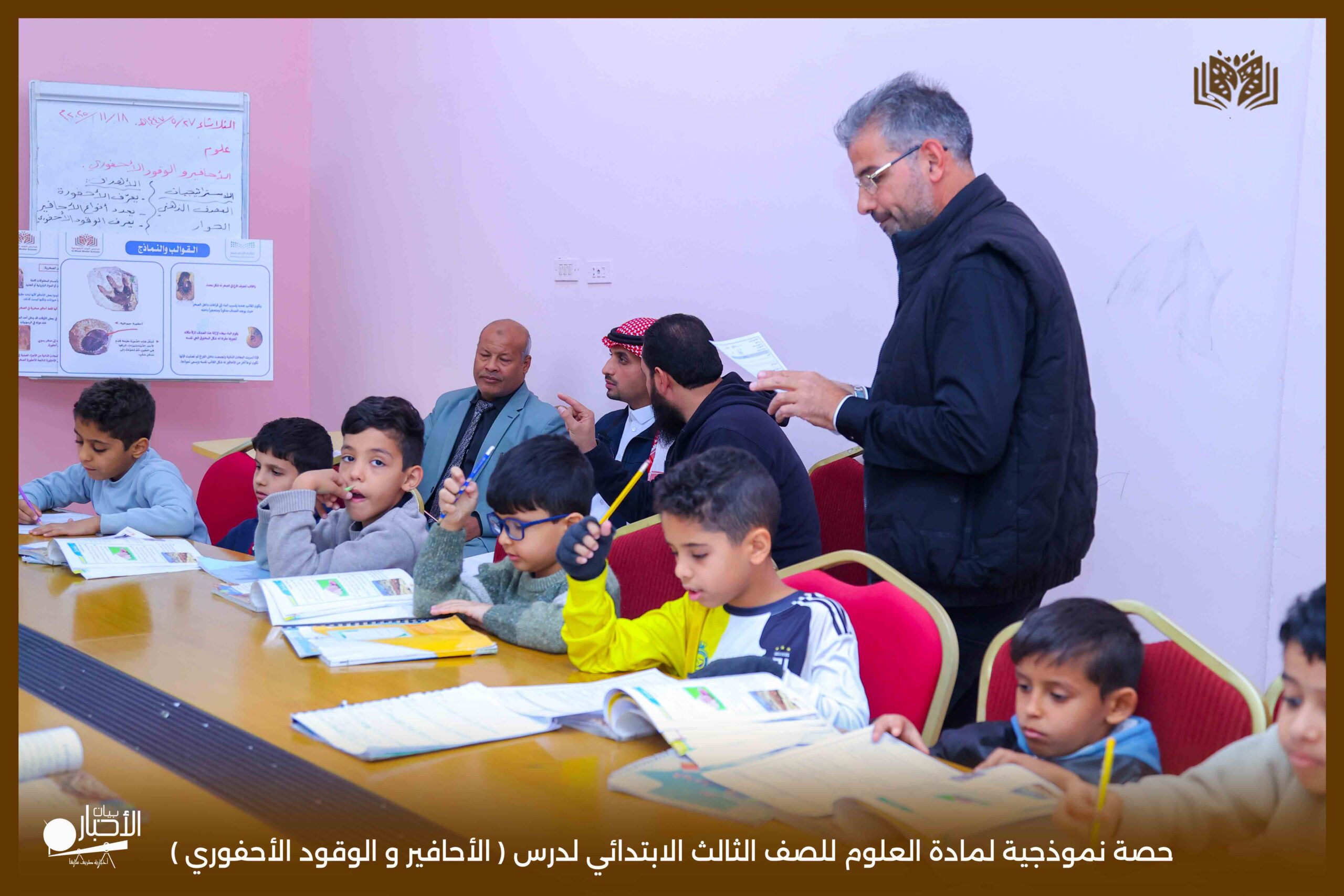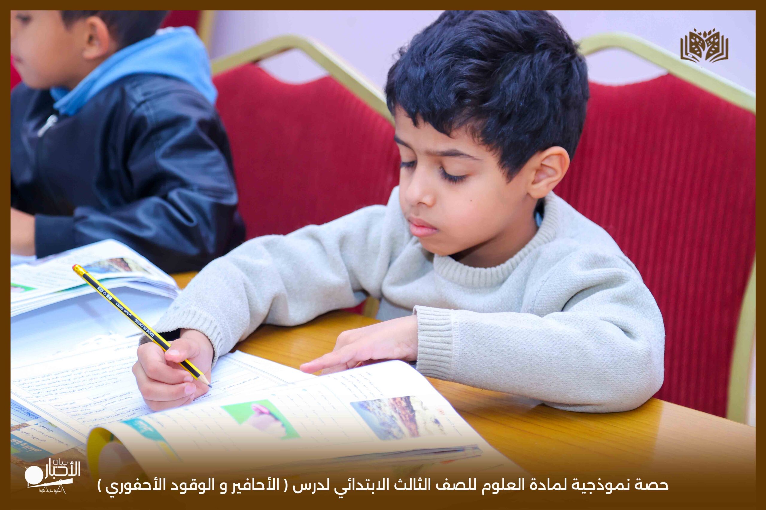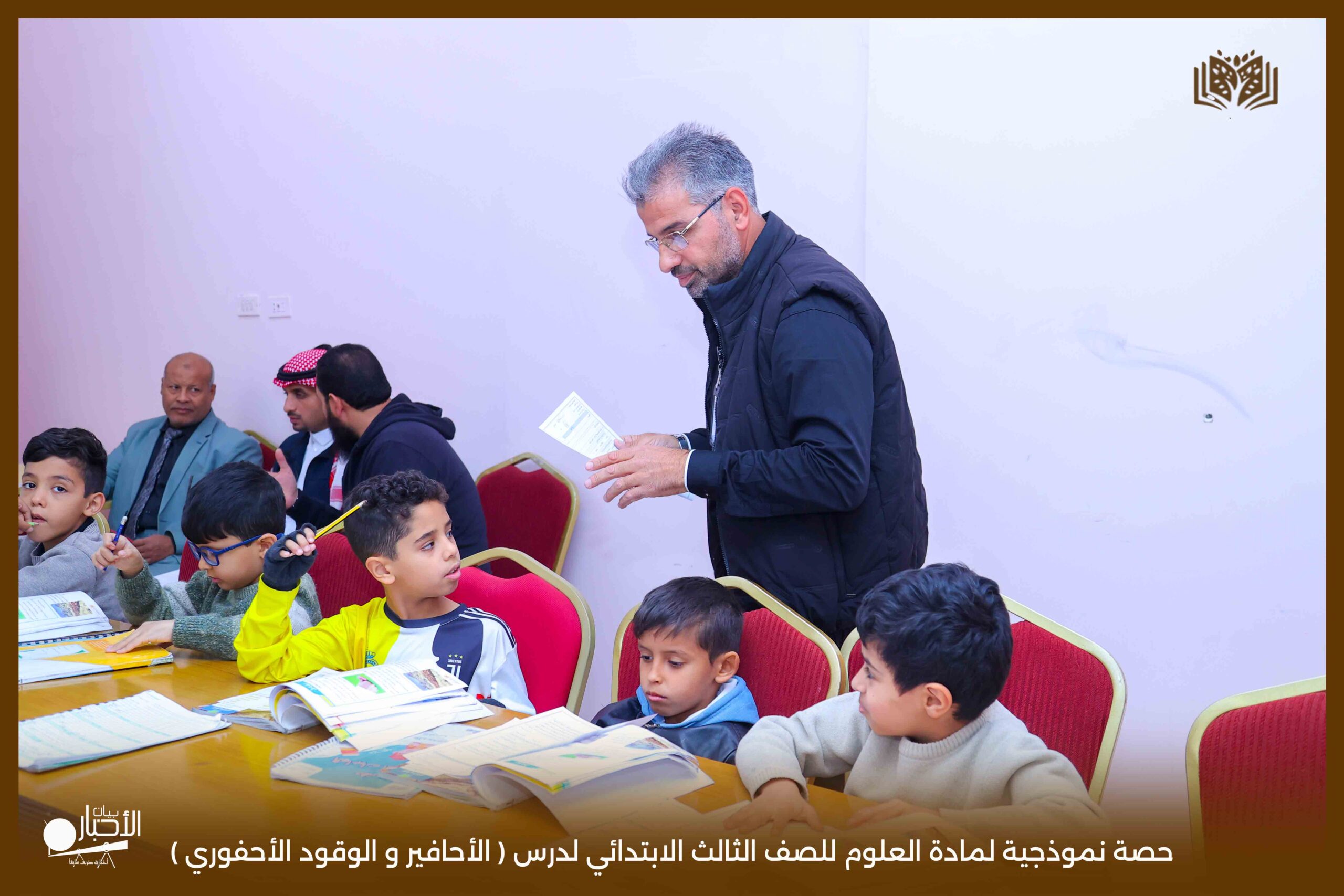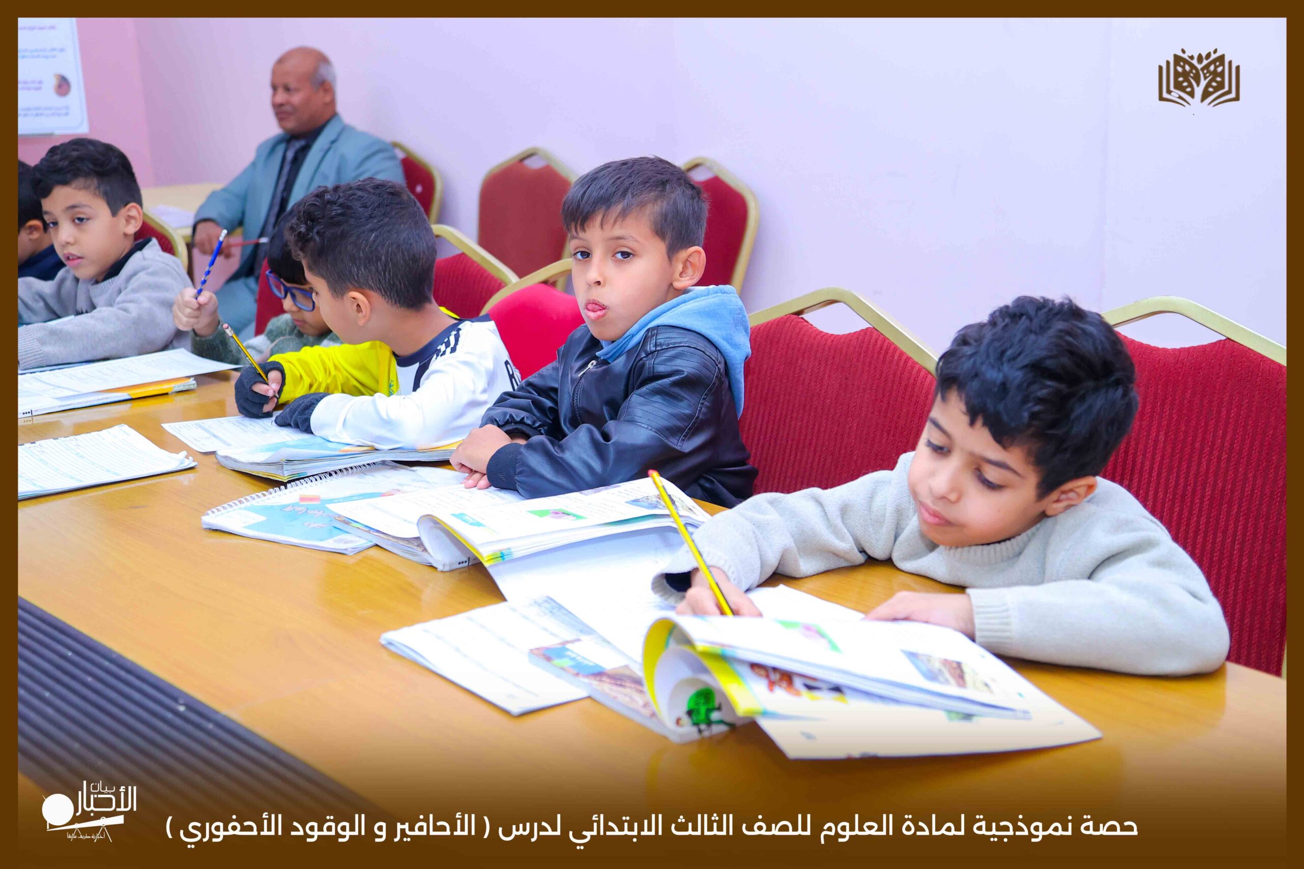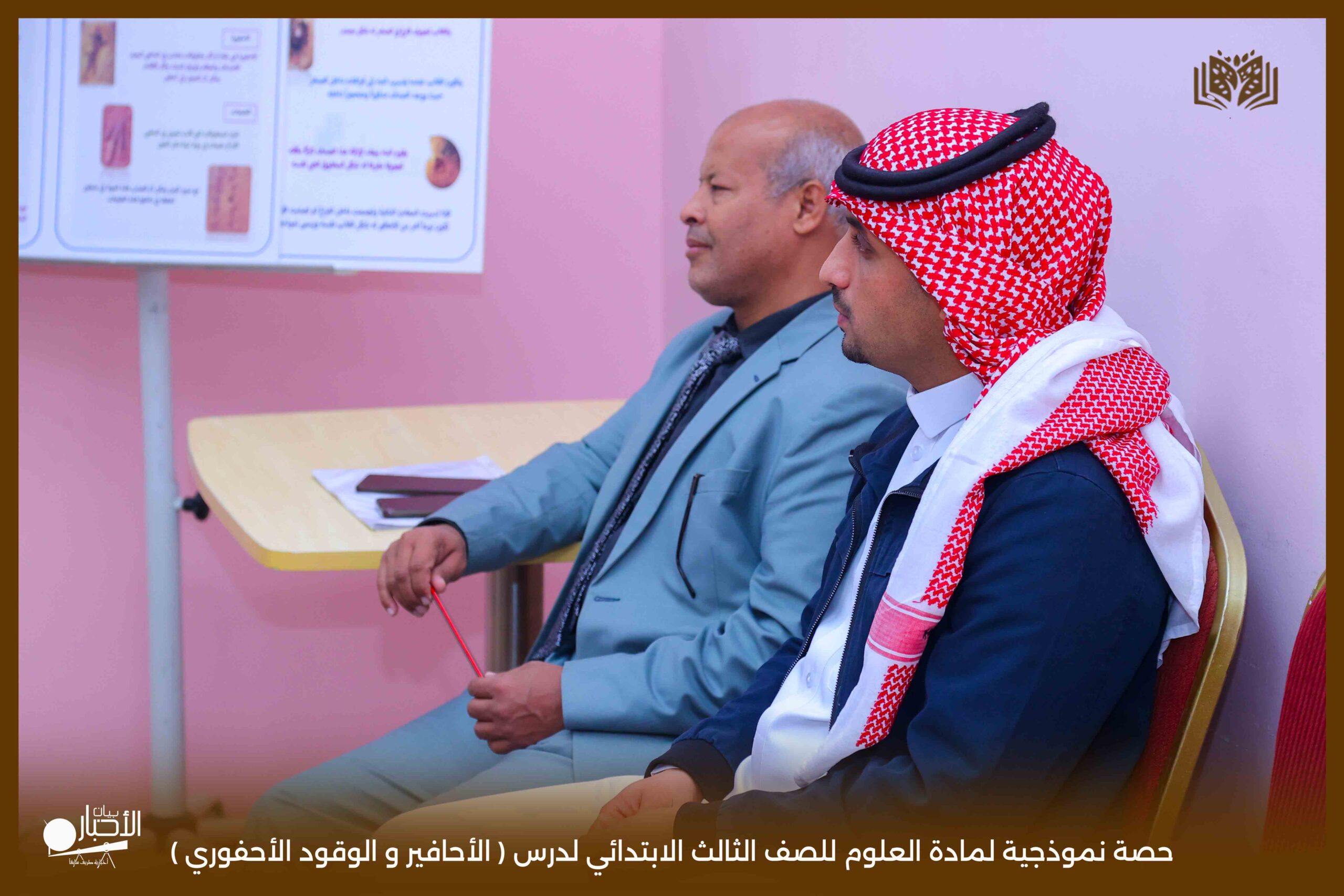 أقامت مدارس الوعد النموذجية حصة نموذجية لمادة العلوم للصف الثالث الابتدائي لدرس ( الأحافير و الوقود الأحفوري ) حيث استخدم المعلم استراتيجيات التعلم في التدريس ومنها ( التعلم النشط – العصف الذهني – المناقشة والحوار ) حيث تفاعل الطلاب مع المعلم أثناء الدرس تفاعلًا رائعًا ٠