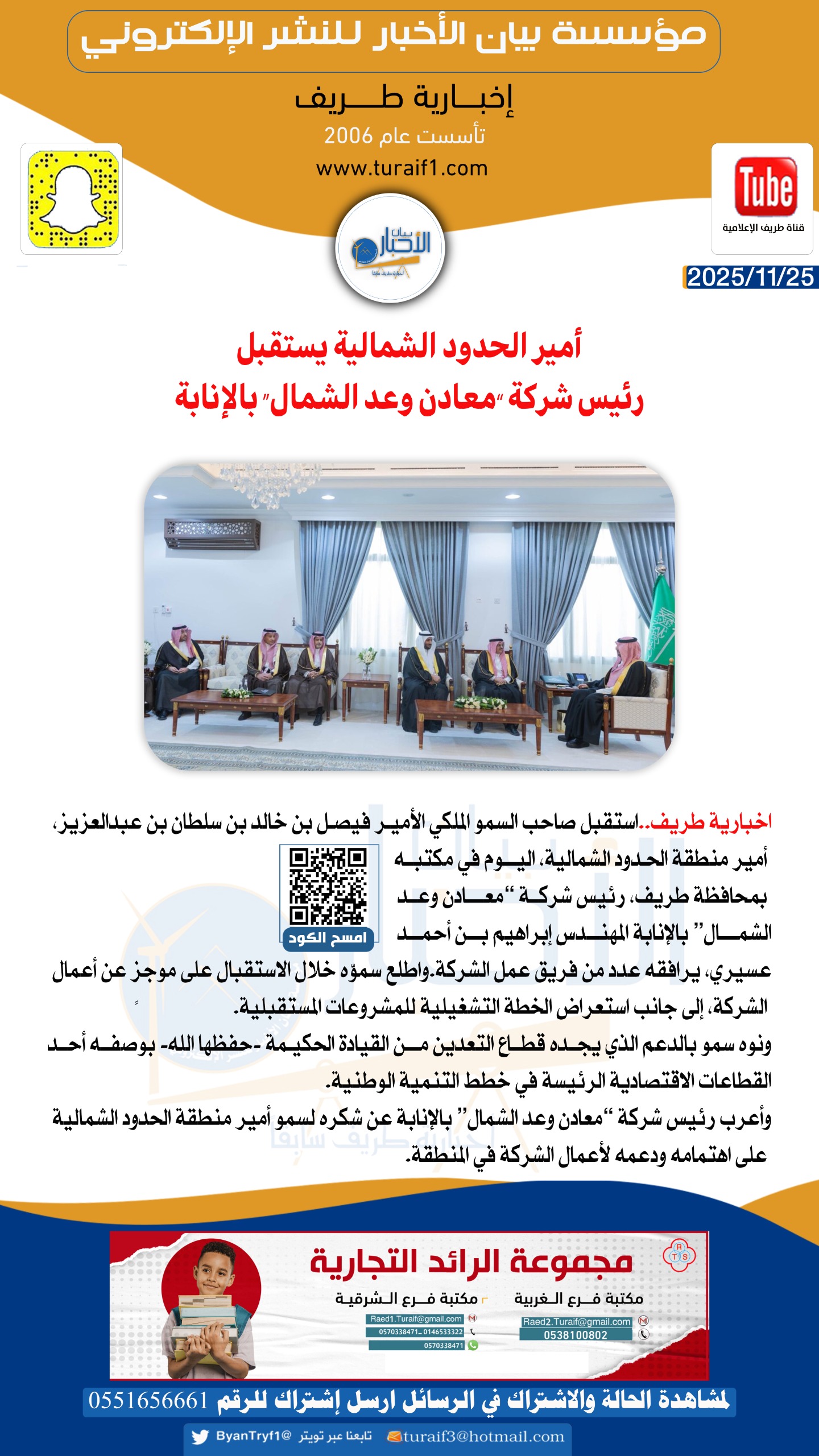 turaif3@hotmail.com للإعلانات والإشتراكات جوال 0551656661