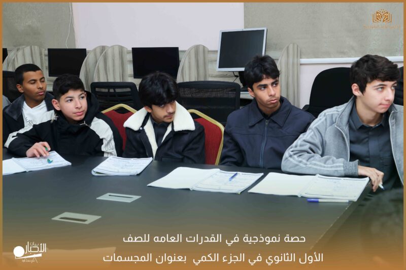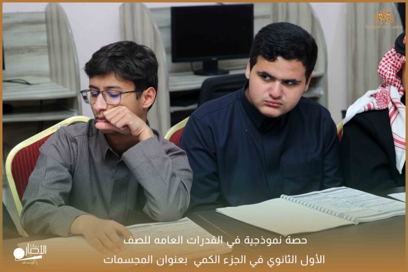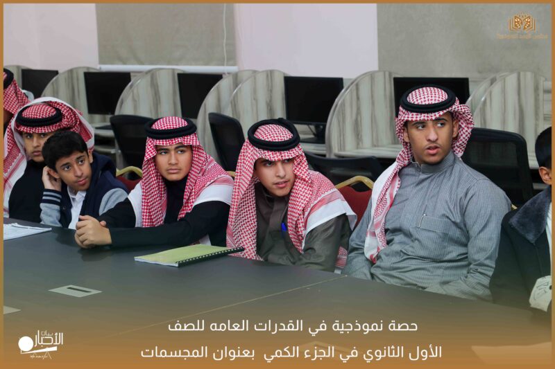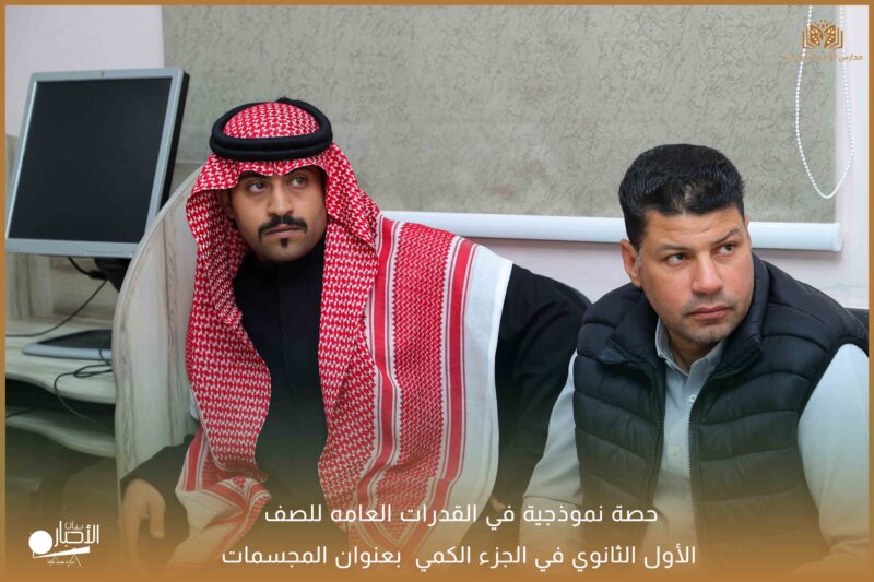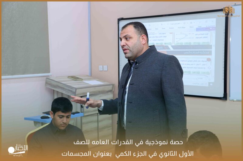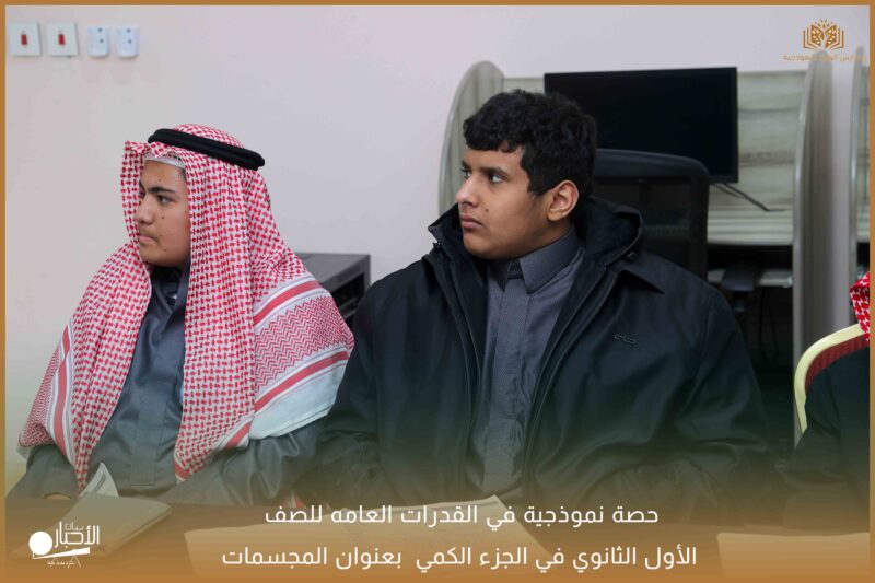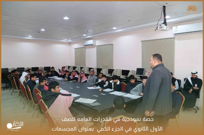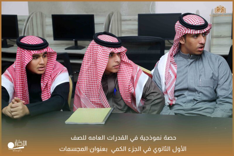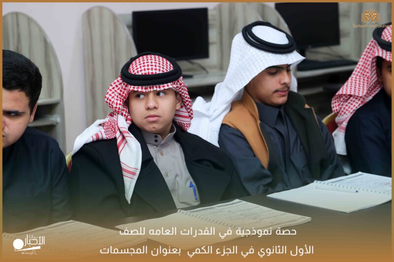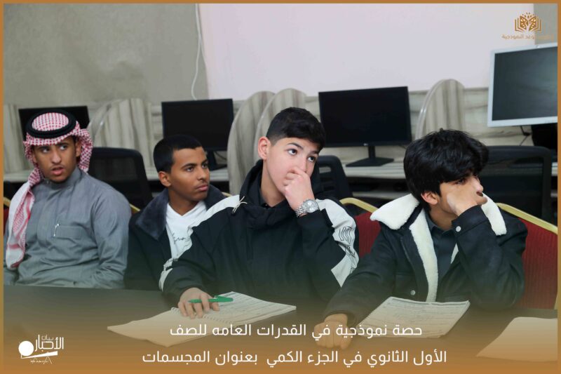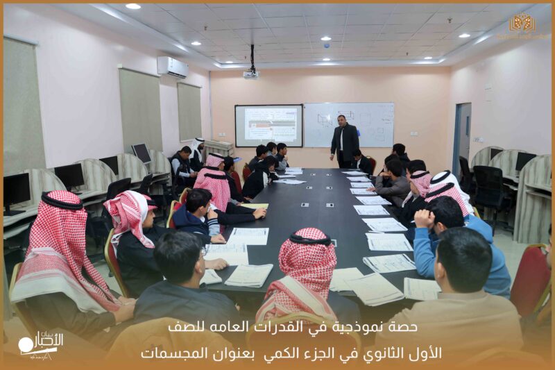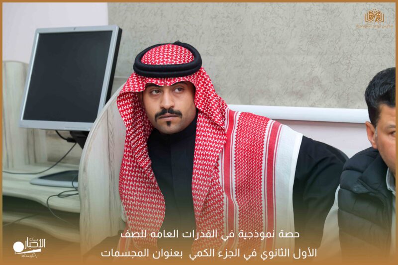 قدمت اليوم مدارس الوعد النموذجية للمرحلة الثانوية حصة نموذجية في القدرات العامه للصف الأول الثانوي في الجزء الكمي كانت بعنوان المجسمات قدم الحصة المعلم أنور إسماعيل في حضور مدير المدرسة الأستاذ عبد الرحمن حمود الرويلي والمشرف الفني الأستاذ محمد سعد.