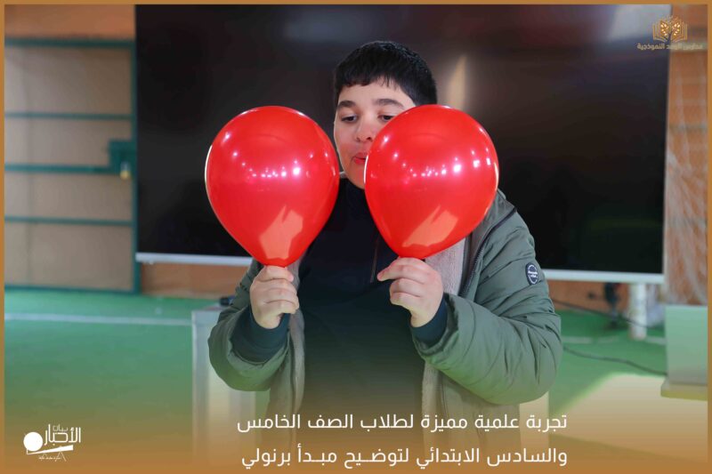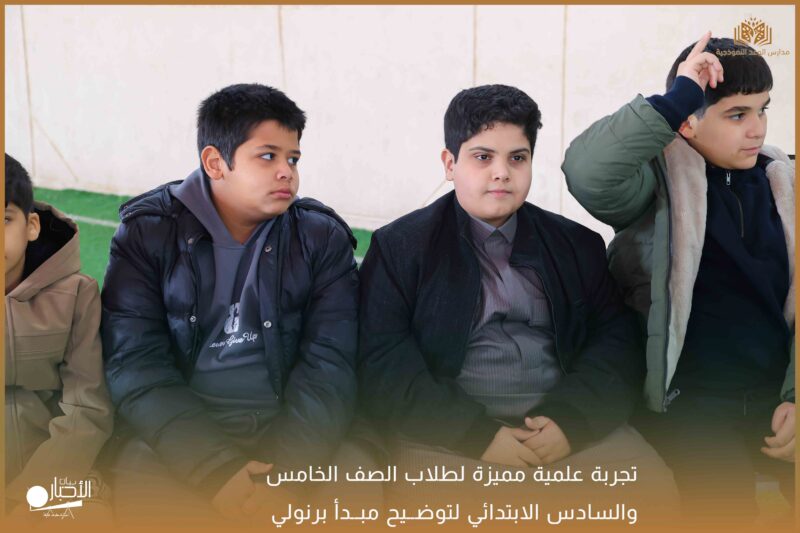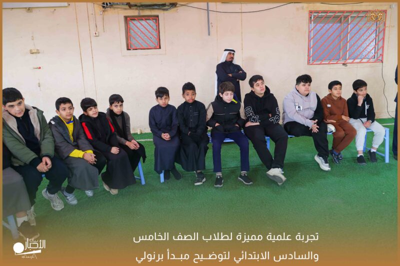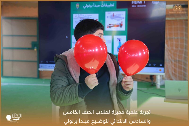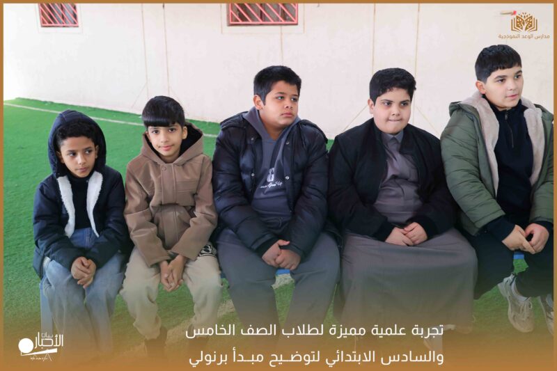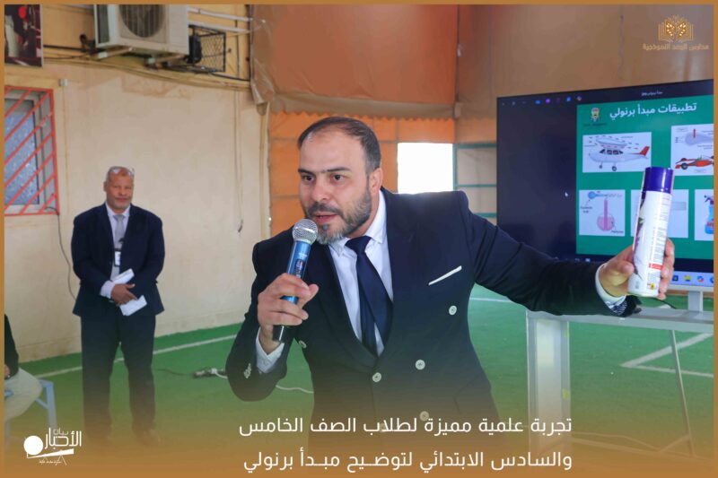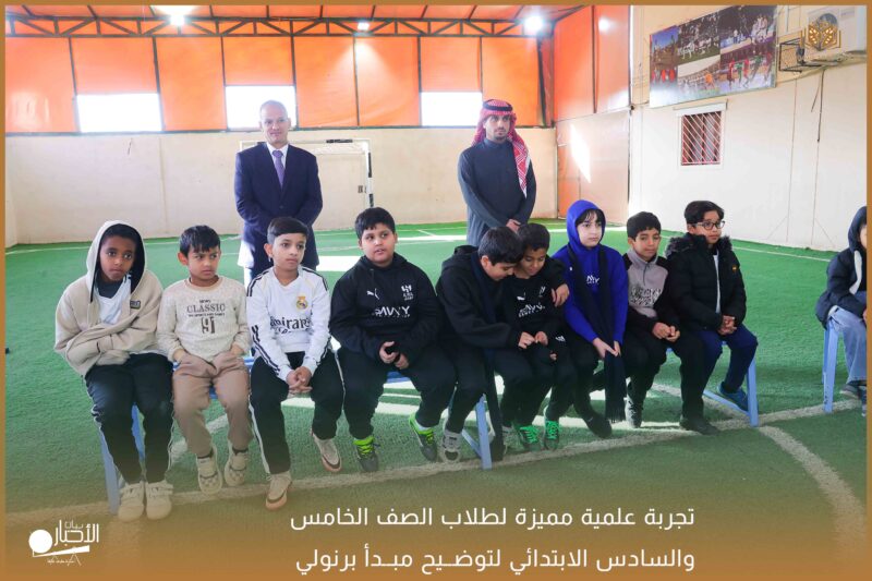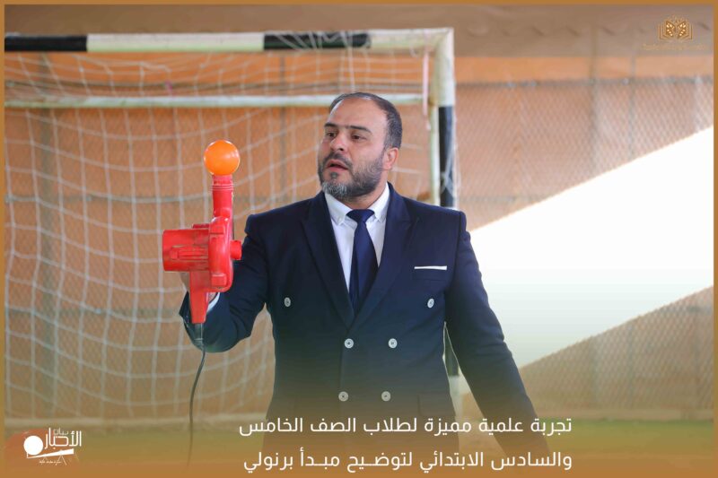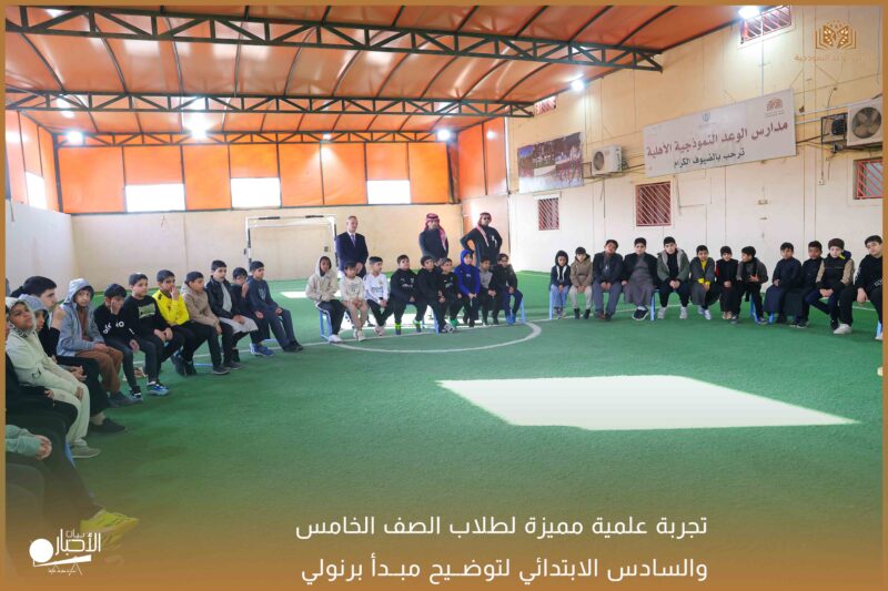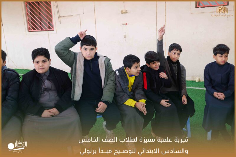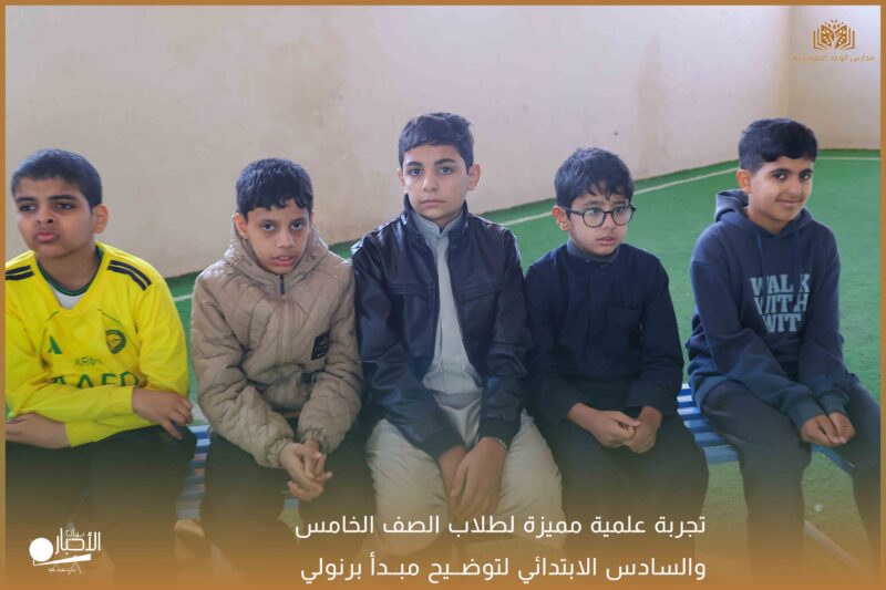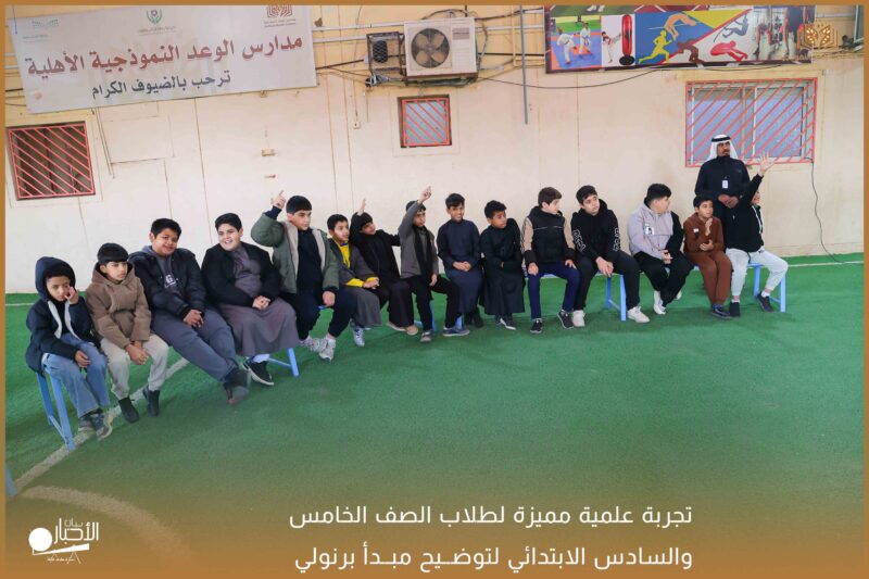 أقامت مدارس الوعد النموذجية الأهلية تجربة علمية مميزة لطلاب الصف الخامس والسادس الابتدائي لتوضيح مبدأ برنولي، وتهدف التجربة إلى تعريف الطلاب بكيفية تأثير سرعة الهواء على الضغط، وهو المبدأ الذي يفسر العديد من الظواهر مثل ارتفاع الطائرات وانحناء مسار الكرة في الألعاب الرياضية ٠