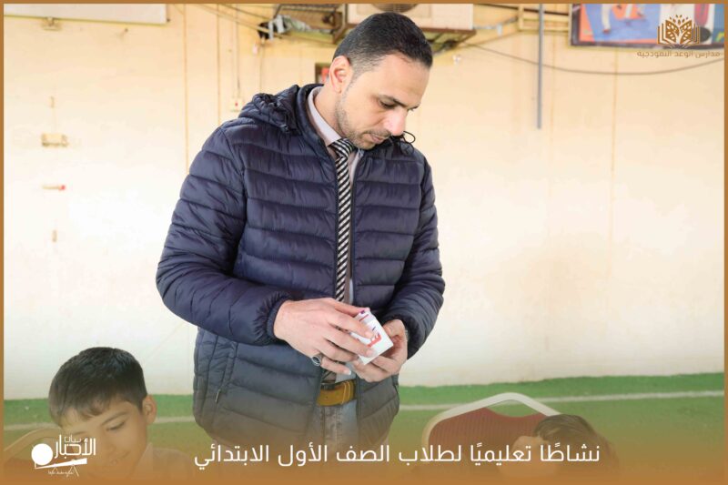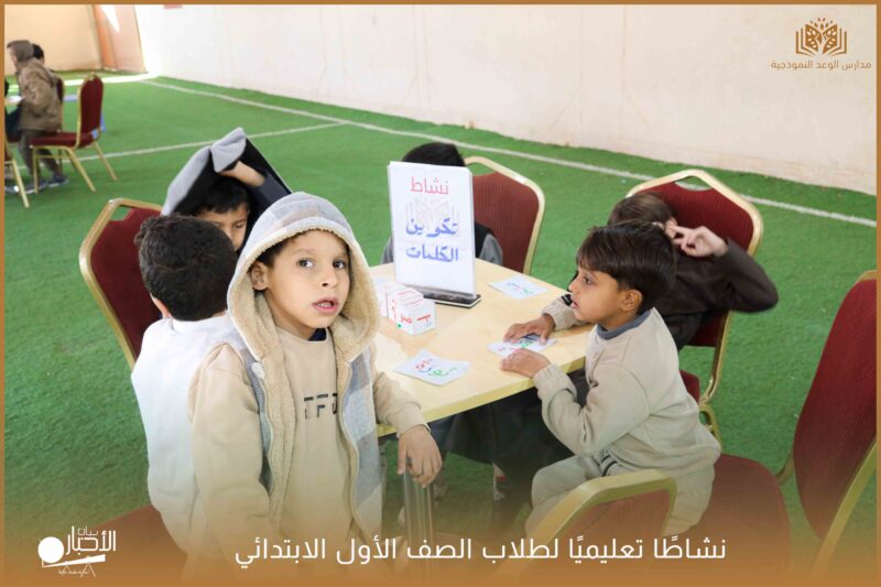 أقامت مدارس الوعد النموذجية الأهلية نشاطًا تعليميًا لطلاب الصف الأول الابتدائي حيث تم تقسيم الطلاب إلى مجموعات تنافسوا في سرعة تكوين الكلمات وكذلك القراءة السريعة للكلمات ومدى إتقان الطلاب للمهارات، جاء ذلك من إعداد وتنفيذ المعلم المتميز الأستاذ عصام النجار والأستاذ سامح أحمد تحت إشراف مدير المدرسة الأستاذ إسماعيل صالح العنزي والمشرف الفني للصفوف الأولية الأستاذ عبدالعظيم ماضي ٠ هذا وتتمنى إدارة المدارس دوام التوفيق والنجاح لأبنائها الطلاب ٠