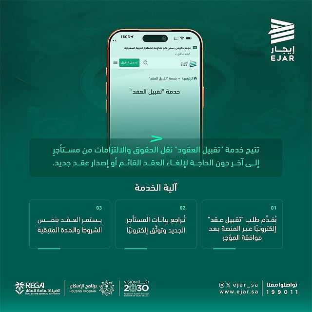 - تقديم طلب تقبيل العقد إلكترونيًا بعد موافقة المؤجر.