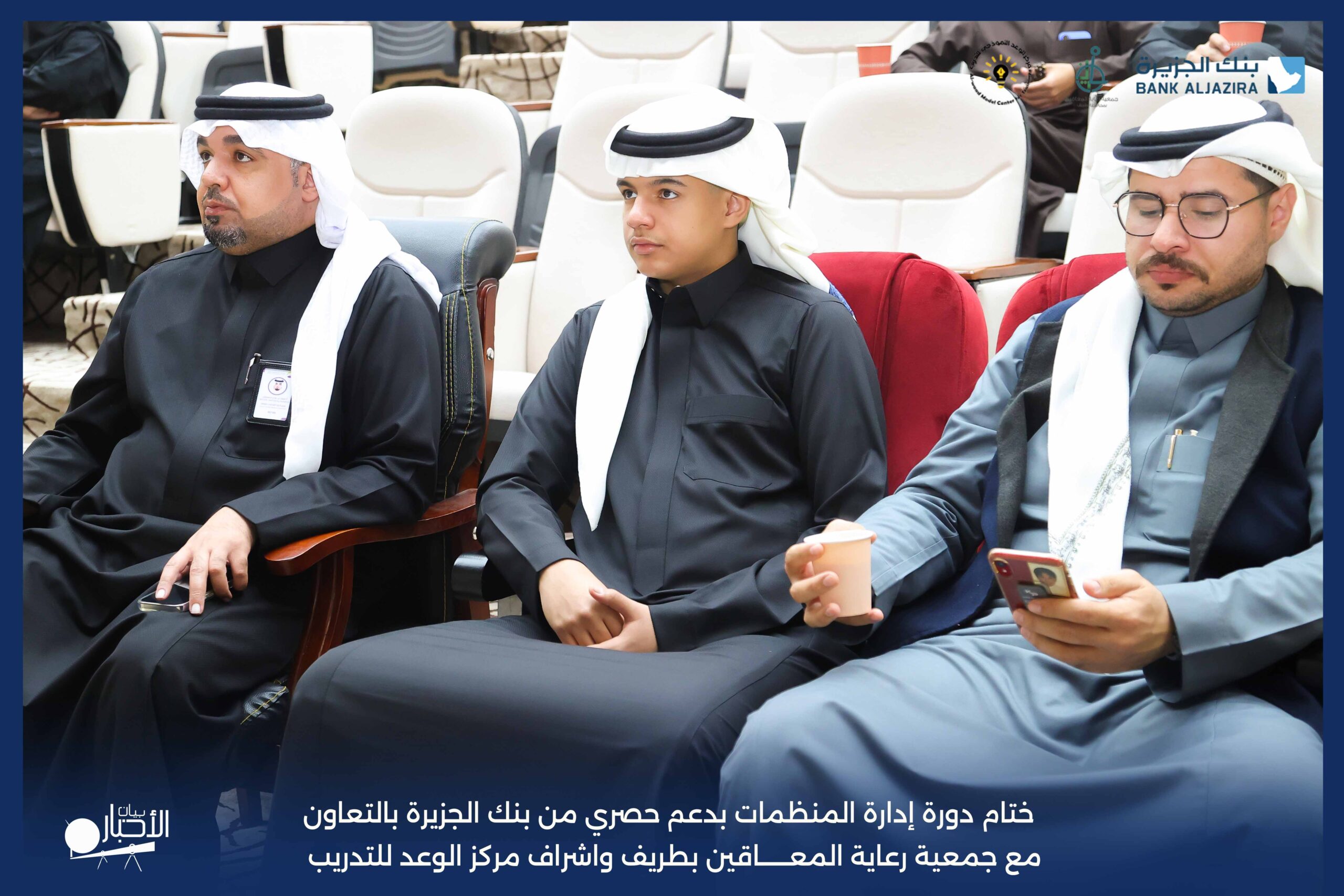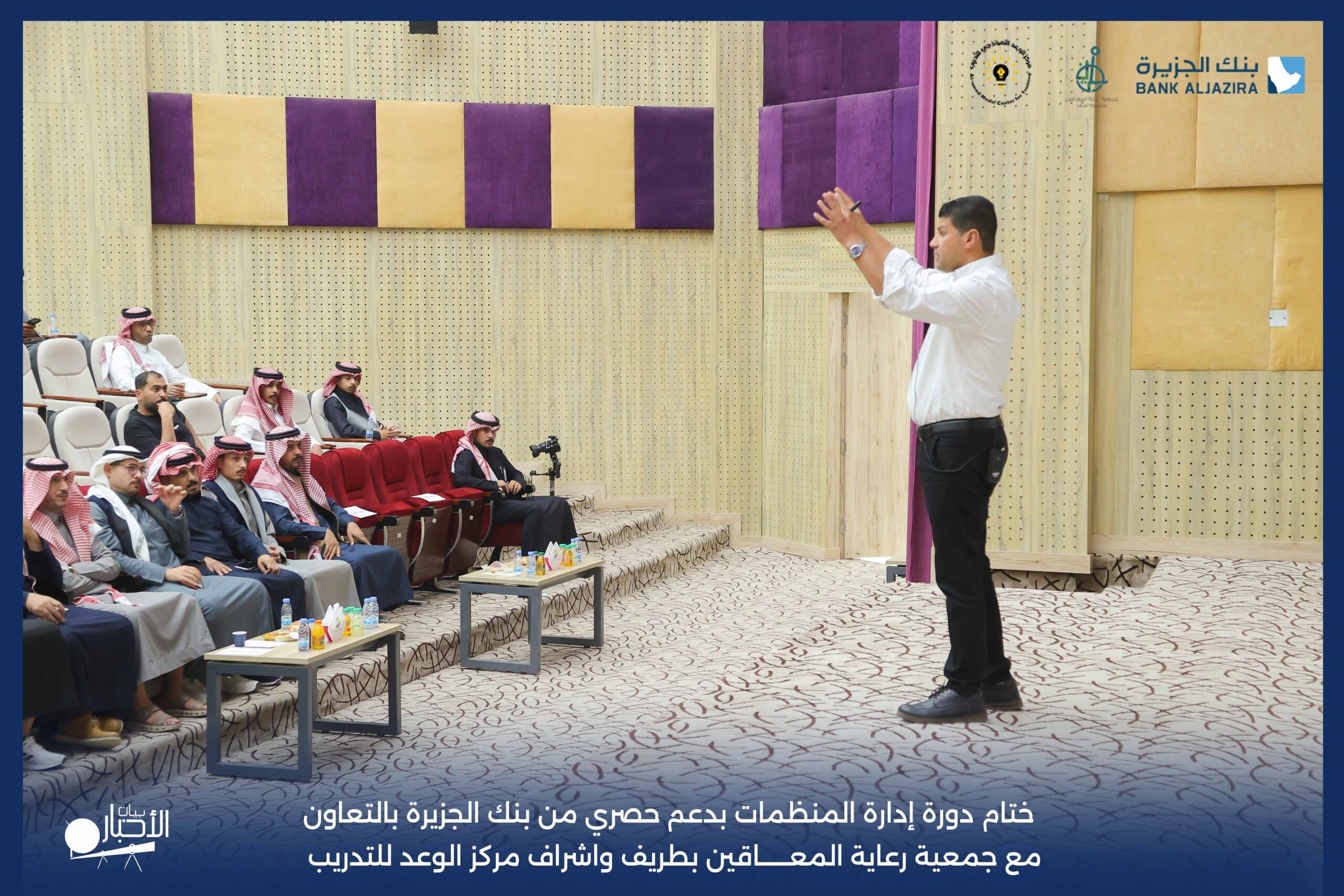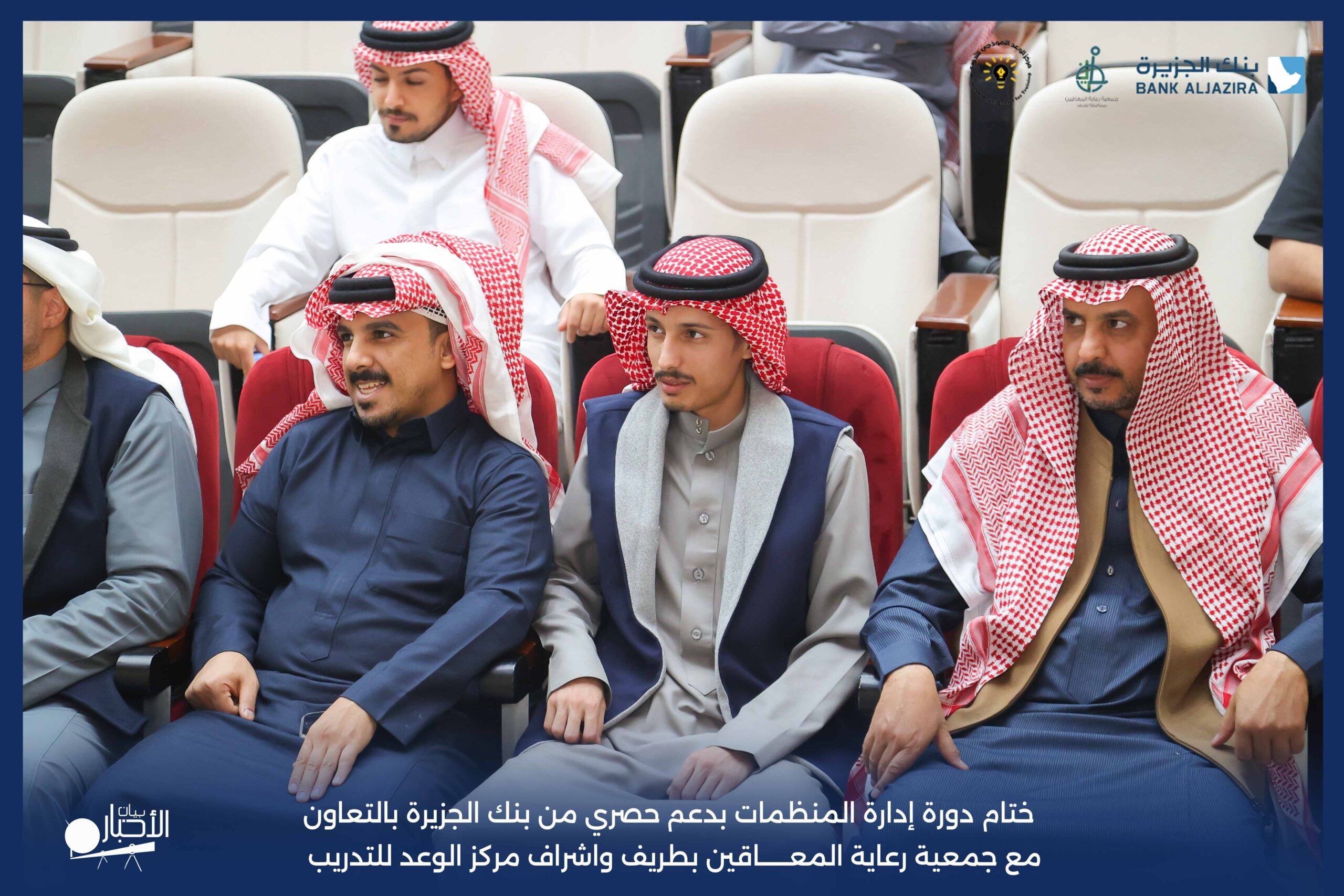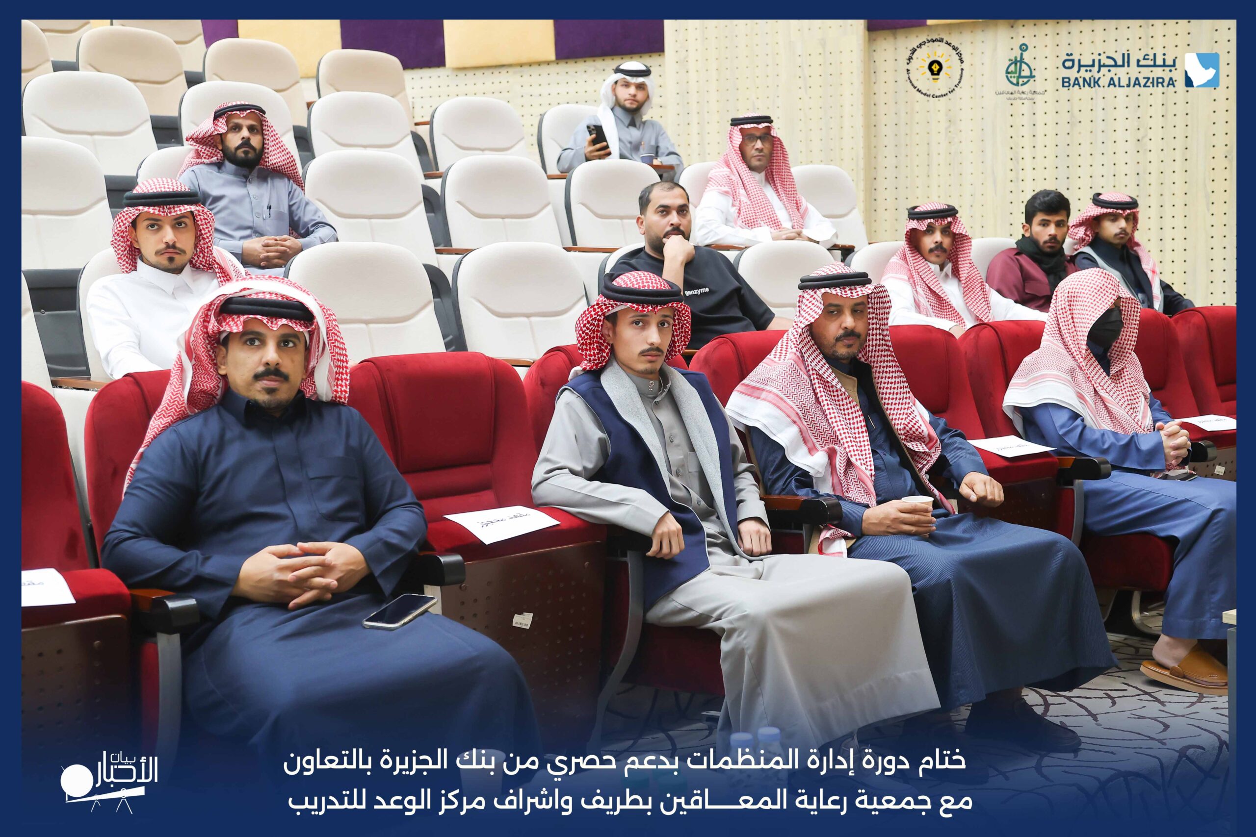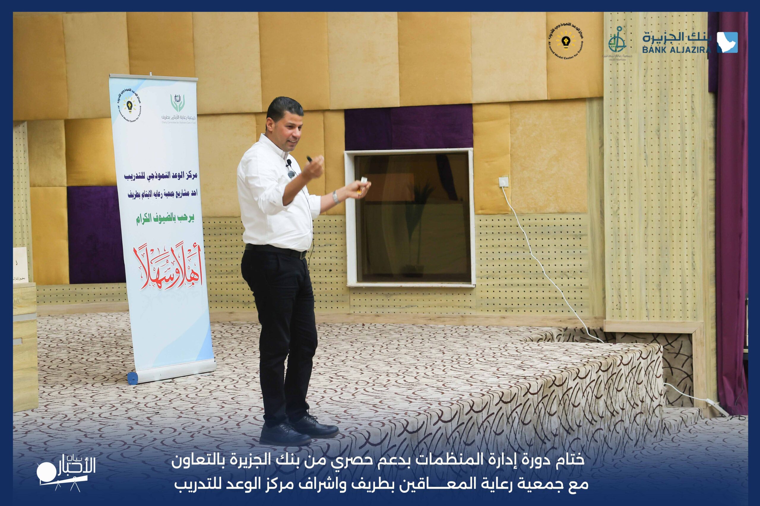نفذ مركز الوعد النموذجي للتدريب دورة إدارة المنظمات الرائدة وكانت الدورة مجانية لجميع أهالي مدينة عرعر ، وذلك بدعم حصري من بنك الجزيرة بالتعاون مع جمعية رعاية المعاقين بطريف