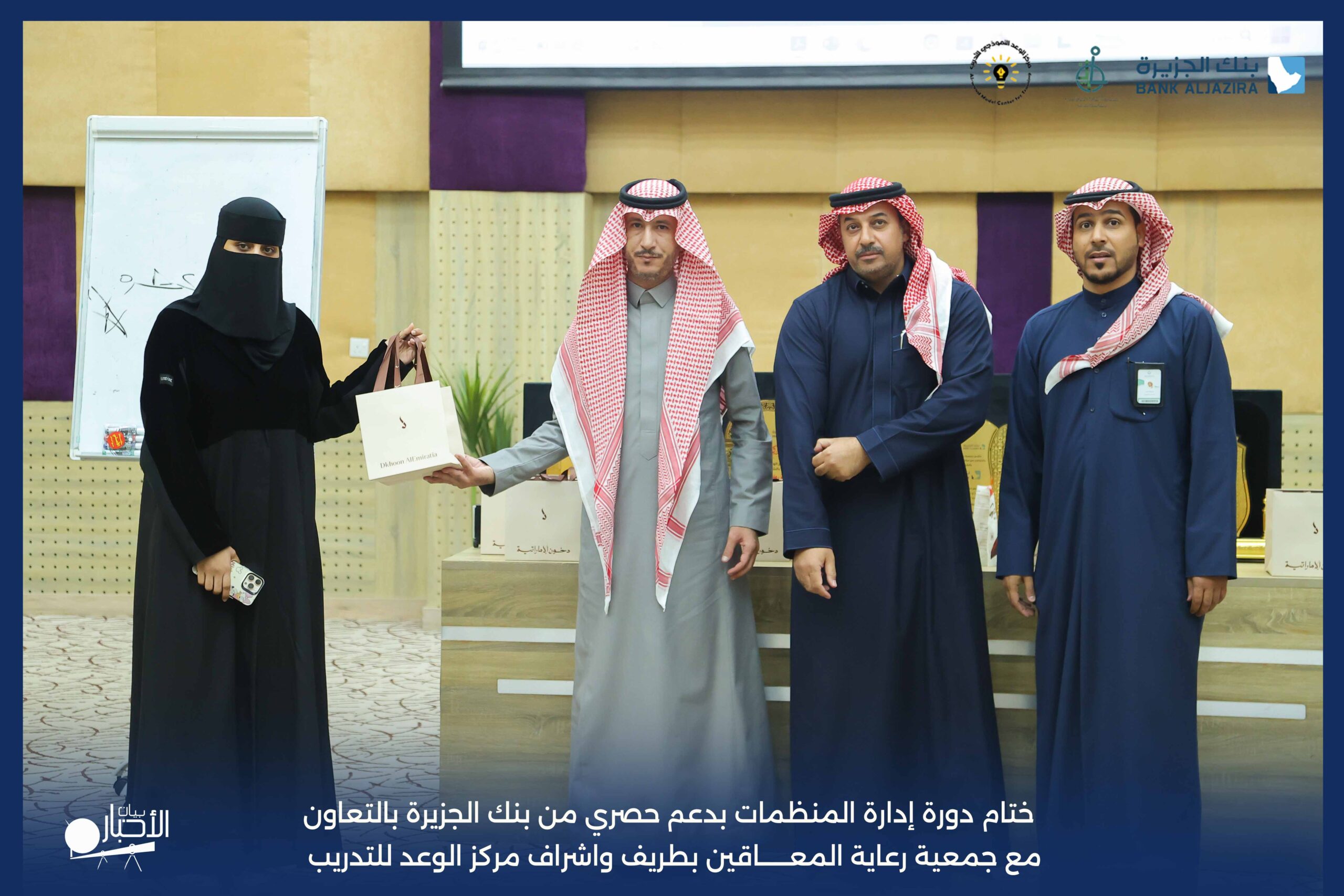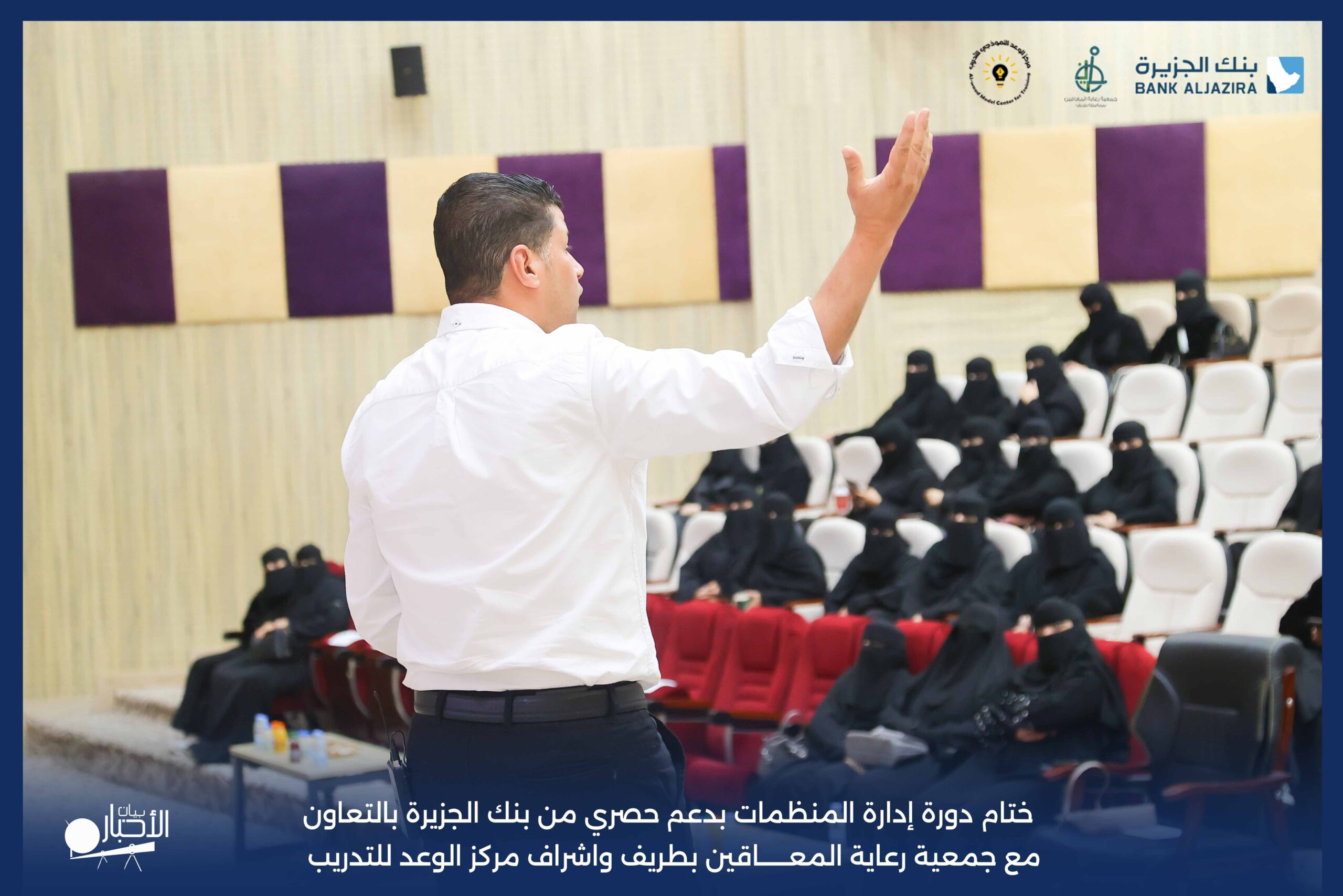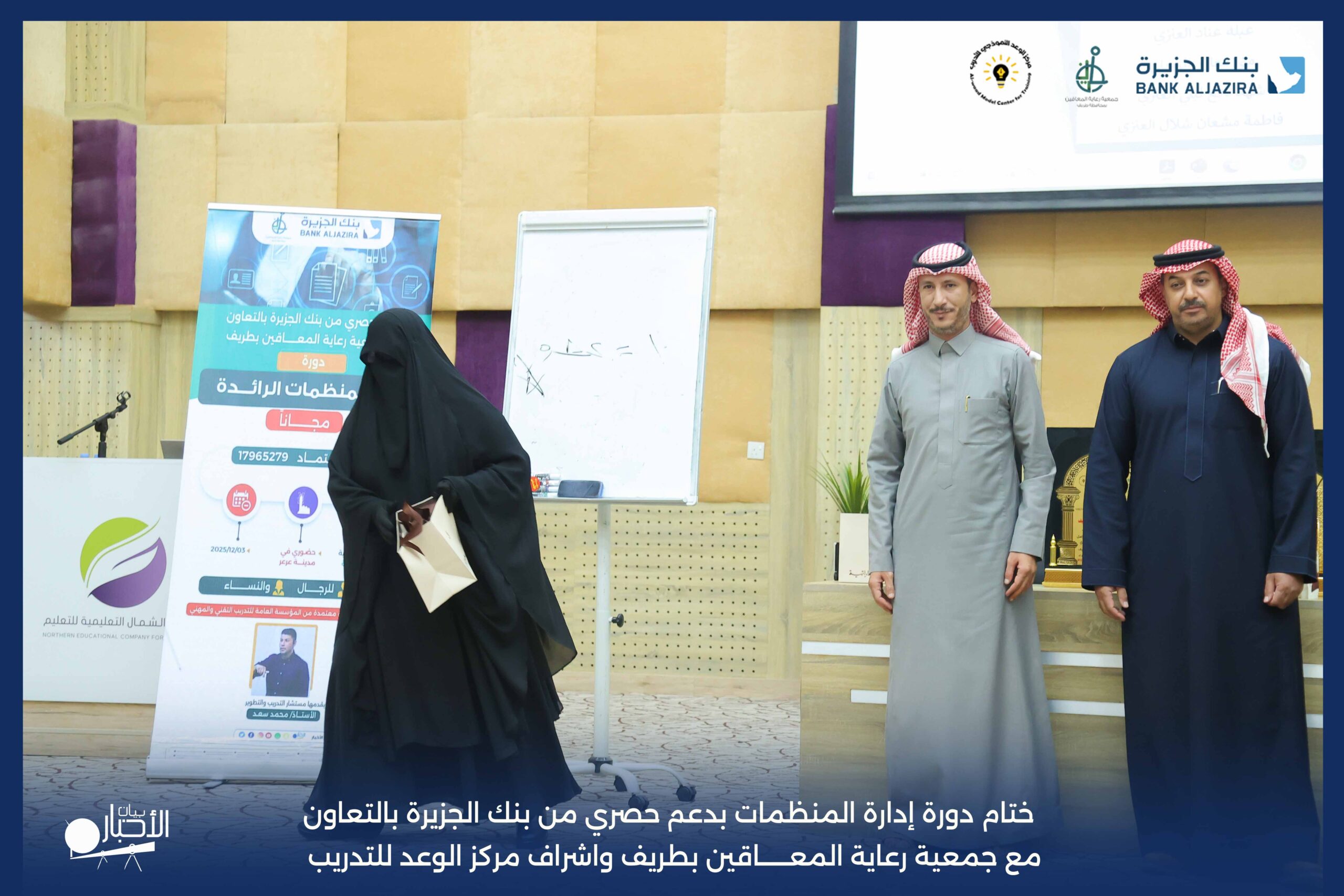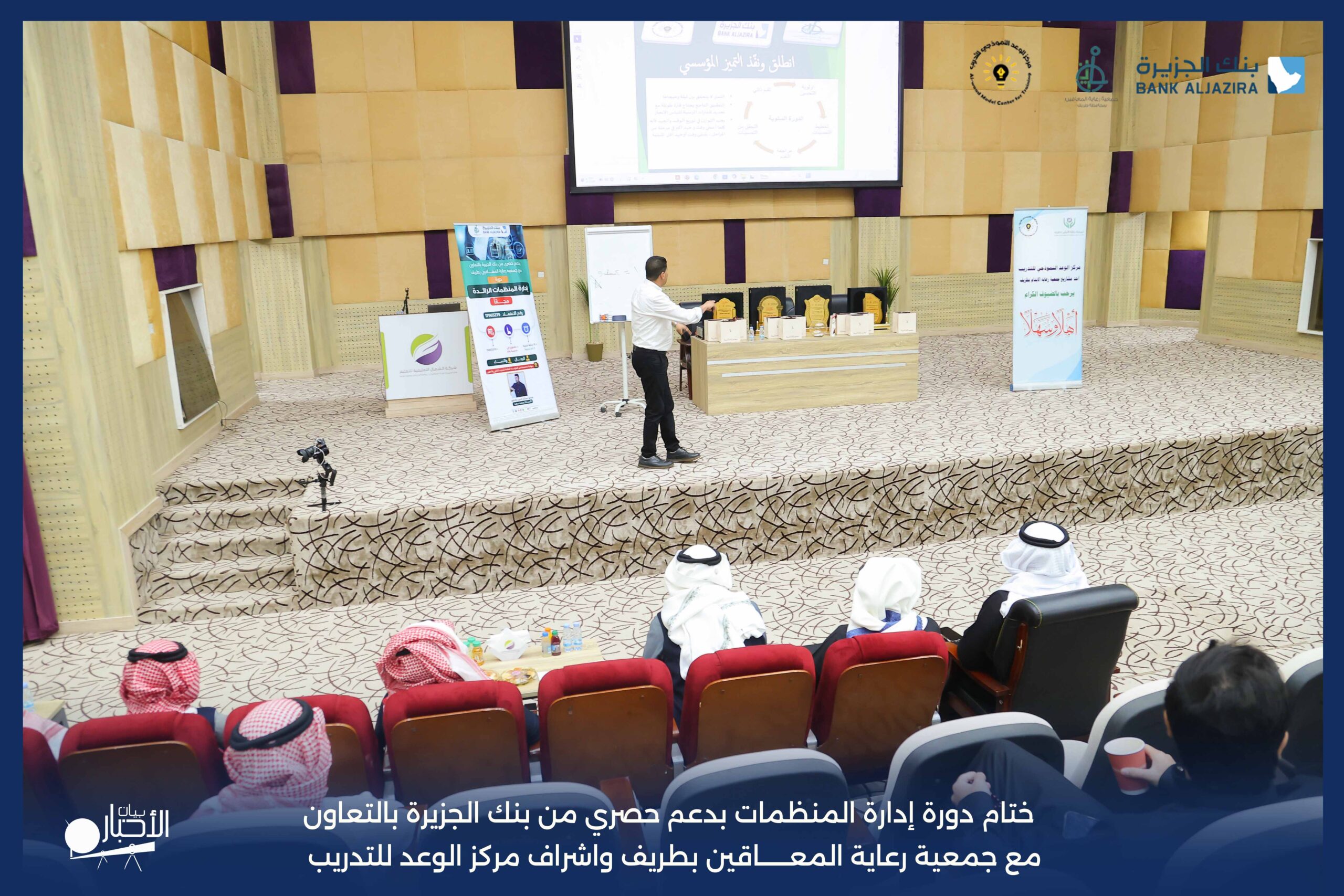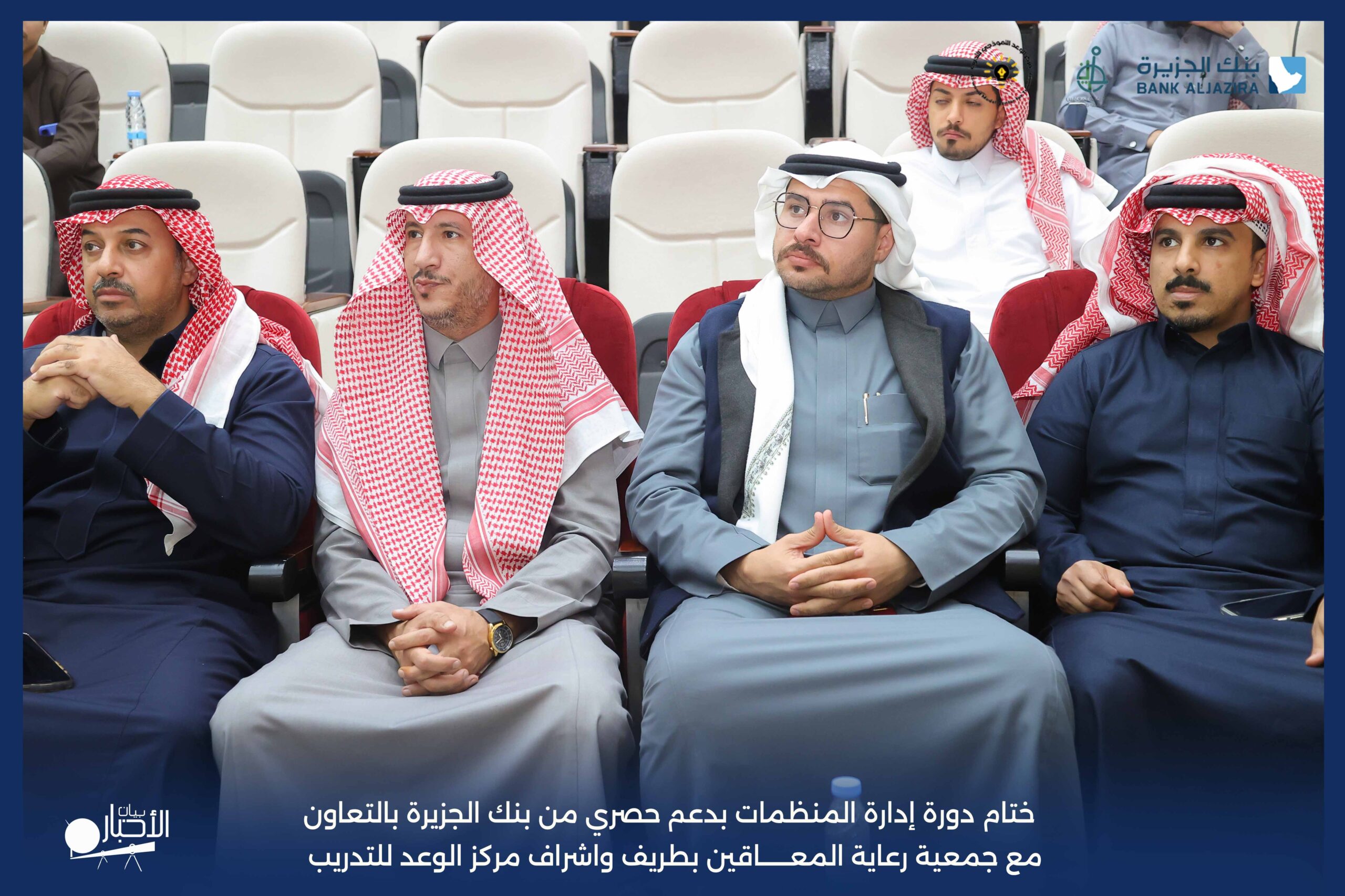نفذ مركز الوعد النموذجي للتدريب دورة إدارة المنظمات الرائدة وكانت الدورة مجانية لجميع أهالي مدينة عرعر ، وذلك بدعم حصري من بنك الجزيرة بالتعاون مع جمعية رعاية المعاقين بطريف