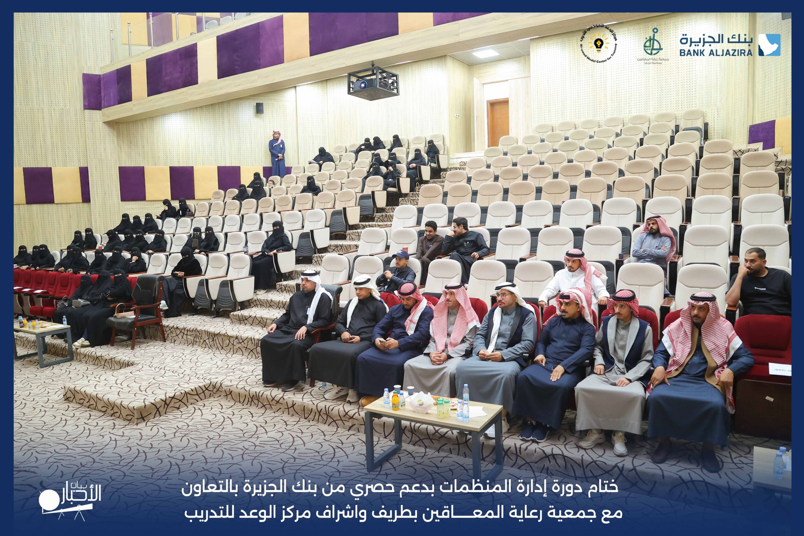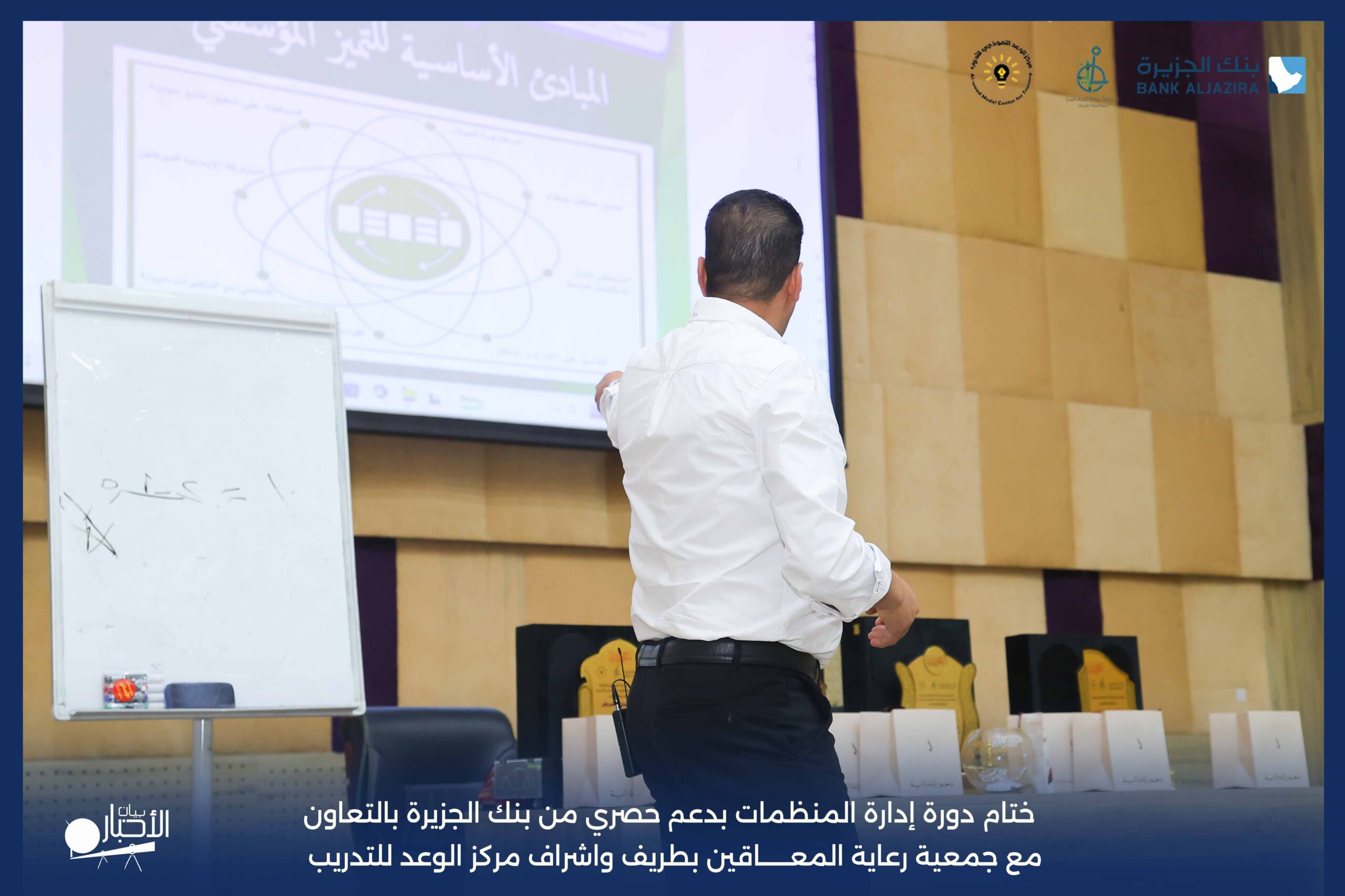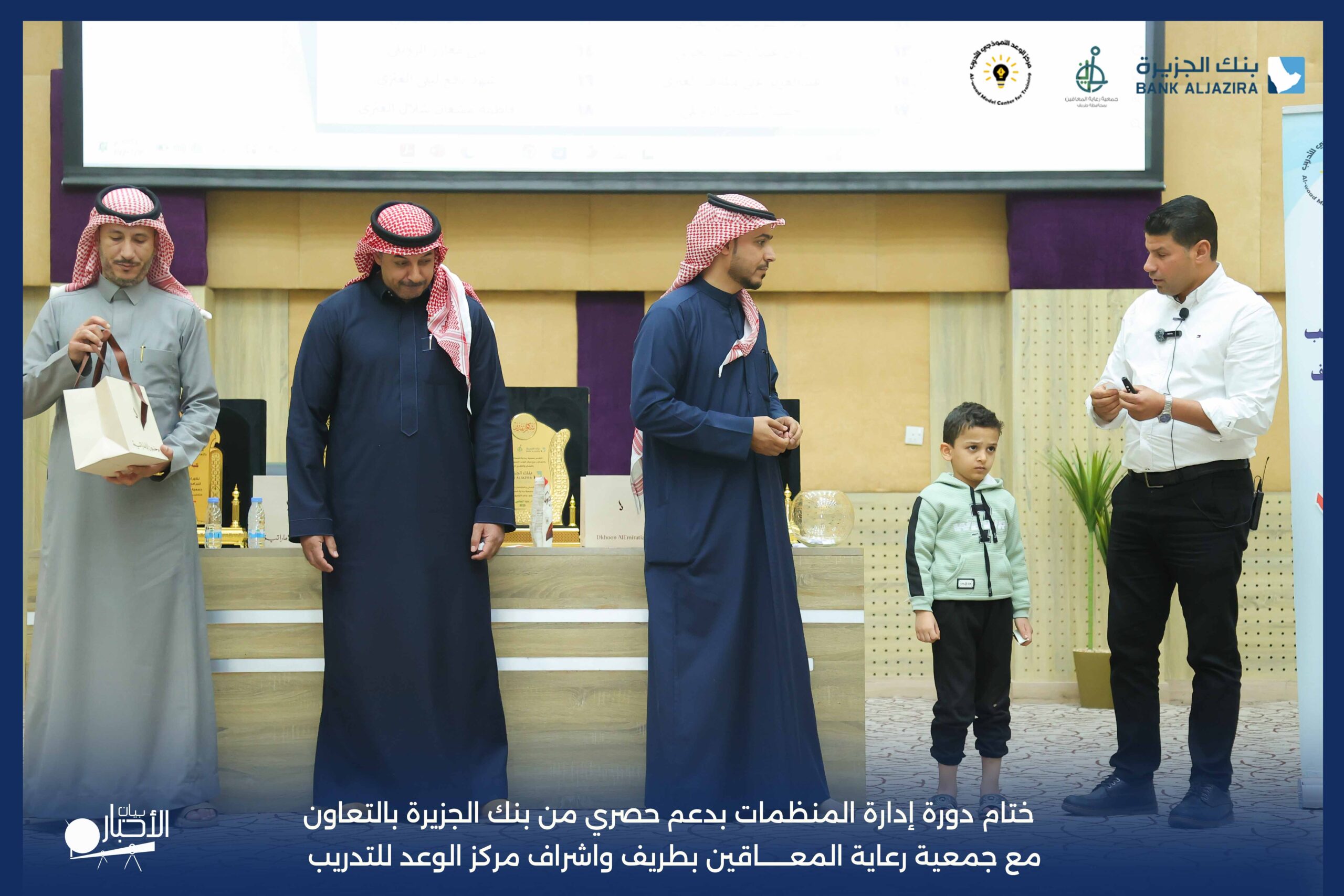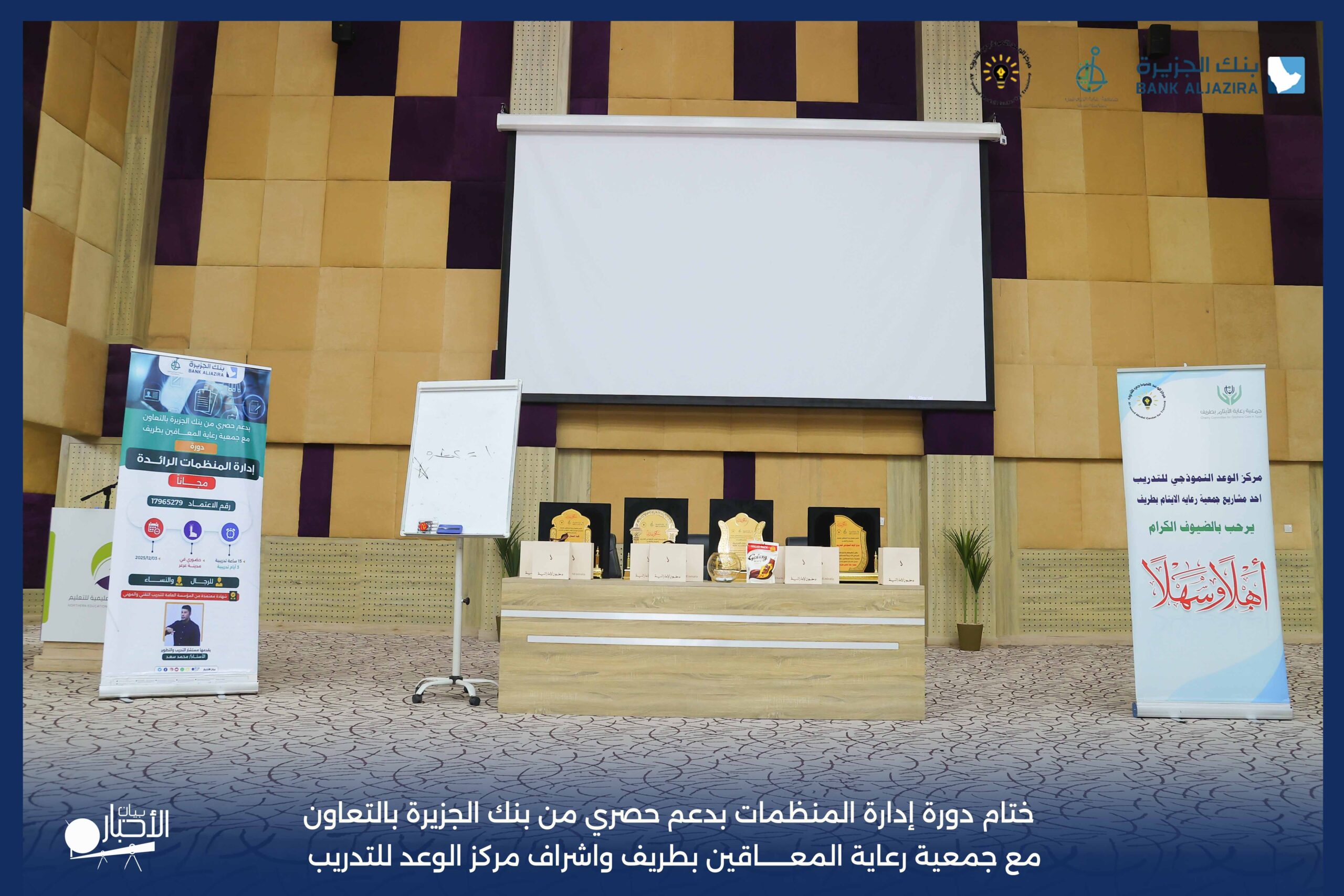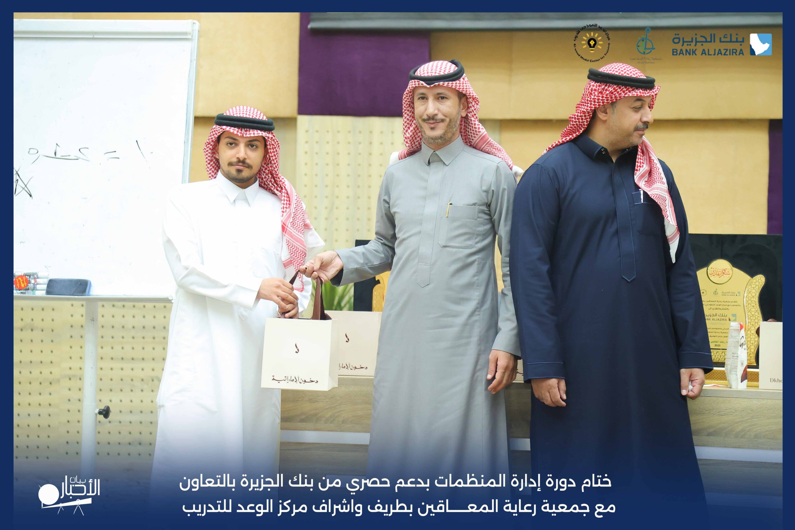 نفذ مركز الوعد النموذجي للتدريب دورة إدارة المنظمات الرائدة وكانت الدورة مجانية لجميع أهالي مدينة عرعر ، وذلك بدعم حصري من بنك الجزيرة بالتعاون مع جمعية رعاية المعاقين بطريف