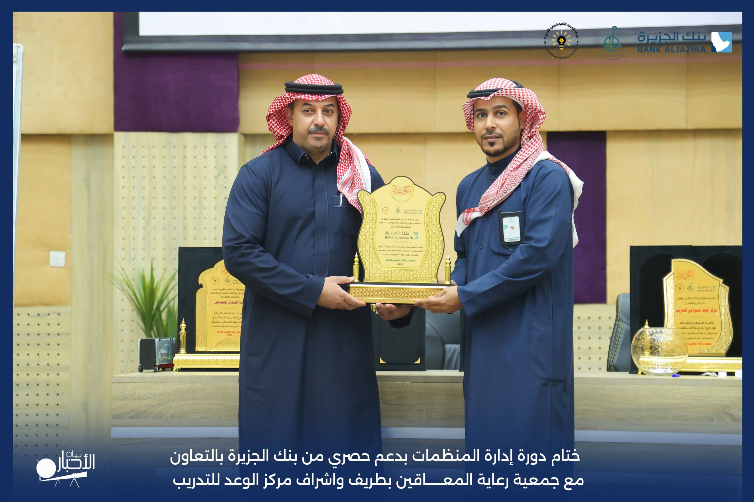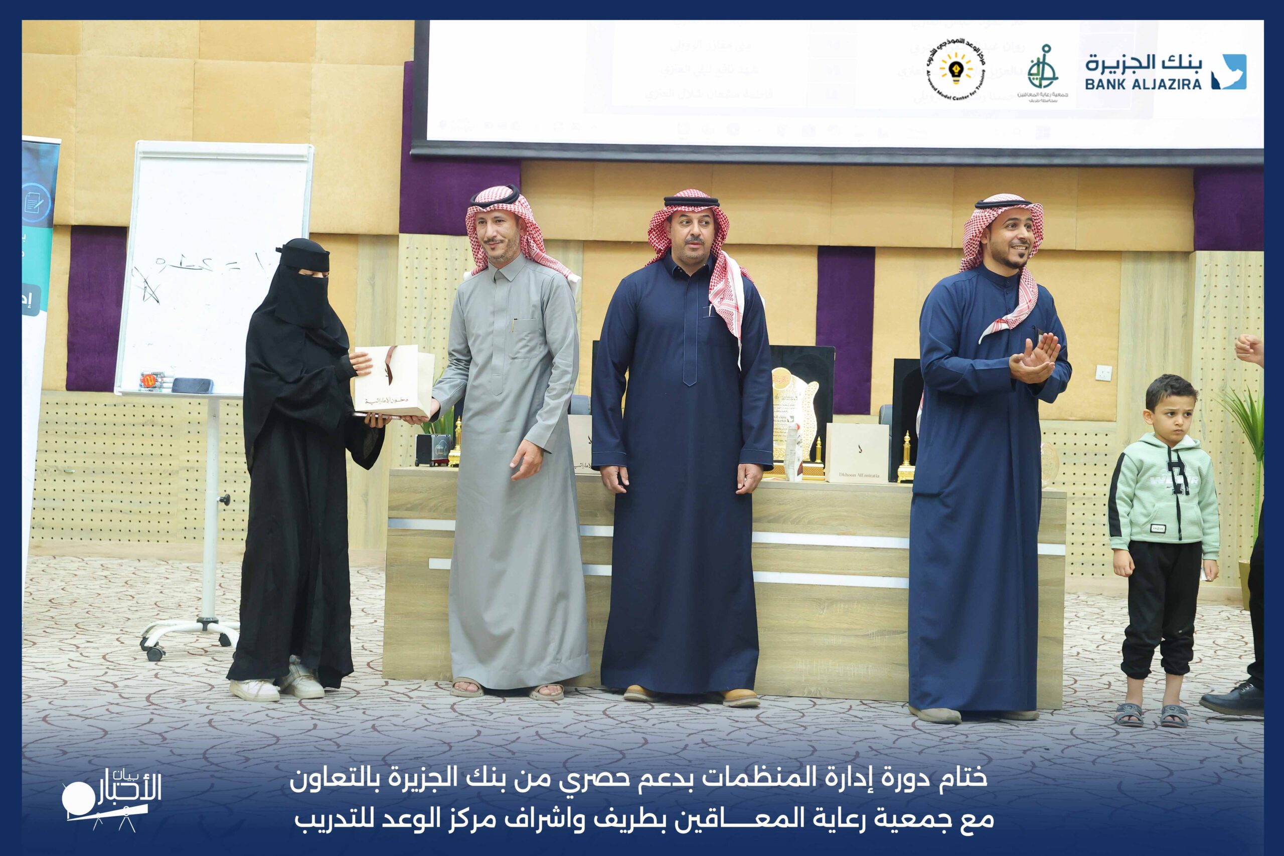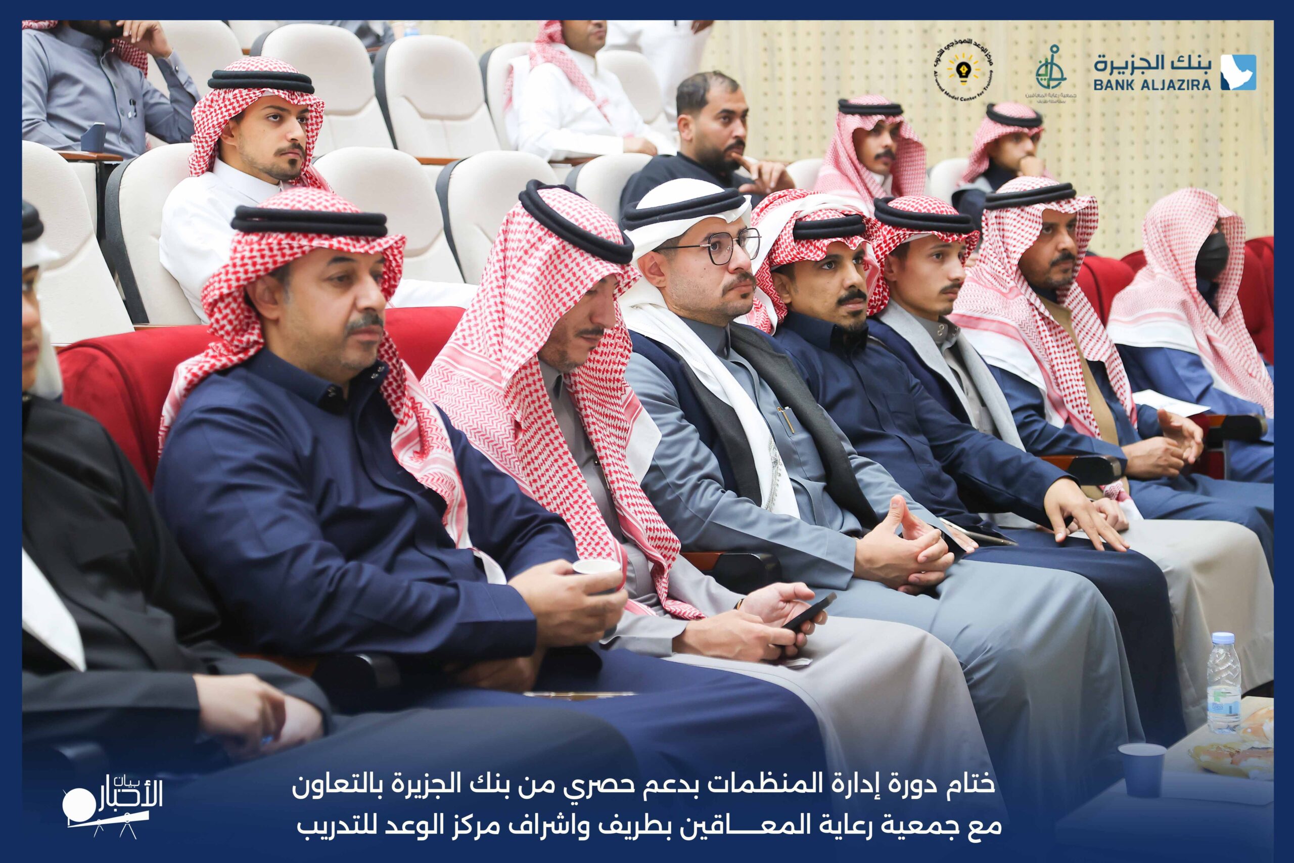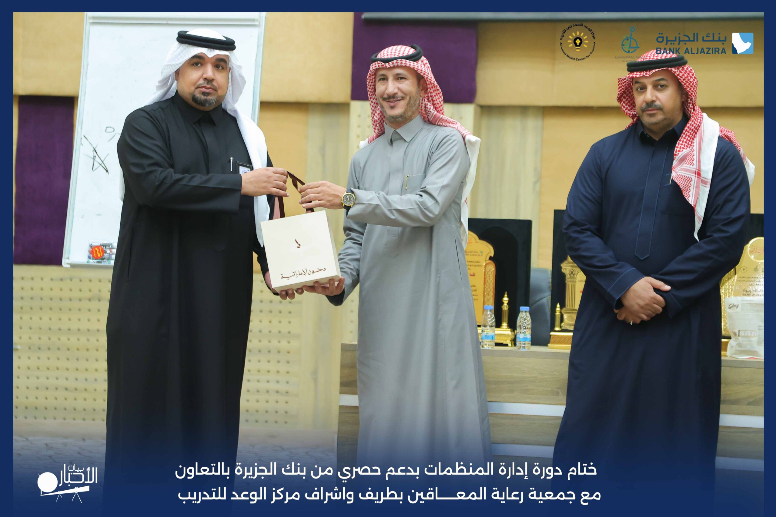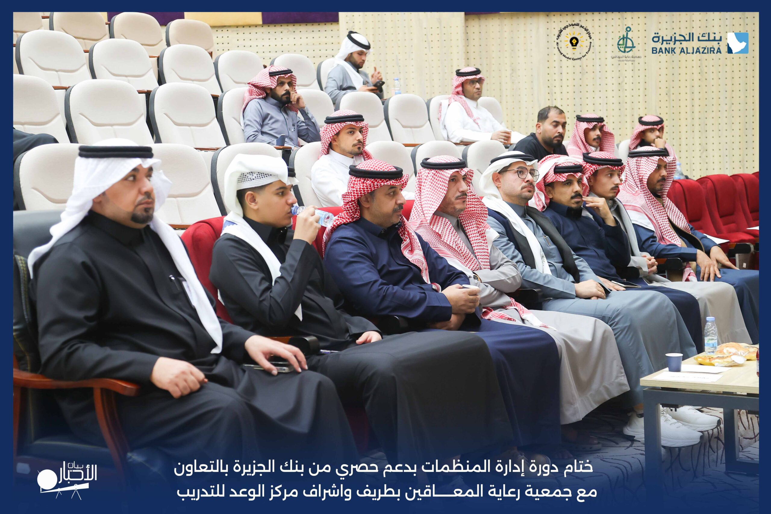 نفذ مركز الوعد النموذجي للتدريب دورة إدارة المنظمات الرائدة وكانت الدورة مجانية لجميع أهالي مدينة عرعر ، وذلك بدعم حصري من بنك الجزيرة بالتعاون مع جمعية رعاية المعاقين بطريف