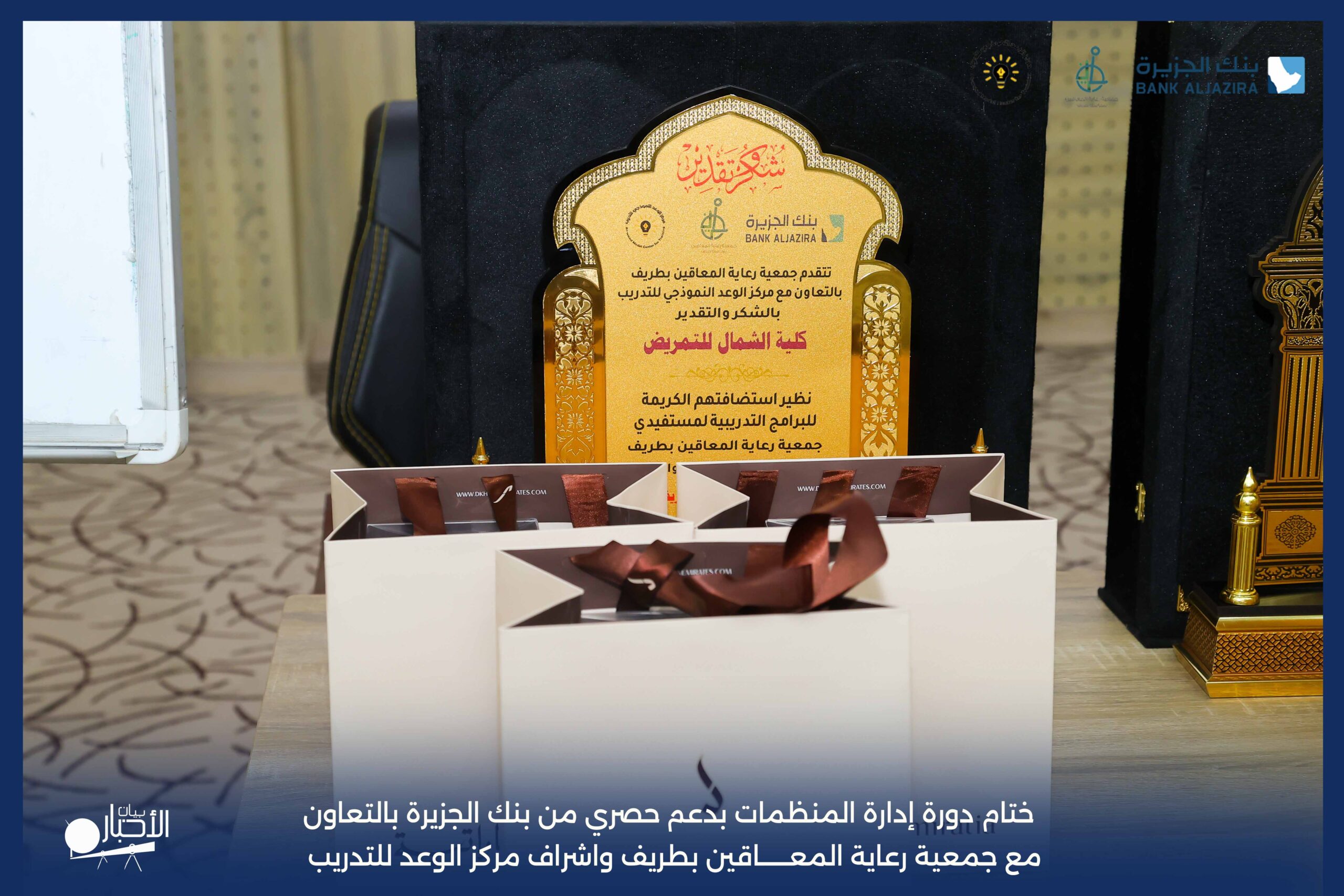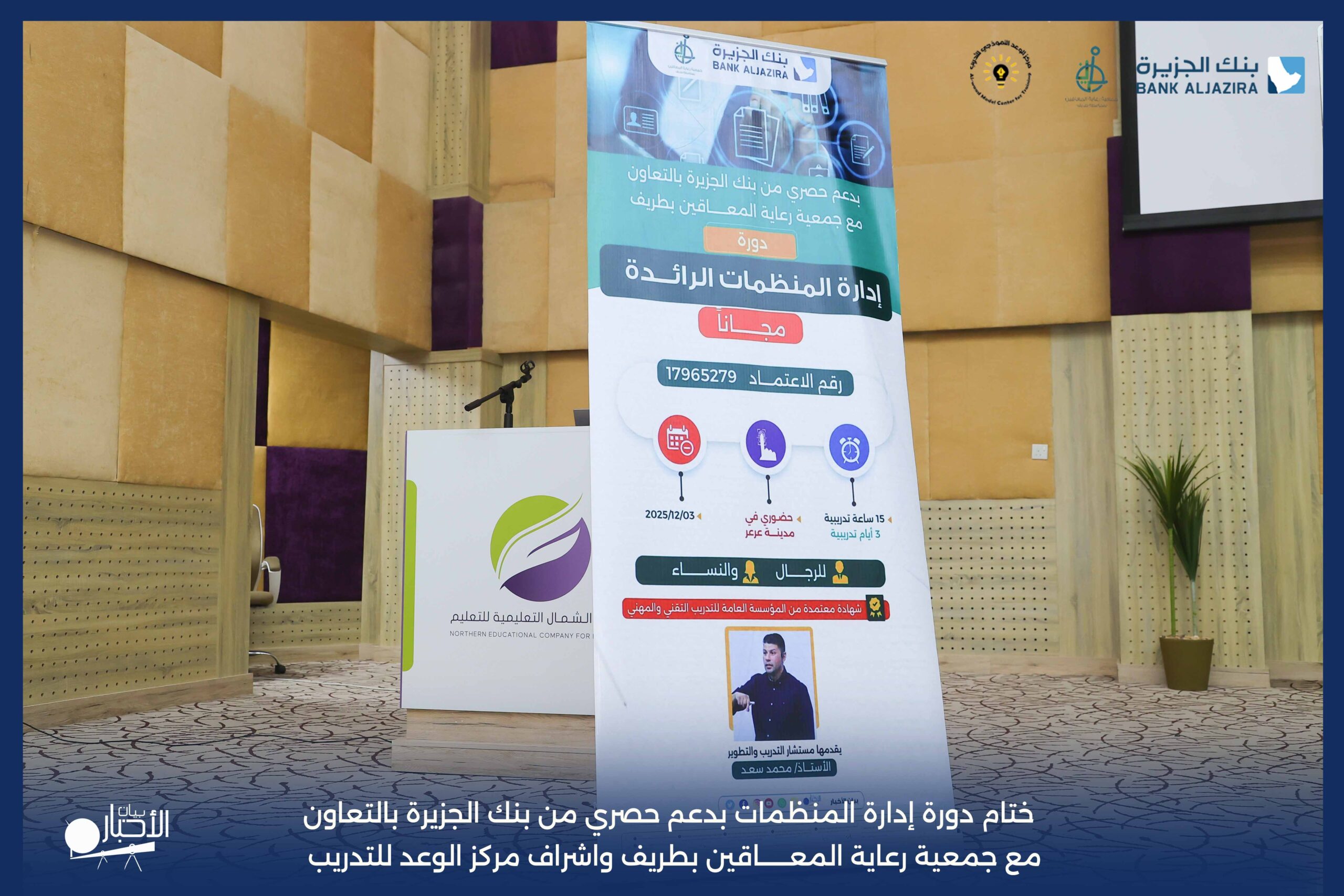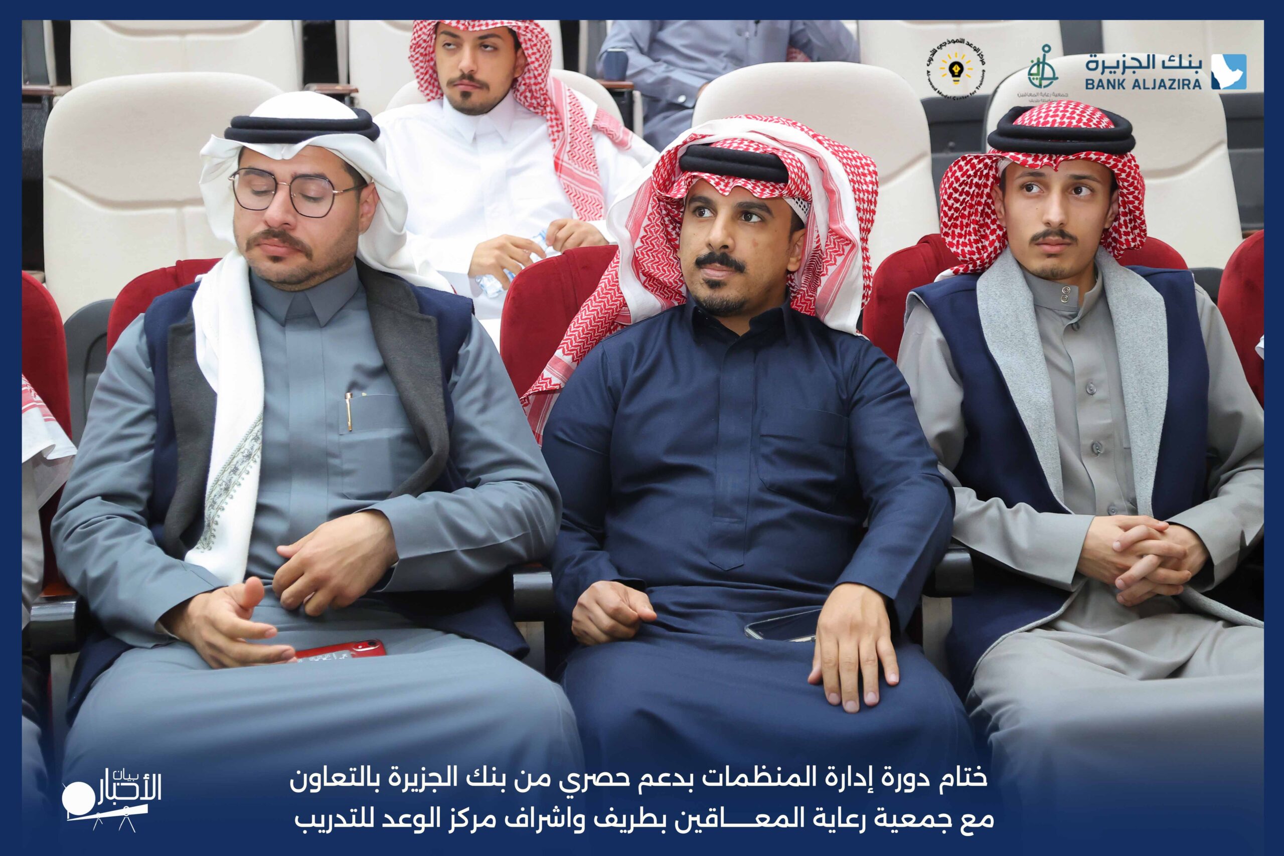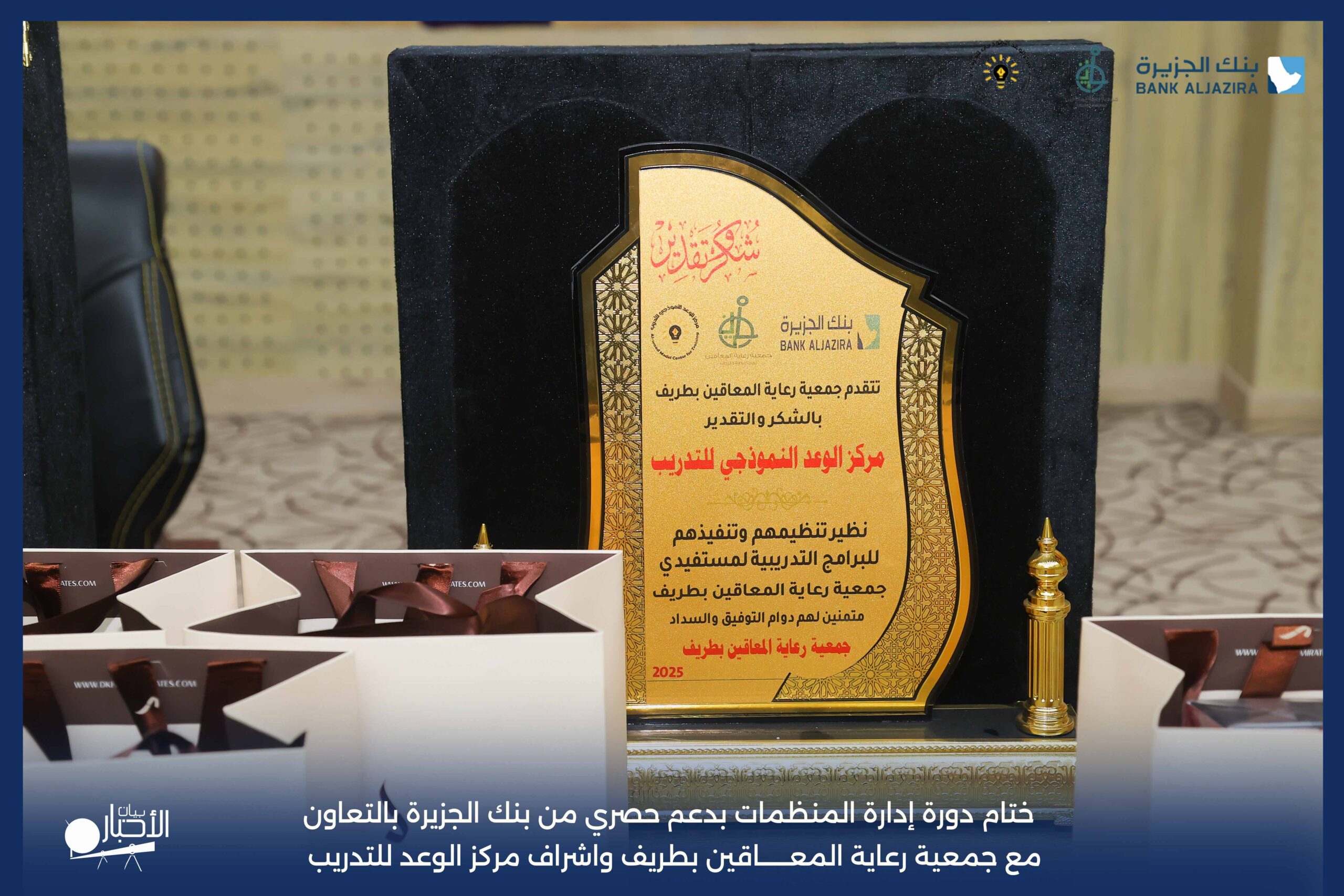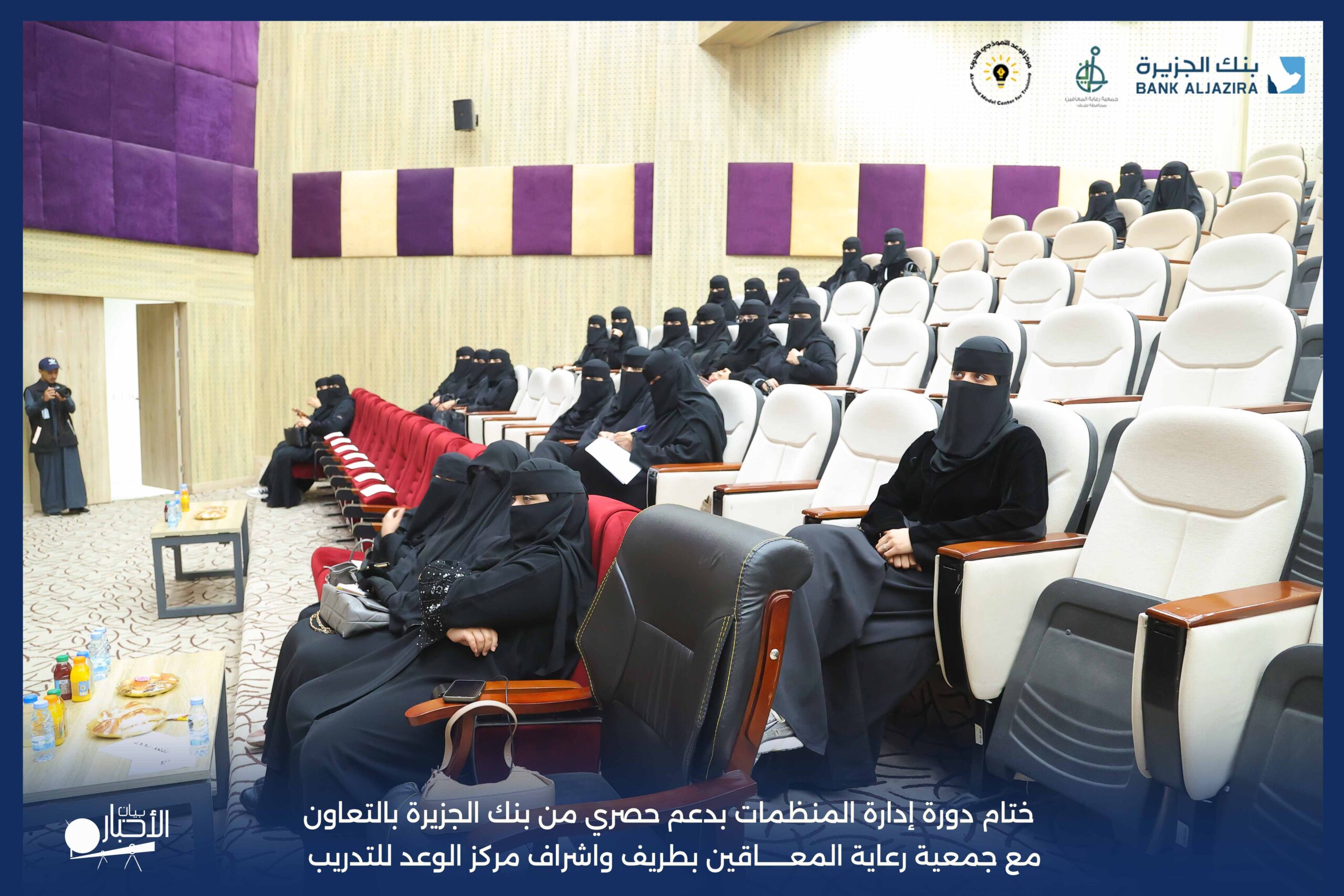 نفذ مركز الوعد النموذجي للتدريب دورة إدارة المنظمات الرائدة وكانت الدورة مجانية لجميع أهالي مدينة عرعر ، وذلك بدعم حصري من بنك الجزيرة بالتعاون مع جمعية رعاية المعاقين بطريف
