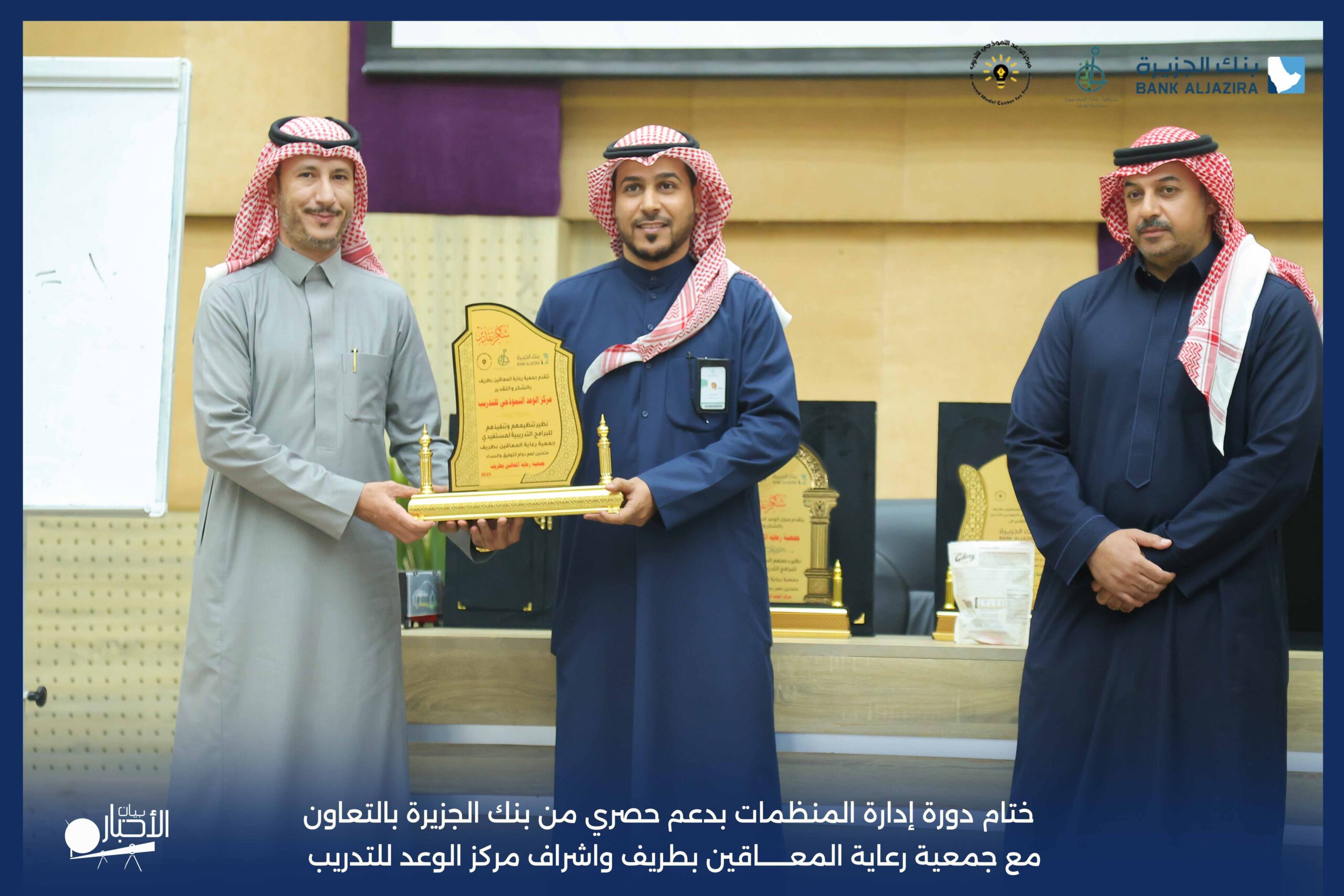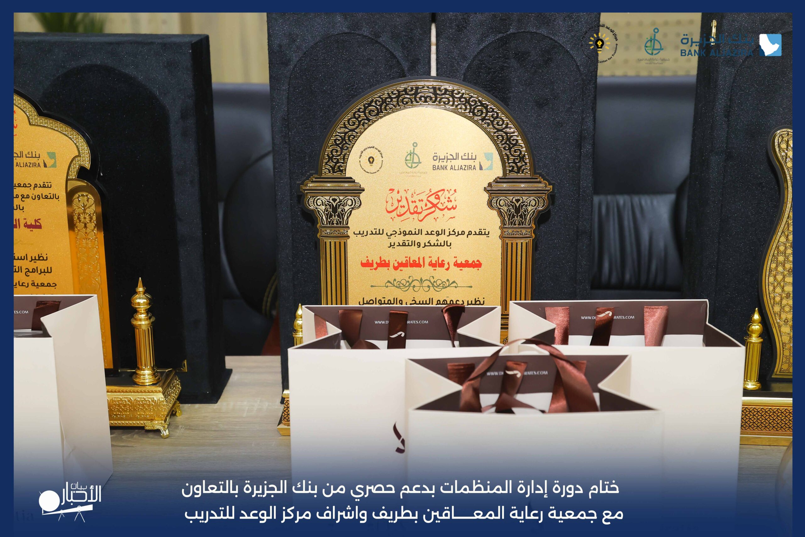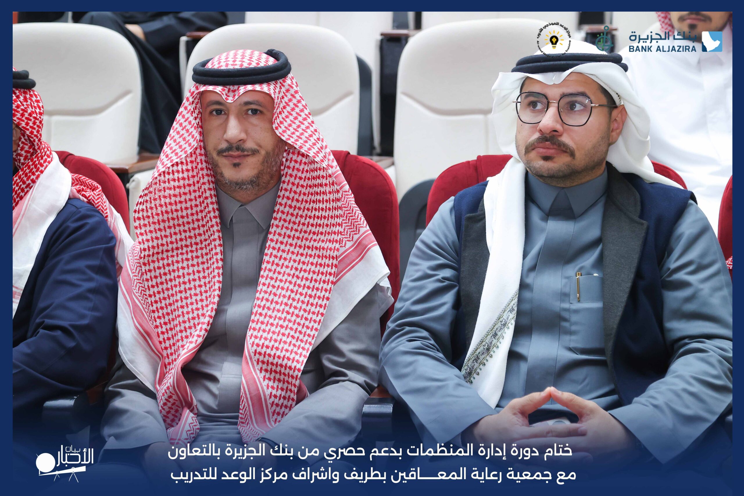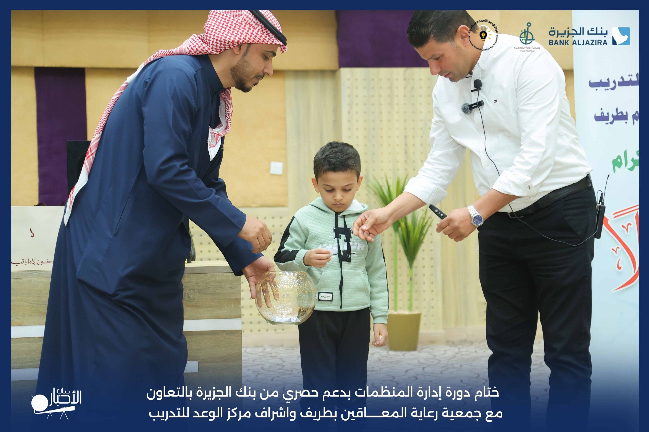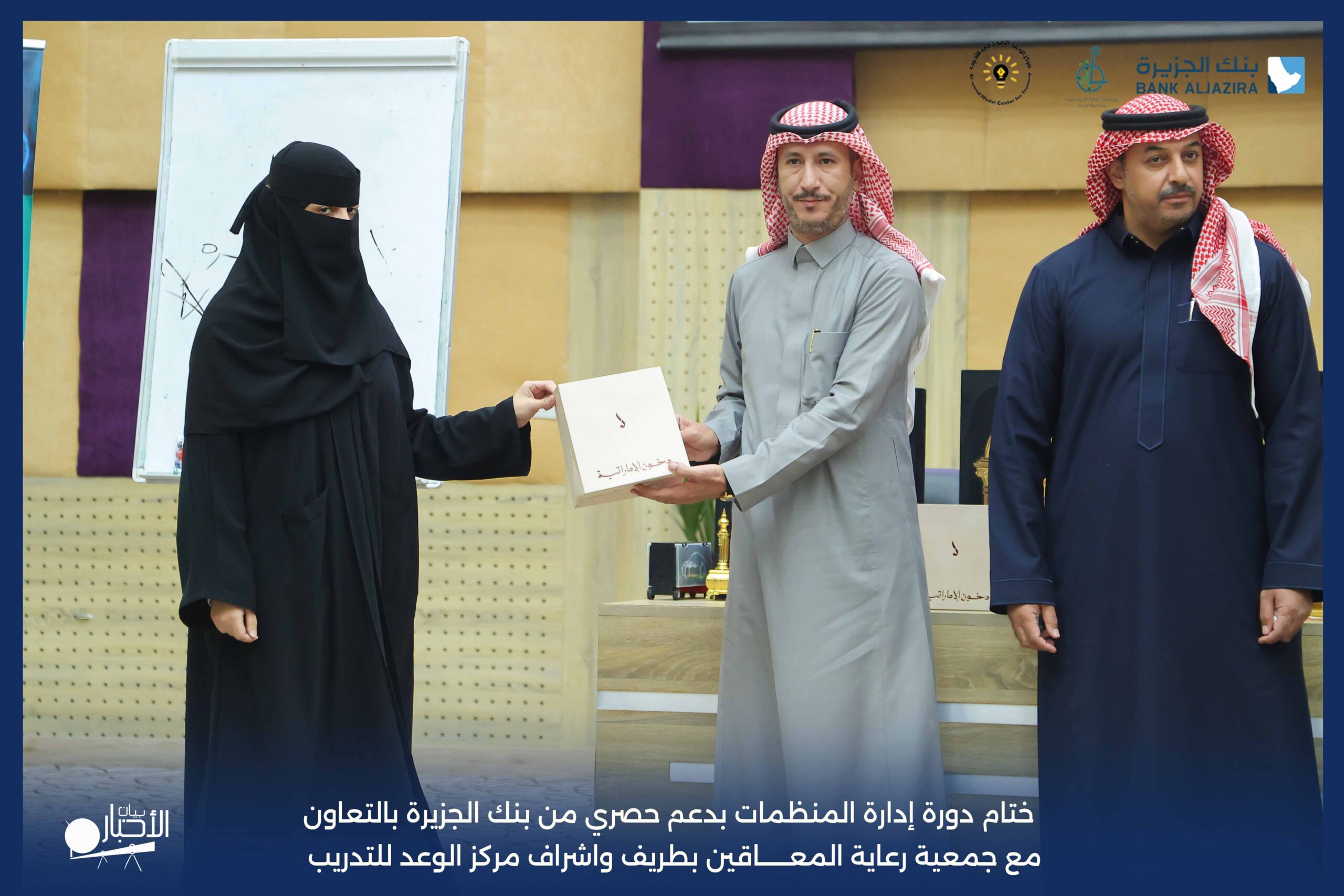 نفذ مركز الوعد النموذجي للتدريب دورة إدارة المنظمات الرائدة وكانت الدورة مجانية لجميع أهالي مدينة عرعر ، وذلك بدعم حصري من بنك الجزيرة بالتعاون مع جمعية رعاية المعاقين بطريف