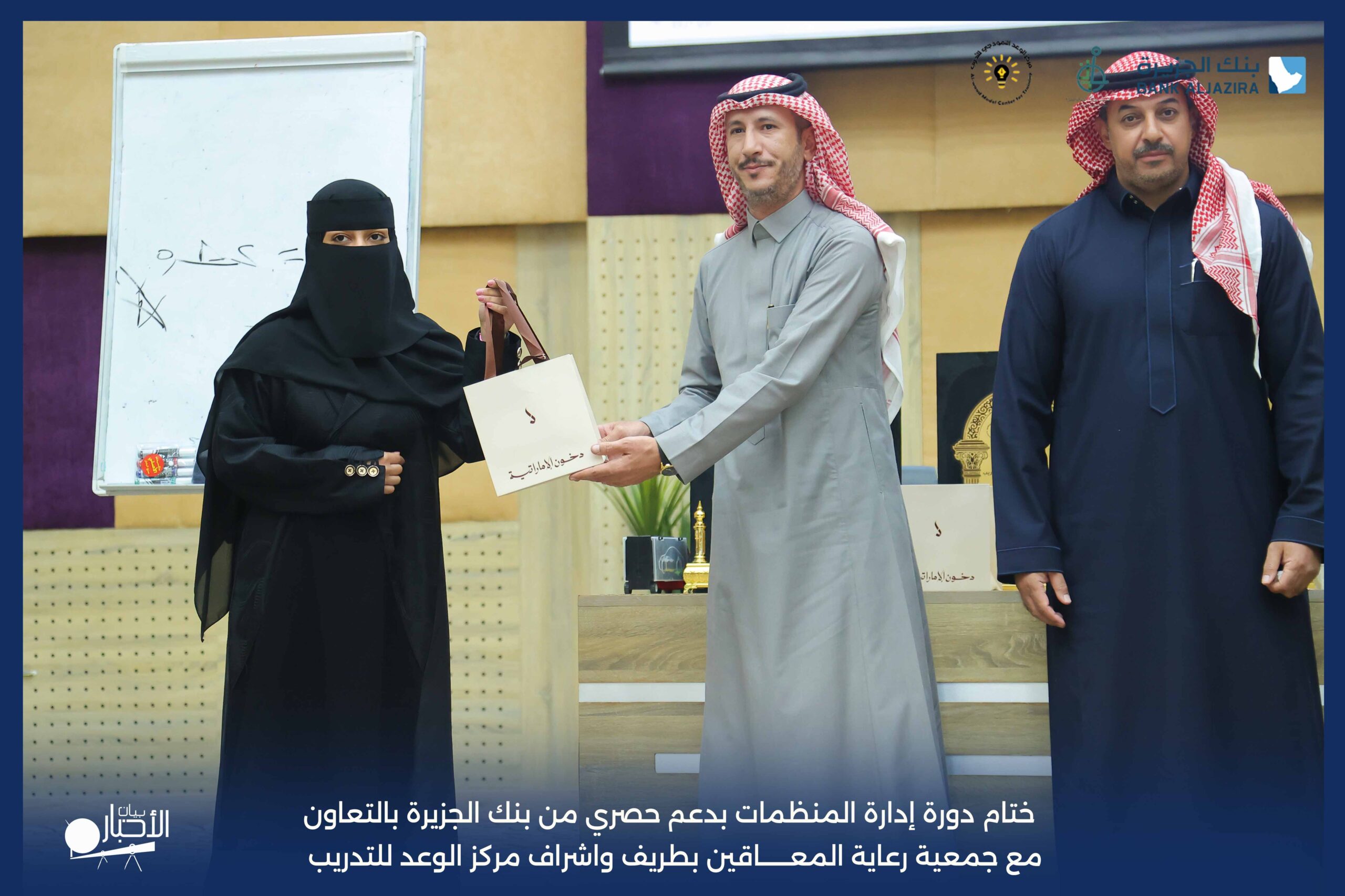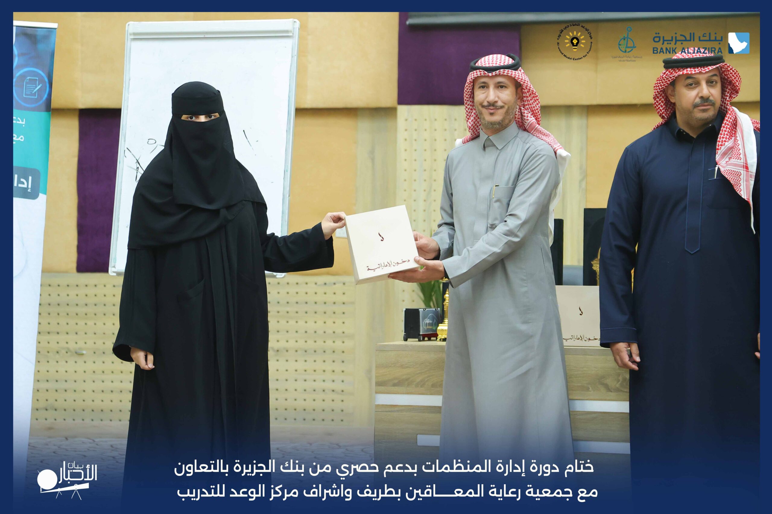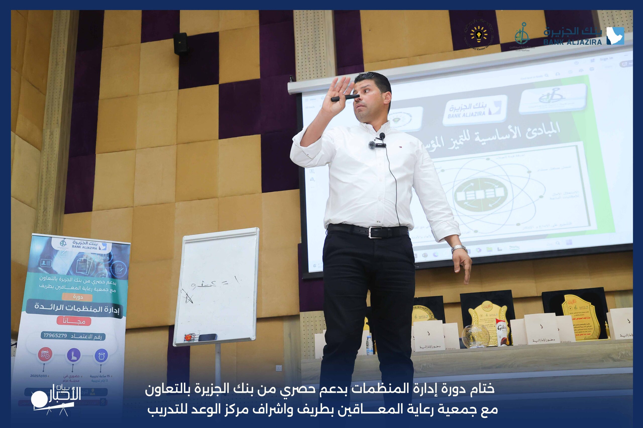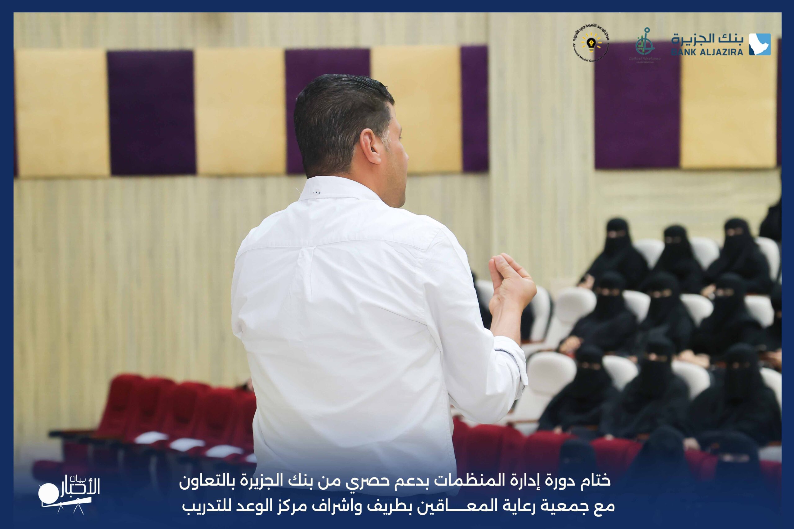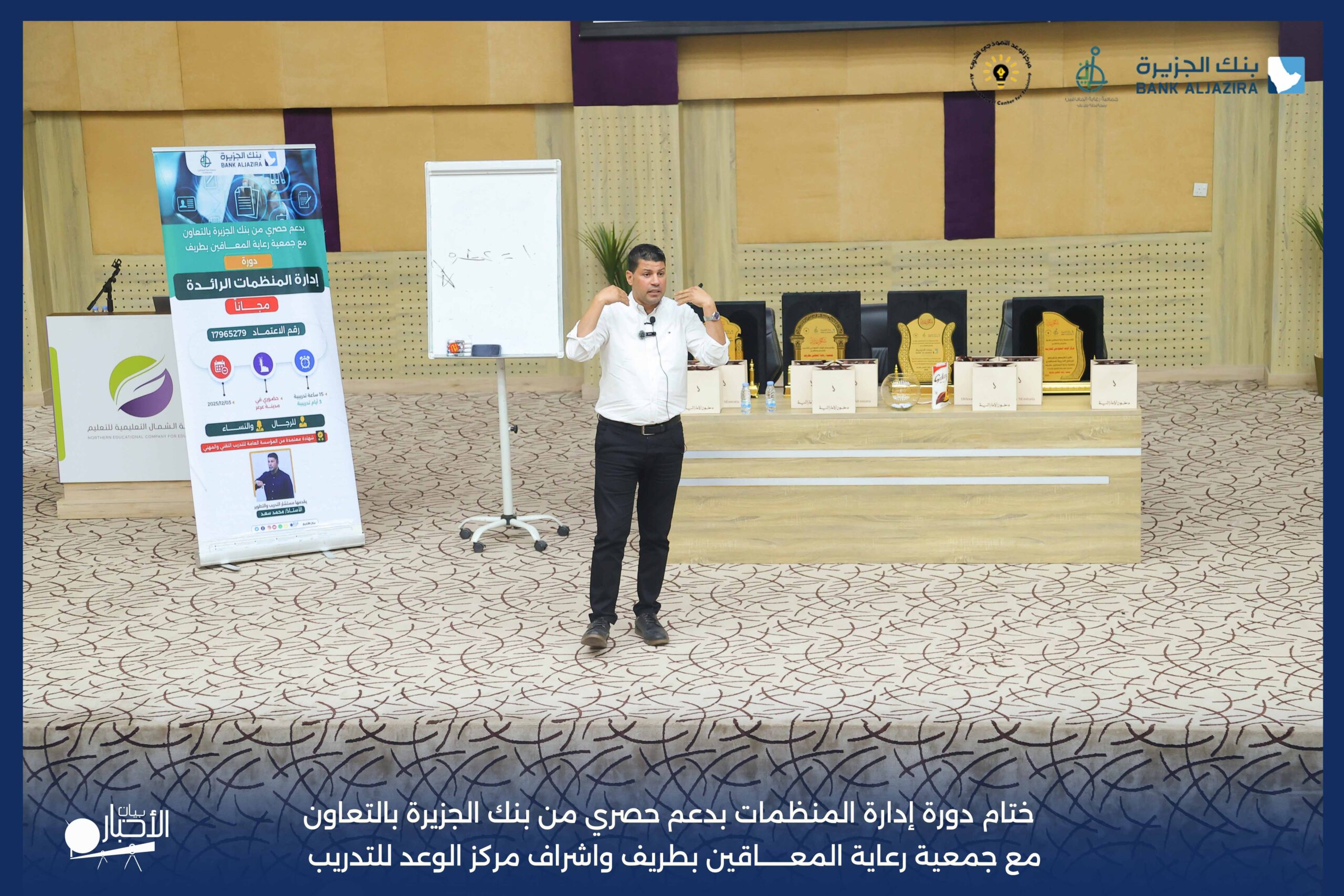 نفذ مركز الوعد النموذجي للتدريب دورة إدارة المنظمات الرائدة وكانت الدورة مجانية لجميع أهالي مدينة عرعر ، وذلك بدعم حصري من بنك الجزيرة بالتعاون مع جمعية رعاية المعاقين بطريف