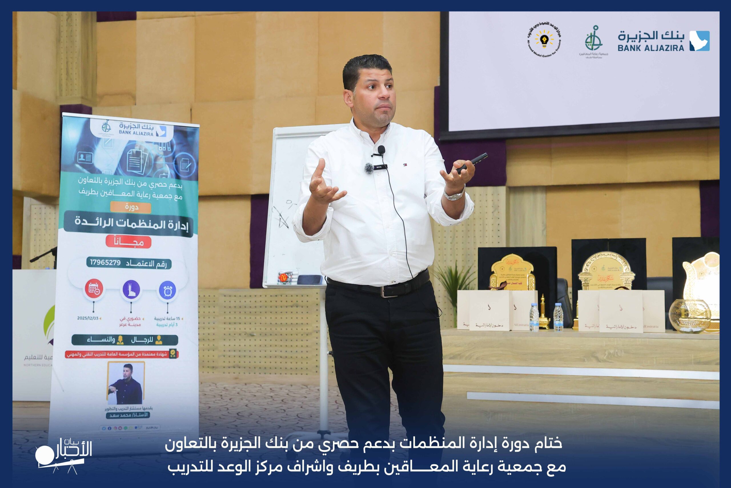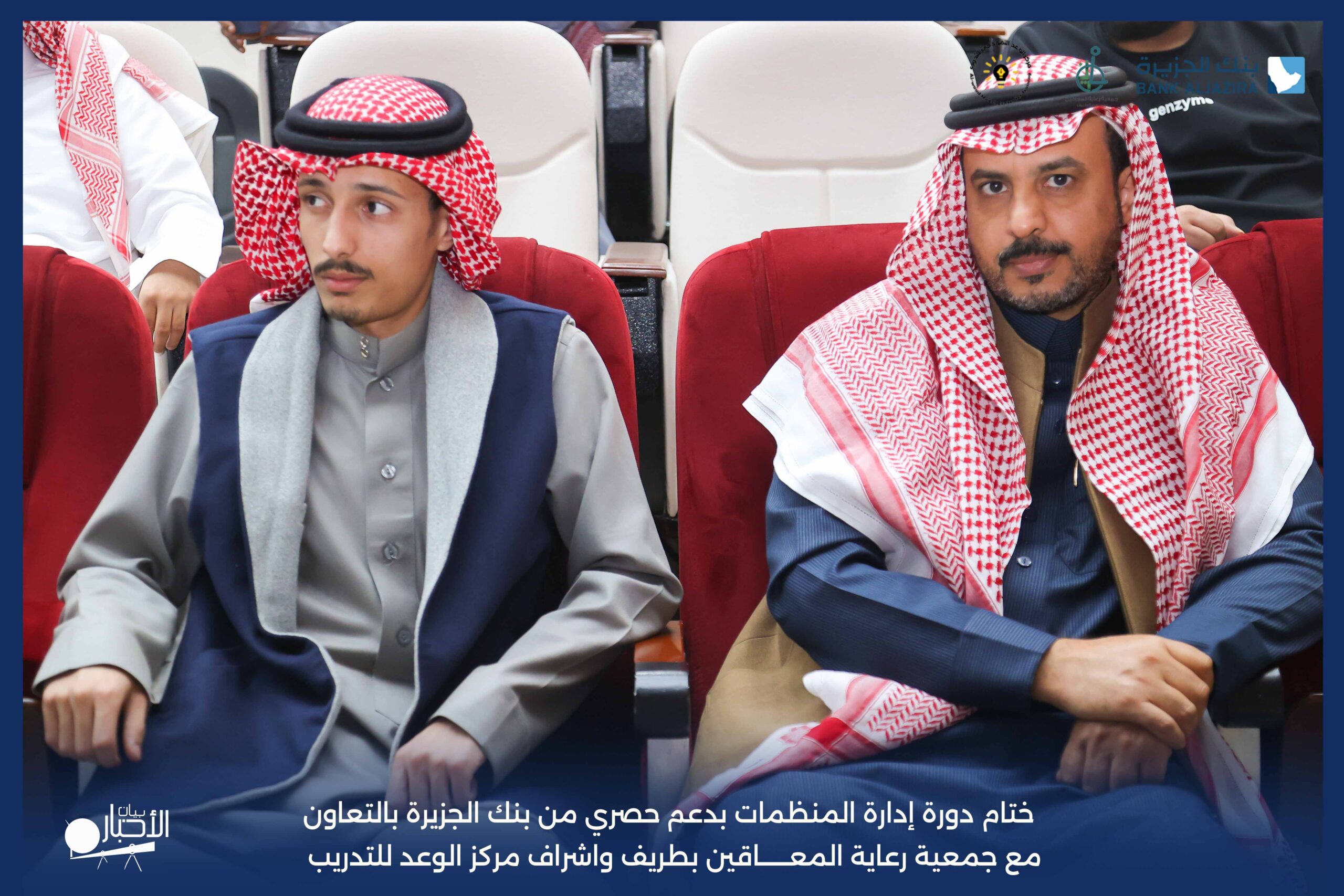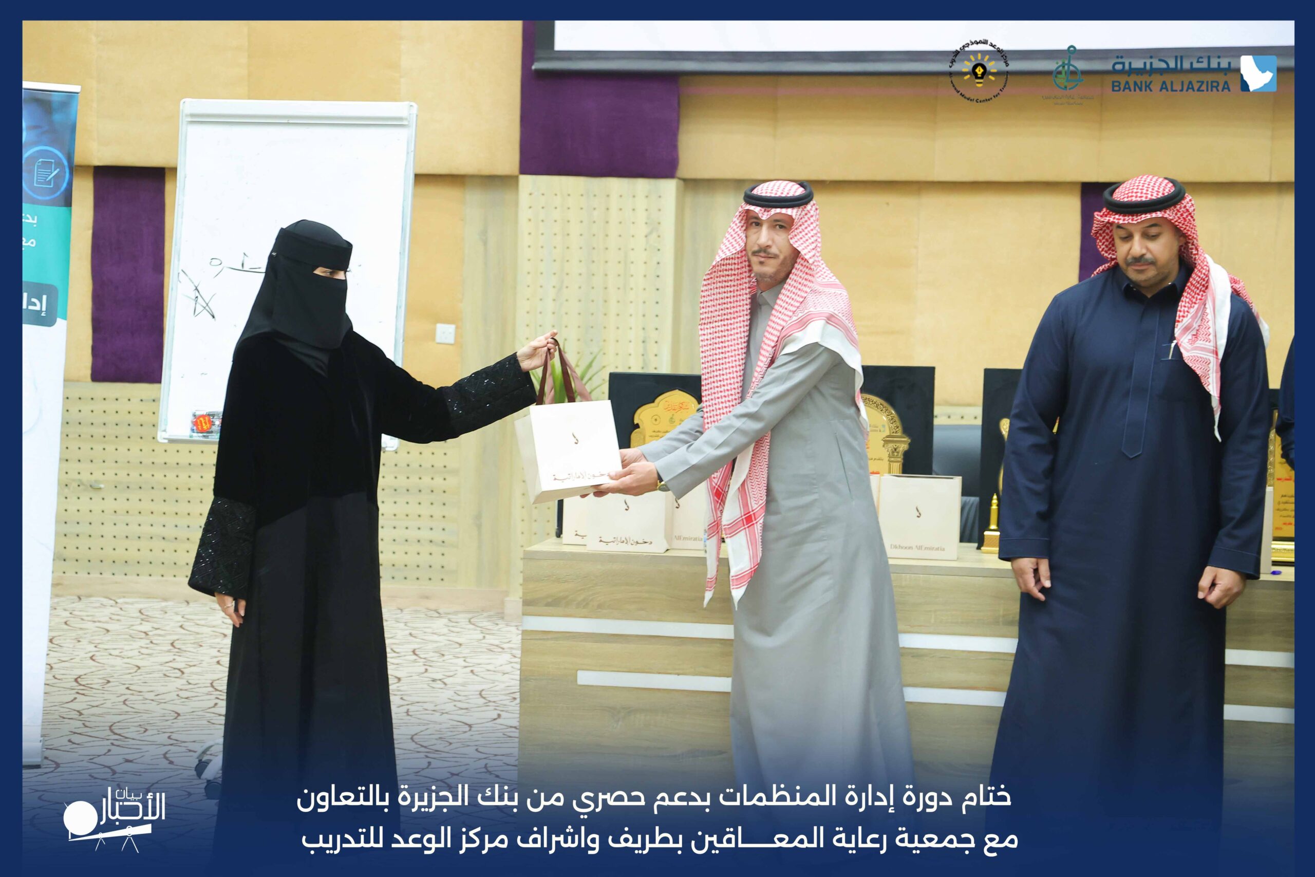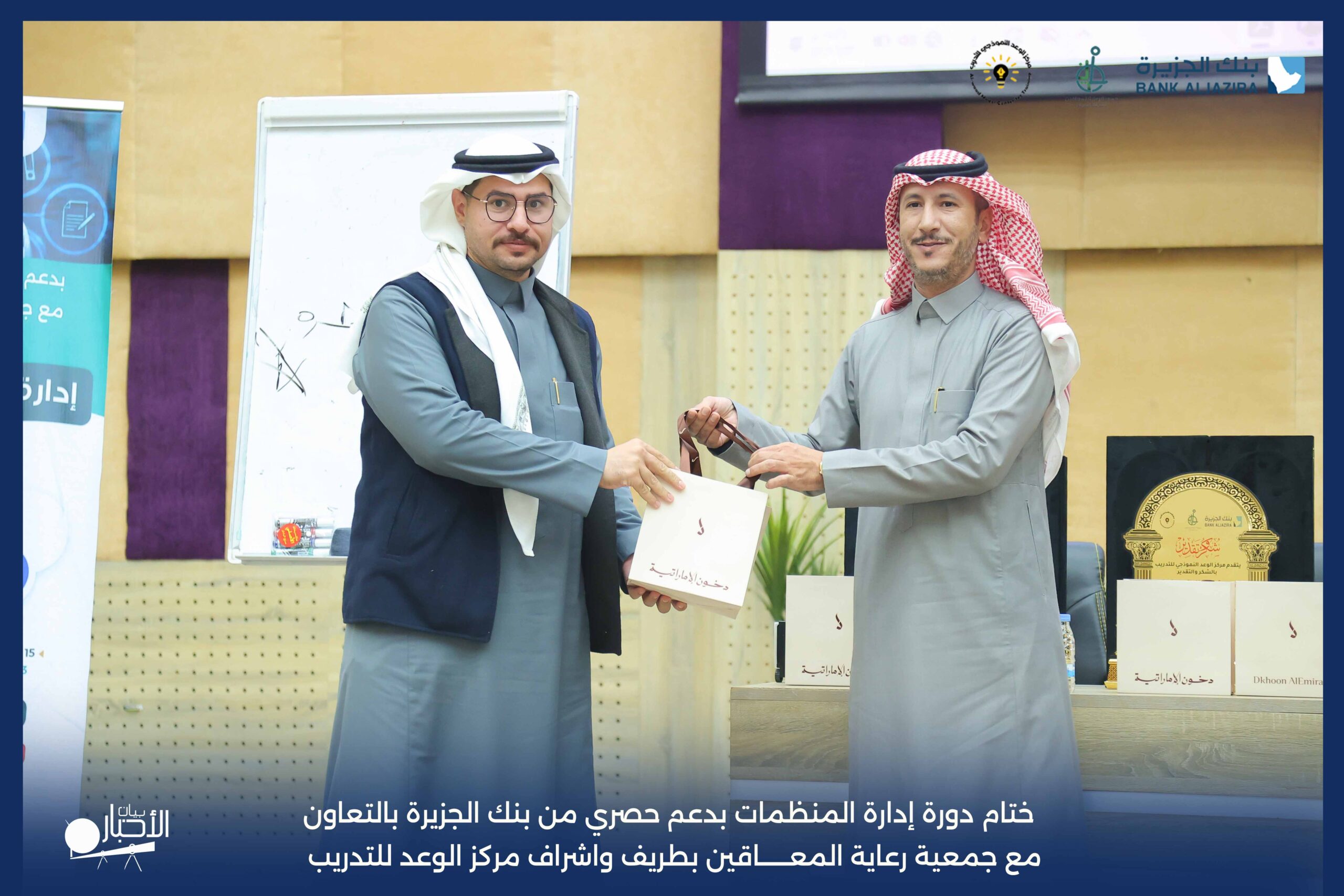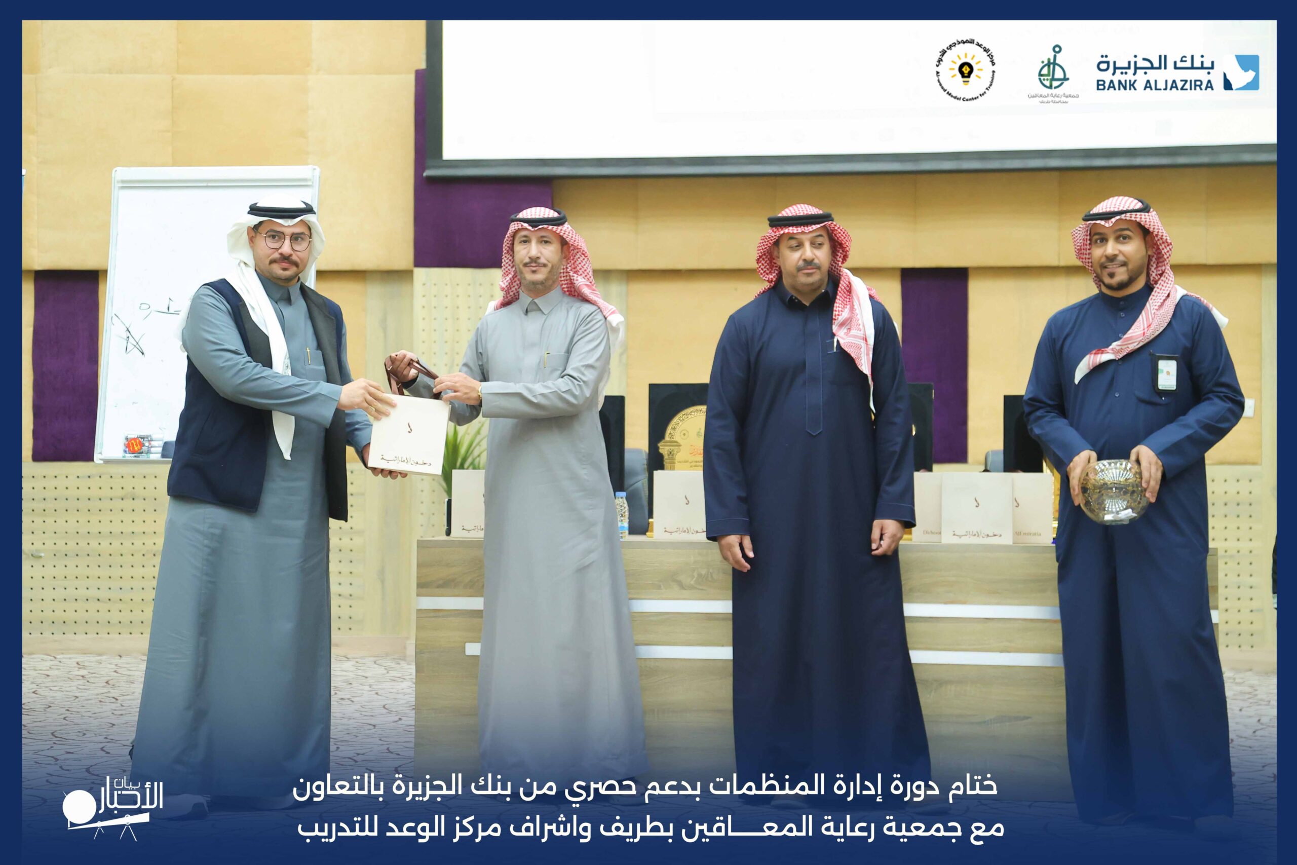 نفذ مركز الوعد النموذجي للتدريب دورة إدارة المنظمات الرائدة وكانت الدورة مجانية لجميع أهالي مدينة عرعر ، وذلك بدعم حصري من بنك الجزيرة بالتعاون مع جمعية رعاية المعاقين بطريف