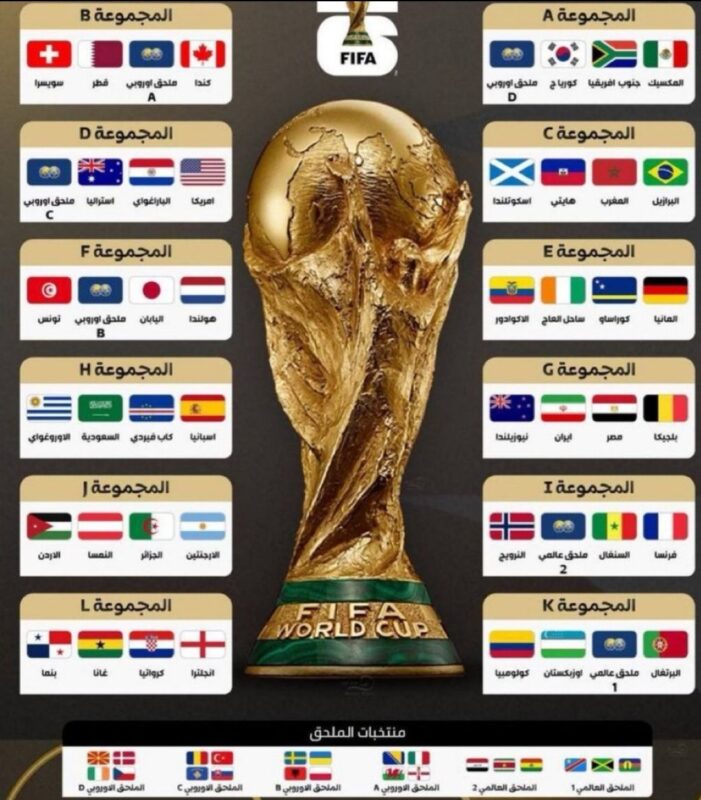 • 05/12/2025 مجموعات نارية للمنتخبات العربية.. نتائج قرعة كأس العالم 2026