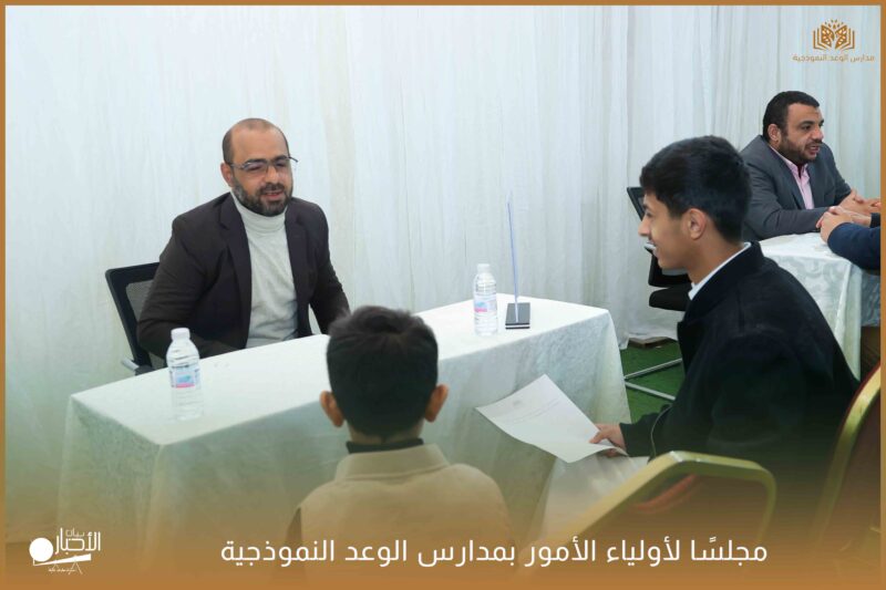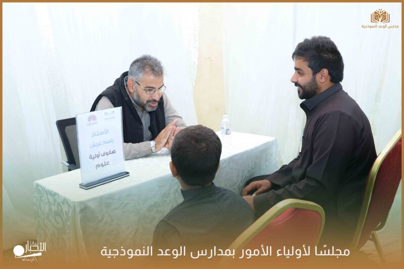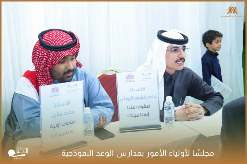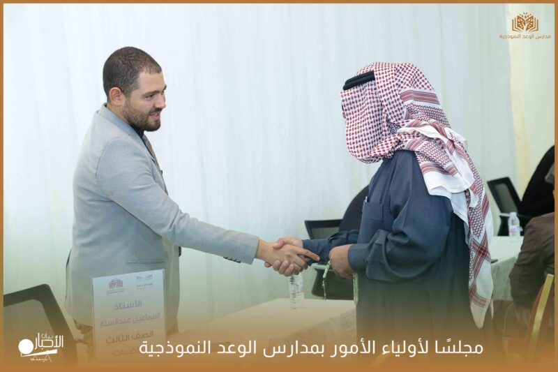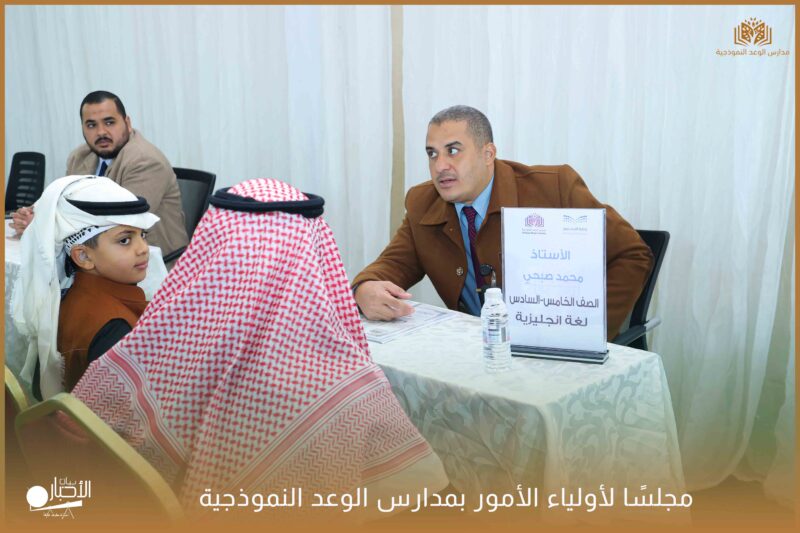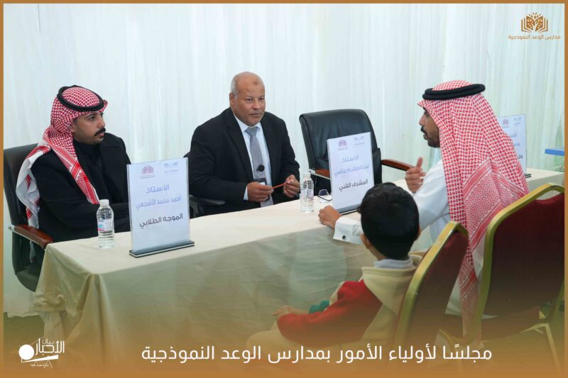 أقامت مدارس الوعد النموذجية الأهلية ( المرحلة الابتدائية ) مجلسًا لأولياء الأمور، حيث شهد حضورًا مميزًا من أولياء الأمور لمناقشة ومتابعة العملية التعليمية والتربوية لأبنائهم، حيث كانت المناقشة والاستفسارات بصورة فردية بين ولي الأمر والمعلم في ضوء العملية التعليمية والتربوية والتي أثمرت رؤيةً واضحةً لاستكمال وتطوير العملية التعليمية والتربوية، ولاقى ذلك استحسانًا من جميع الحاضرين ٠