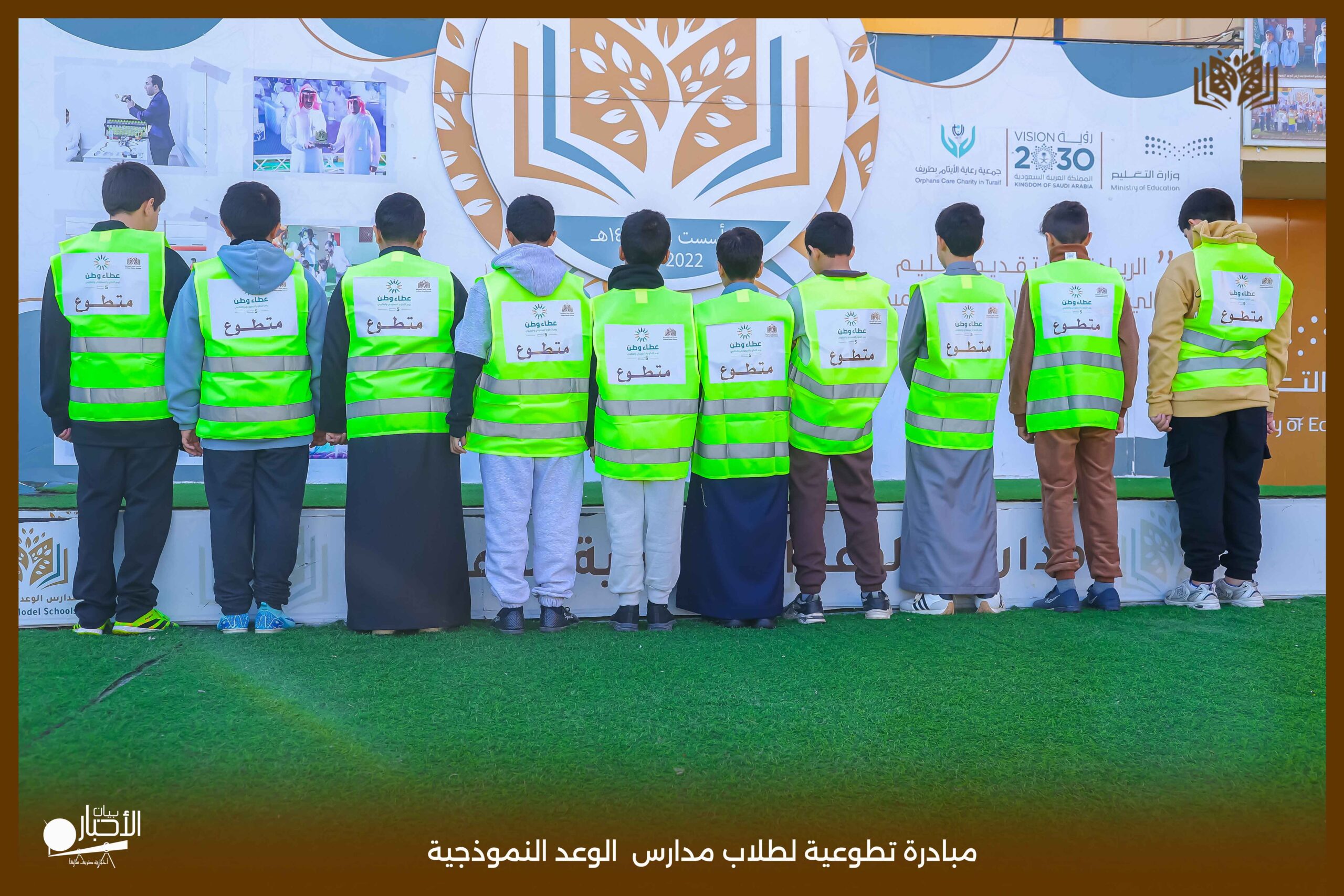 أقامت مدارس الوعد النموذجية الأهلية مبادرة تطوعية لطلاب المدرسة تفعيلًا لليوم العالمي للتطوع والذي يهدف إلى إبراز مساهمات المتطوعين حول العالم وزيادة الوعي بأهمية العمل التطوعي وتشجيع الطلاب على المشاركة الفعالة في المجتمع وكذلك تعزيز روح العطاء و الانتماء والمواطنة الفعالة حسب ما تؤكده رؤية المملكة العربية السعودية 2030 ٠