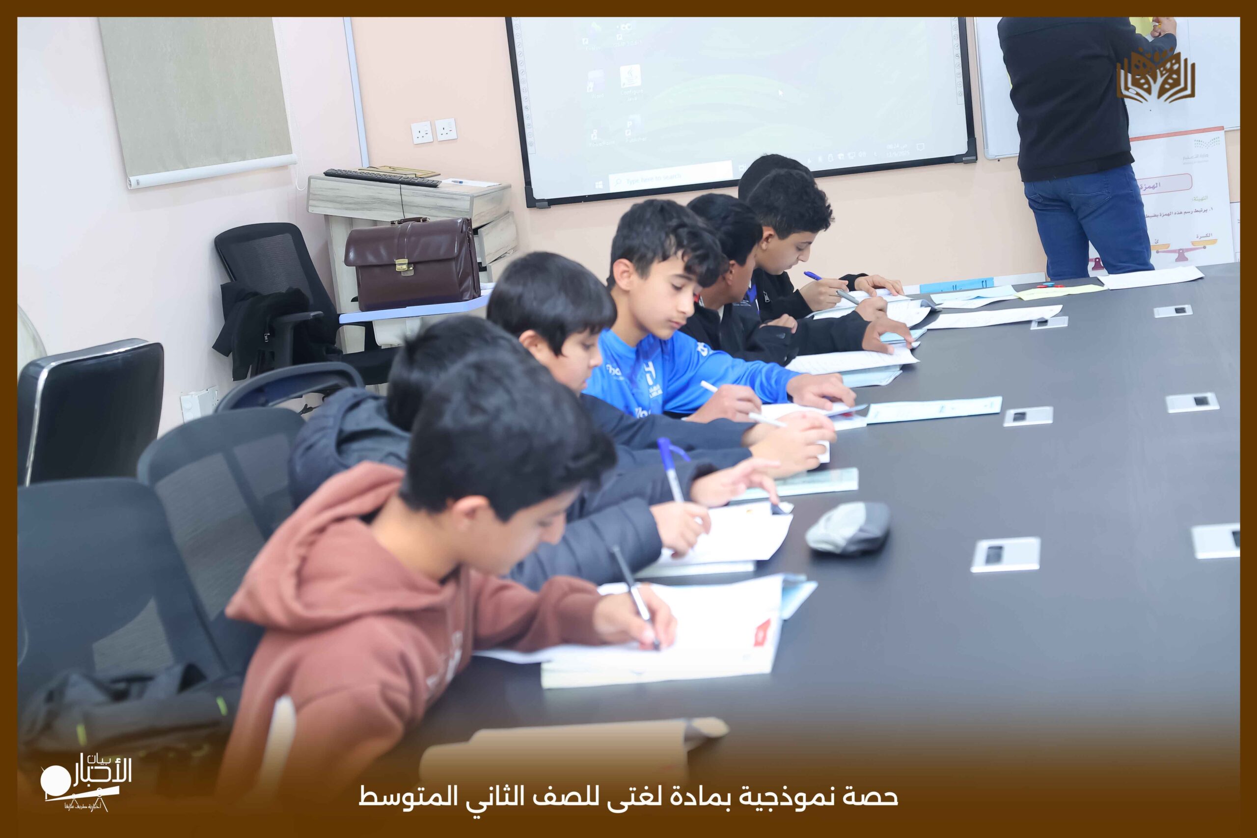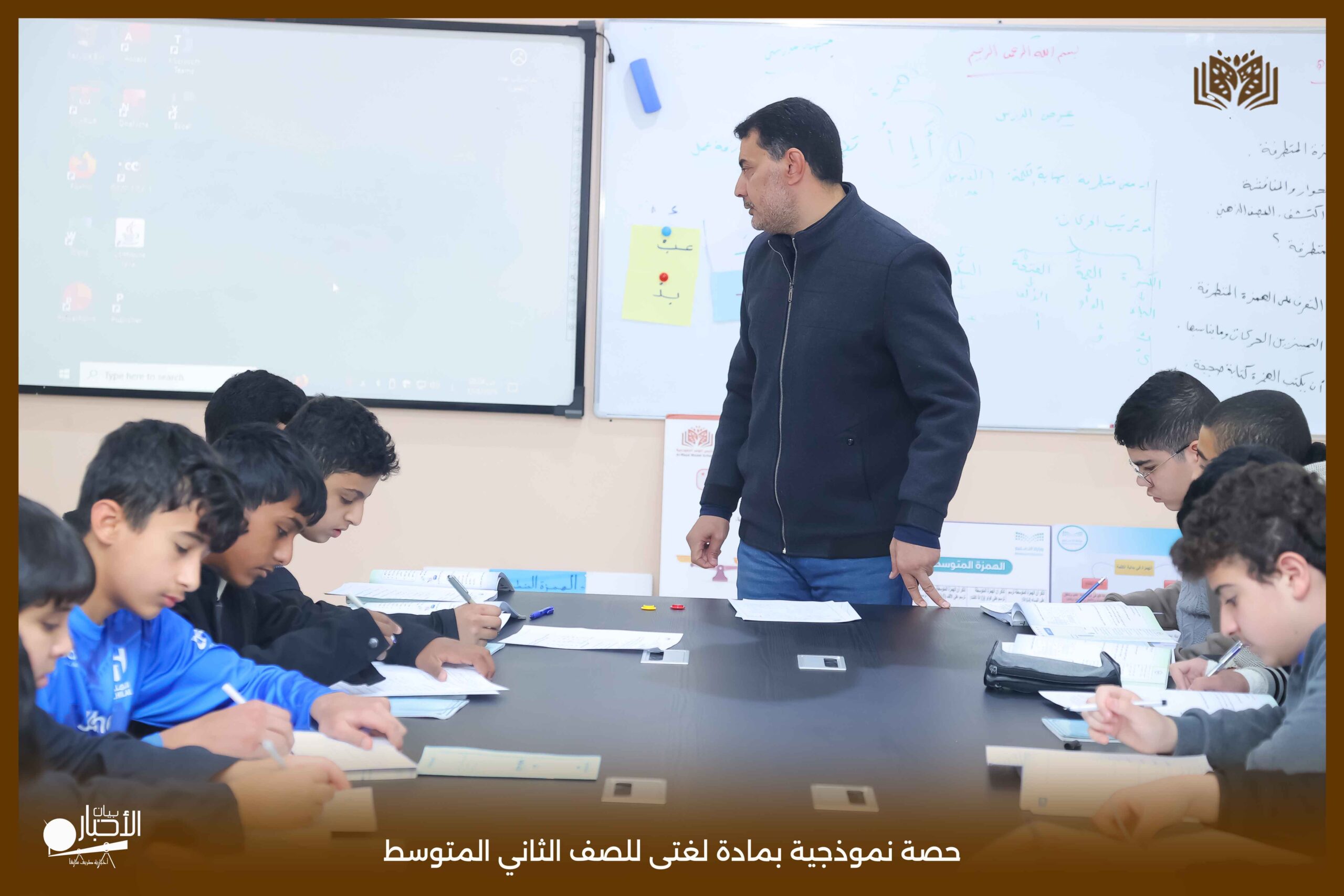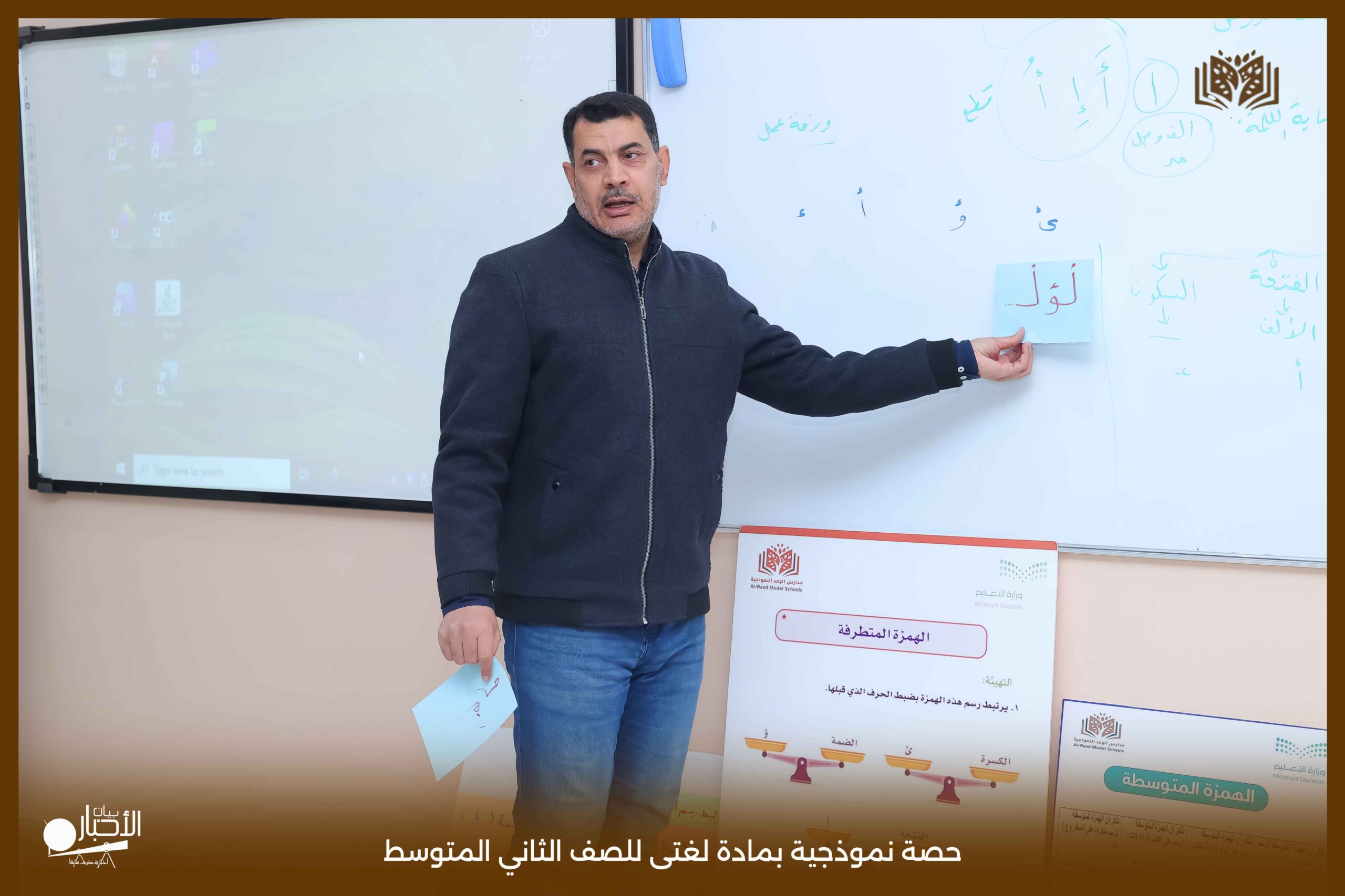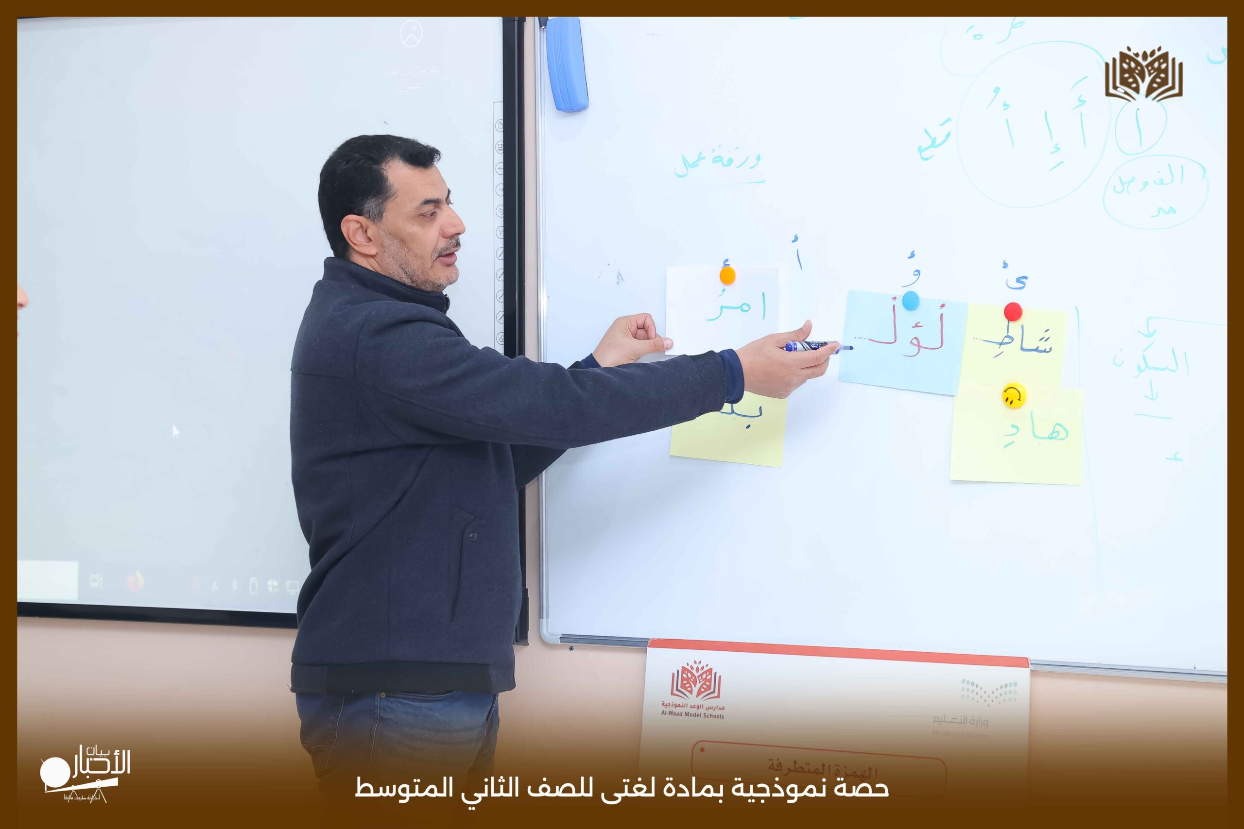 أقامت اليوم الثلاثاء مدارس الوعد النموذجية بمحافظة طريف حصة نموذجية بمادة لغتى للصف الثاني المتوسط بعنوان الرسم الإملائى (الهمزة المتطرفة) حيث عرض المعلم محاور الدرس باستخدام استراتيجيات التعلم النشط من عصف ذهني والنمذجة