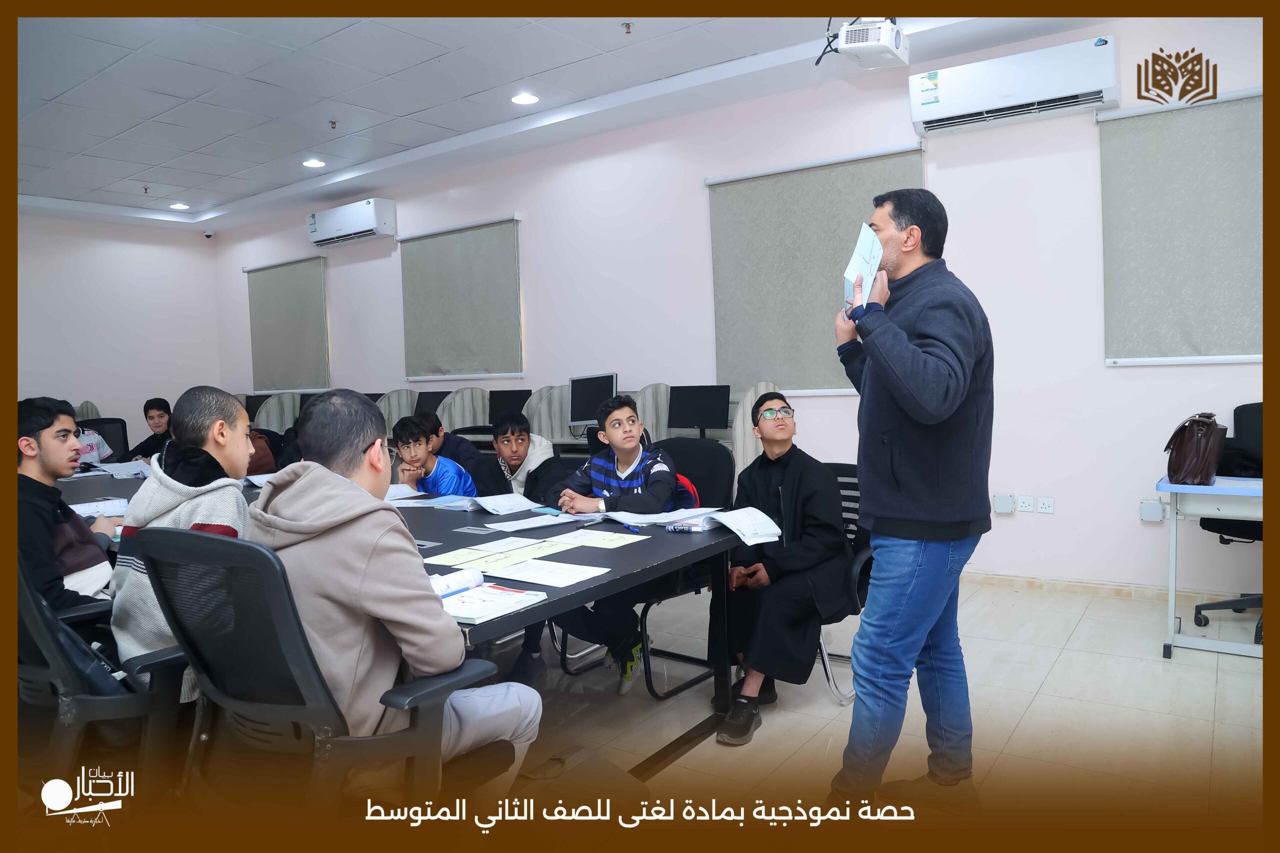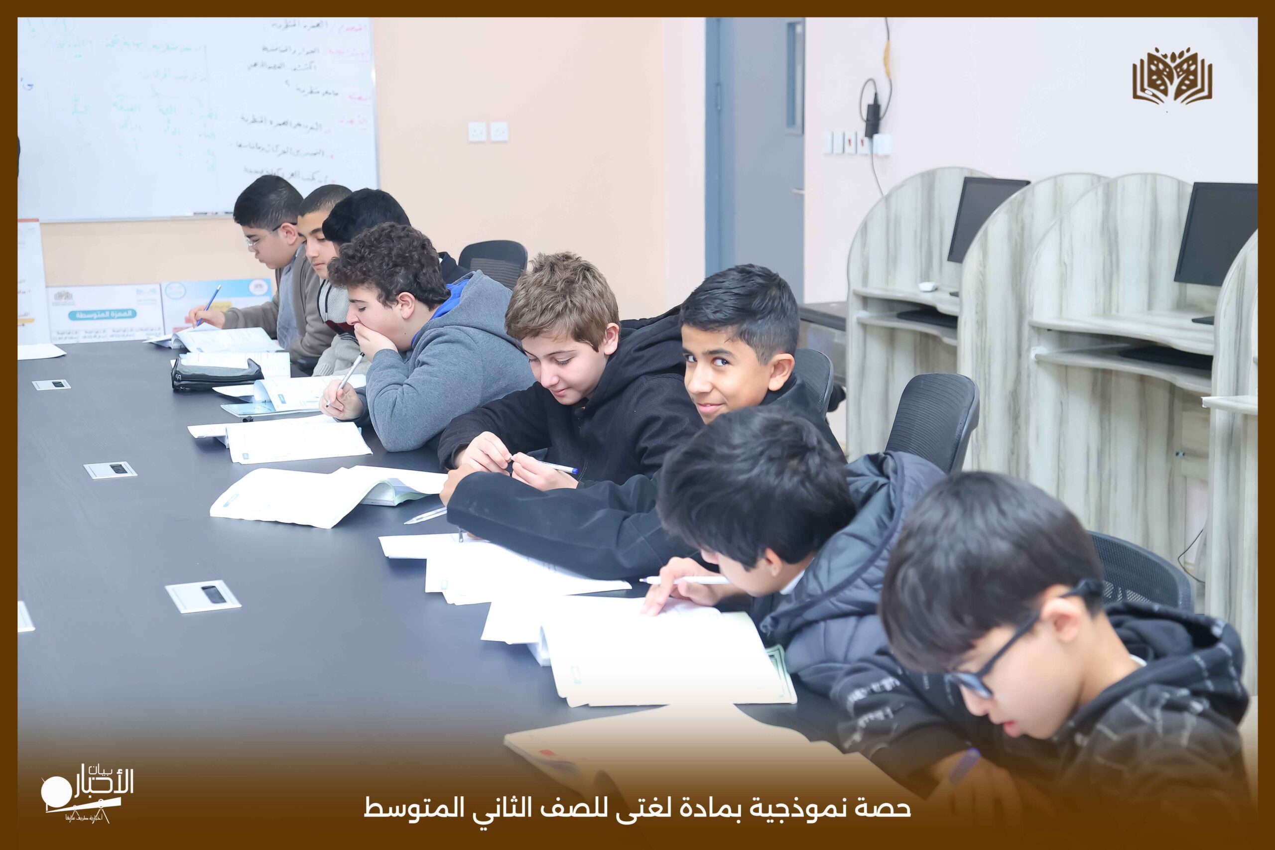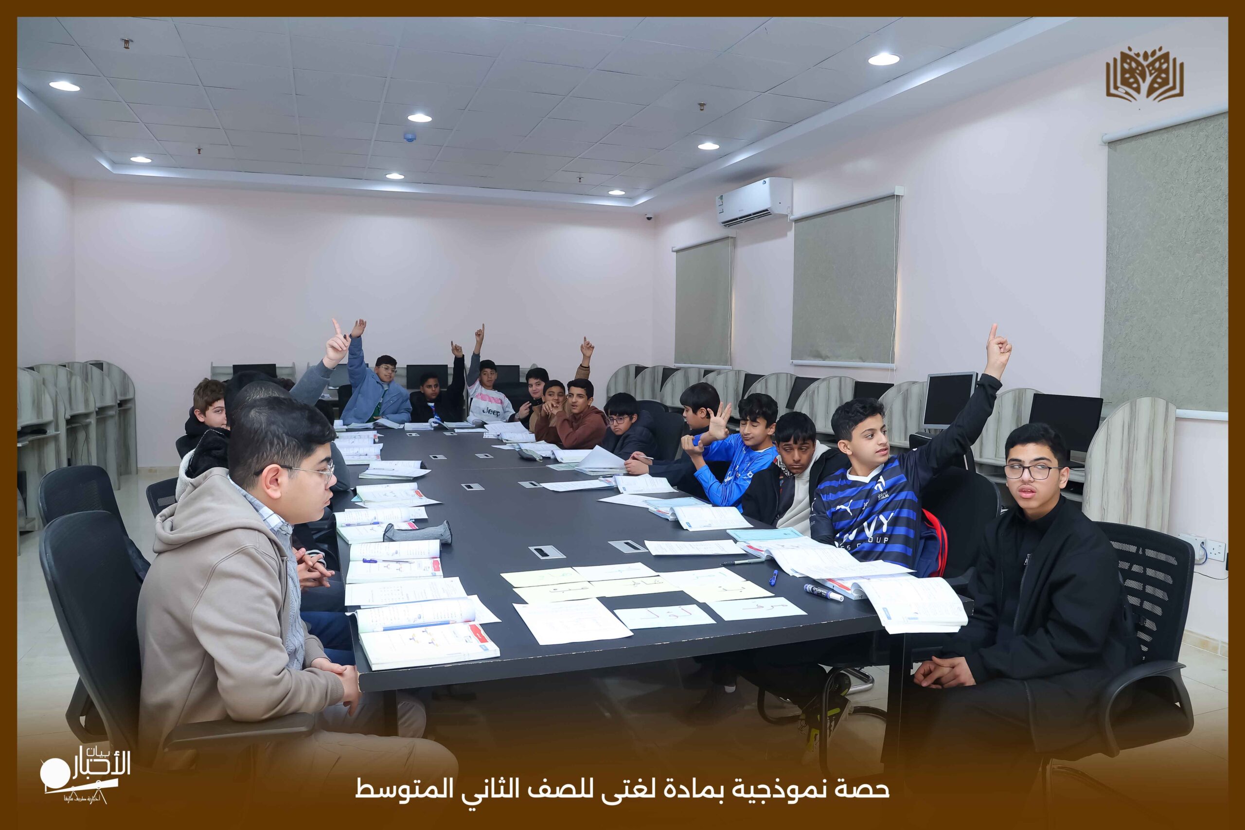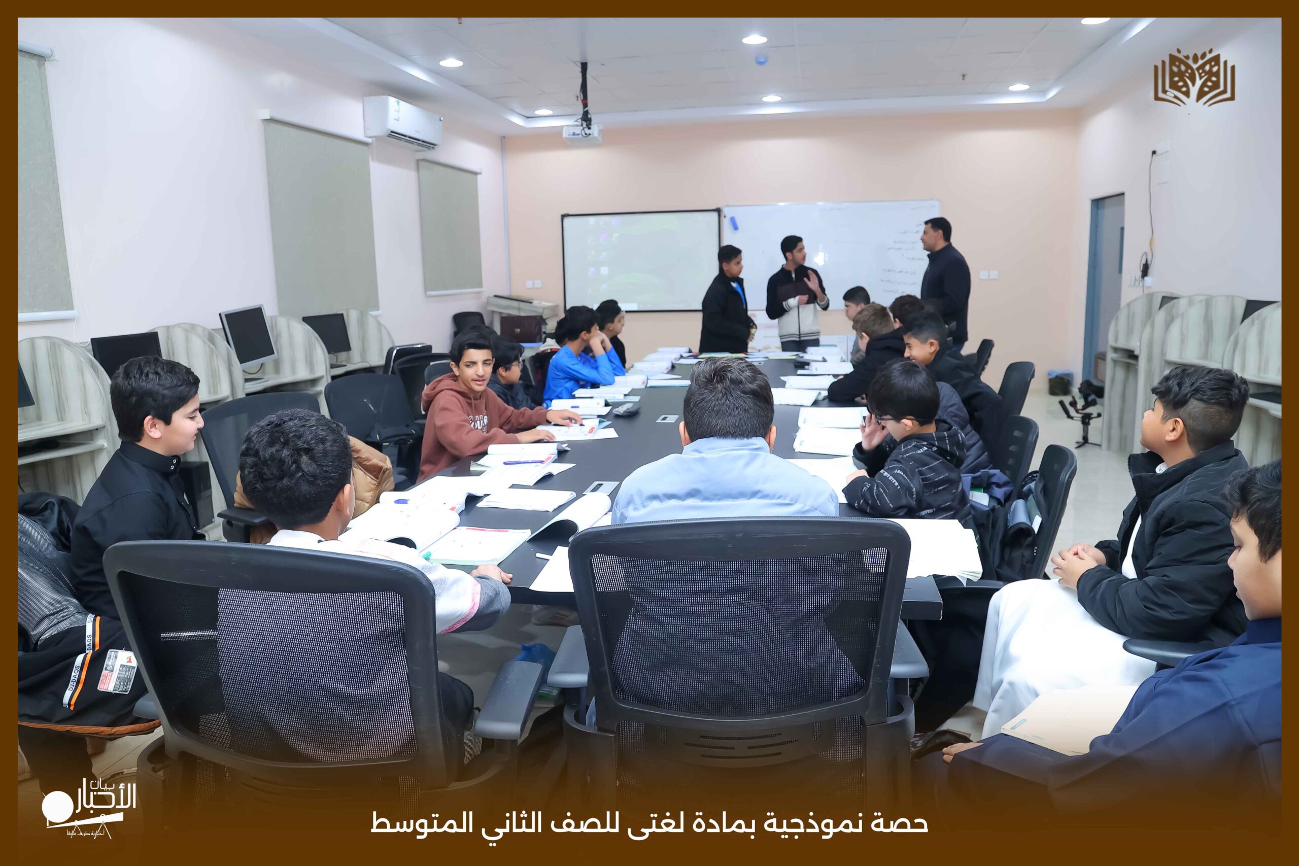 أقامت اليوم الثلاثاء مدارس الوعد النموذجية بمحافظة طريف حصة نموذجية بمادة لغتى للصف الثاني المتوسط بعنوان الرسم الإملائى (الهمزة المتطرفة) حيث عرض المعلم محاور الدرس باستخدام استراتيجيات التعلم النشط من عصف ذهني والنمذجة