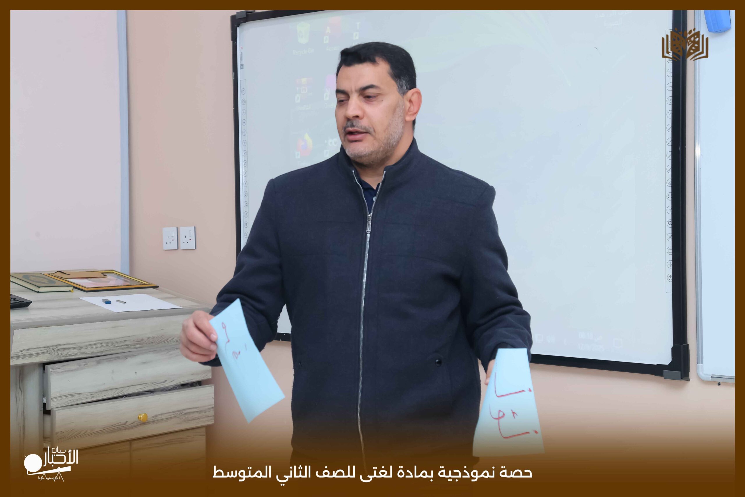وكانت الحصة بحضور مدير المدرسة الاستاذ عبدالرحمن حمود ونفذ الحصة الاستاذ احمد جمعة محمد معلم المادة.
