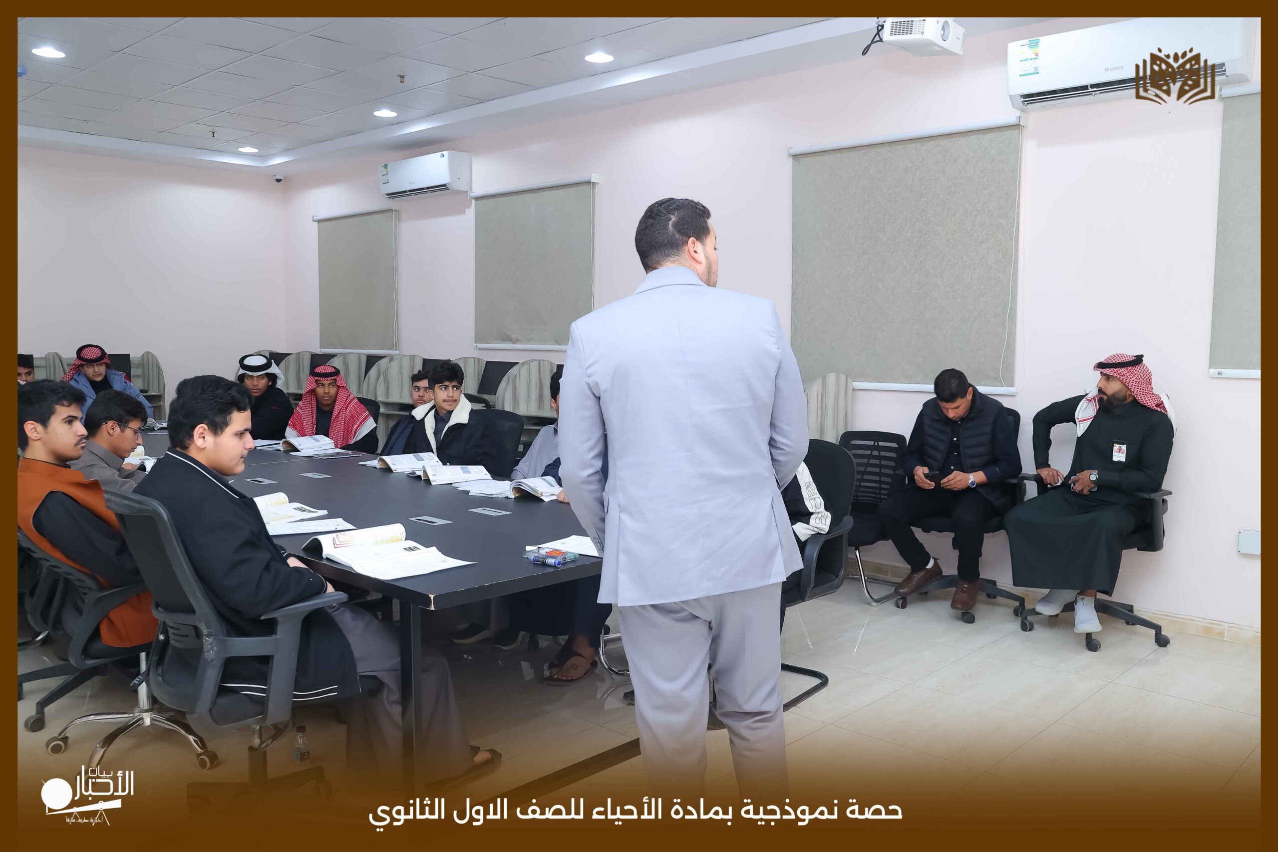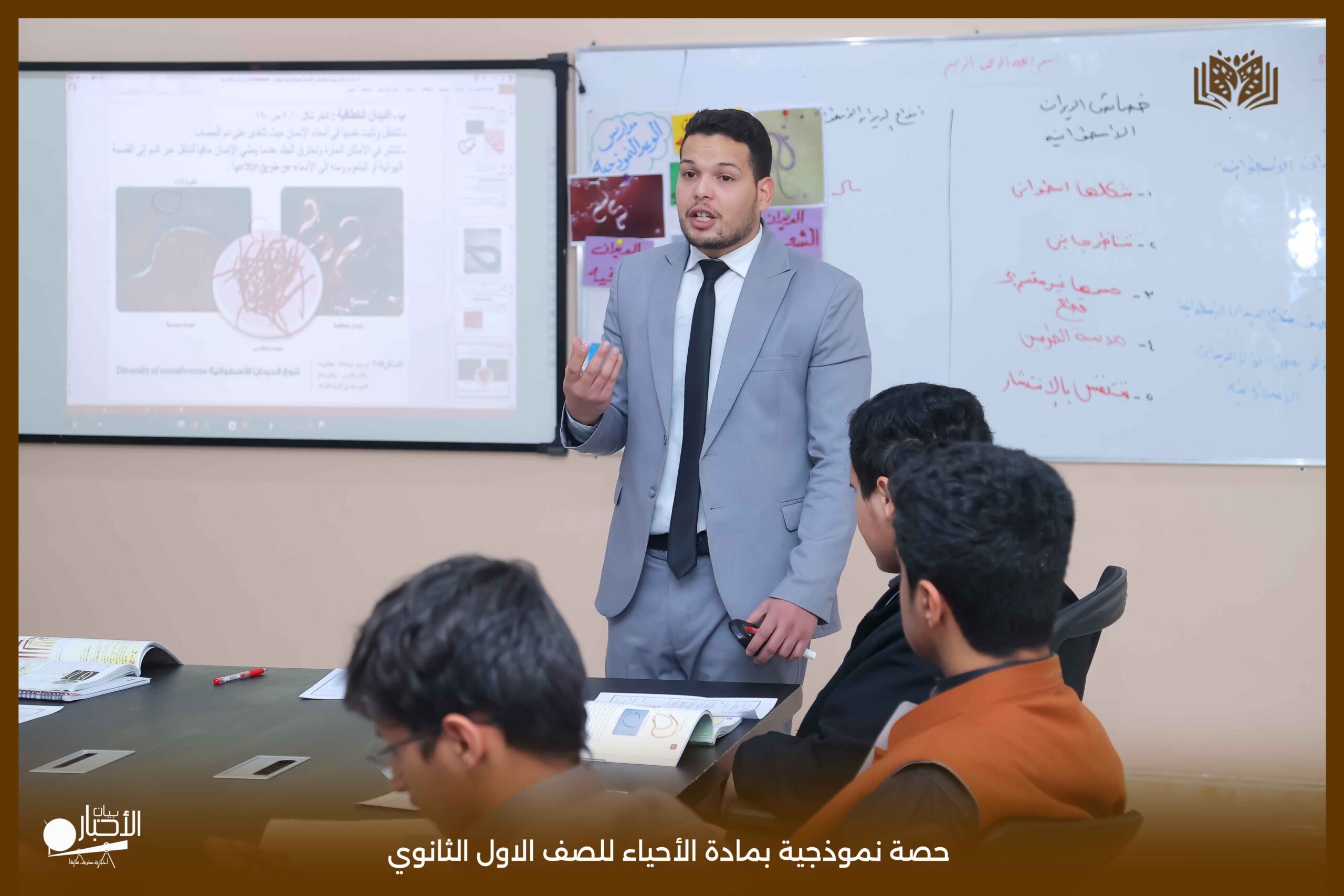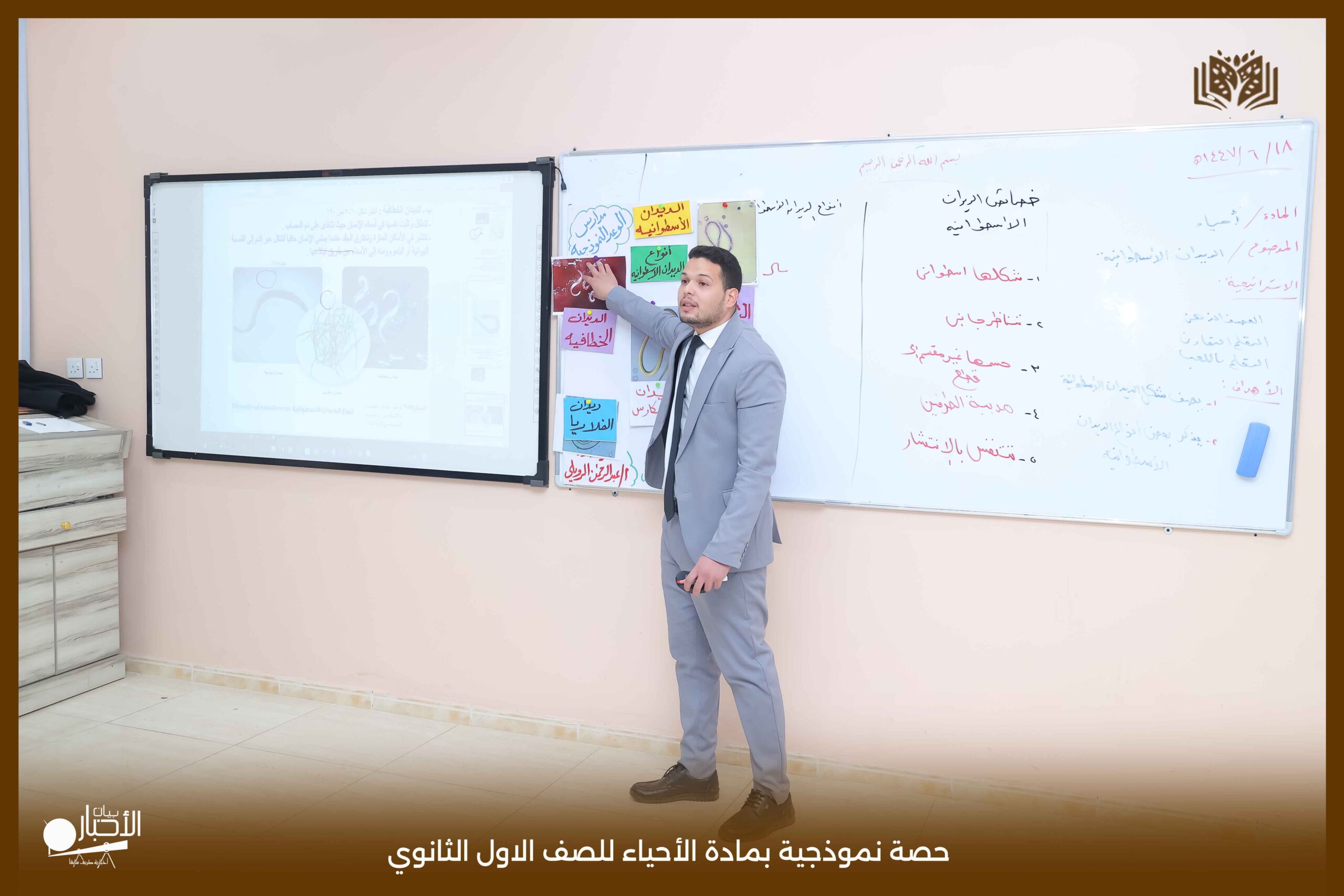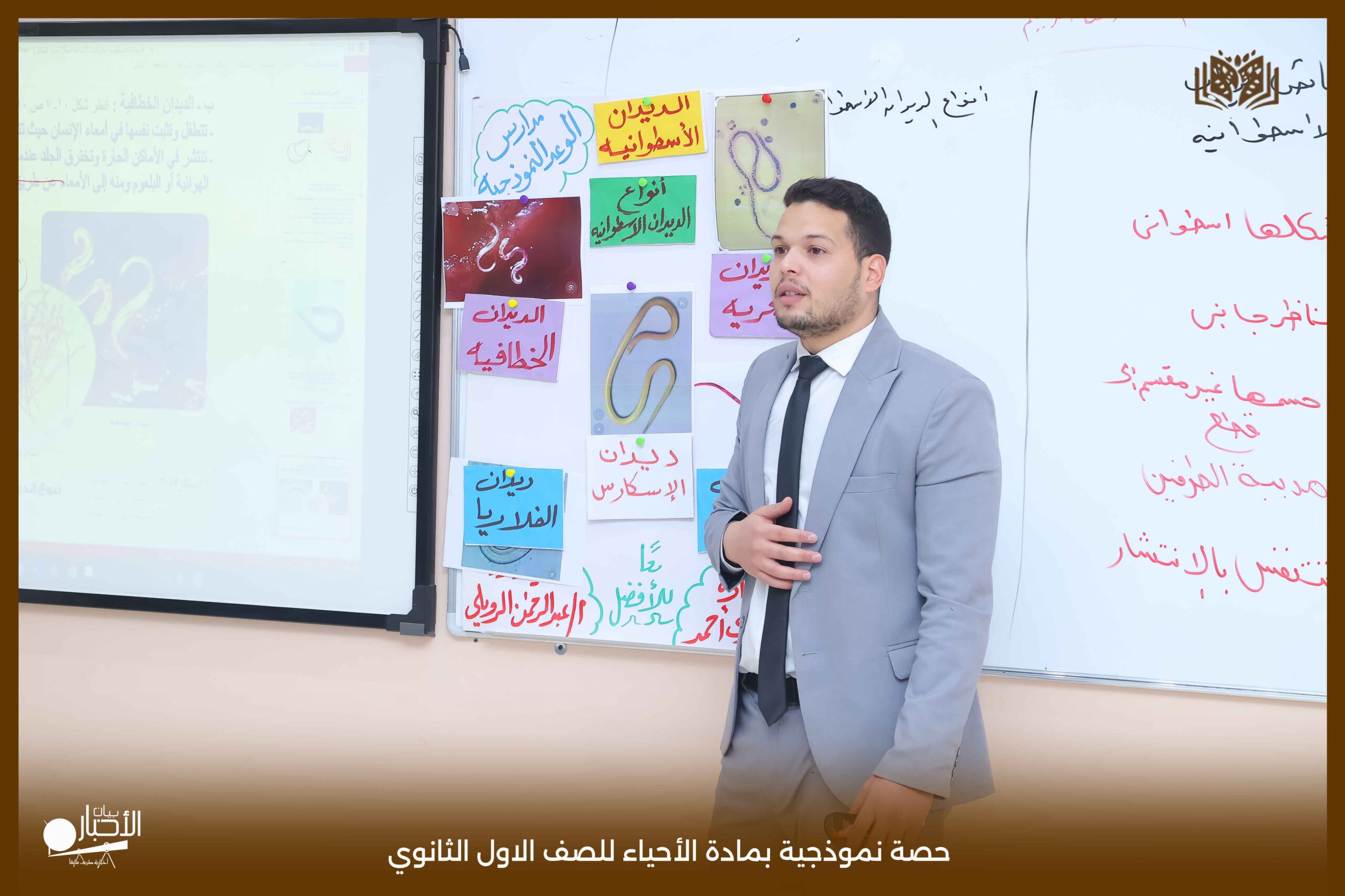 أقامت مدارس الوعد النموذجية بمحافظة طريف اليوم الثلاثاء حصة نموذجية بمادة الأحياء للصف الأول الثانوي بعنوان الديدان الأسطوانية حيث عرض المعلم محاورالدرس باستخدام استراتيجيات التعلم النشط من عصف ذهني والنمذجة وتعلم تعاوني وتعلم باللعب كما استخدم شاشة العرض وعرض الدرس بوربونت ووسيلة تعليمية وبطاقات تخدم الدرس مما ساعد الطلاب على فهمه واتقانه.