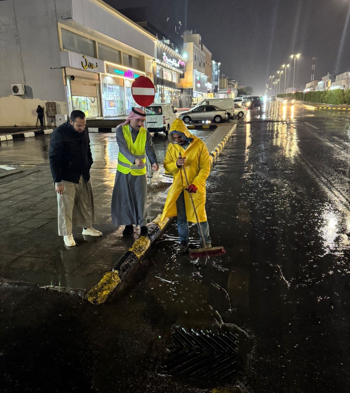 وأوضحت البلدية أن فرقها تعمل على مدار الساعة لمواجهة آثار الأمطار، عبر تنفيذ أعمال الصيانة الفورية ومعالجة التجمعات المائية، بما يسهم في تسهيل حركة المركبات والحفاظ على السلامة العامة.