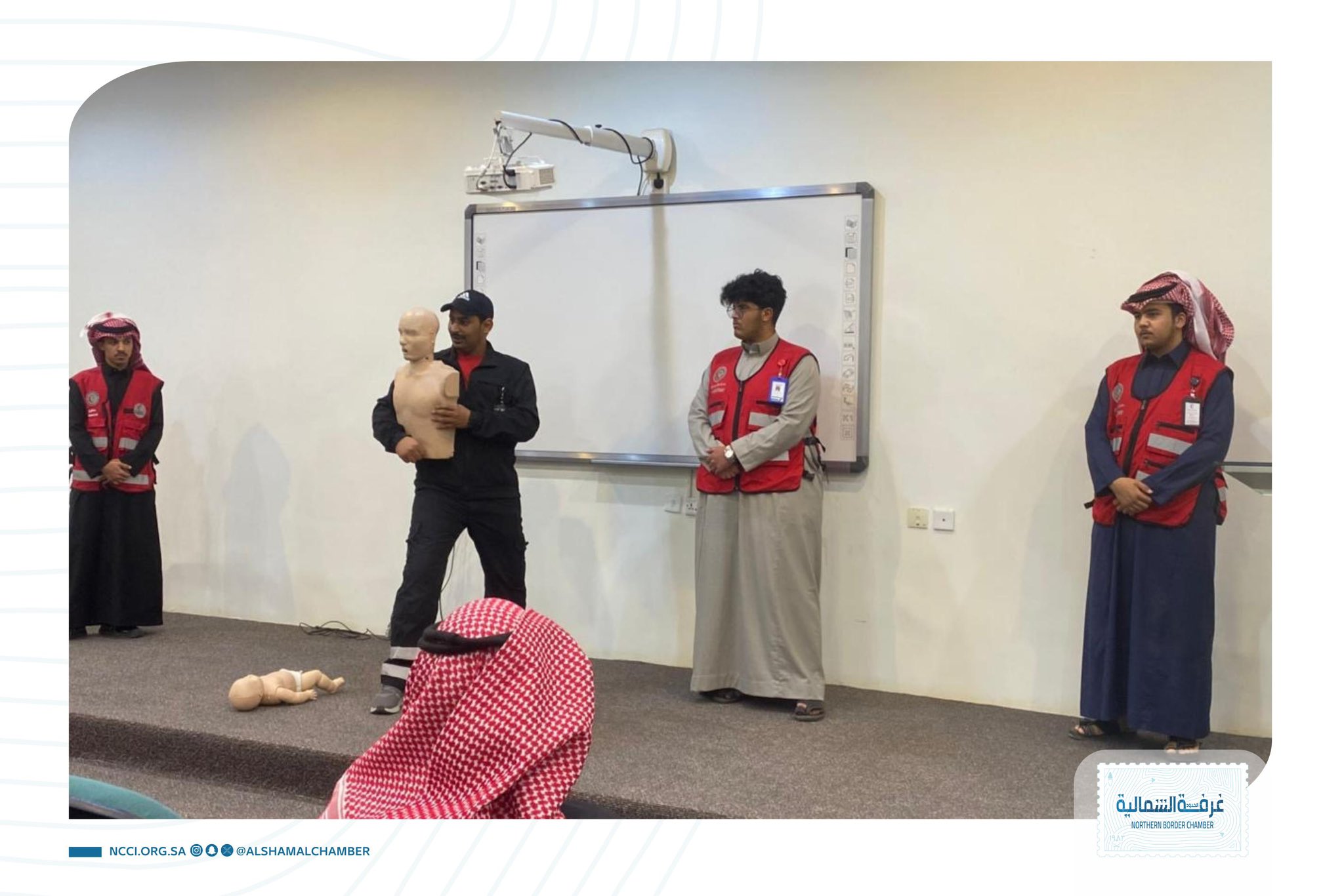 أقامت غرفة الشمالية فرع طريف دورة تدريبية ضمن برنامج سفراء الحياة للإسعافات الأولية، بالتعاون مع هيئة الهلال الأحمر السعودي، بهدف إكساب المتدربين المهارات الأساسية للتعامل السليم مع الحالات الطارئة، ورفع مستوى الجاهزية والإلمام بالإجراءات الصحيحة للإسعاف الأولي.