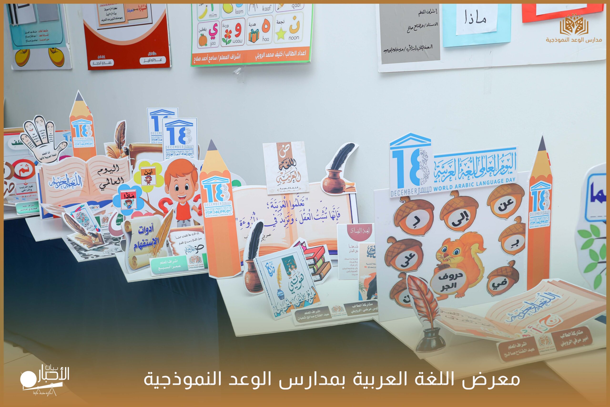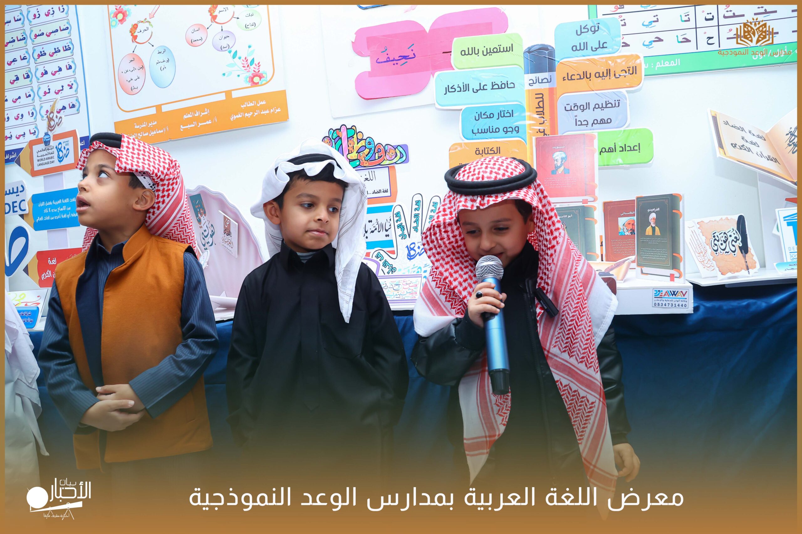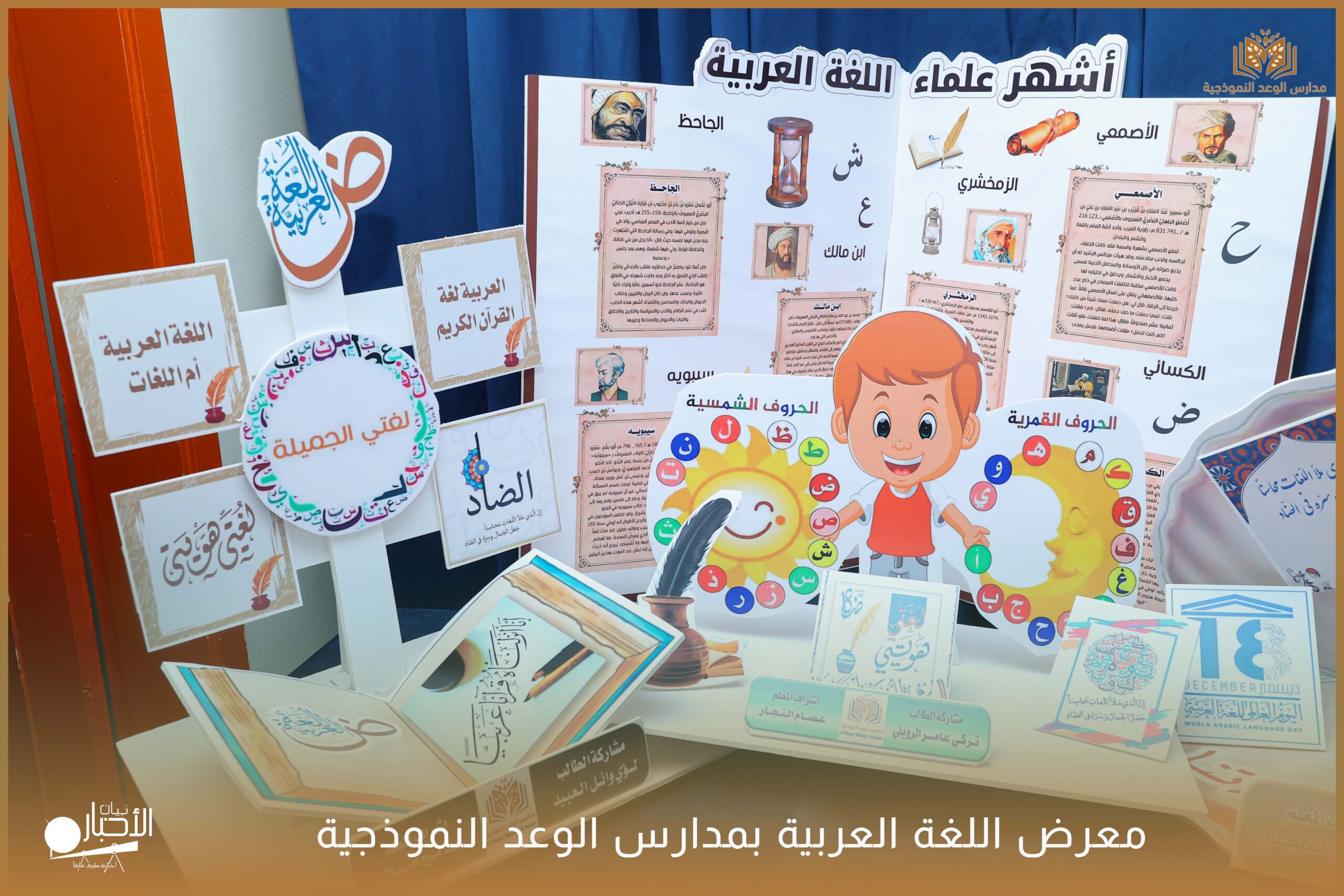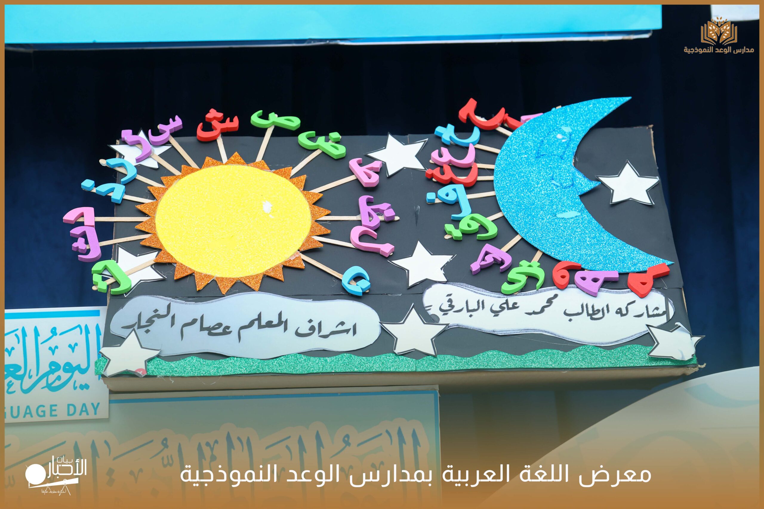 أقامت مدارس الوعد النموذجية الأهلية ( المرحلة الابتدائية ) معرضًا للغة العربية وذلك ضمن فعاليات اليوم العالمي للغة العربية وذلك بحضور كلا من الأستاذ عريف حسيان الرويلي والأستاذ طلال لهيلم العنزي والأستاذ عبدالرحمن حمود الرويلي والأستاذ ساجر خيران الرويلي وبعض من أولياء أمور الطلاب .