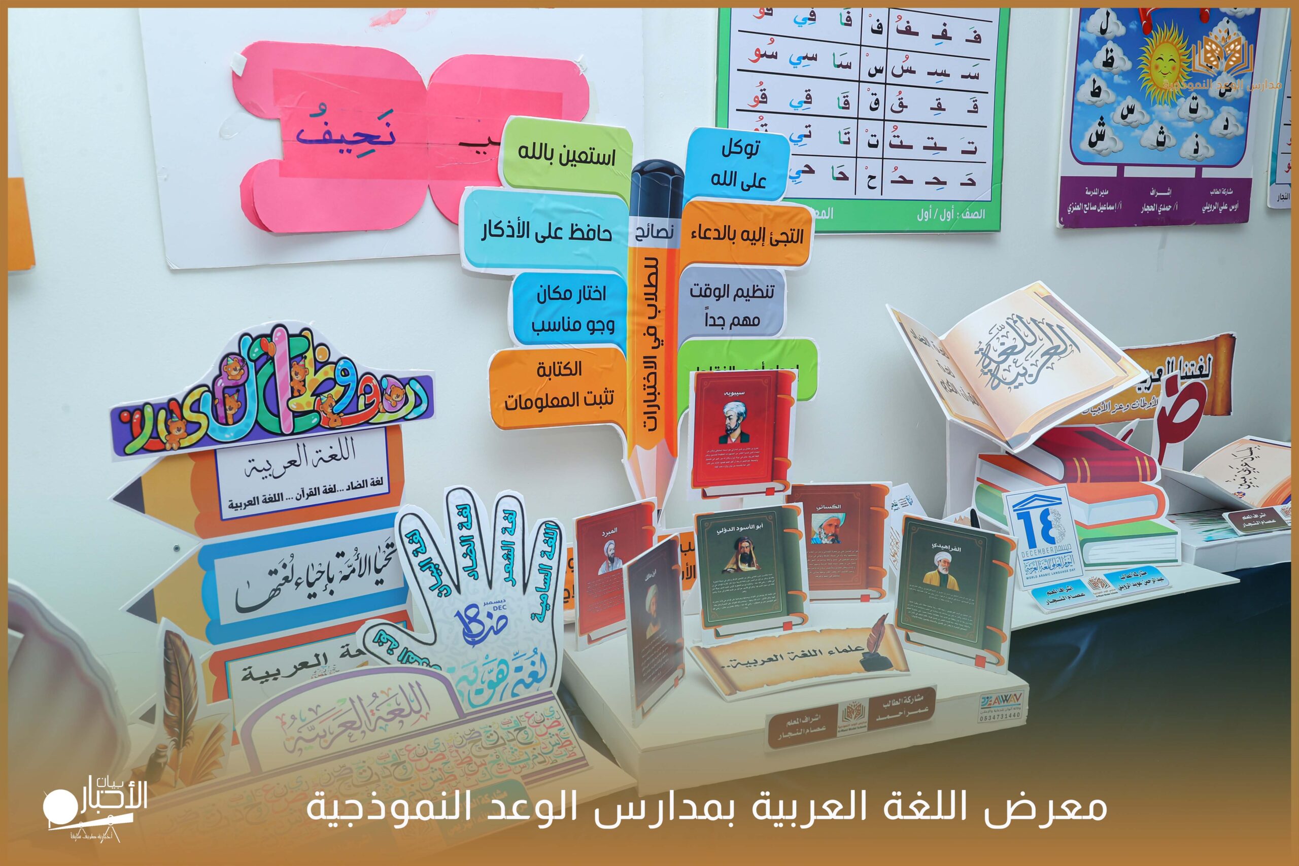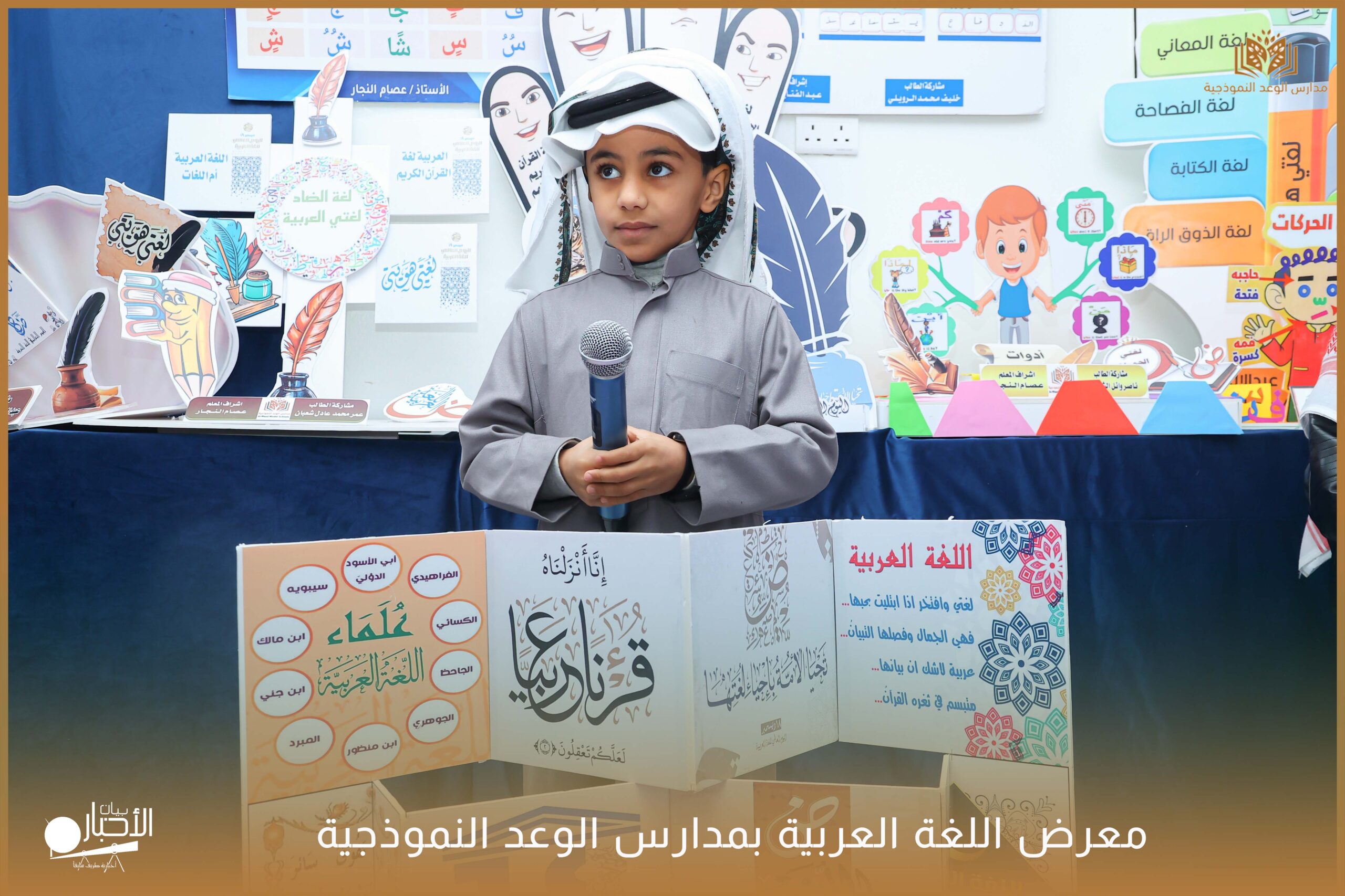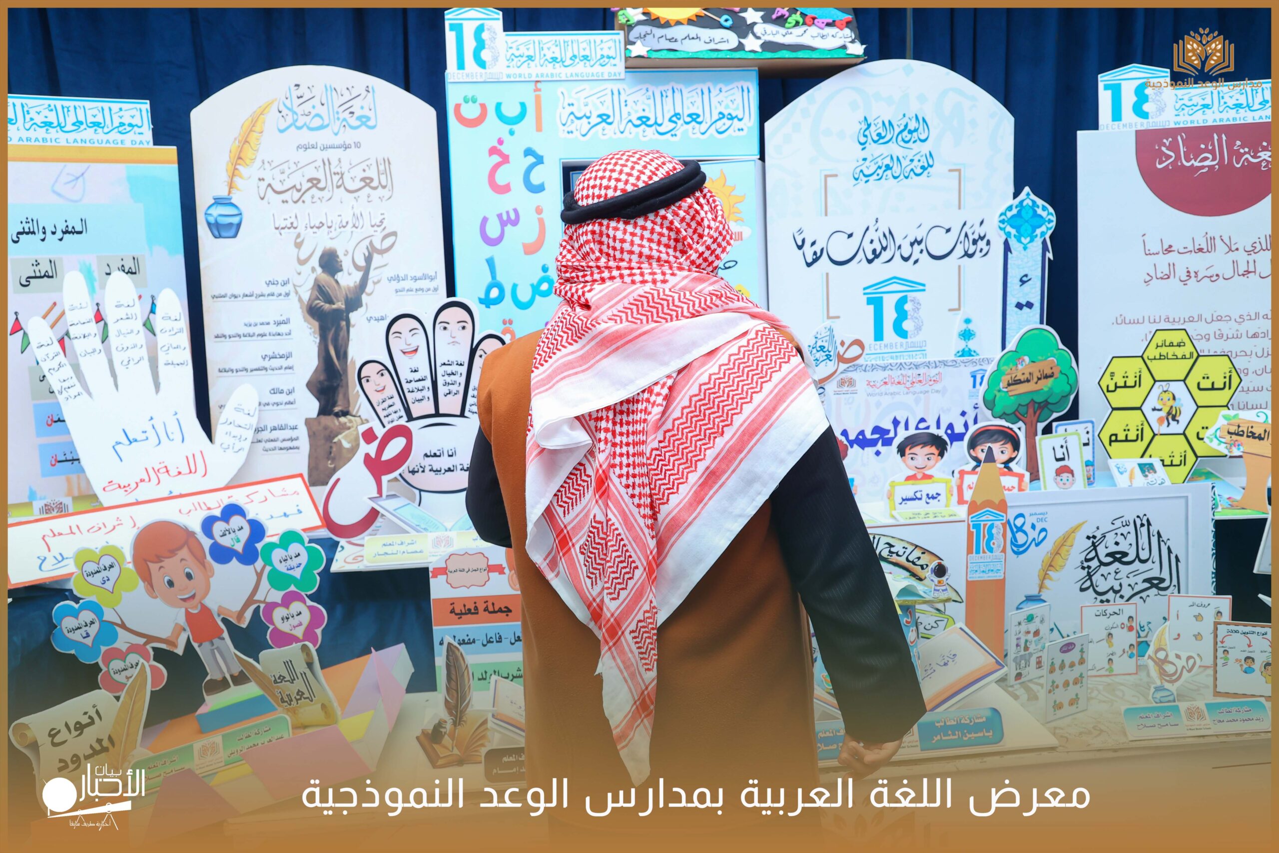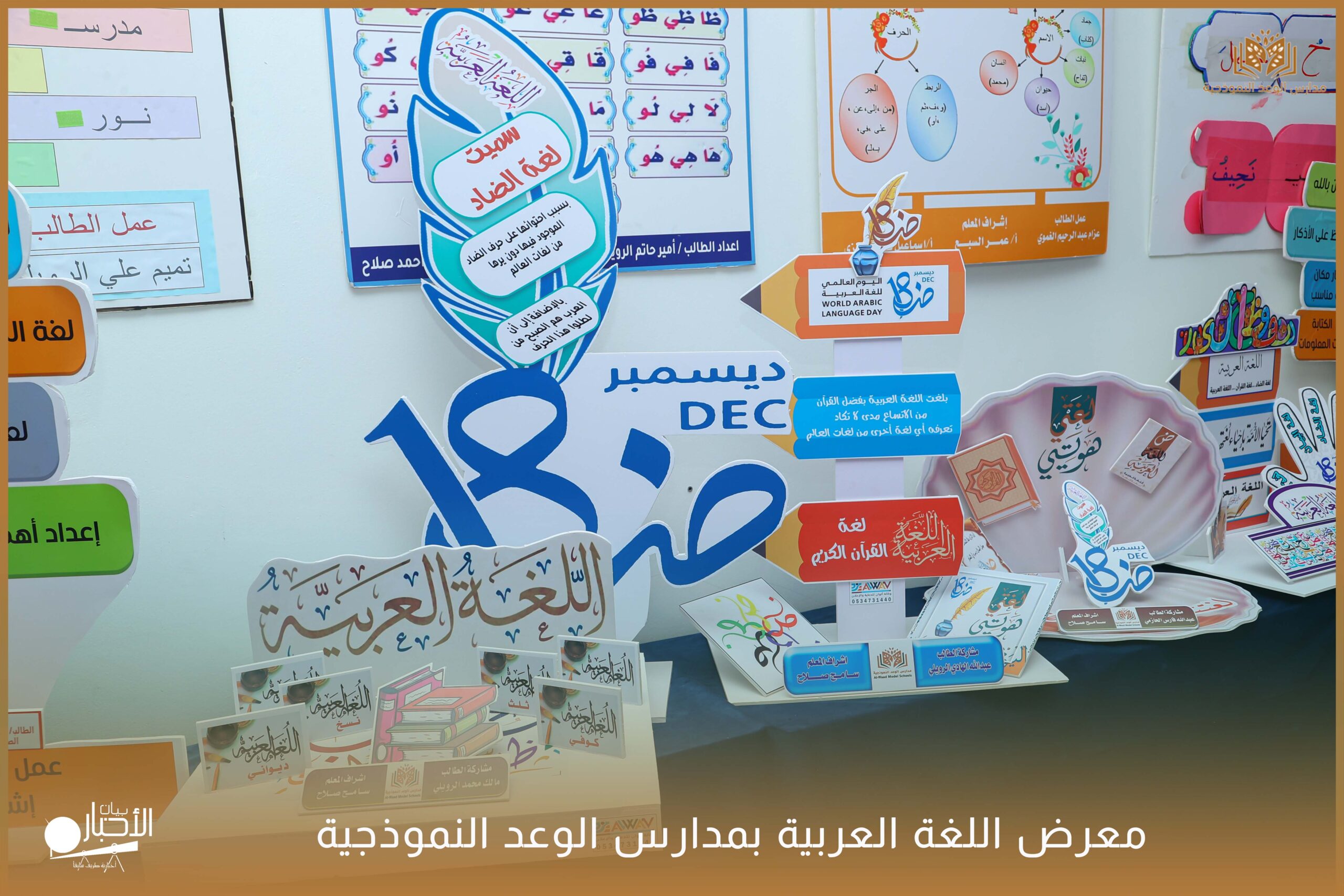 أقامت مدارس الوعد النموذجية الأهلية ( المرحلة الابتدائية ) معرضًا للغة العربية وذلك ضمن فعاليات اليوم العالمي للغة العربية وذلك بحضور كلا من الأستاذ عريف حسيان الرويلي والأستاذ طلال لهيلم العنزي والأستاذ عبدالرحمن حمود الرويلي والأستاذ ساجر خيران الرويلي وبعض من أولياء أمور الطلاب .