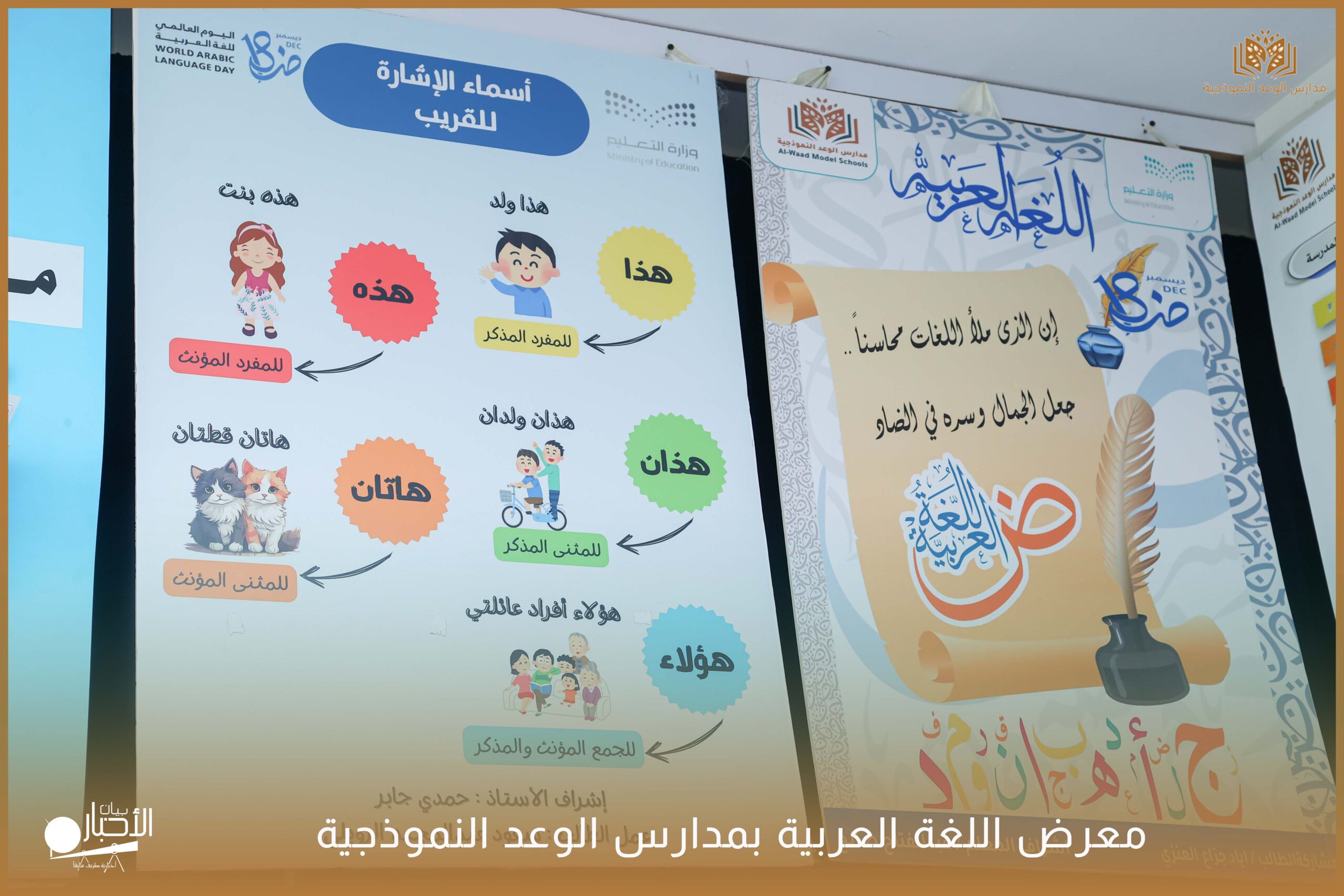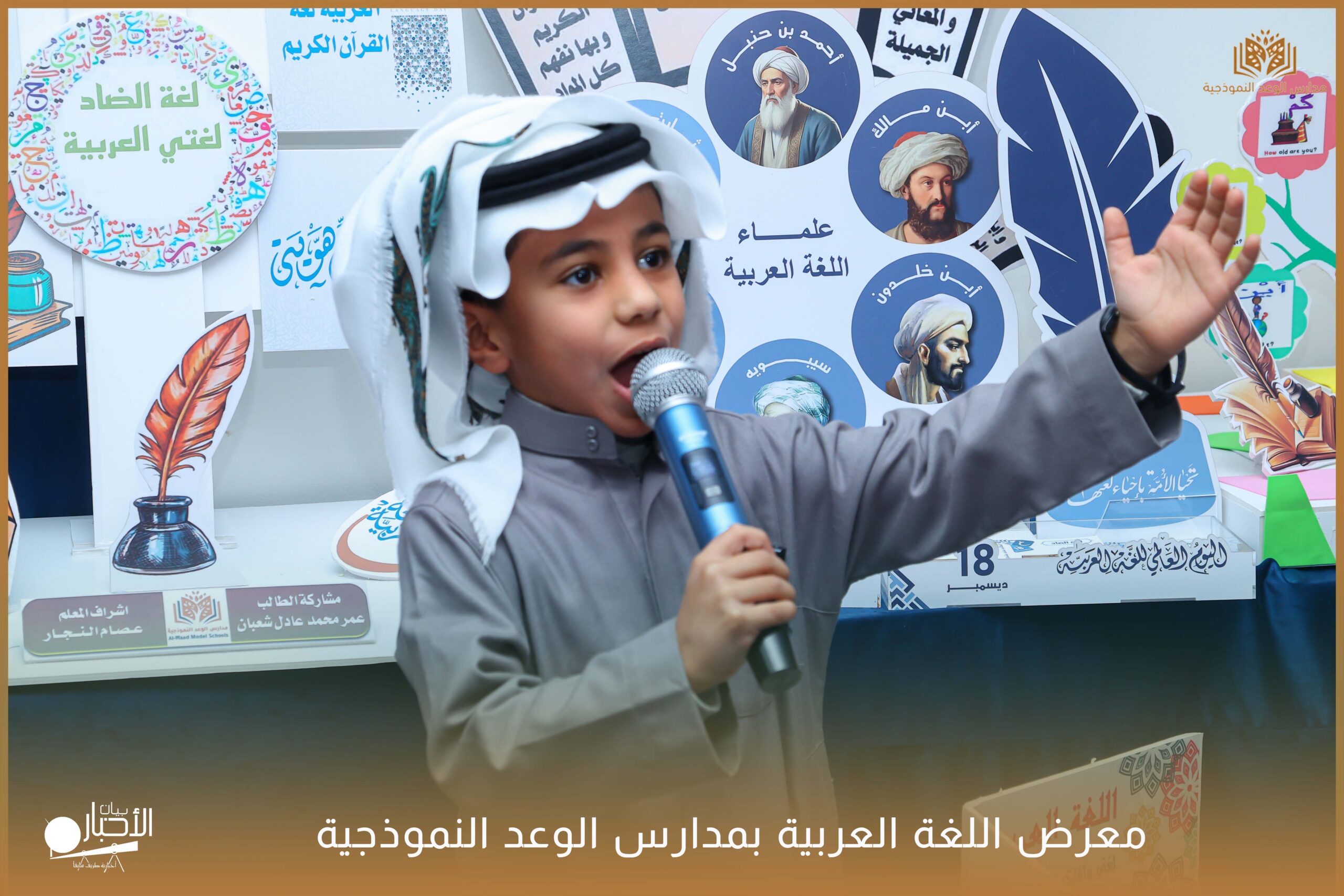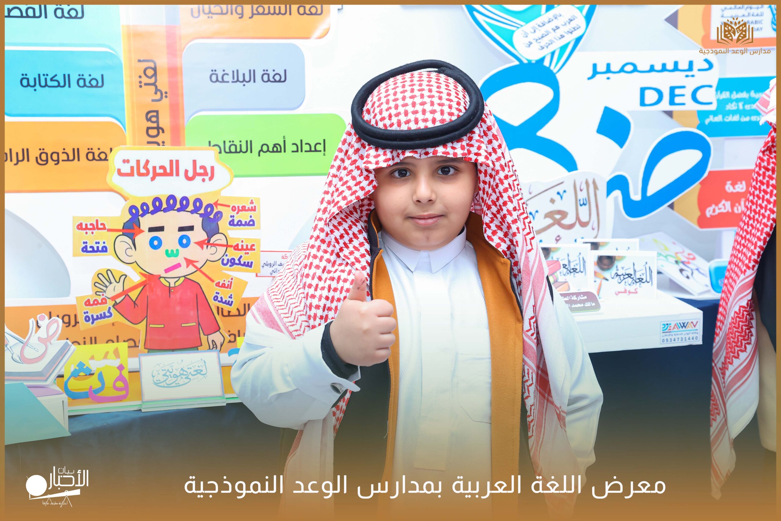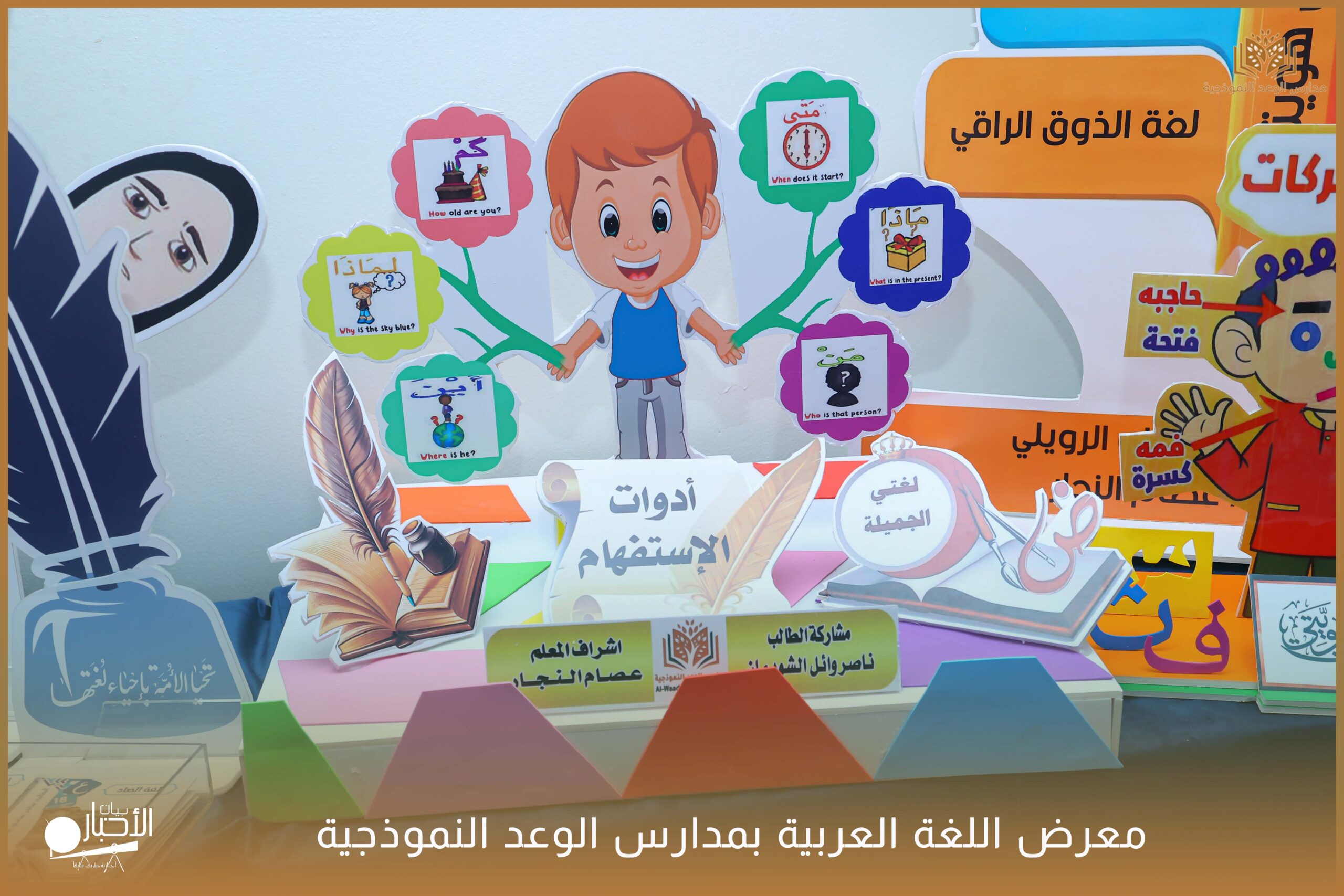 أقامت مدارس الوعد النموذجية الأهلية ( المرحلة الابتدائية ) معرضًا للغة العربية وذلك ضمن فعاليات اليوم العالمي للغة العربية وذلك بحضور كلا من الأستاذ عريف حسيان الرويلي والأستاذ طلال لهيلم العنزي والأستاذ عبدالرحمن حمود الرويلي والأستاذ ساجر خيران الرويلي وبعض من أولياء أمور الطلاب .