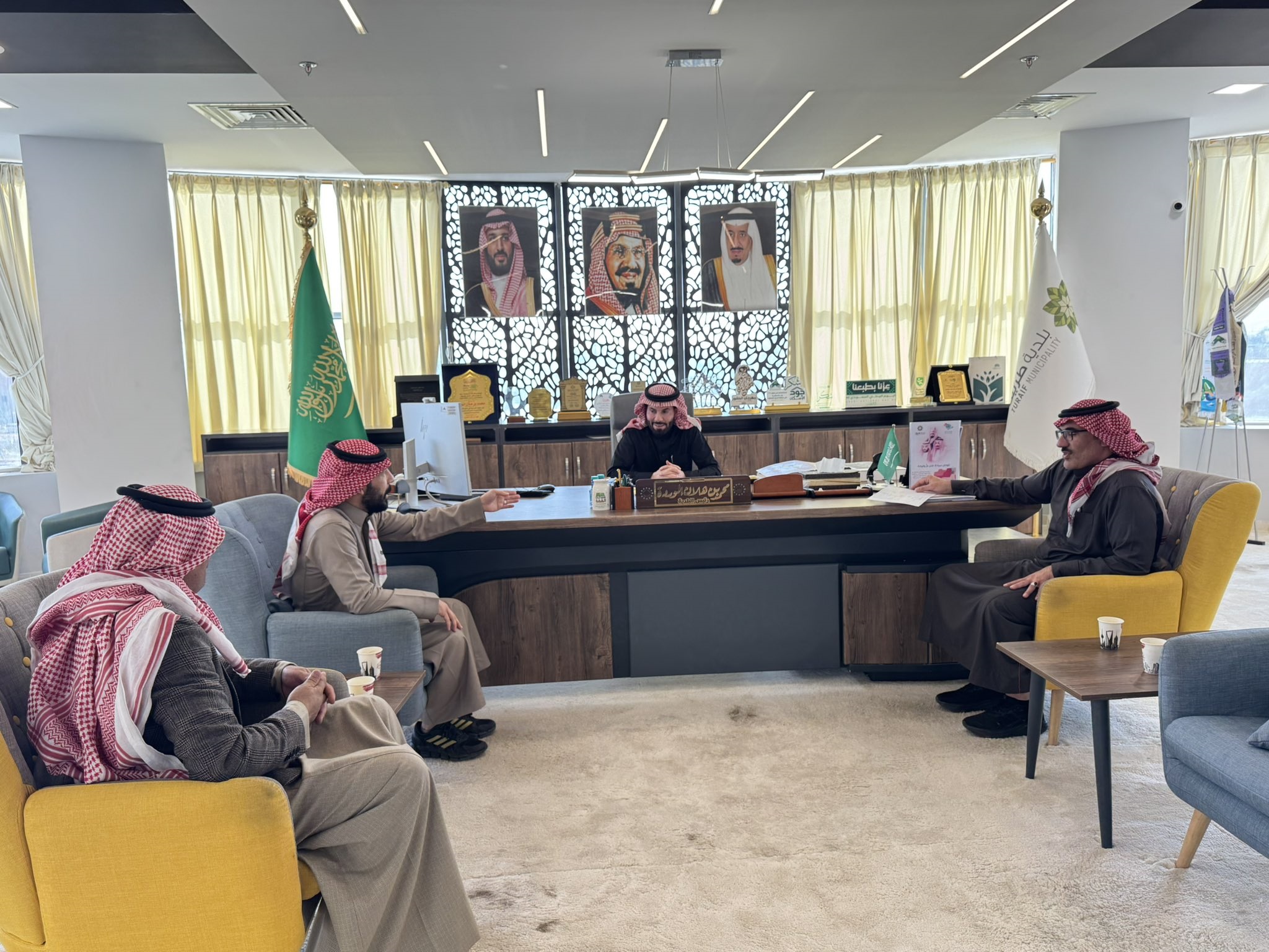 التقى رئيس بلدية محافظة طريف، الدكتور محمد هلان الوردة، بمدير مكتب وزارة البيئة والمياه والزراعة بالمحافظة، الأستاذ محمد القصير. وناقش الطرفان خلال اللقاء سبل التعاون بين البلدية والمكتب لتعزيز الخدمات والبرامج البيئية والزراعية في المحافظة.