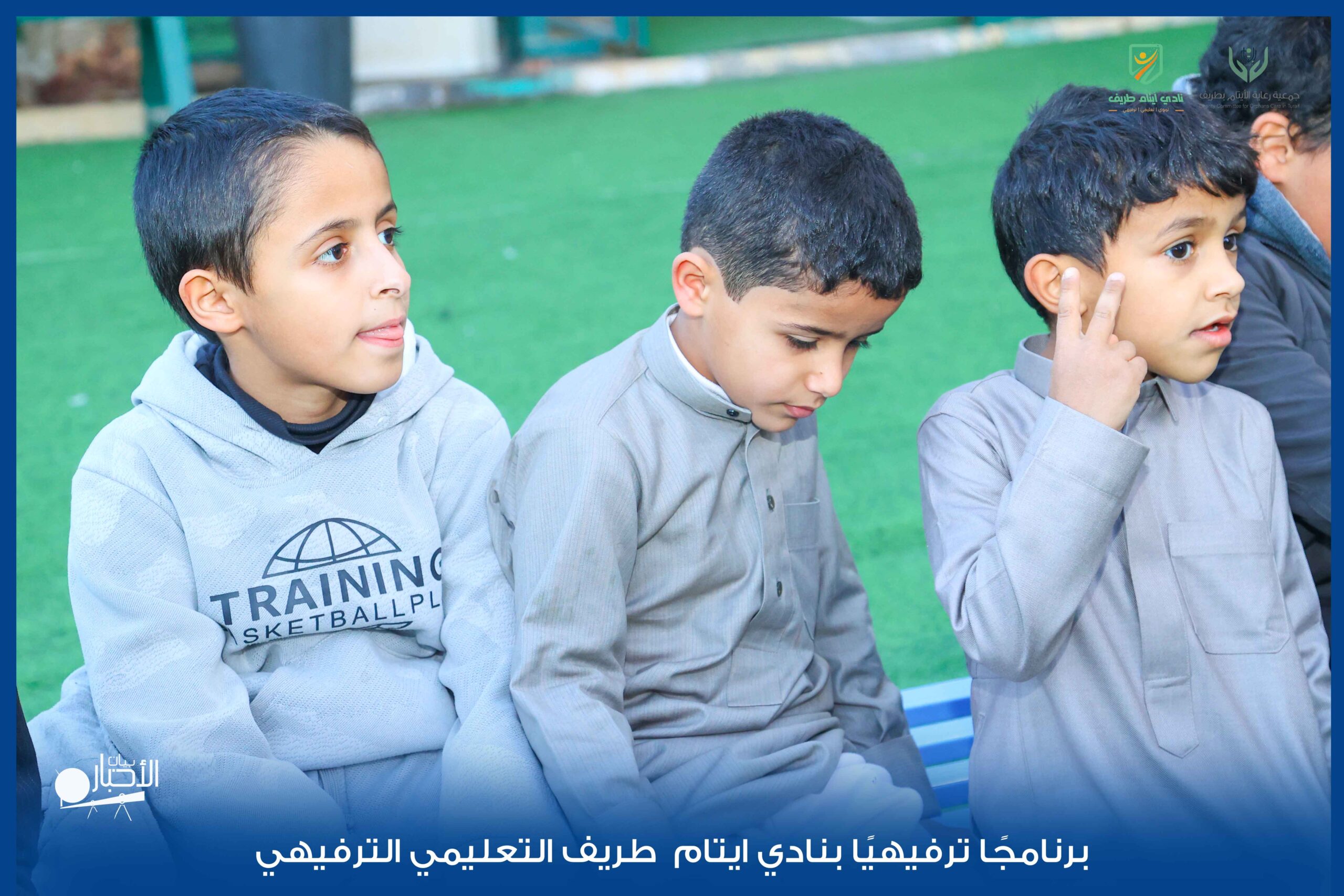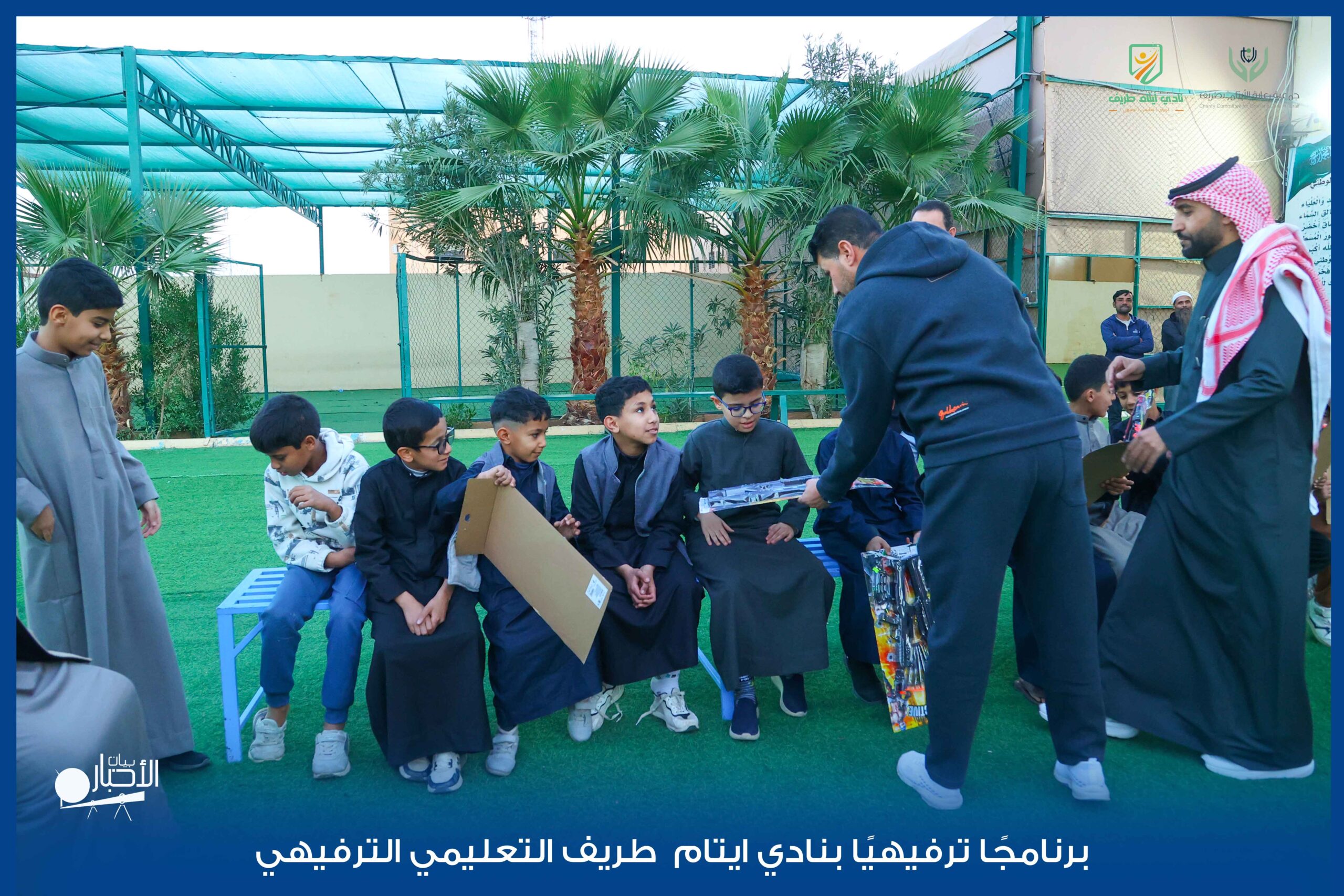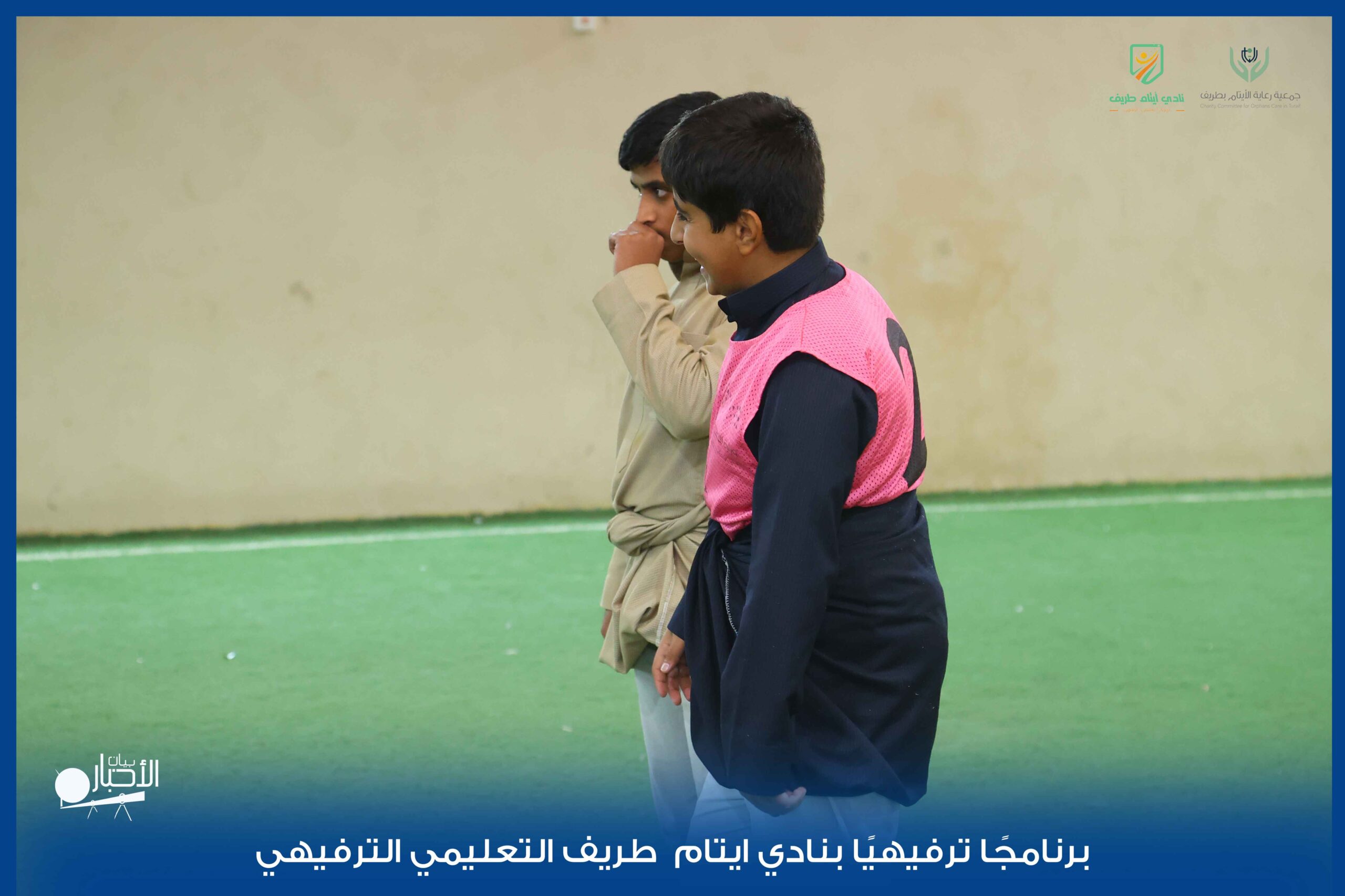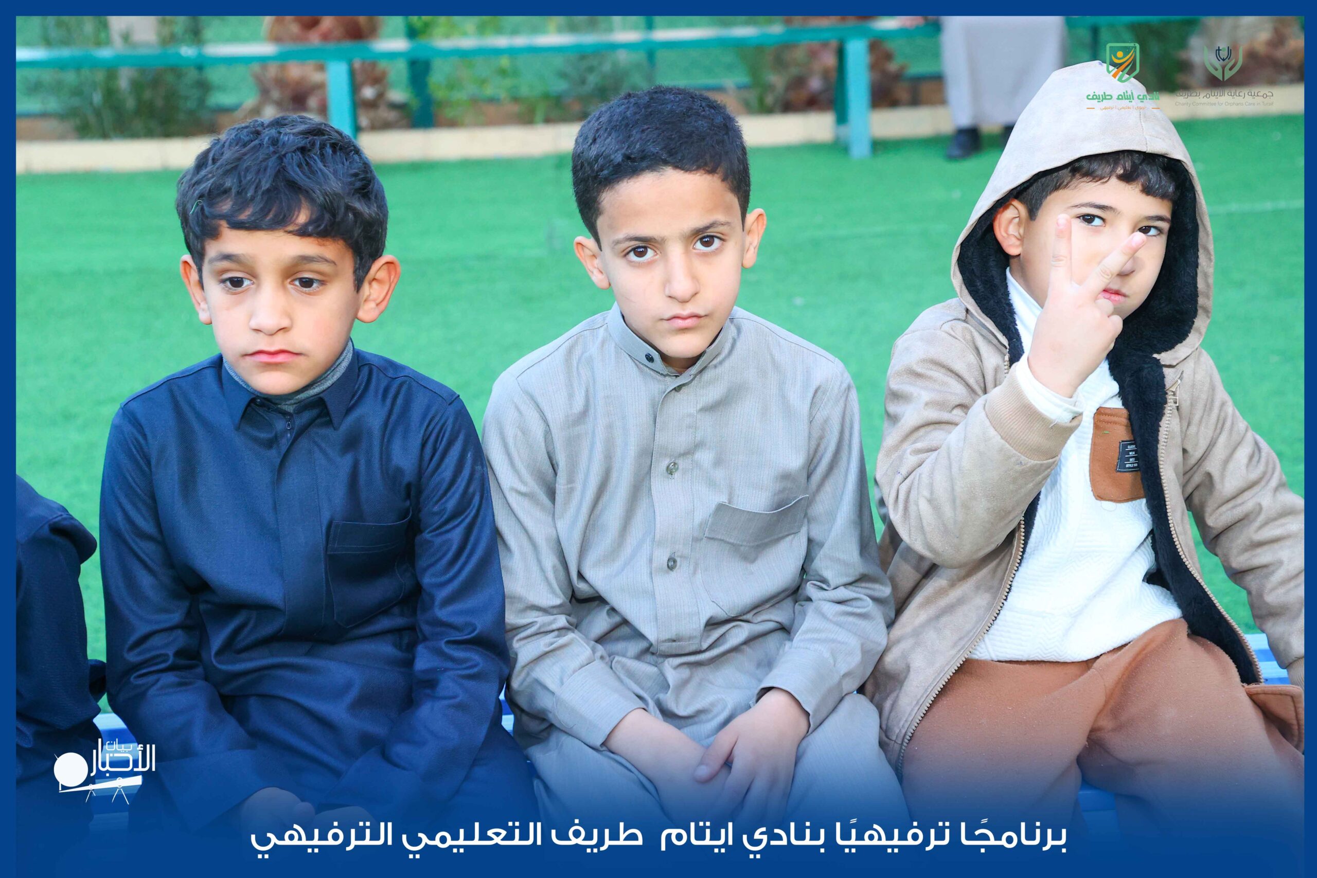 أقام نادي أيتام طريف التعليمي الترفيهي برنامجًا ترفيهيًا لطلاب النادي وذلك ختامًا للفصل الدراسي الأول للعام 1447هـ حيث أقيمت فعاليات للطلاب ومباريات لكرة القدم، ثم خُتم البرنامج بتسليم الطلاب مكافآت نظير جهودهم المبذولة طيلة الفصل الدراسي ٠