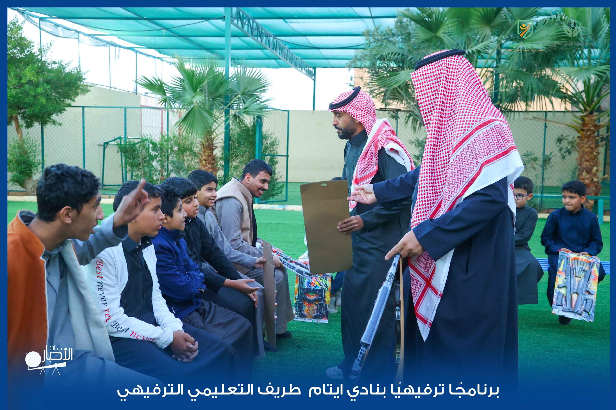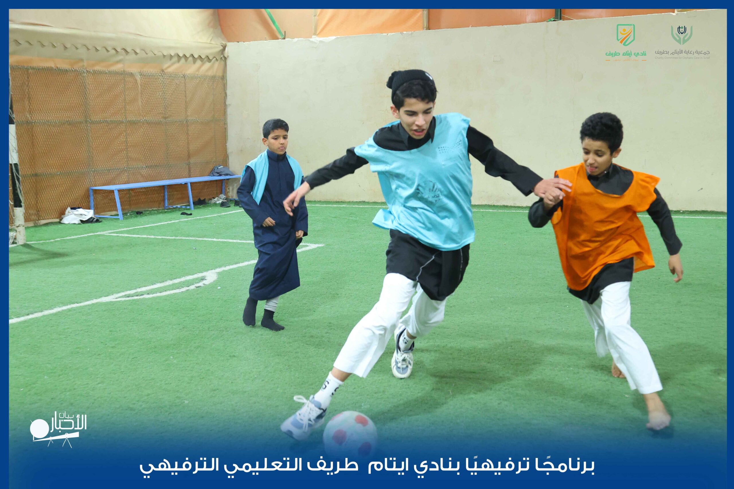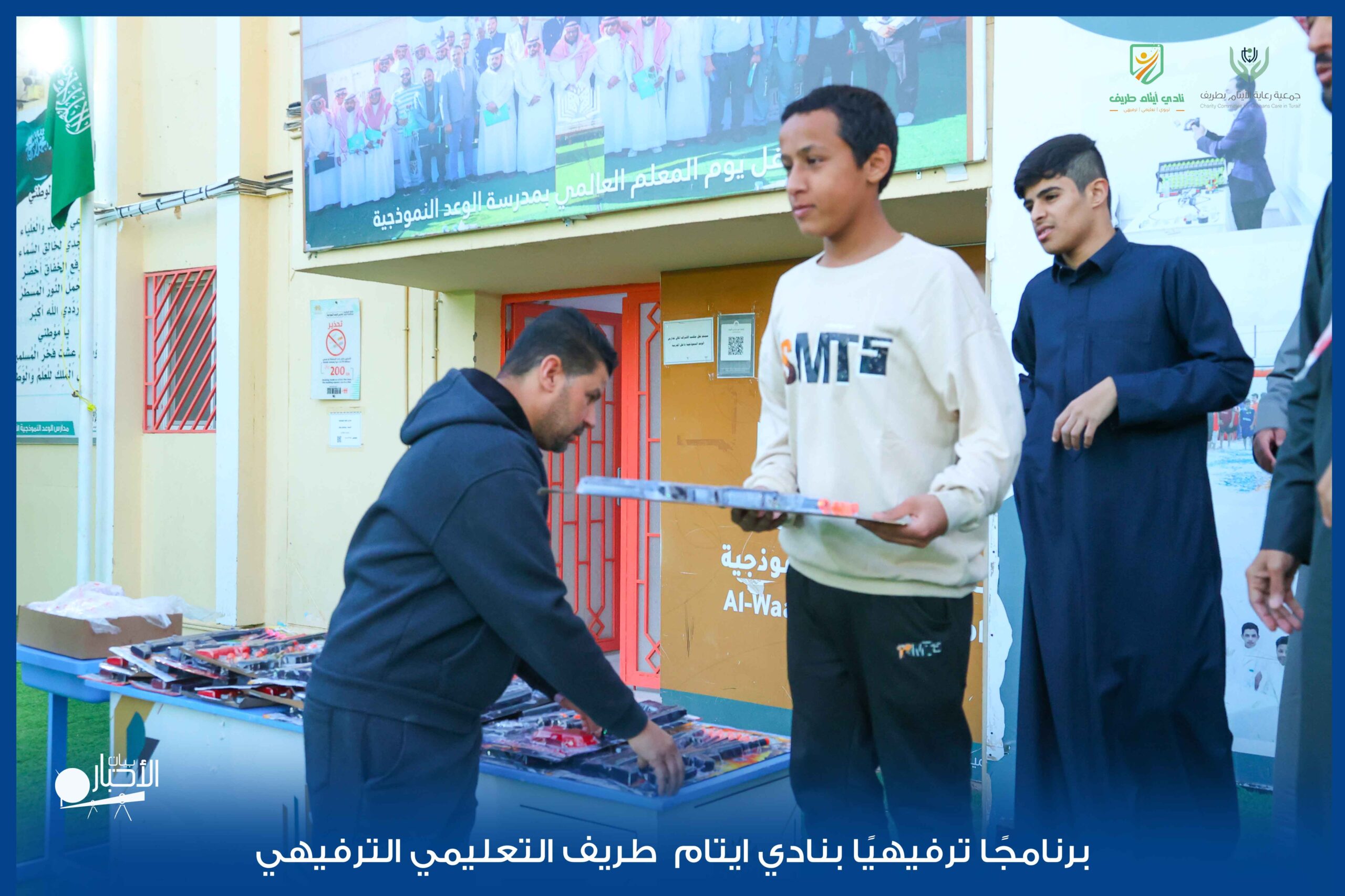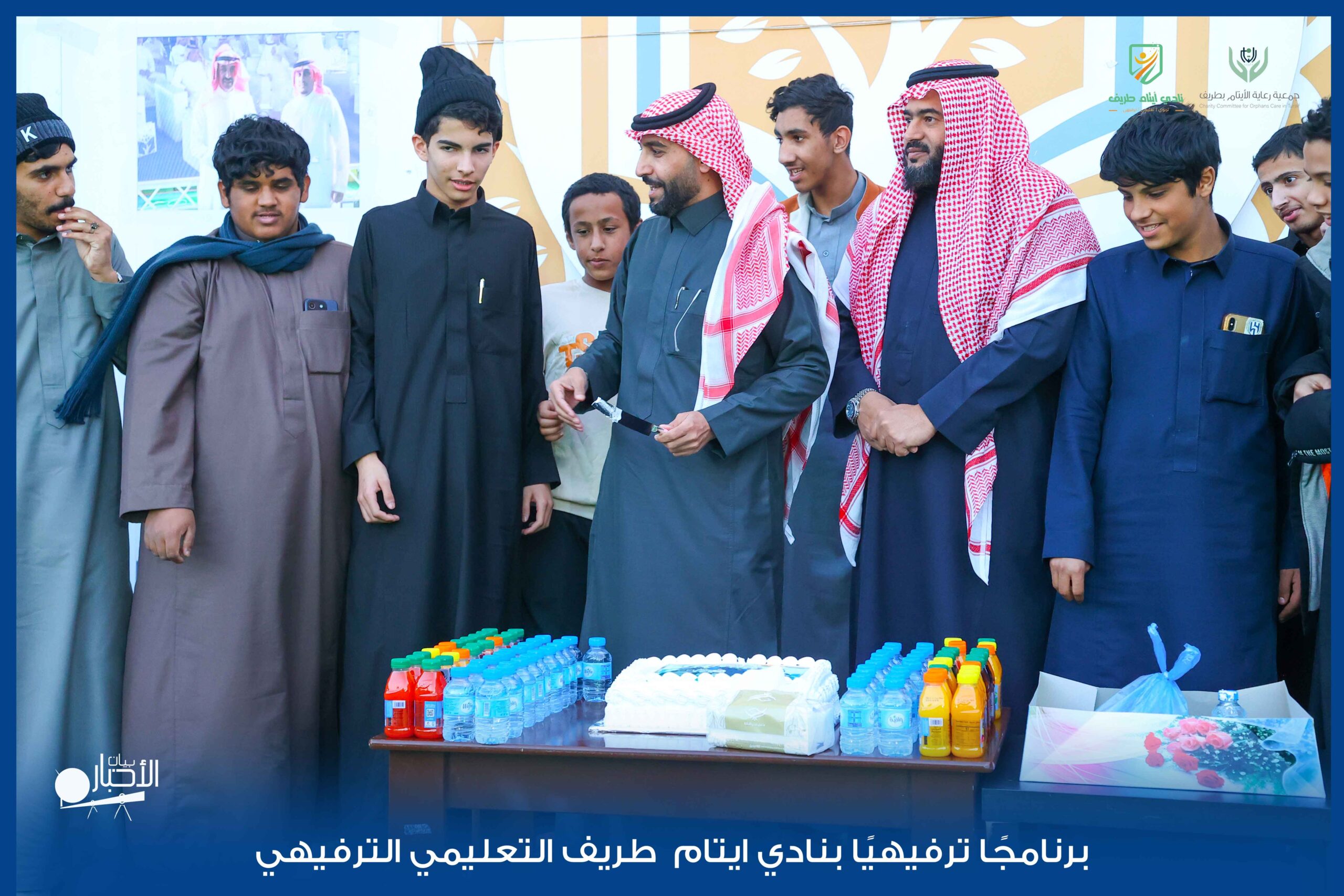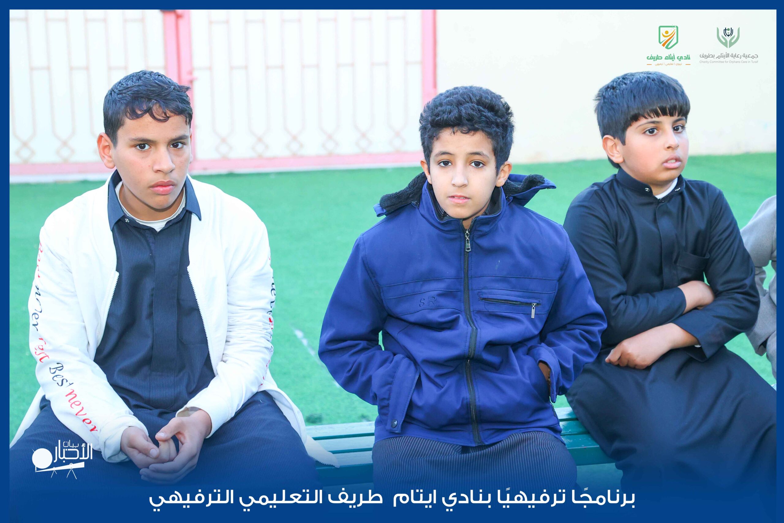 أقام نادي أيتام طريف التعليمي الترفيهي برنامجًا ترفيهيًا لطلاب النادي وذلك ختامًا للفصل الدراسي الأول للعام 1447هـ حيث أقيمت فعاليات للطلاب ومباريات لكرة القدم، ثم خُتم البرنامج بتسليم الطلاب مكافآت نظير جهودهم المبذولة طيلة الفصل الدراسي ٠
