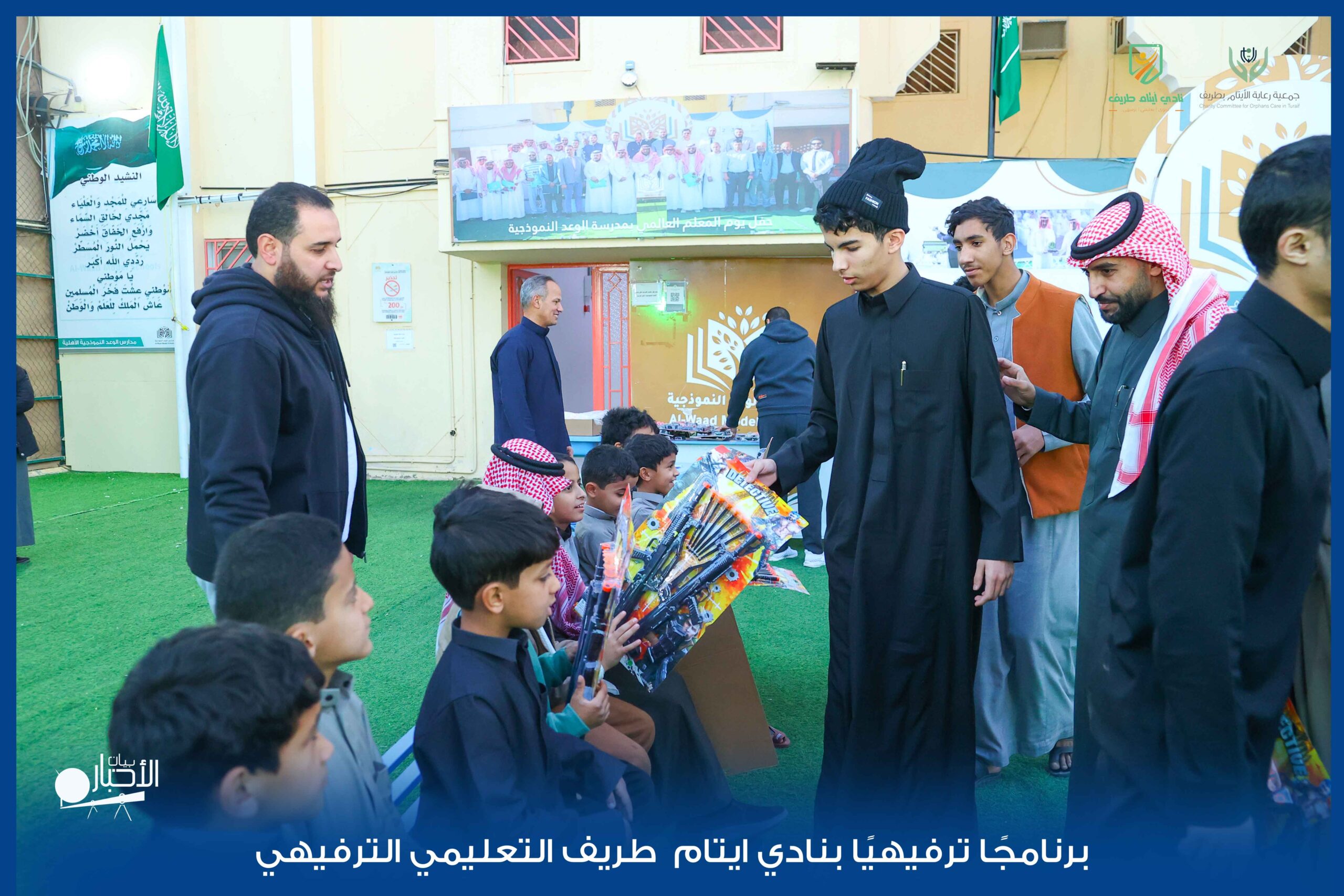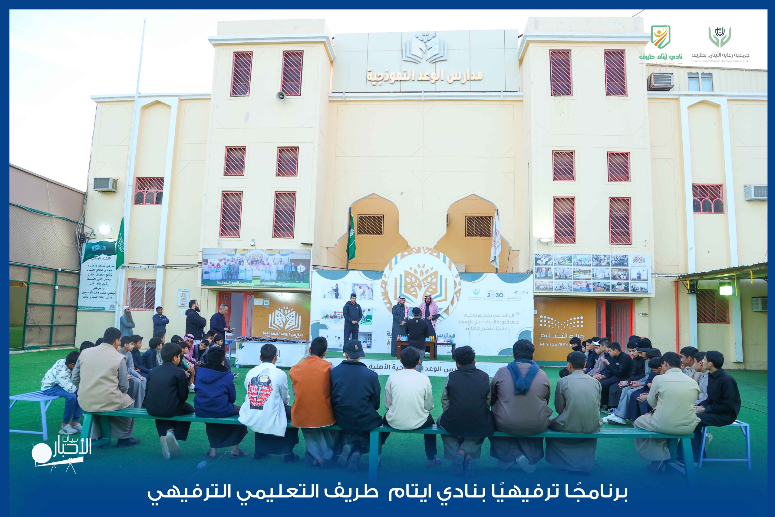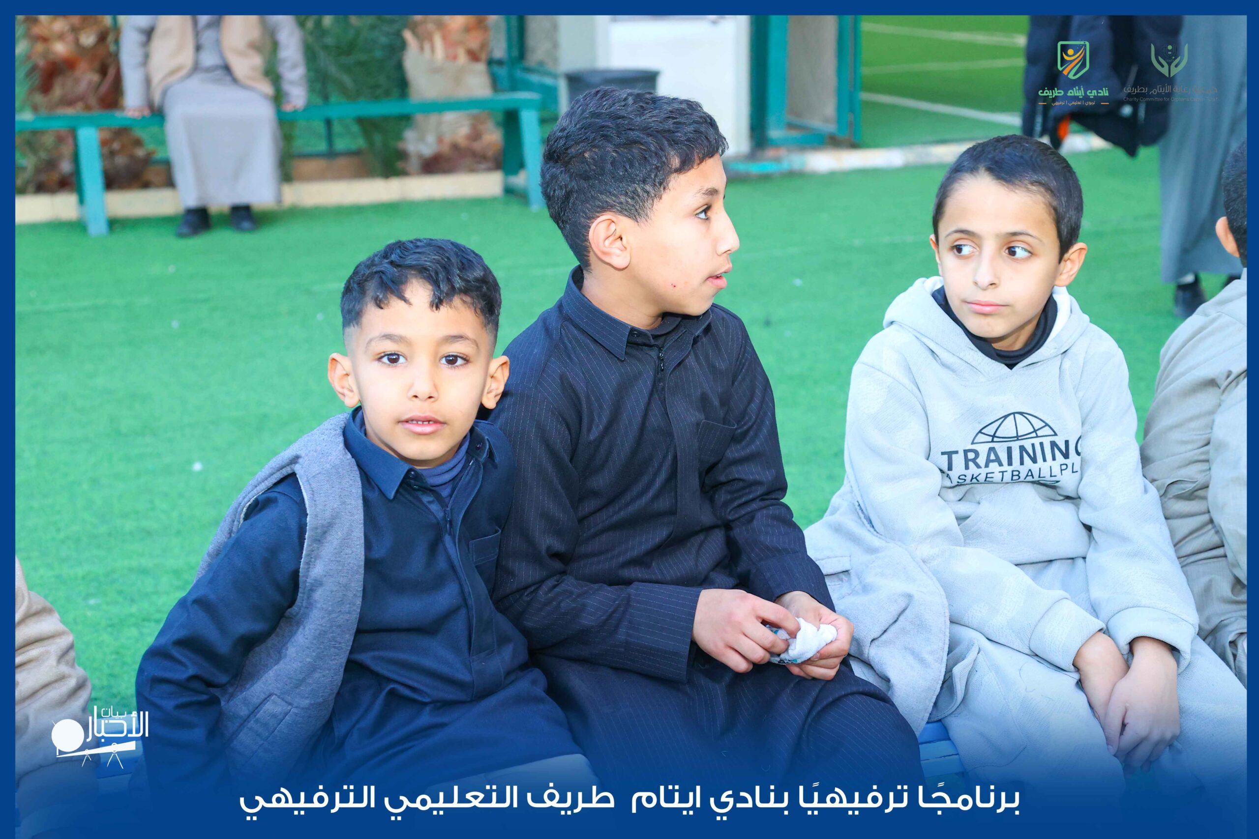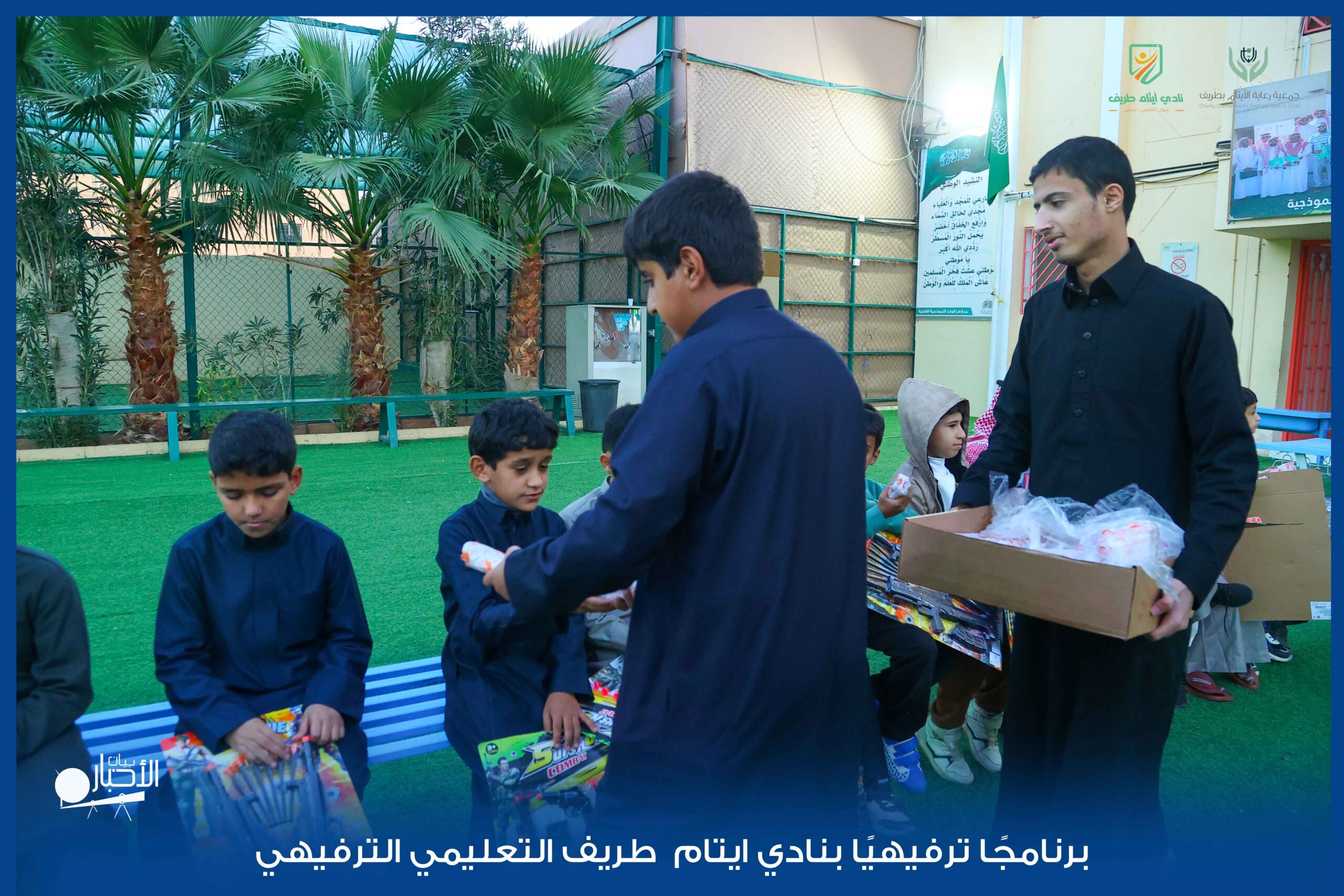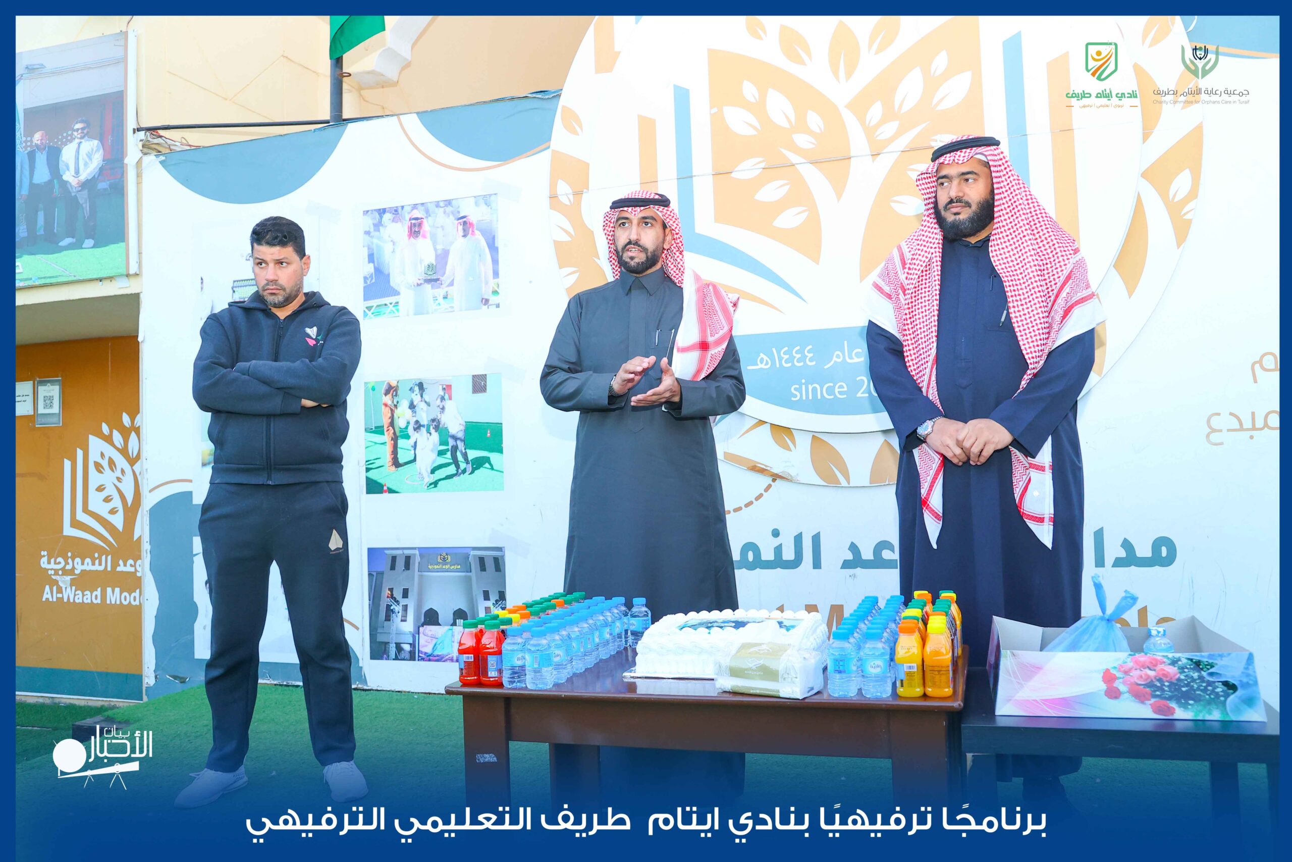 أقام نادي أيتام طريف التعليمي الترفيهي برنامجًا ترفيهيًا لطلاب النادي وذلك ختامًا للفصل الدراسي الأول للعام 1447هـ حيث أقيمت فعاليات للطلاب ومباريات لكرة القدم، ثم خُتم البرنامج بتسليم الطلاب مكافآت نظير جهودهم المبذولة طيلة الفصل الدراسي ٠