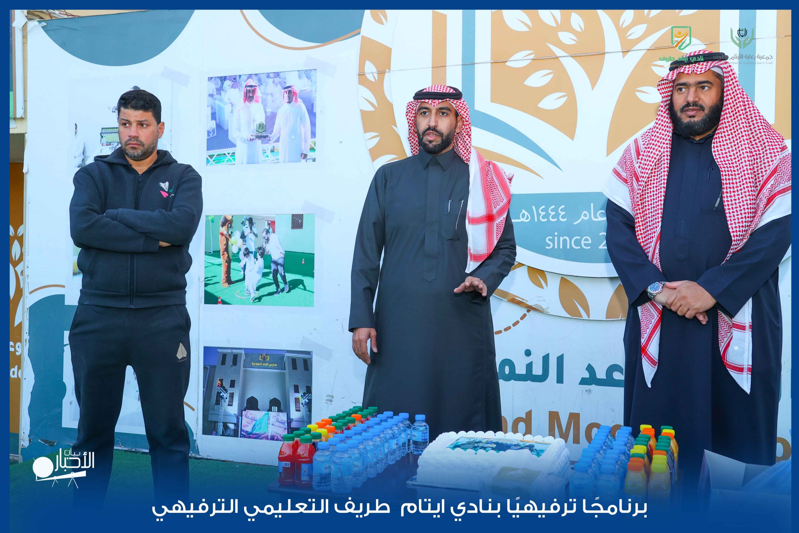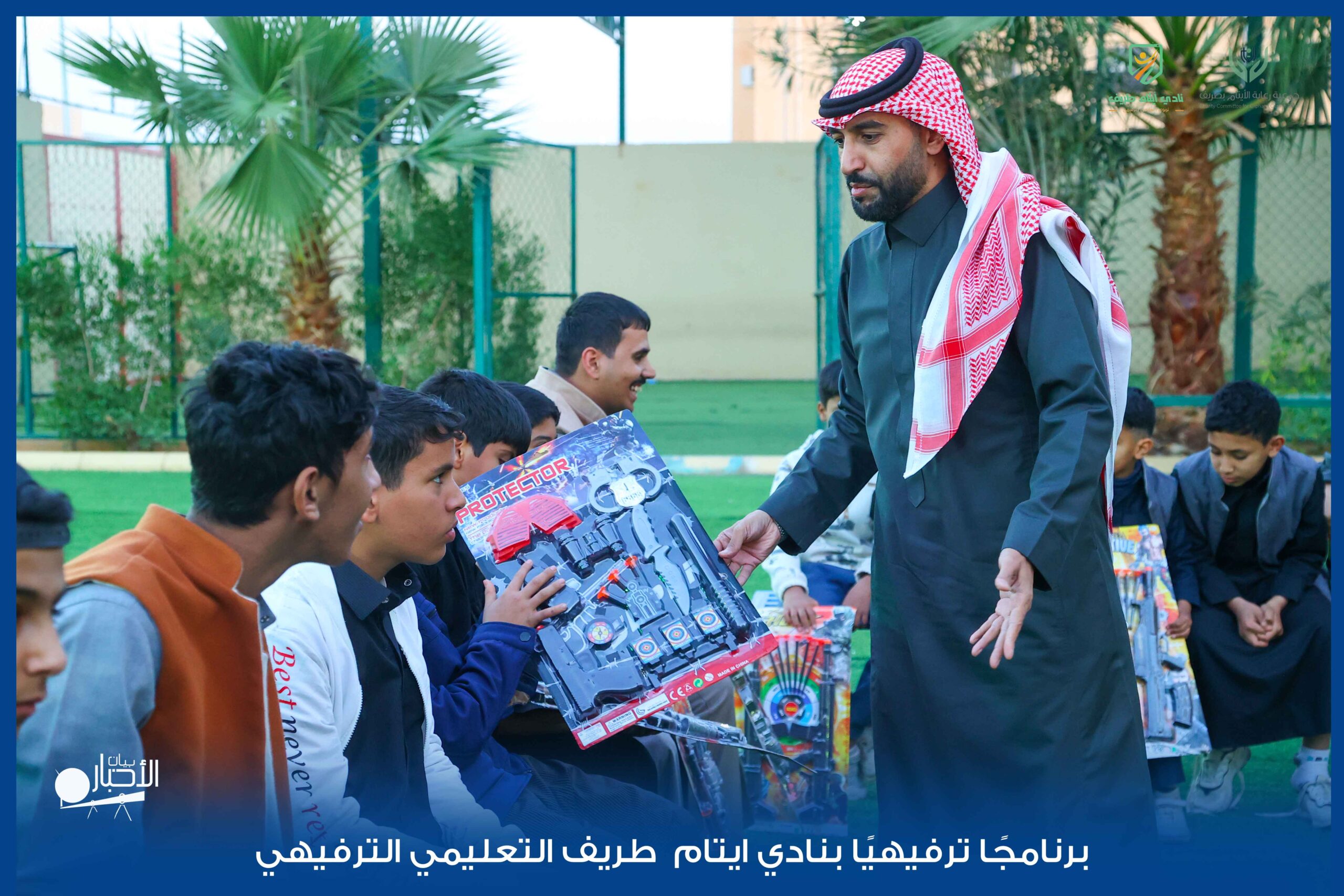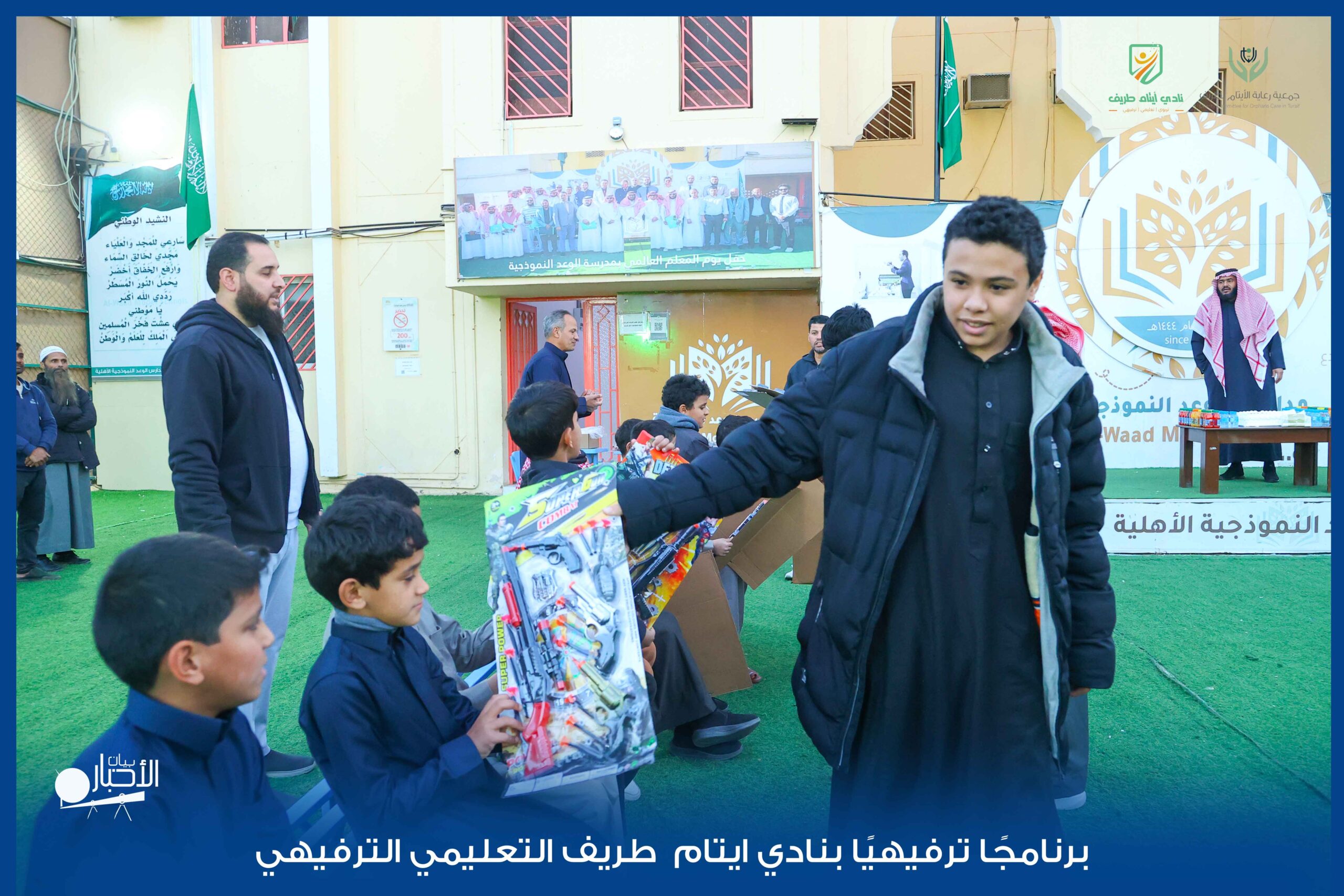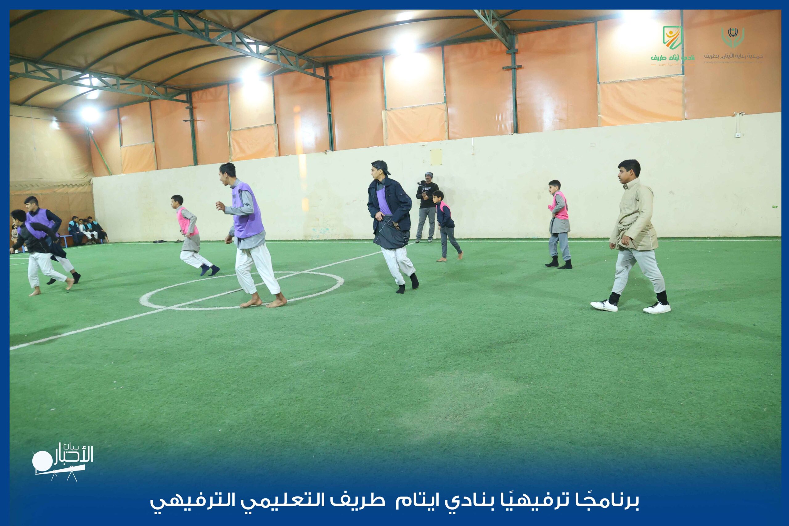 أقام نادي أيتام طريف التعليمي الترفيهي برنامجًا ترفيهيًا لطلاب النادي وذلك ختامًا للفصل الدراسي الأول للعام 1447هـ حيث أقيمت فعاليات للطلاب ومباريات لكرة القدم، ثم خُتم البرنامج بتسليم الطلاب مكافآت نظير جهودهم المبذولة طيلة الفصل الدراسي ٠