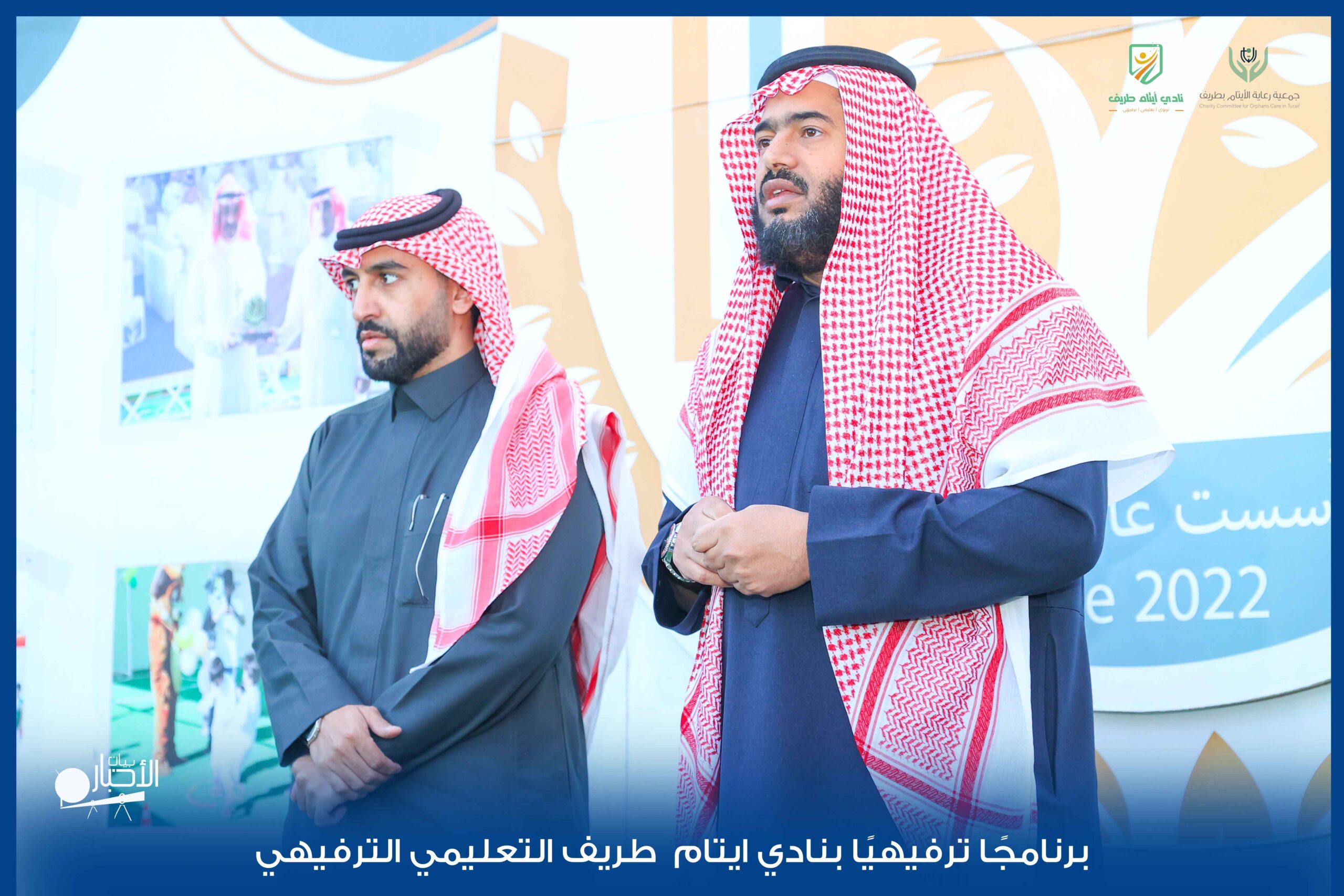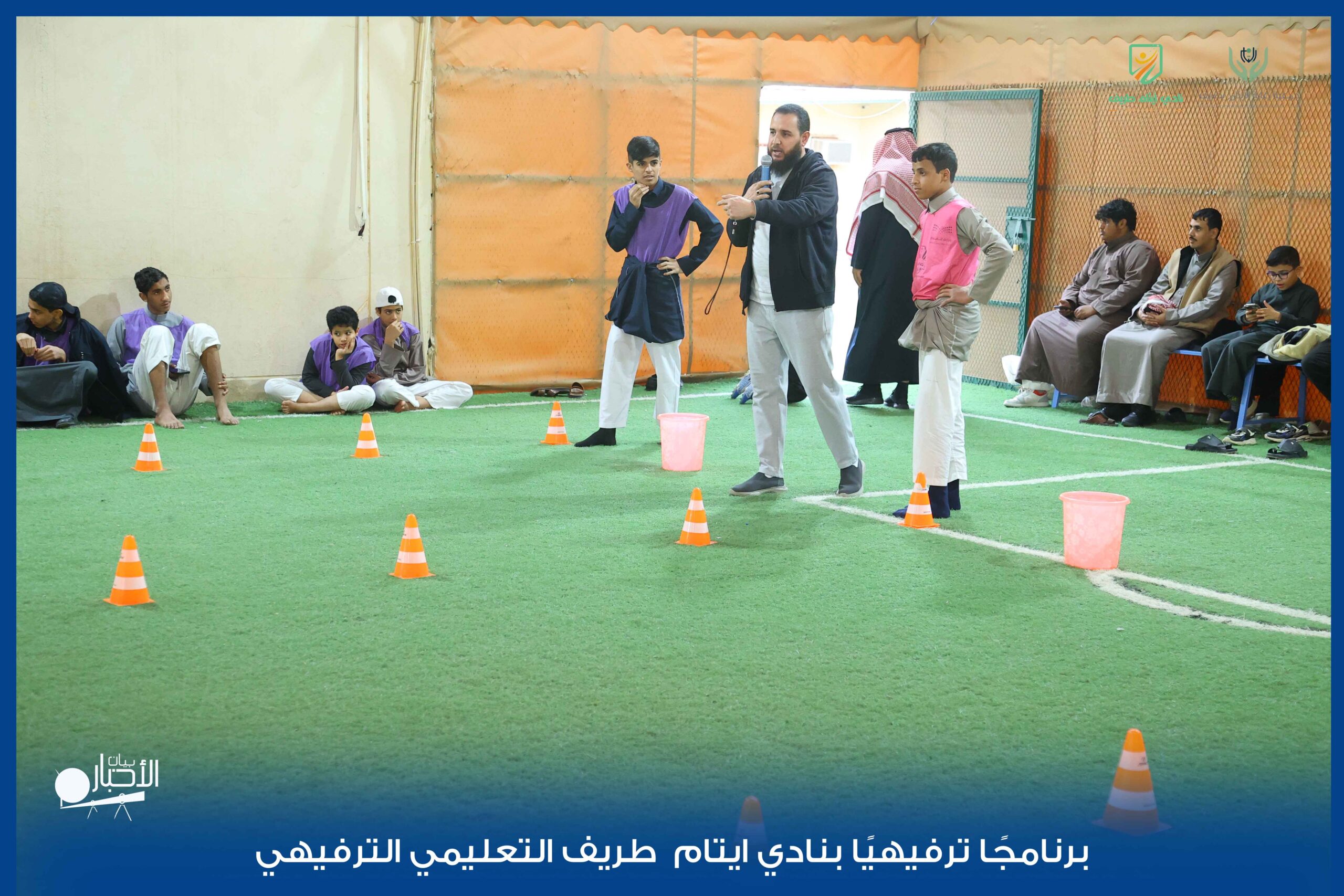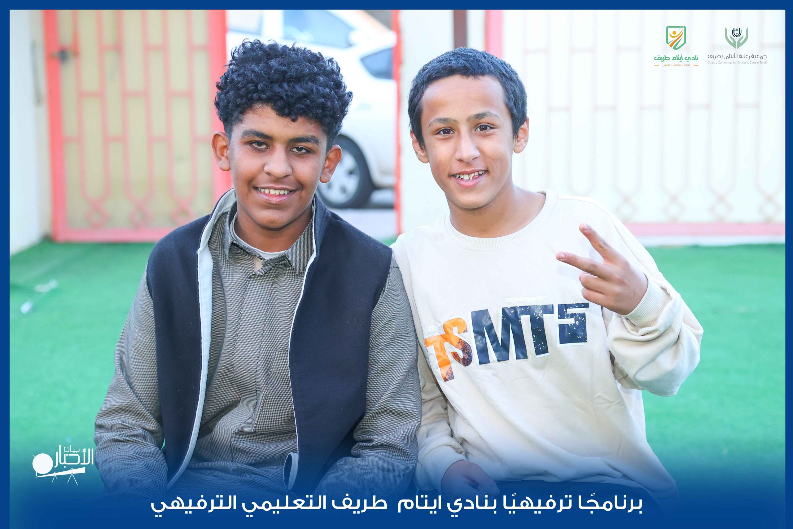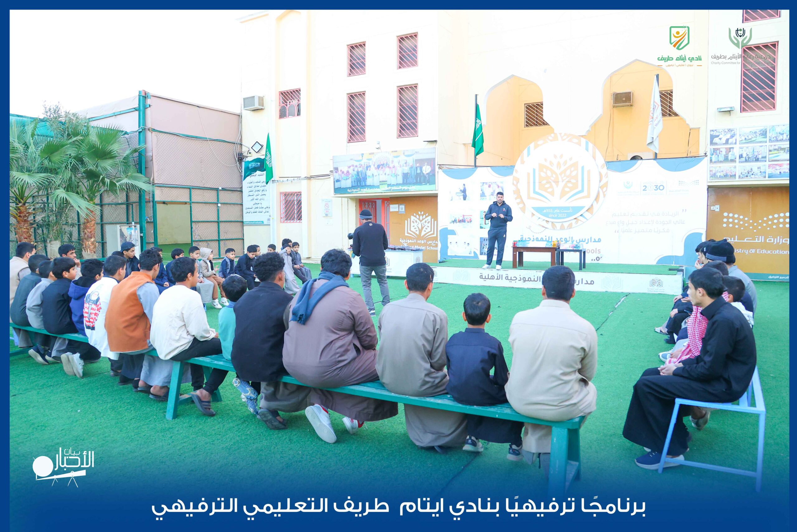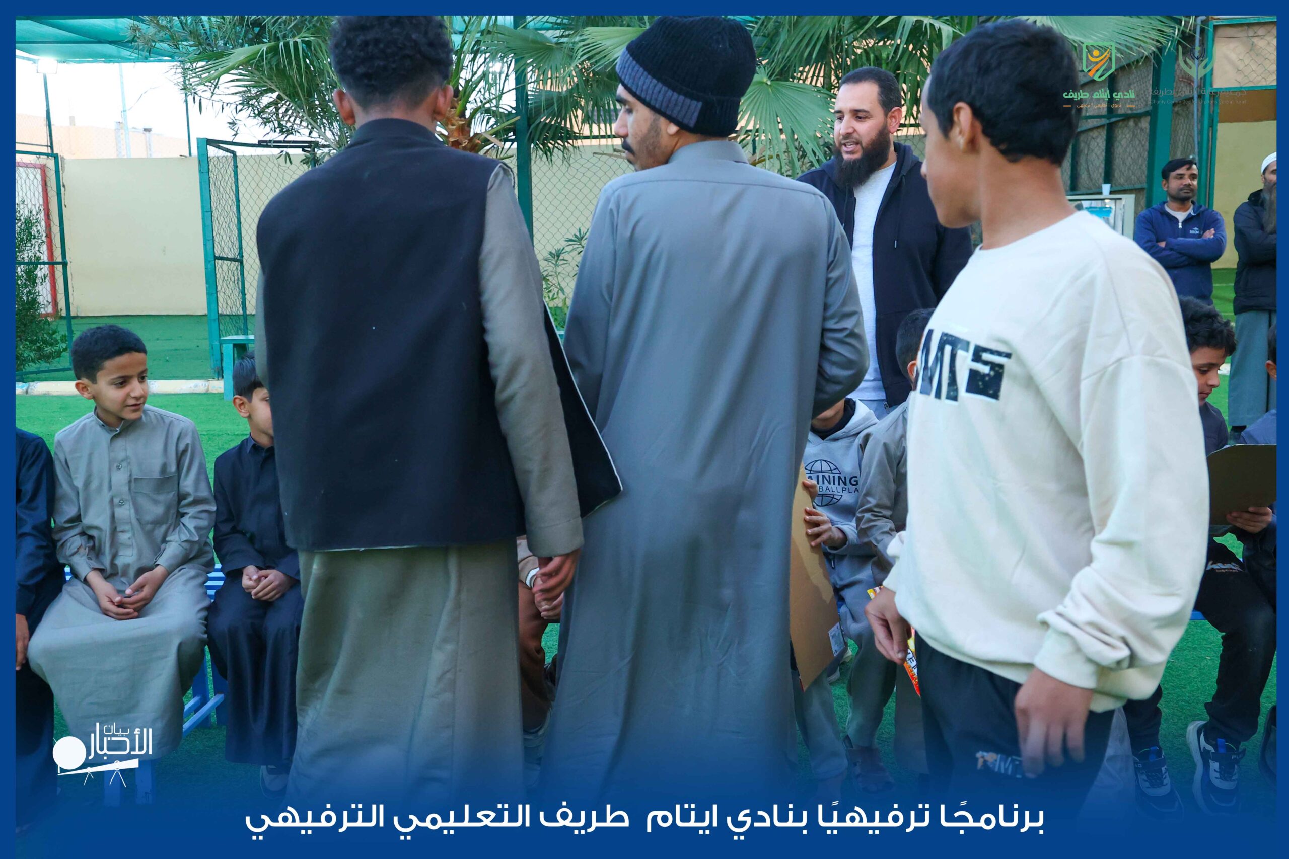 أقام نادي أيتام طريف التعليمي الترفيهي برنامجًا ترفيهيًا لطلاب النادي وذلك ختامًا للفصل الدراسي الأول للعام 1447هـ حيث أقيمت فعاليات للطلاب ومباريات لكرة القدم، ثم خُتم البرنامج بتسليم الطلاب مكافآت نظير جهودهم المبذولة طيلة الفصل الدراسي ٠