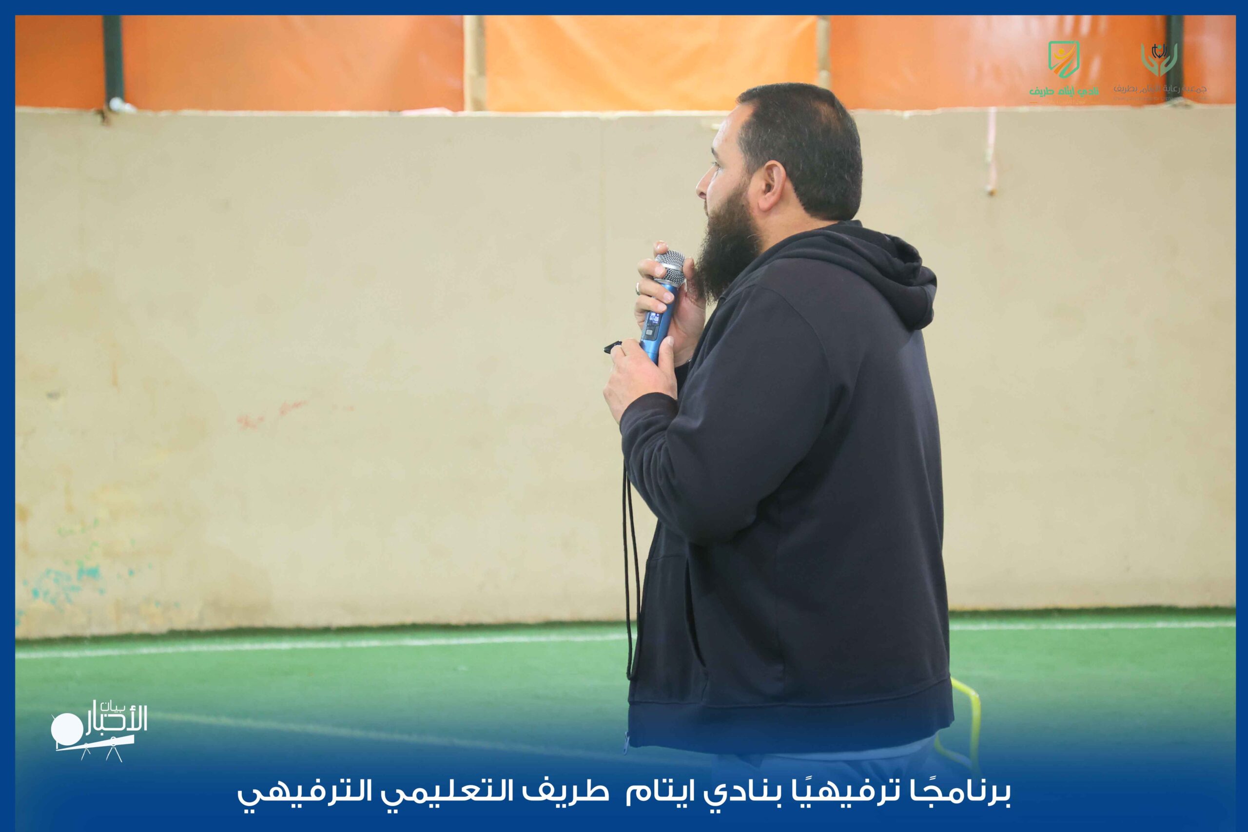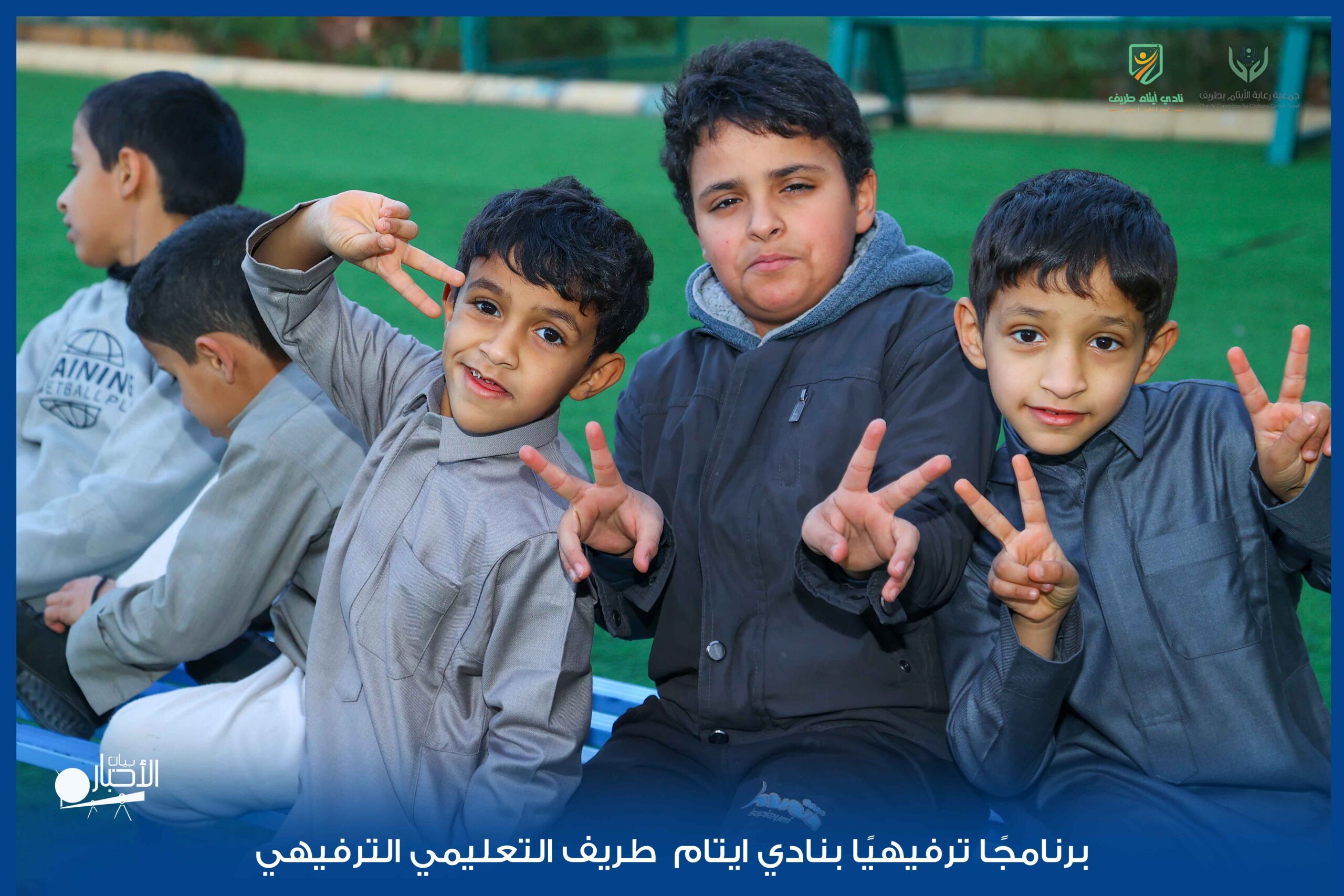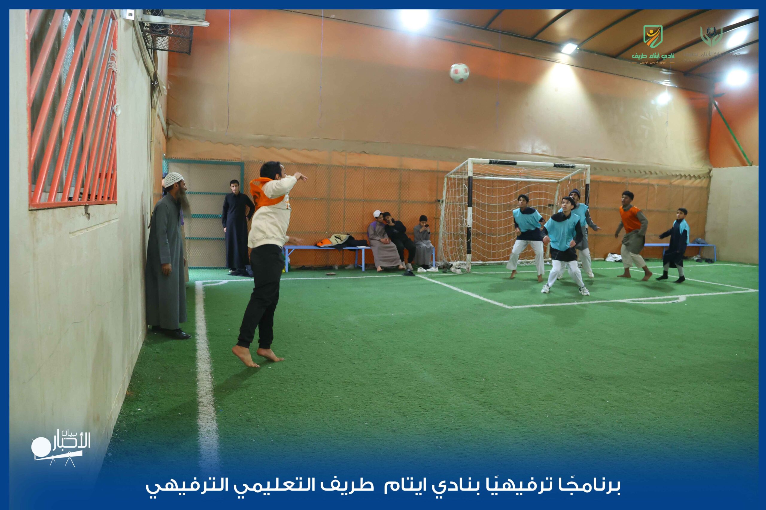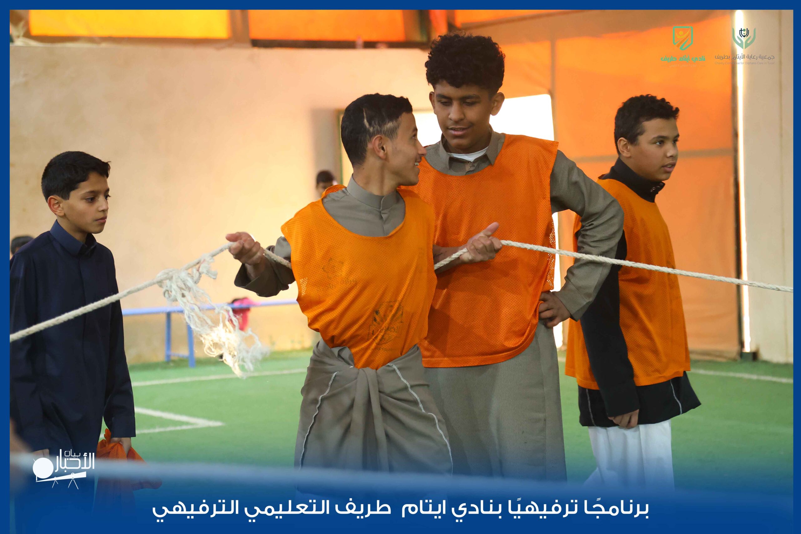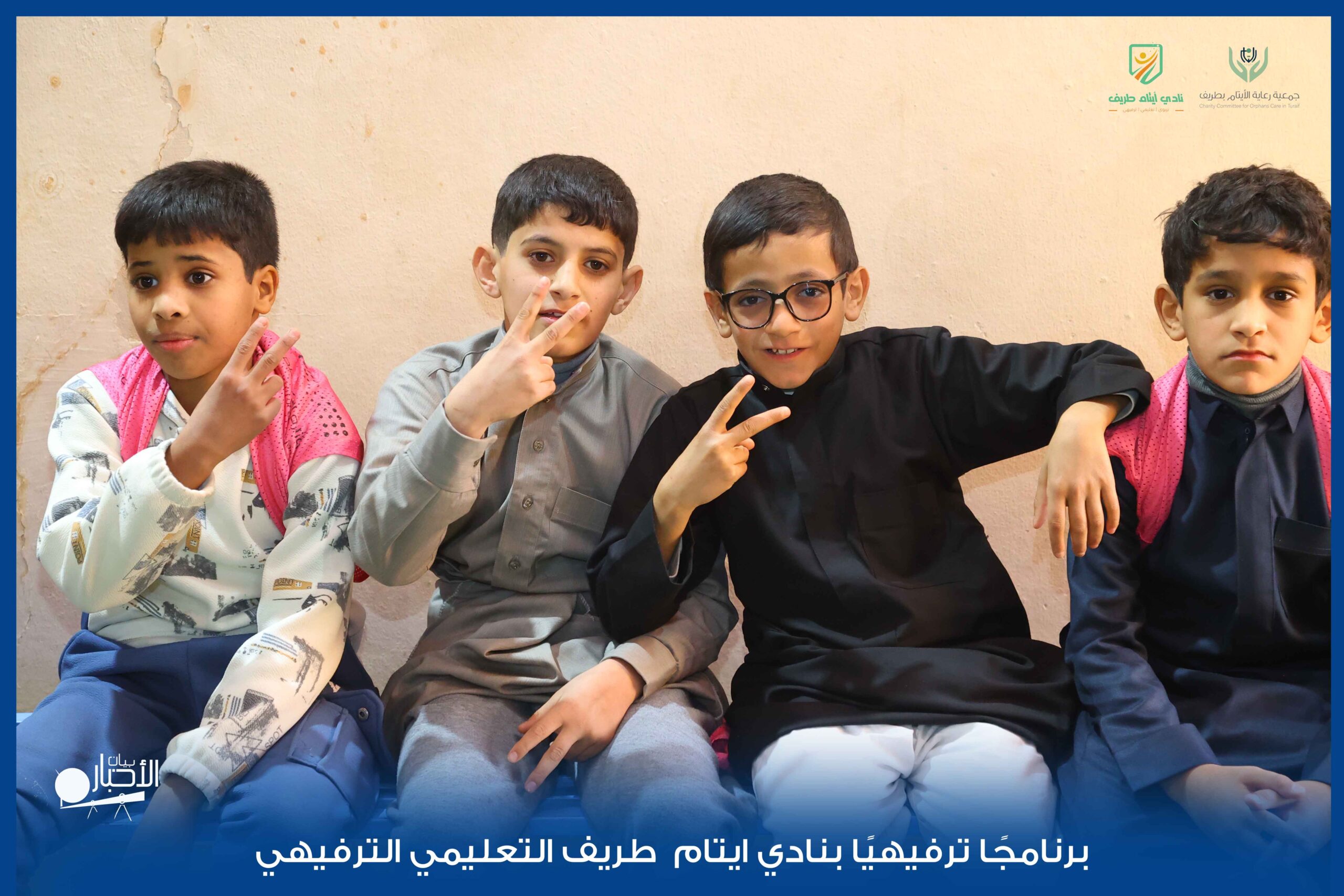 أقام نادي أيتام طريف التعليمي الترفيهي برنامجًا ترفيهيًا لطلاب النادي وذلك ختامًا للفصل الدراسي الأول للعام 1447هـ حيث أقيمت فعاليات للطلاب ومباريات لكرة القدم، ثم خُتم البرنامج بتسليم الطلاب مكافآت نظير جهودهم المبذولة طيلة الفصل الدراسي ٠