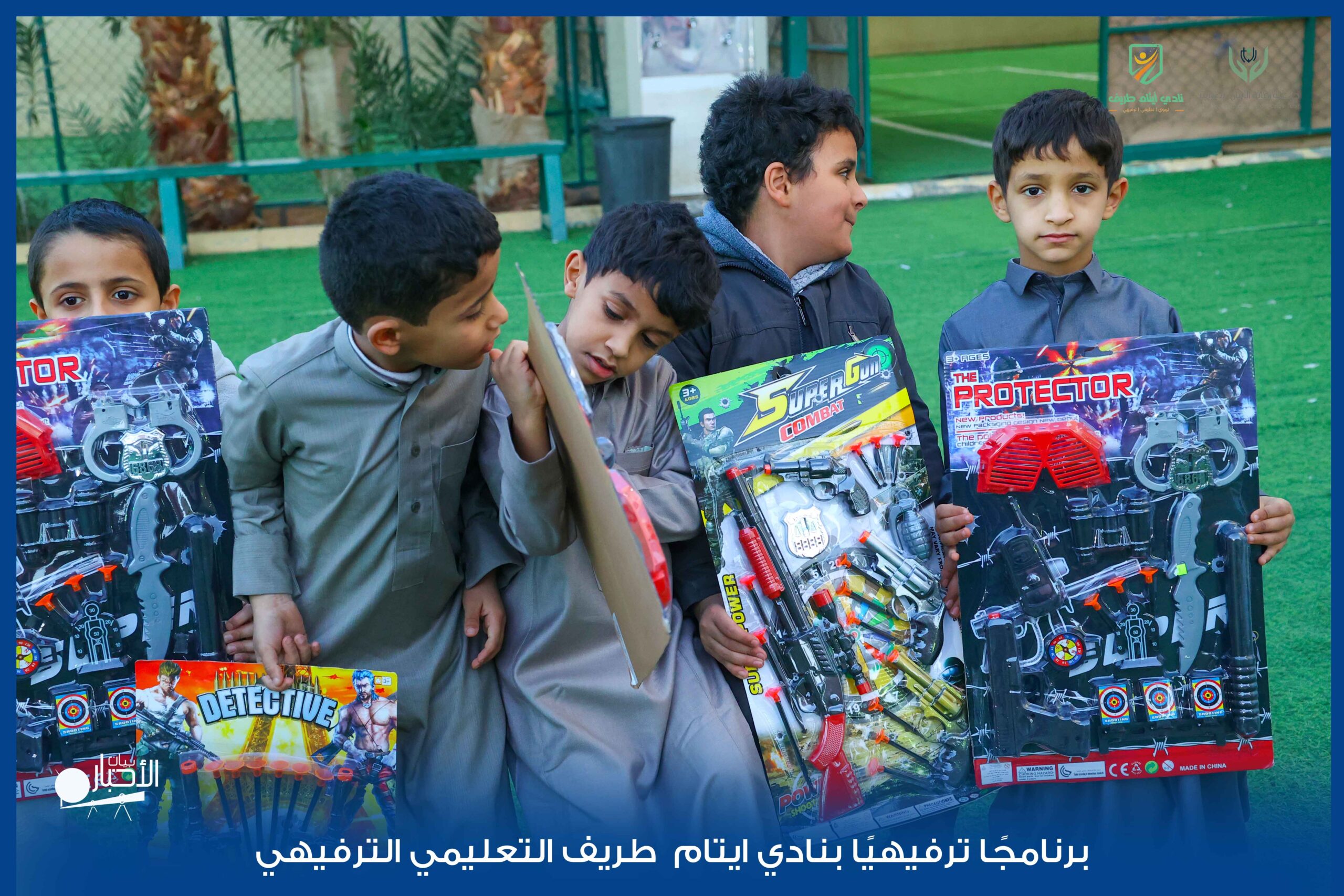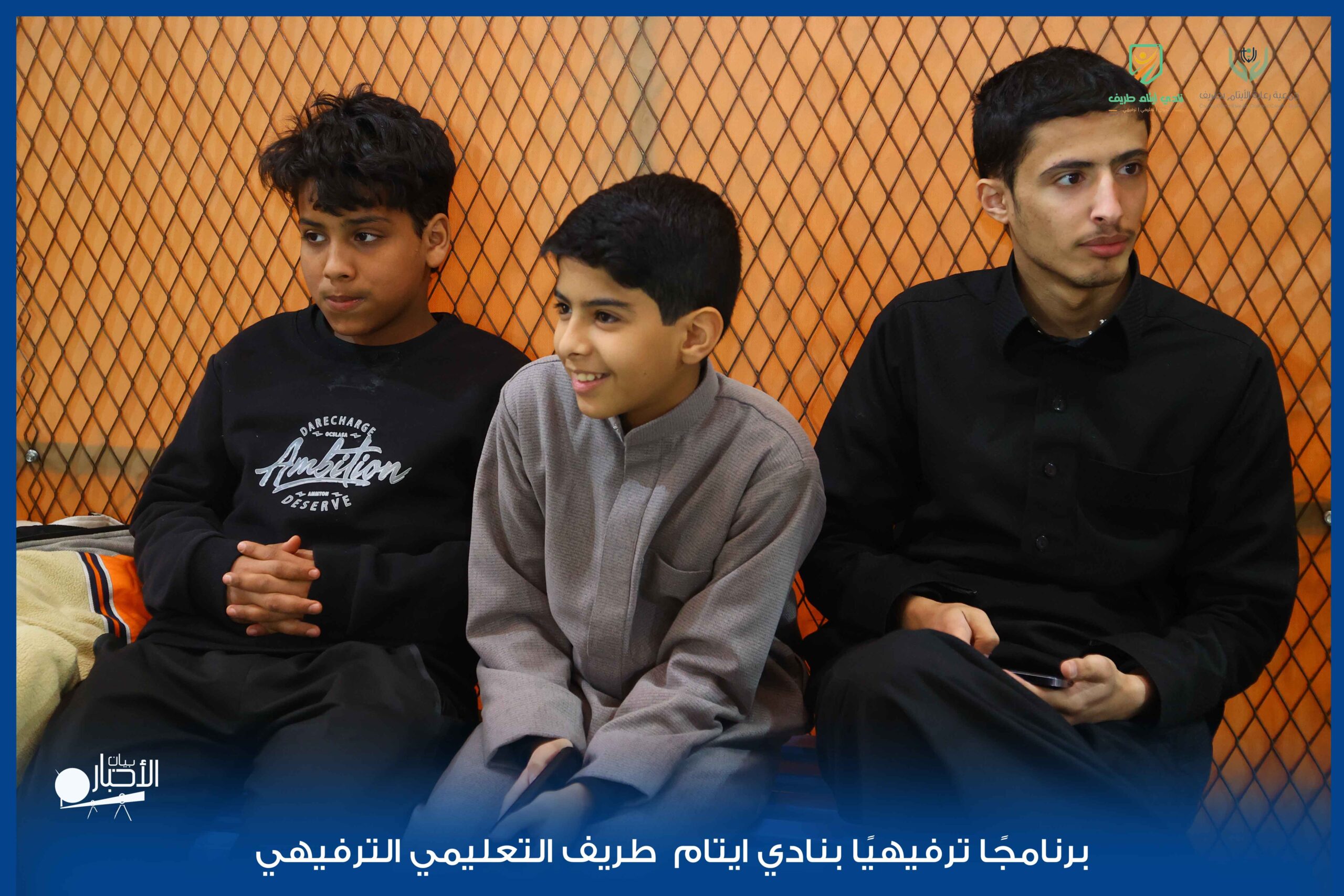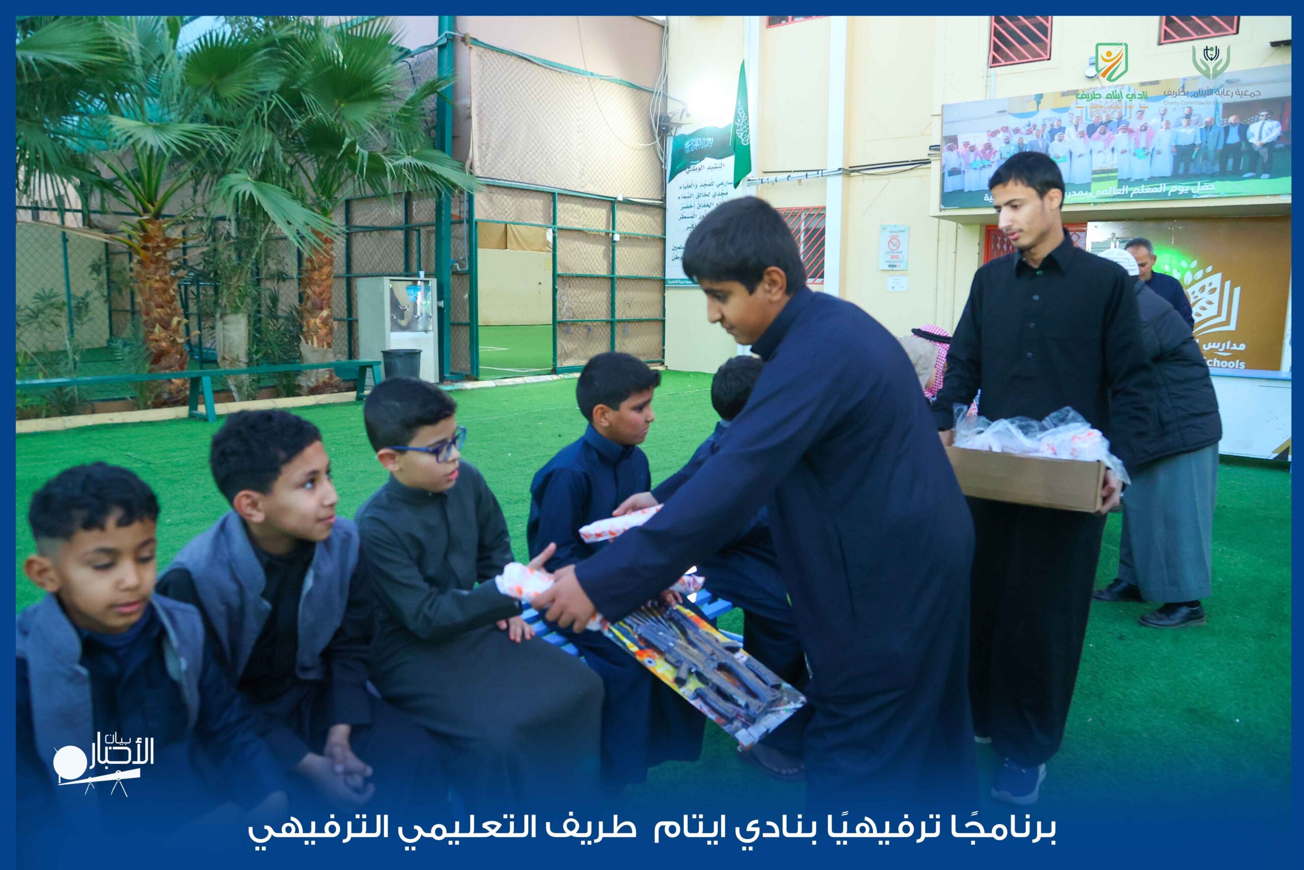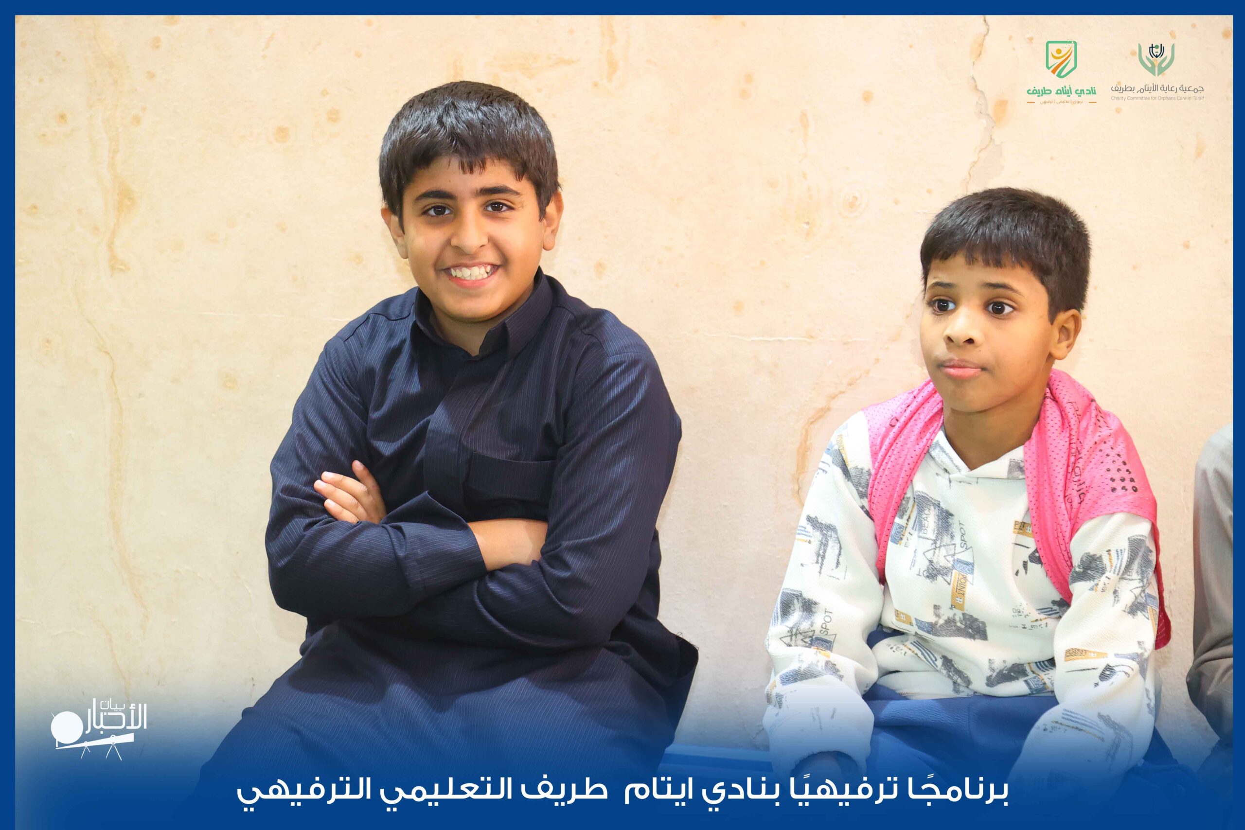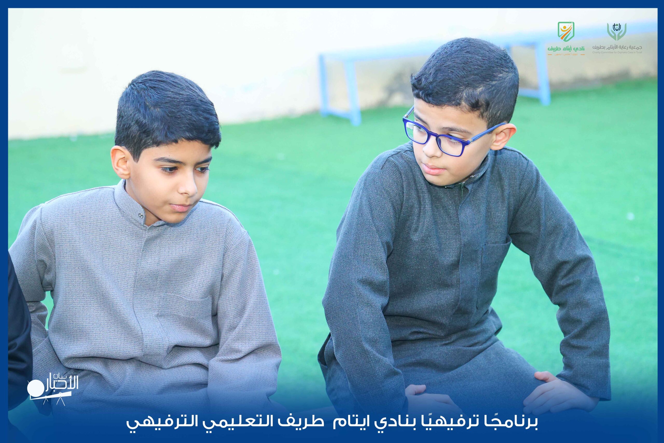 أقام نادي أيتام طريف التعليمي الترفيهي برنامجًا ترفيهيًا لطلاب النادي وذلك ختامًا للفصل الدراسي الأول للعام 1447هـ حيث أقيمت فعاليات للطلاب ومباريات لكرة القدم، ثم خُتم البرنامج بتسليم الطلاب مكافآت نظير جهودهم المبذولة طيلة الفصل الدراسي ٠