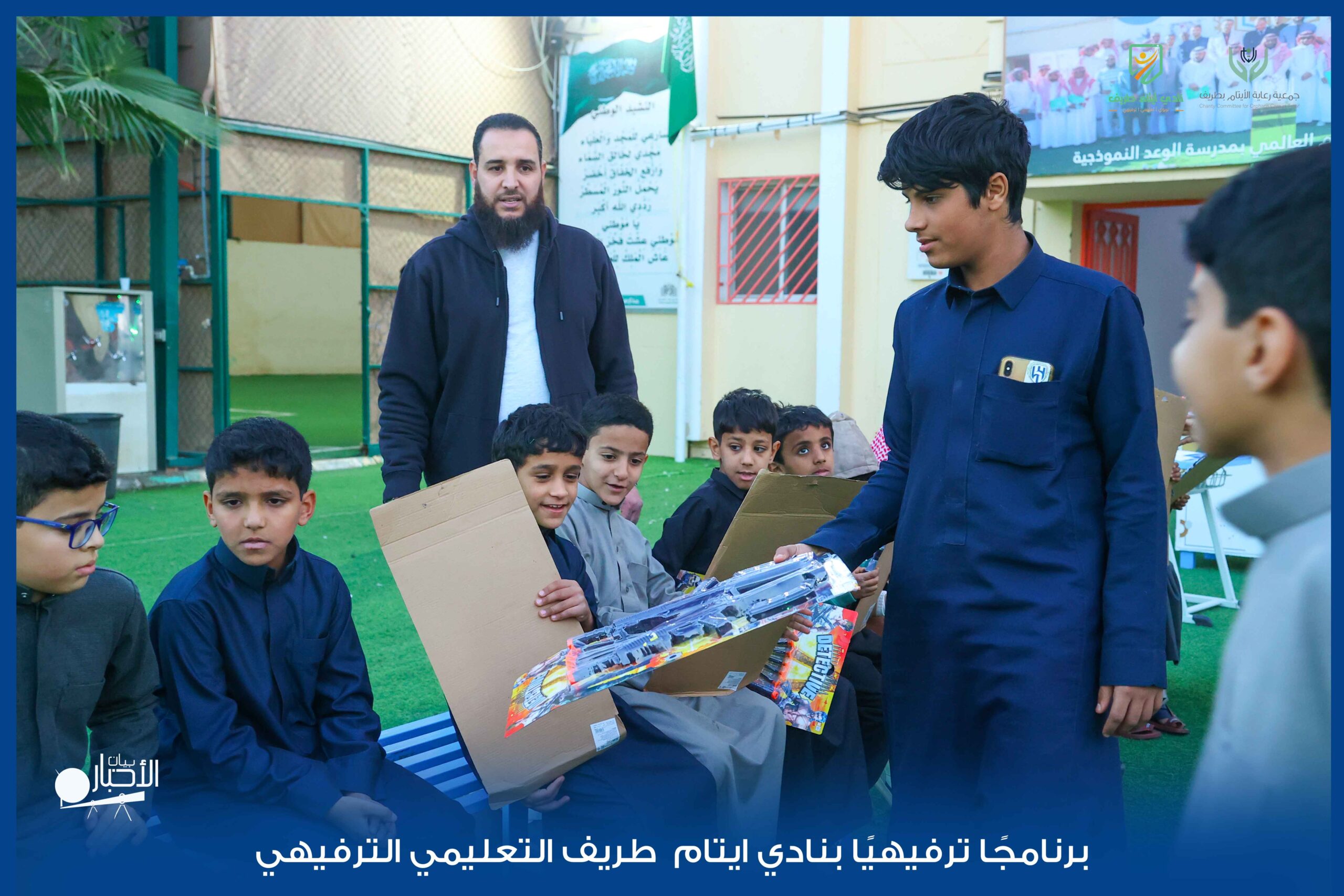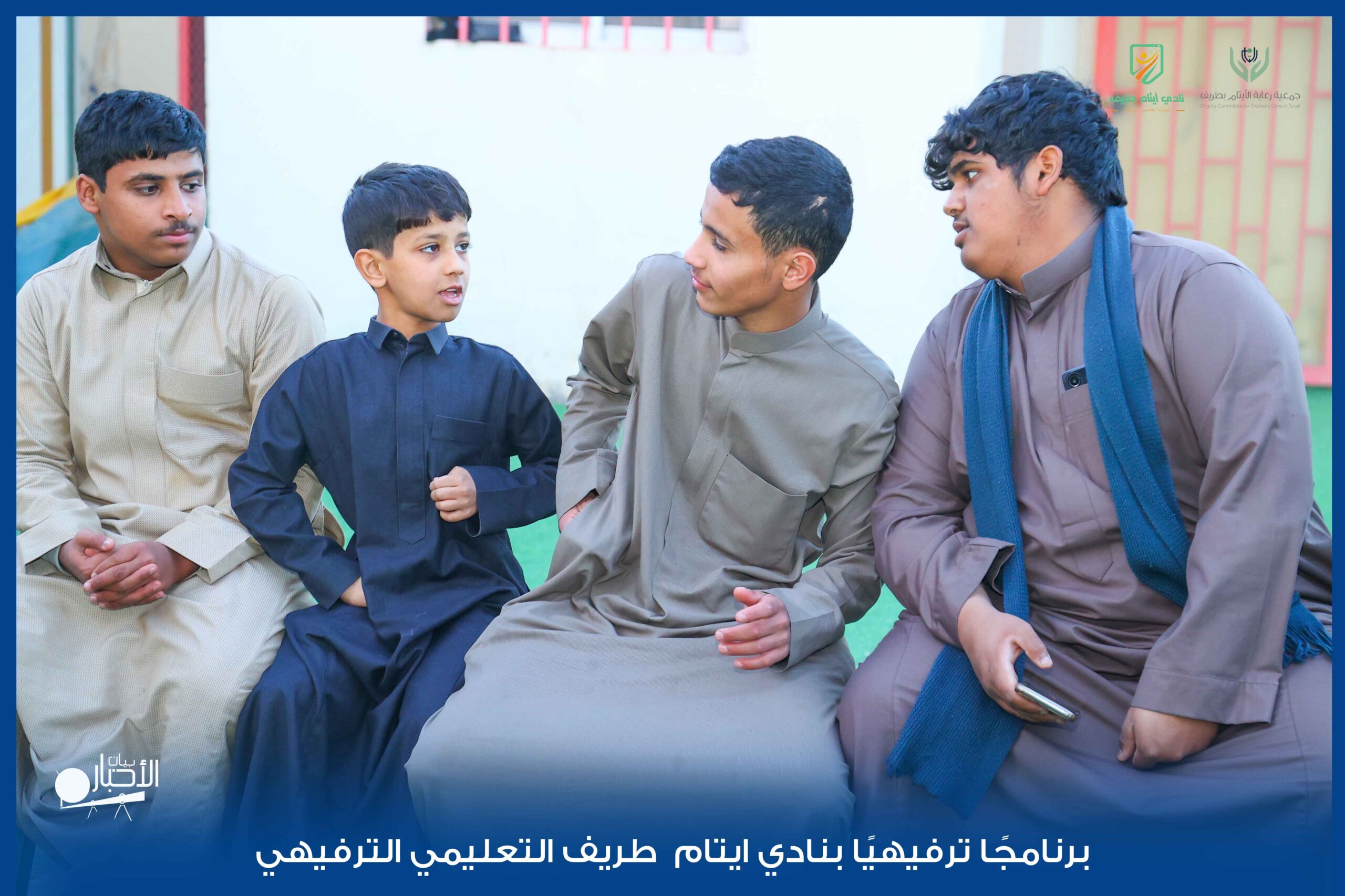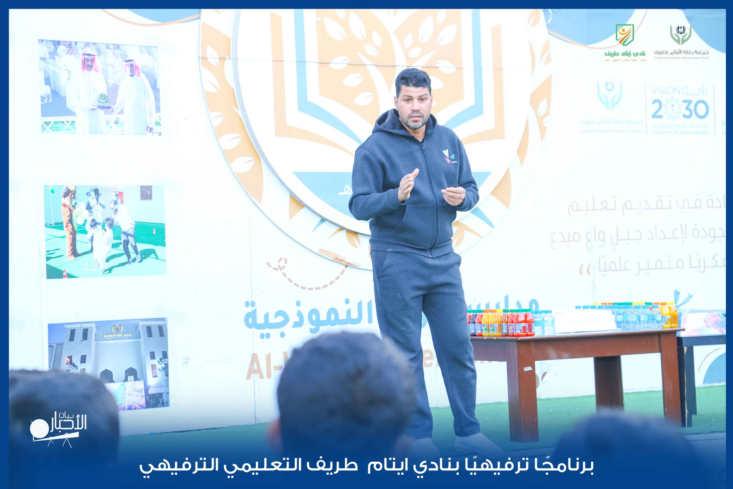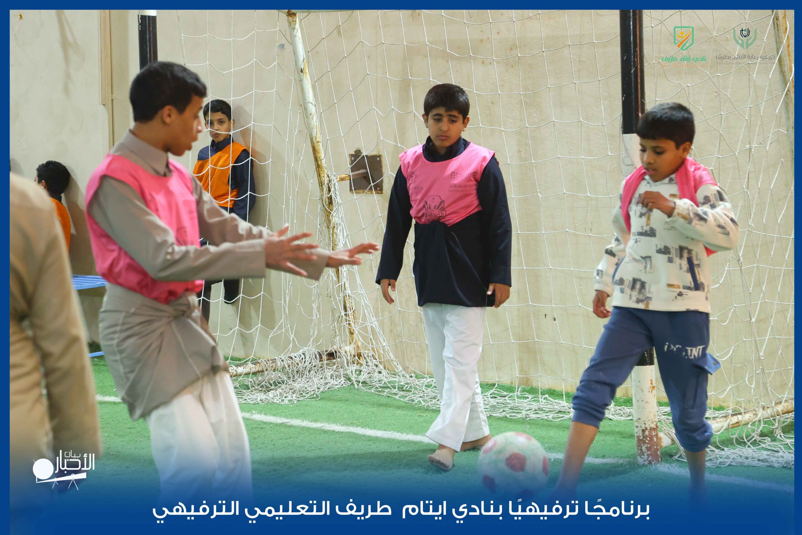أقام نادي أيتام طريف التعليمي الترفيهي برنامجًا ترفيهيًا لطلاب النادي وذلك ختامًا للفصل الدراسي الأول للعام 1447هـ حيث أقيمت فعاليات للطلاب ومباريات لكرة القدم، ثم خُتم البرنامج بتسليم الطلاب مكافآت نظير جهودهم المبذولة طيلة الفصل الدراسي ٠