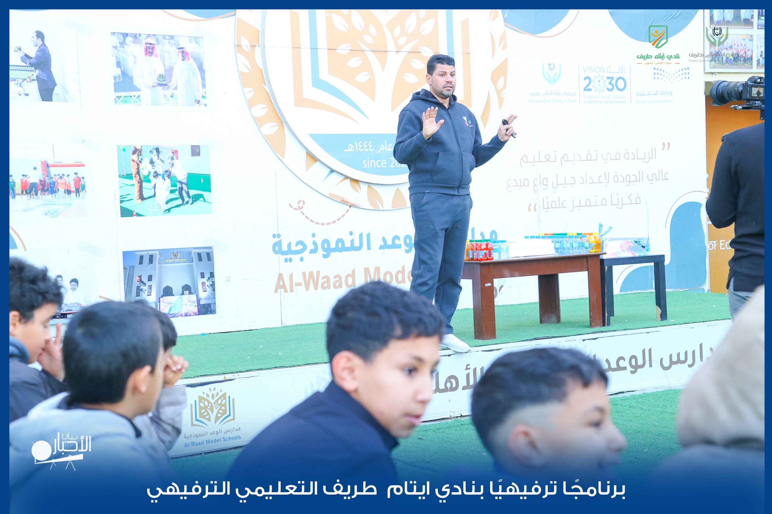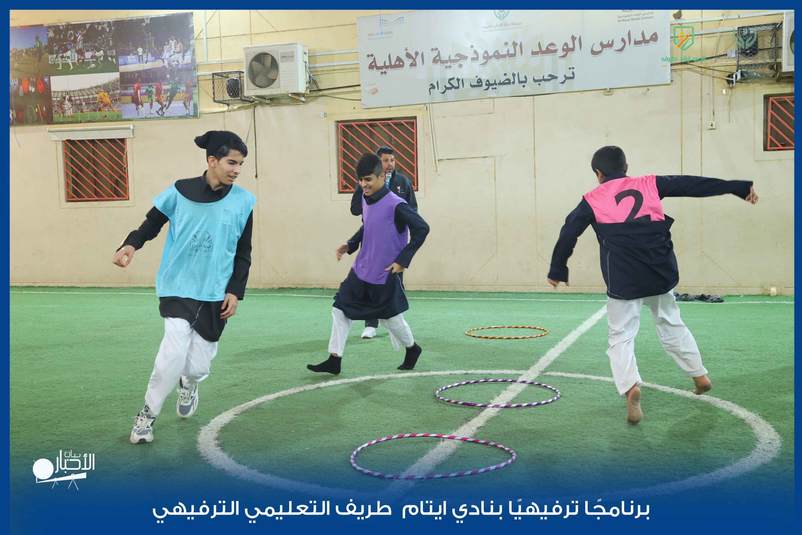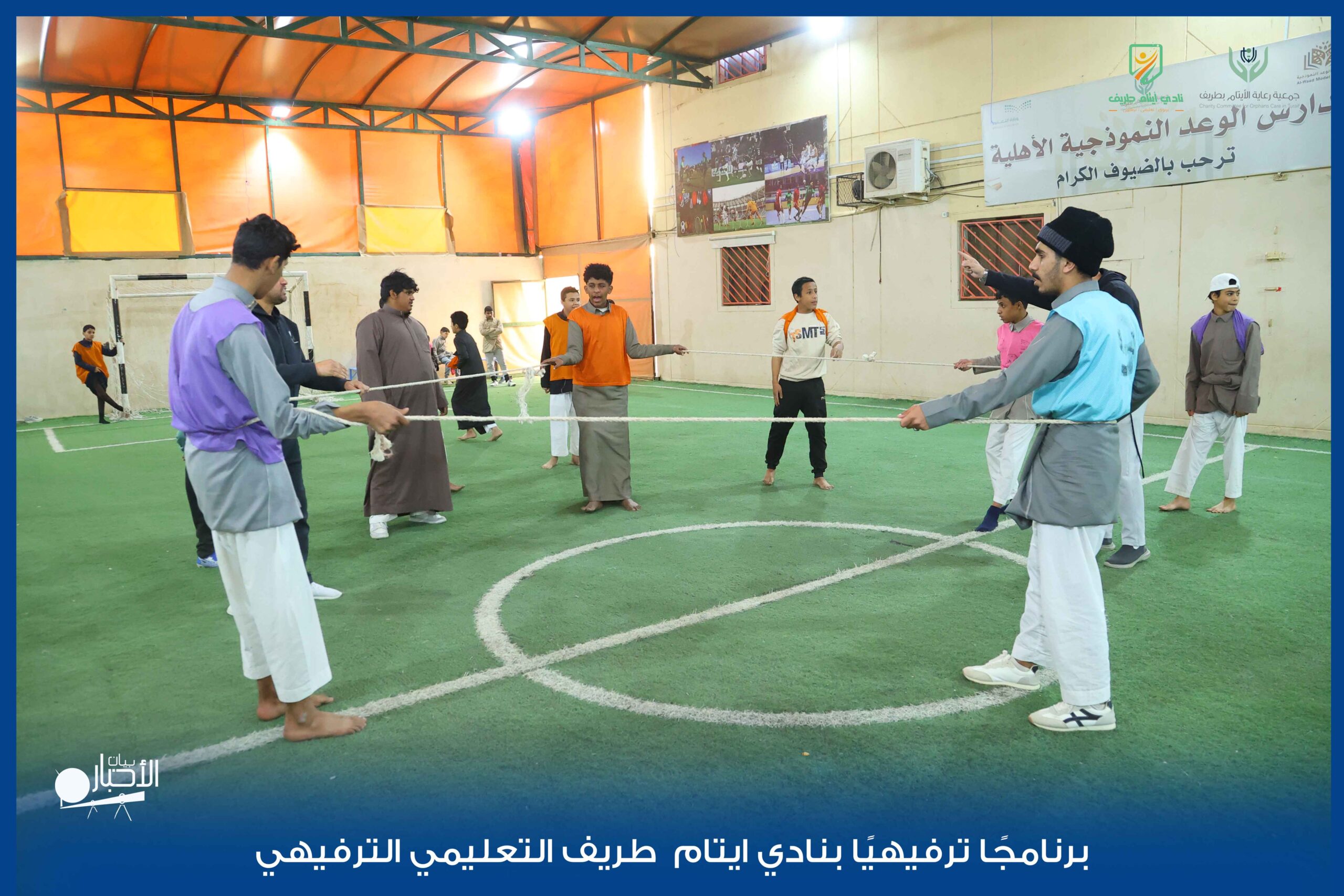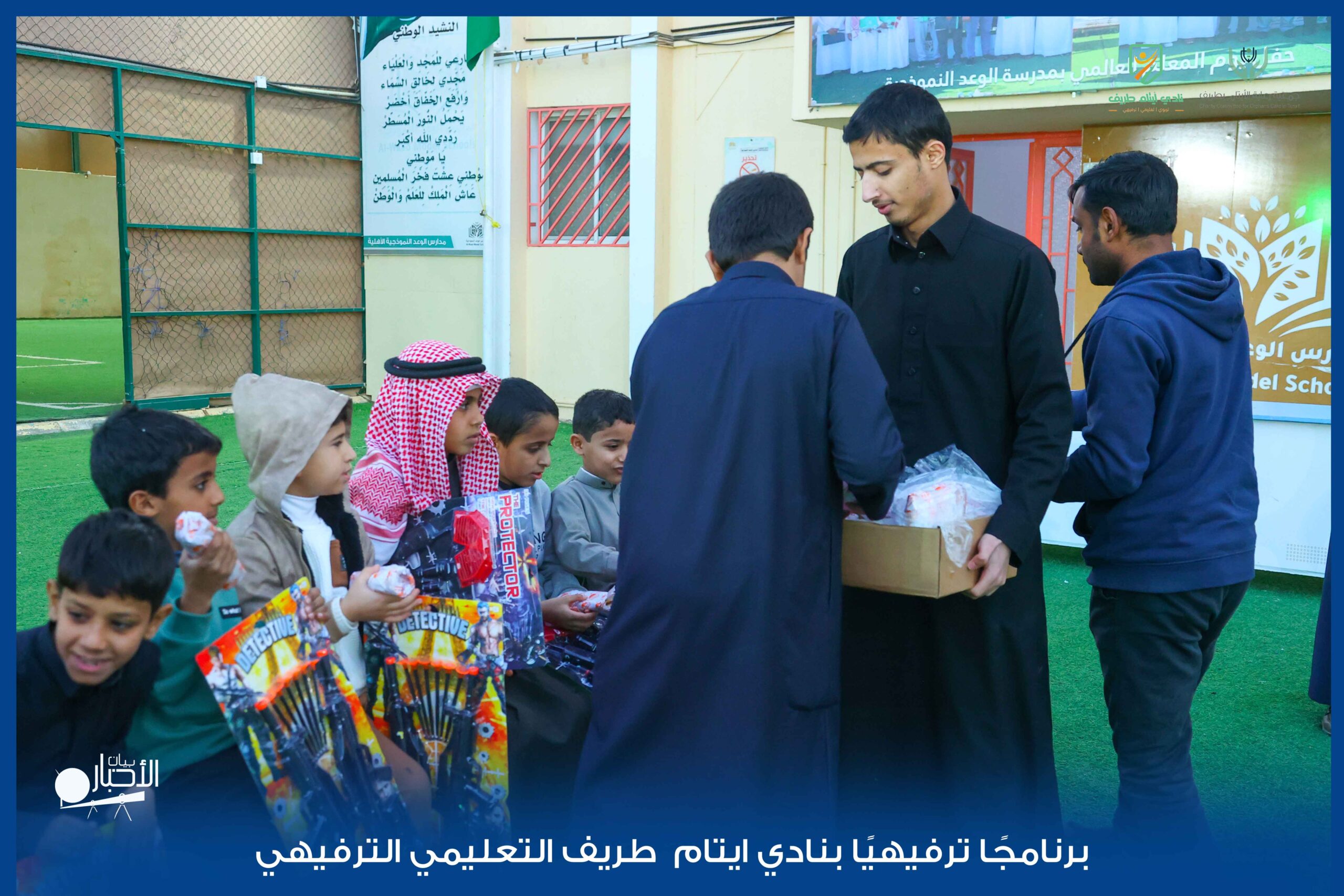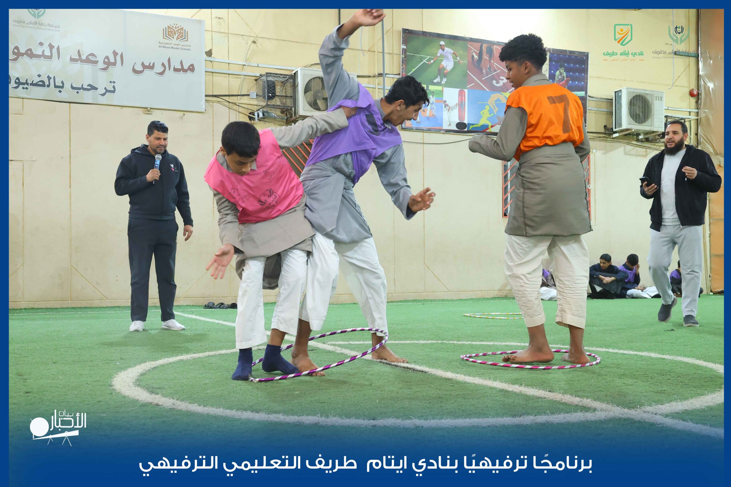 أقام نادي أيتام طريف التعليمي الترفيهي برنامجًا ترفيهيًا لطلاب النادي وذلك ختامًا للفصل الدراسي الأول للعام 1447هـ حيث أقيمت فعاليات للطلاب ومباريات لكرة القدم، ثم خُتم البرنامج بتسليم الطلاب مكافآت نظير جهودهم المبذولة طيلة الفصل الدراسي ٠