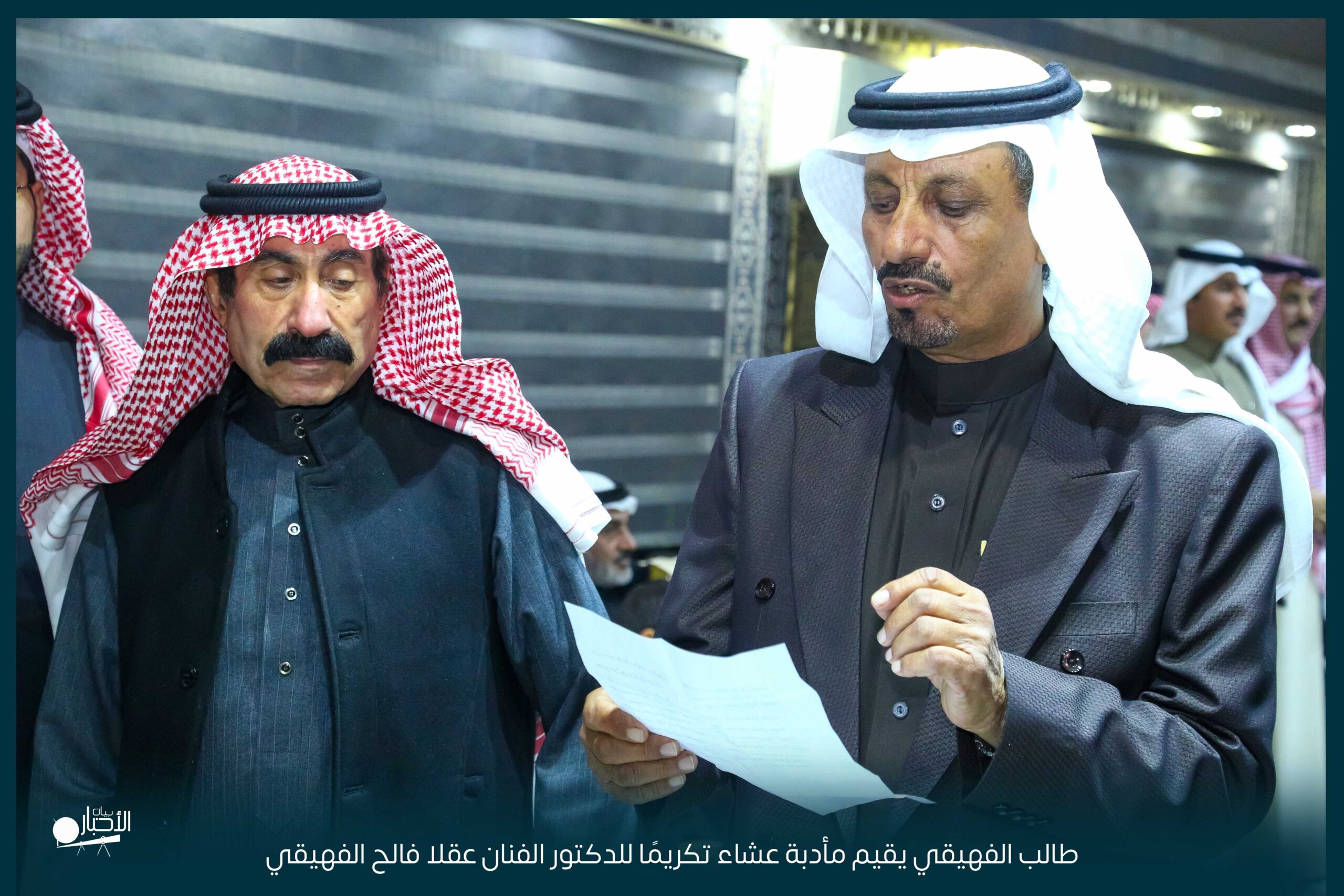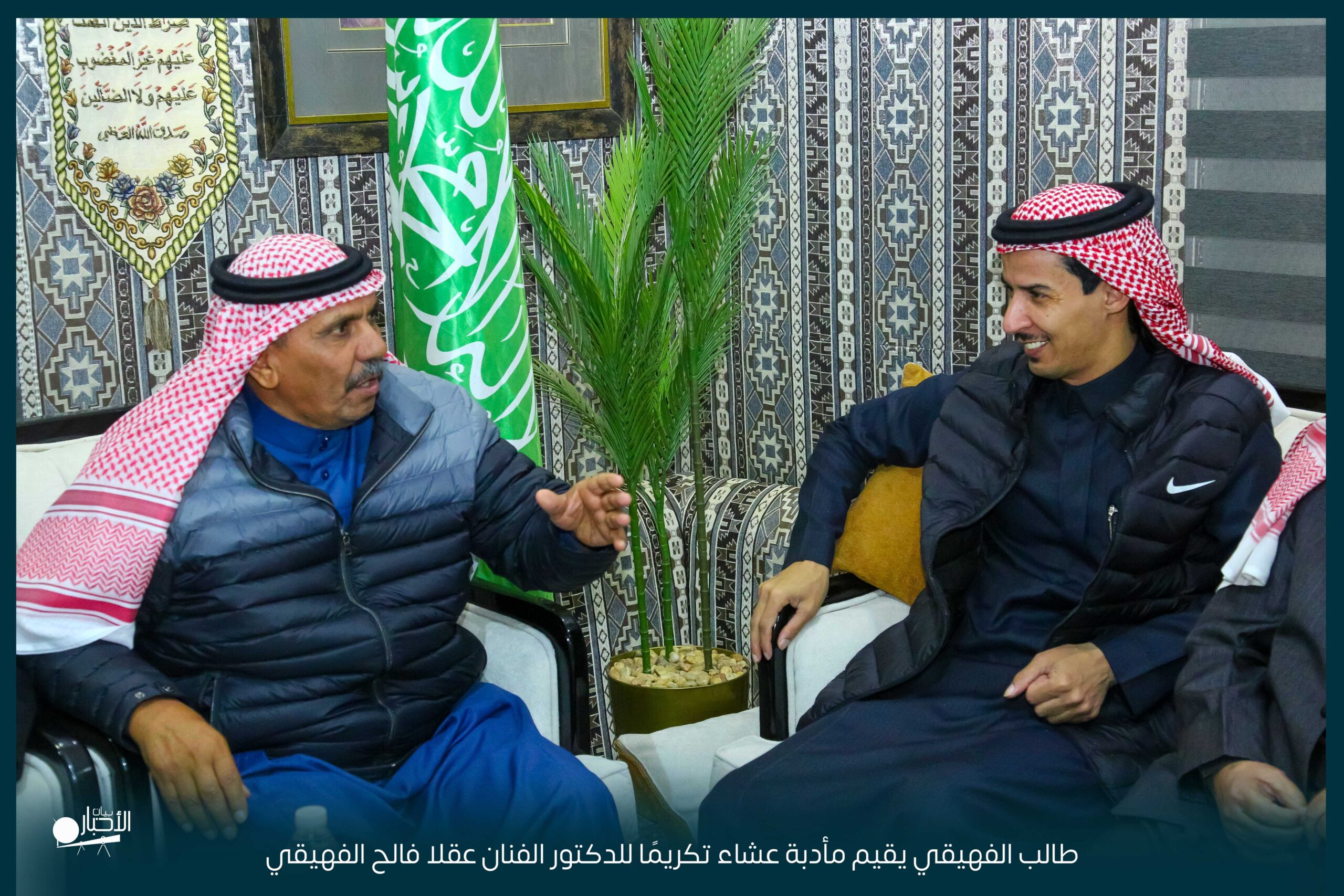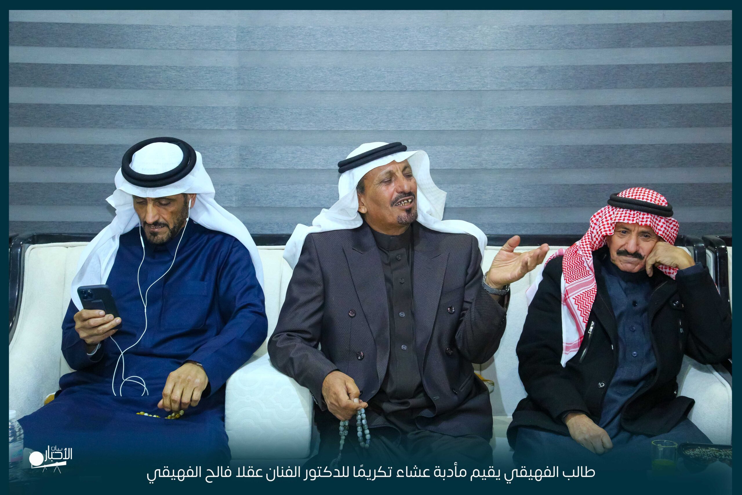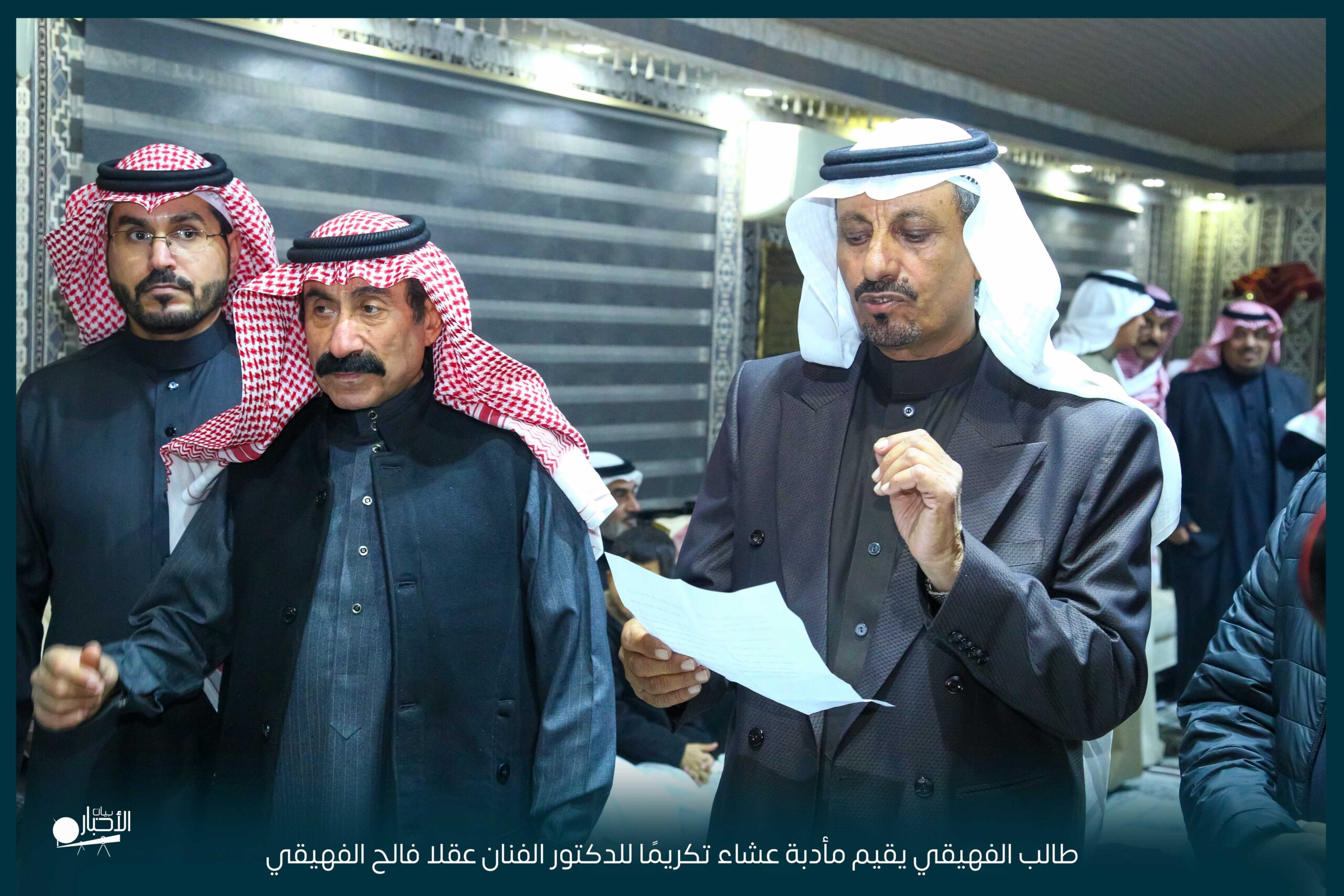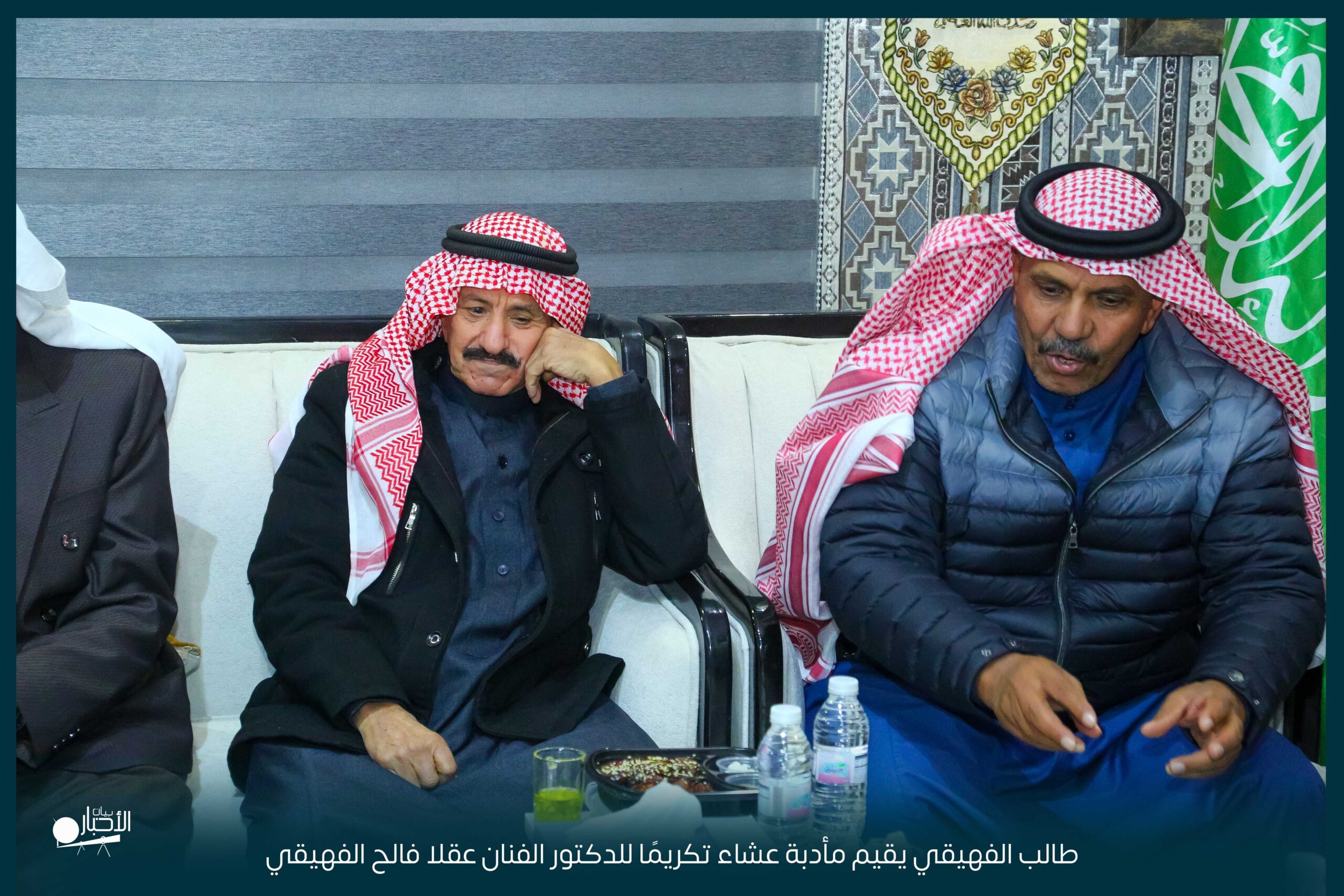 بالفيديو والصور … طالب الفهيقي يقيم مأدبة عشاء تكريمًا للدكتور الفنان عقلا فالح الفهيقي