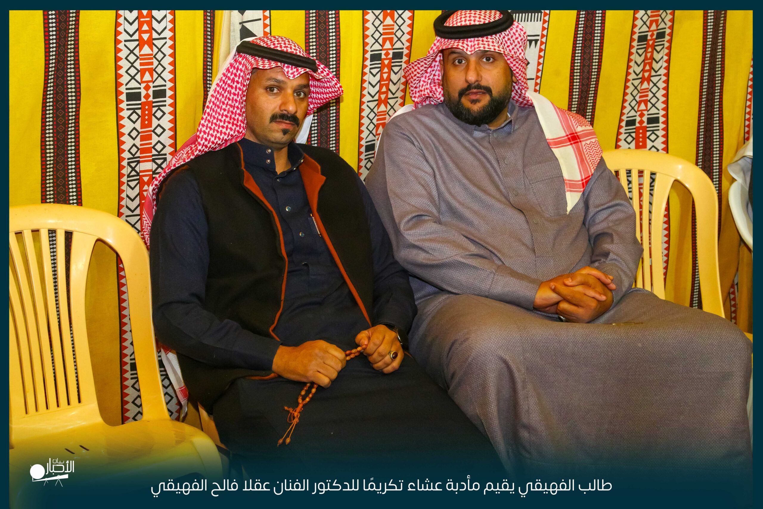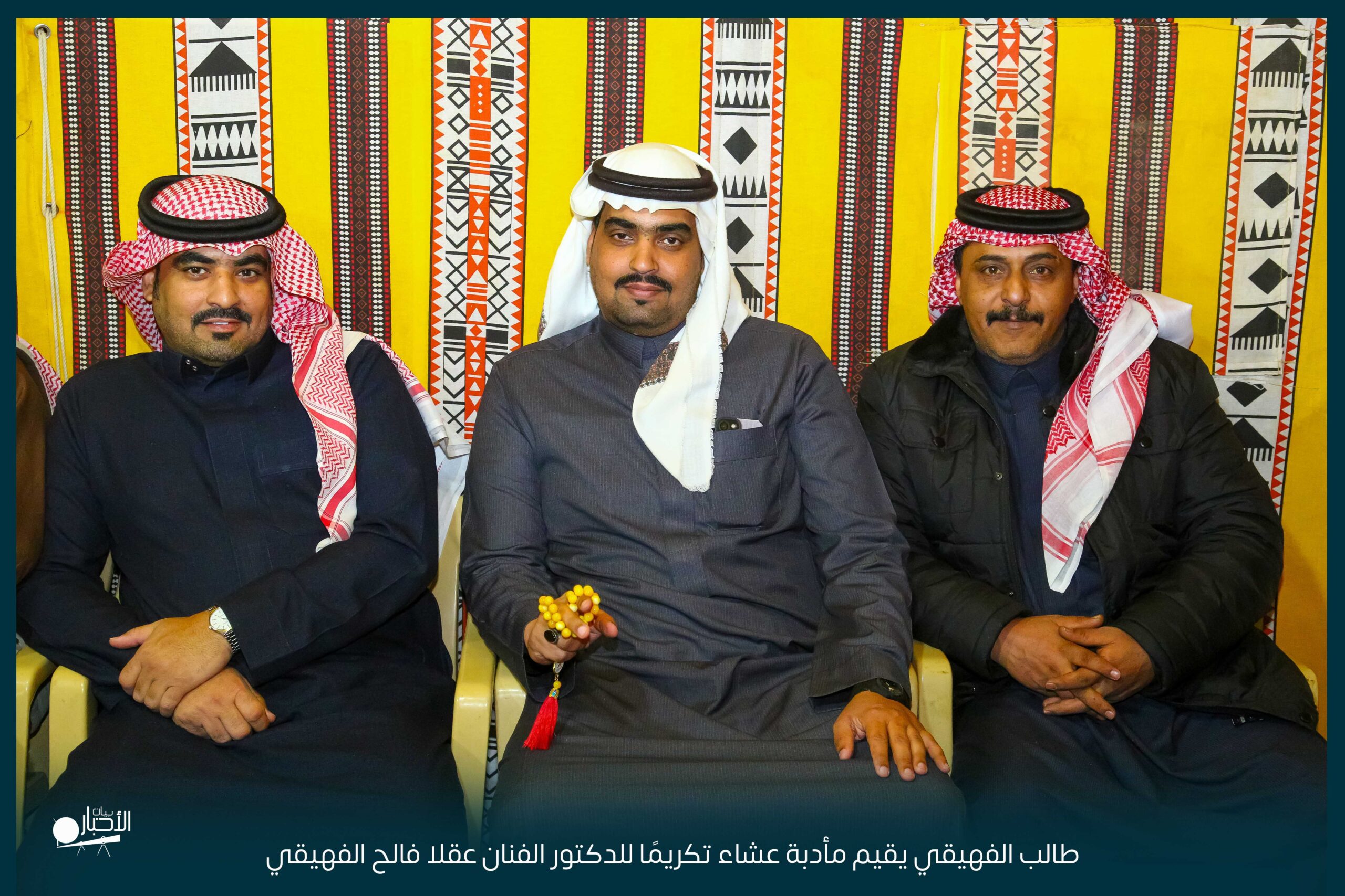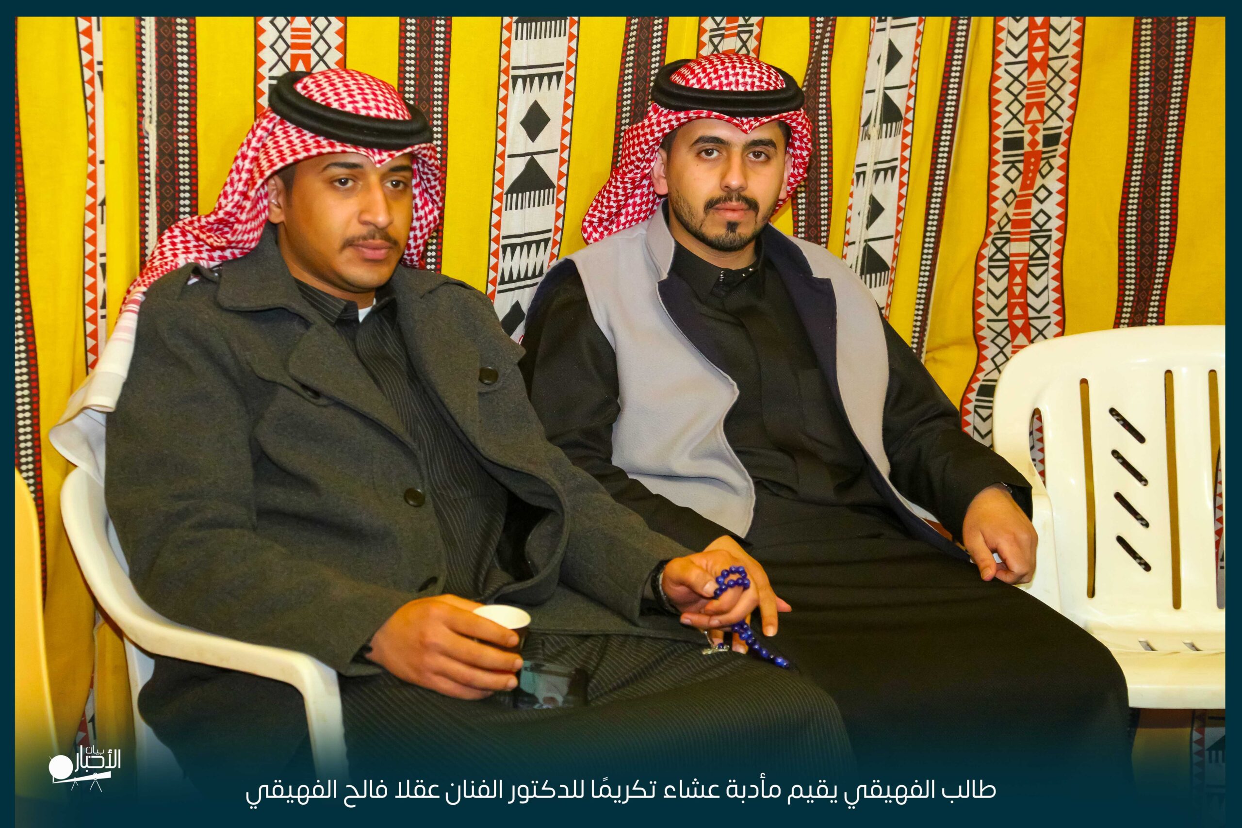أقام الأستاذ طالب حمود الحضيري الفهيقي اليوم مأدبة عشاء كريمة على شرف الدكتور الفنان عقلا فالح الفهيقي، وذلك في مزرعته على طريق القريات بمحافظة طريف، بحضور عدد من الوجهاء والأهالي.