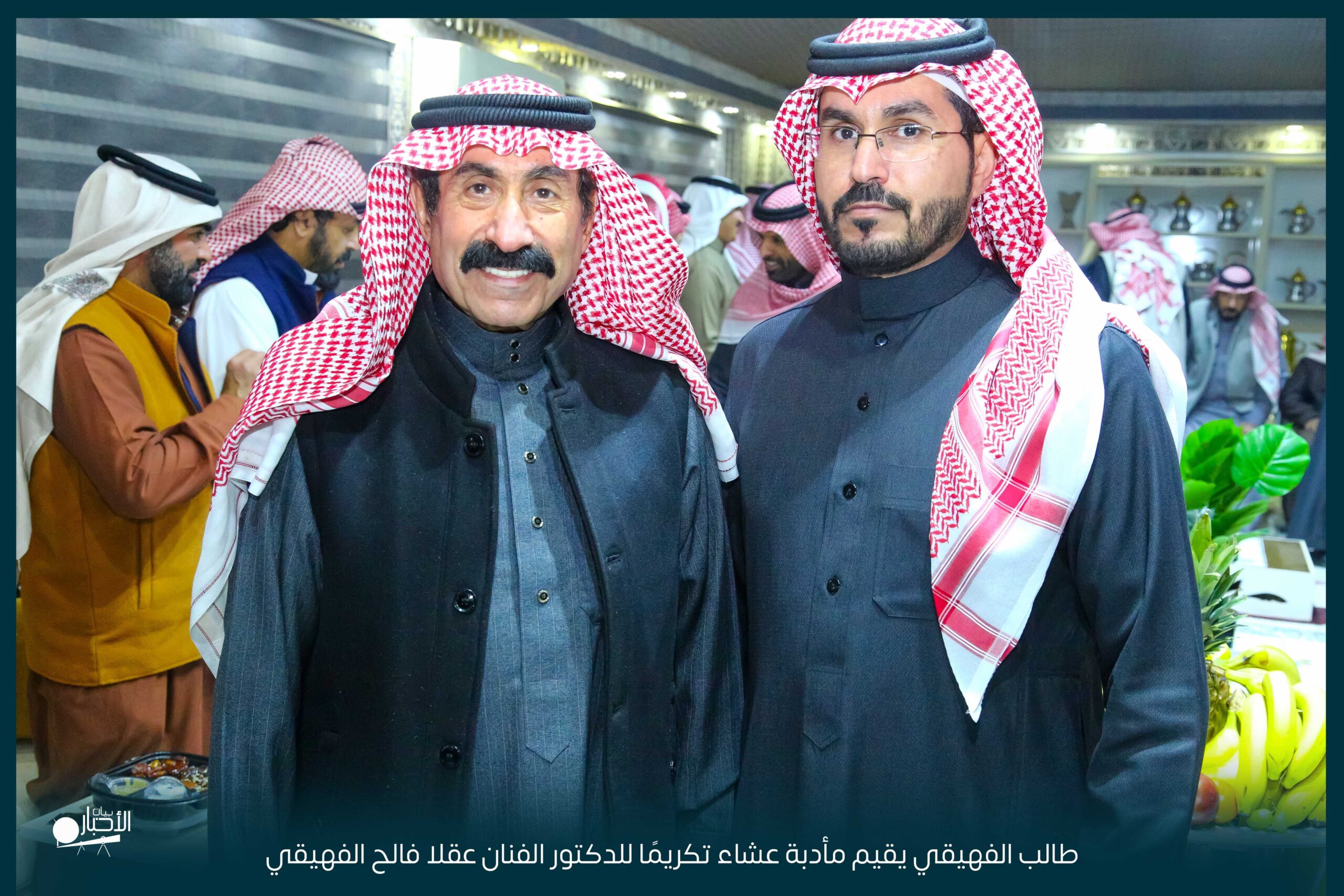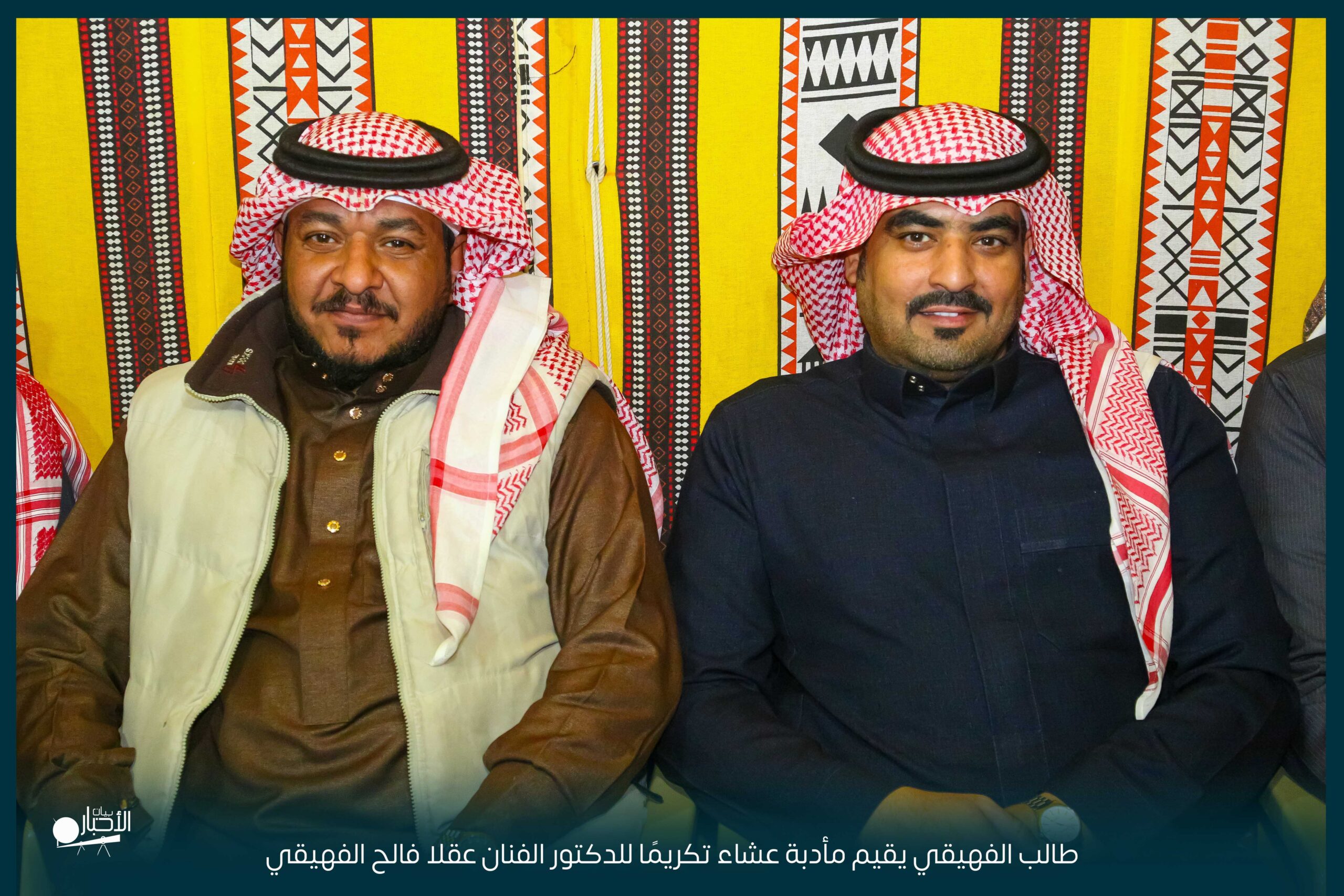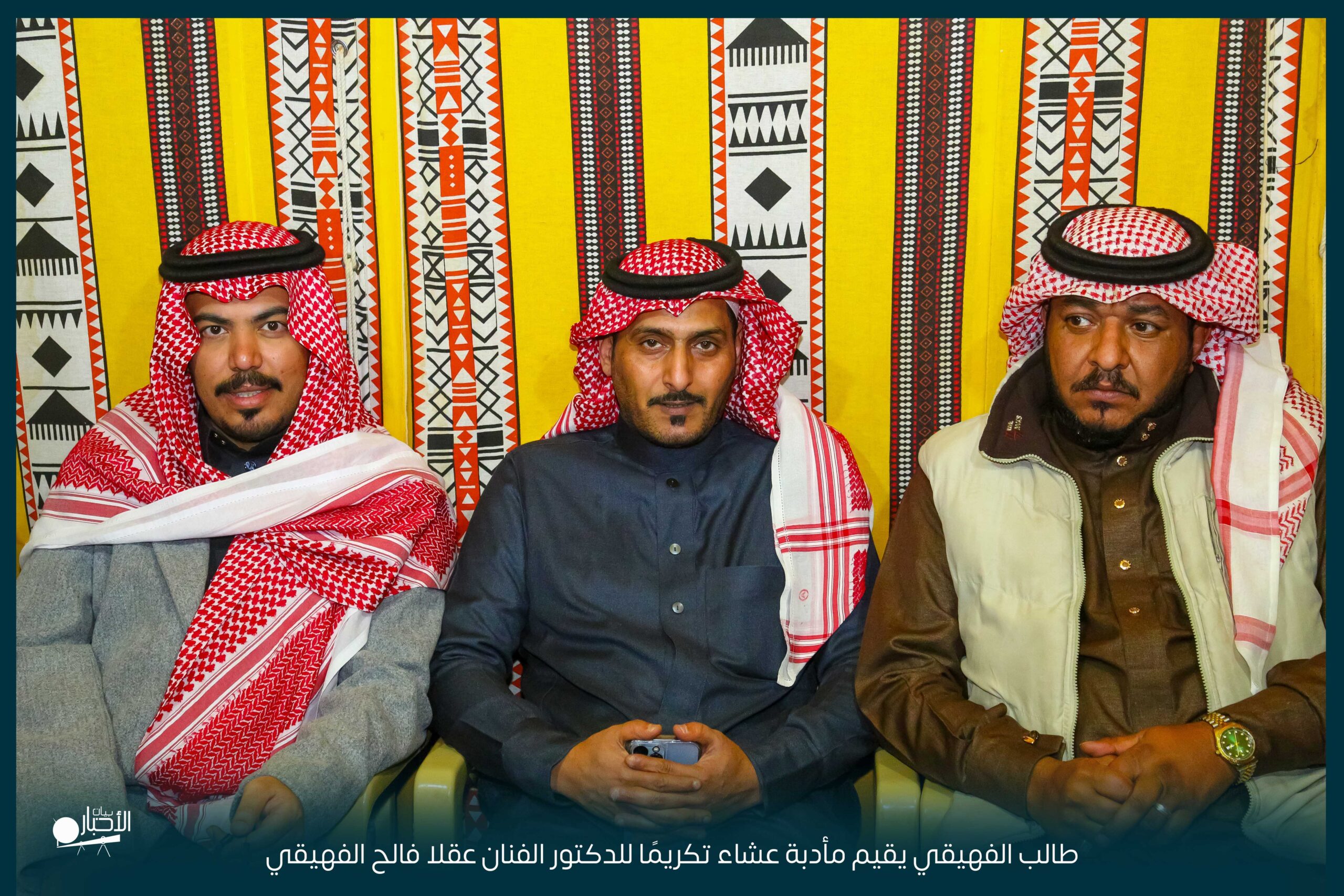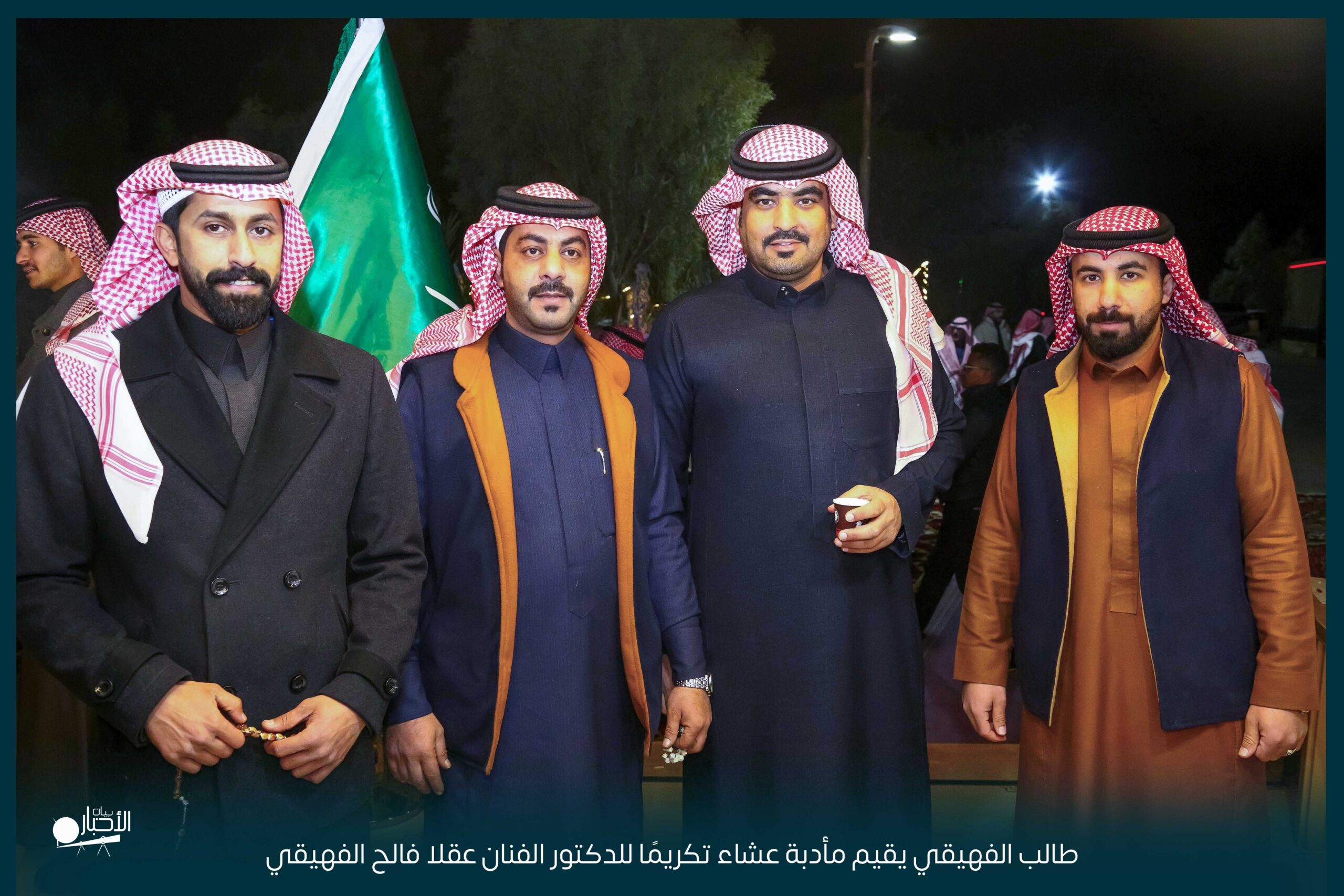 أقام الأستاذ طالب حمود الحضيري الفهيقي اليوم مأدبة عشاء كريمة على شرف الدكتور الفنان عقلا فالح الفهيقي، وذلك في مزرعته على طريق القريات بمحافظة طريف، بحضور عدد من الوجهاء والأهالي.