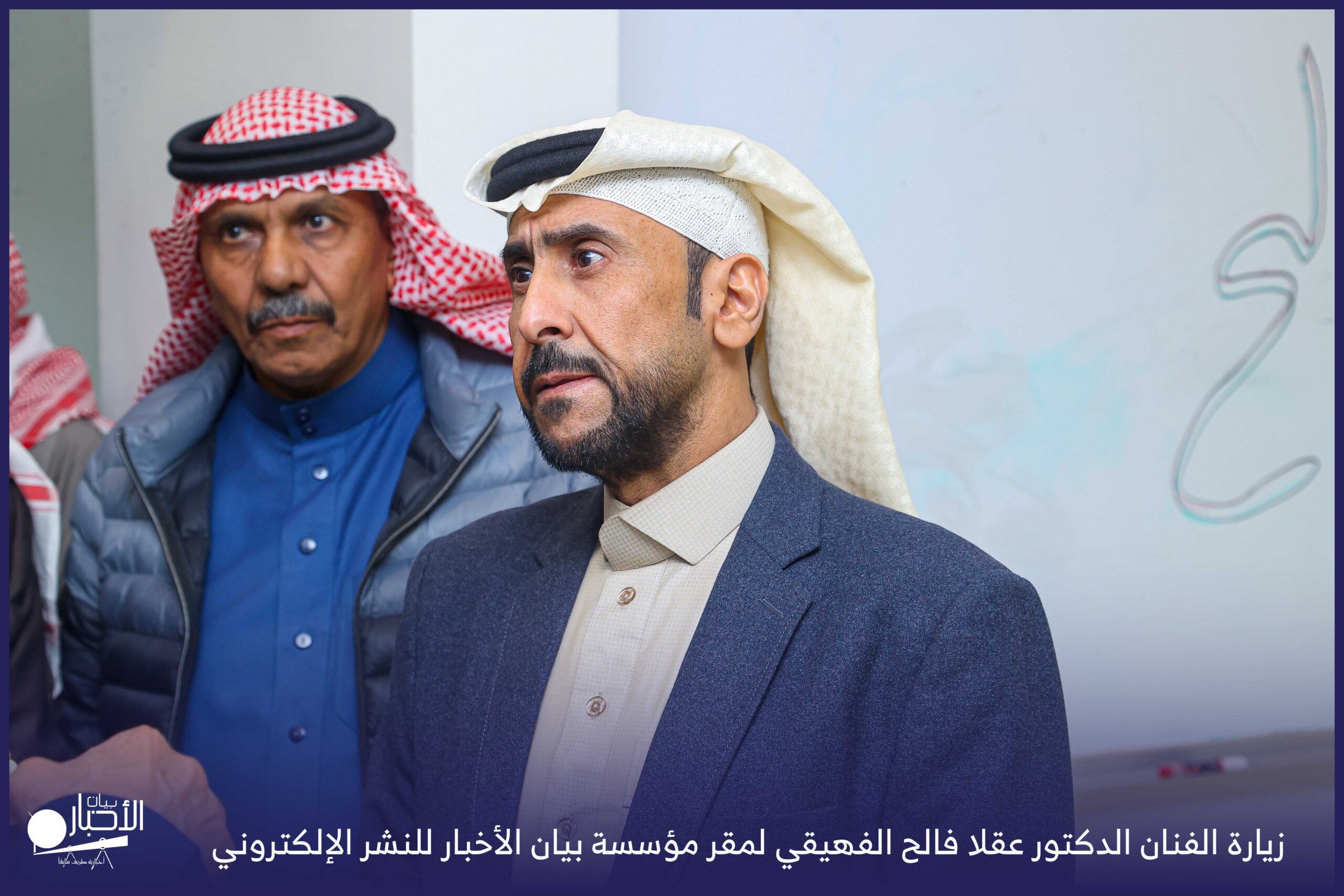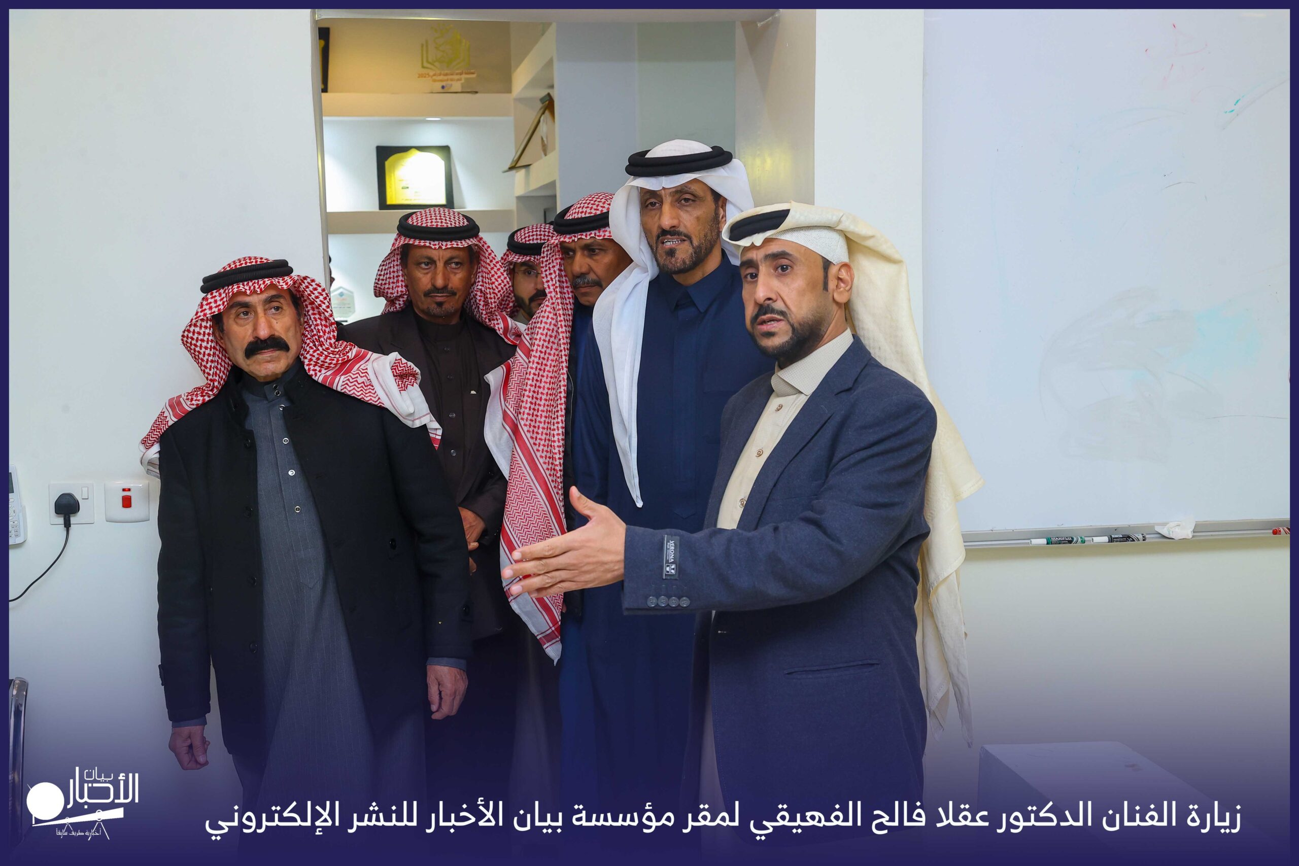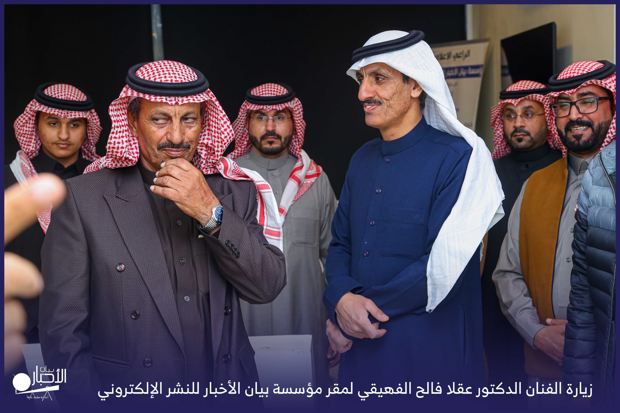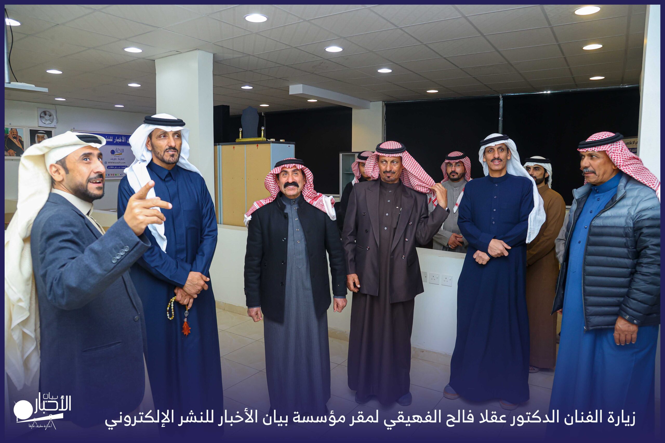 زار الفنان الدكتور عقلا فالح الفهيقي، مؤسسة بيان الأخبار (إخبارية طريف سابقا) وكان في استقباله إدارة الموقع ممثلة بالأستاذ فهد الدغماني، فيما رافق الفنان الدكتور عقلا خلال الزيارة الأستاذ طالب حمود الحضيري الفهيقي وعدد من الضيوف .